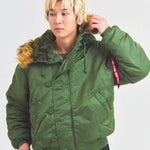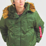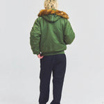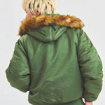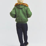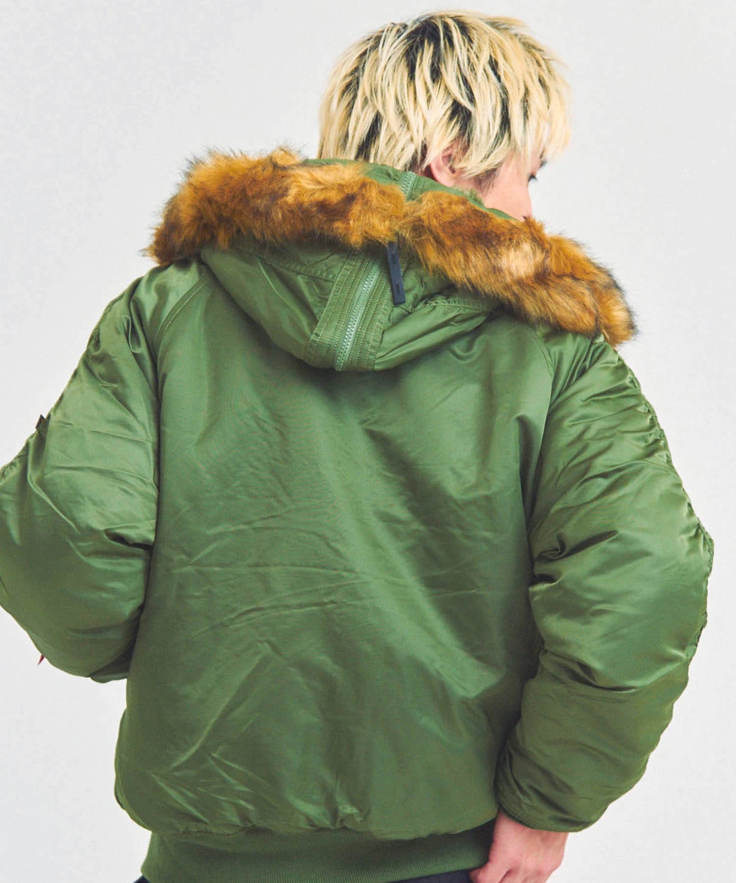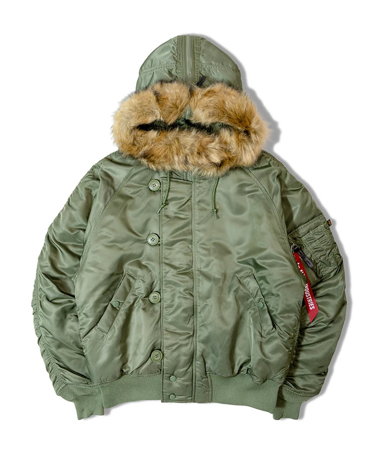 N-2Bショートウエストパーカーは、凍えるような寒さに耐えるために作られており、100% 耐水性のナイロンシェルとポリエステル裏地を備えています。