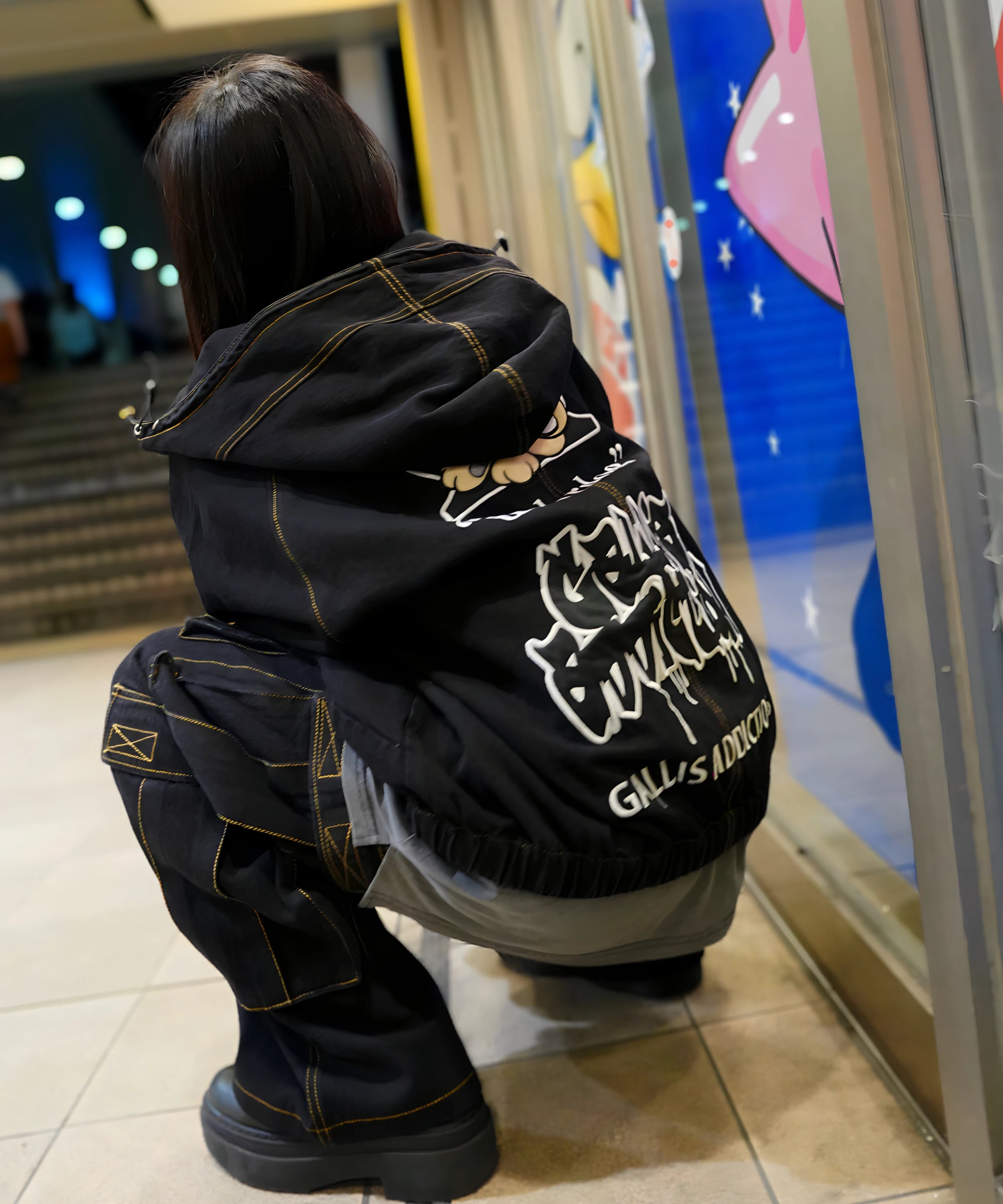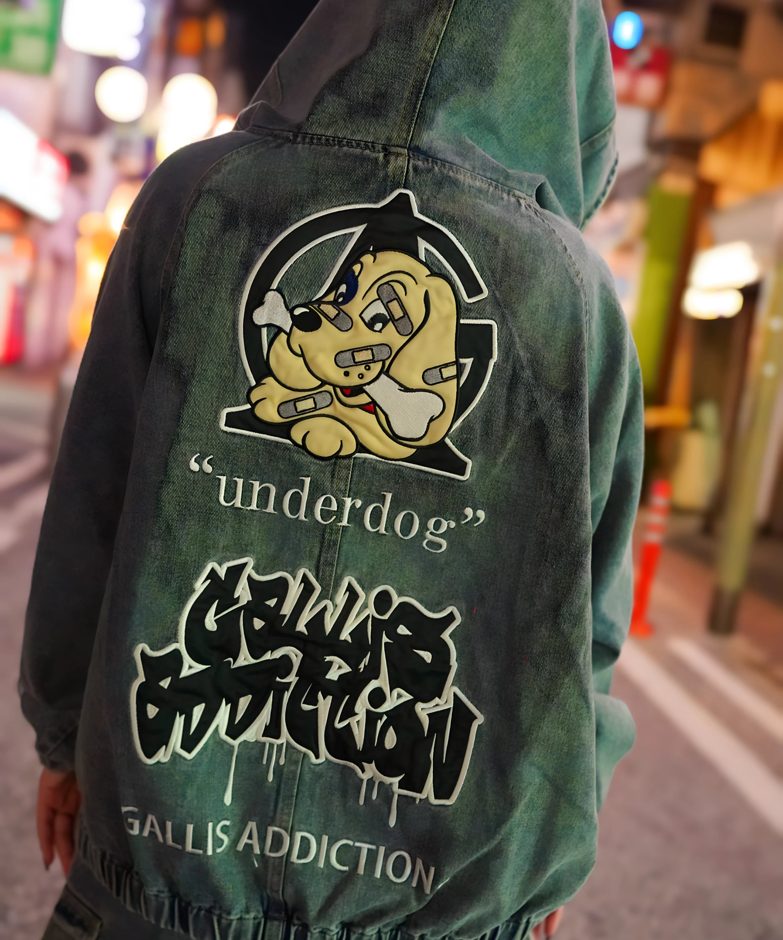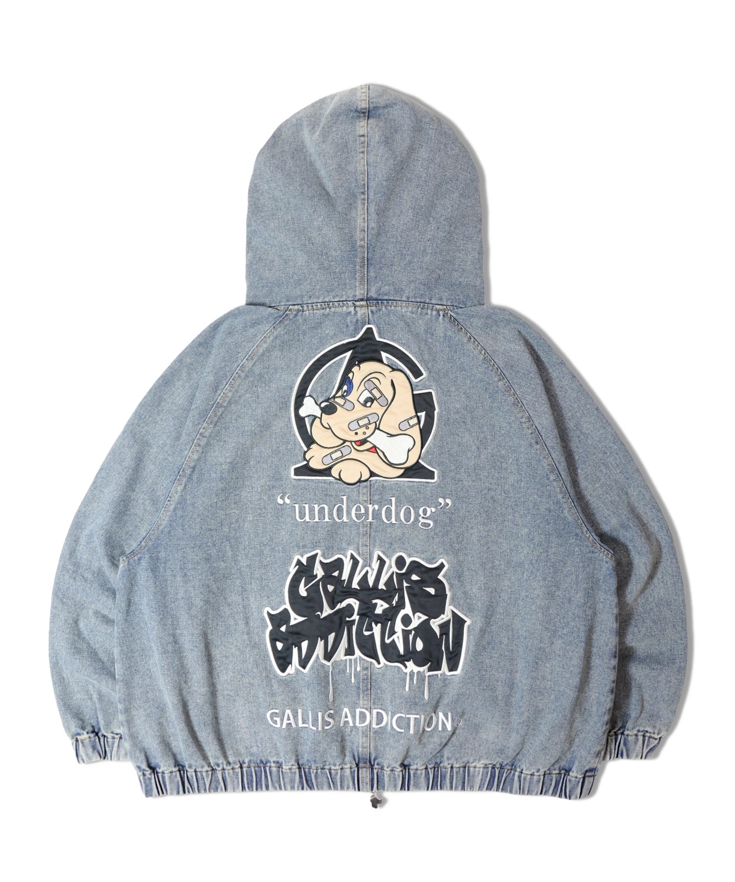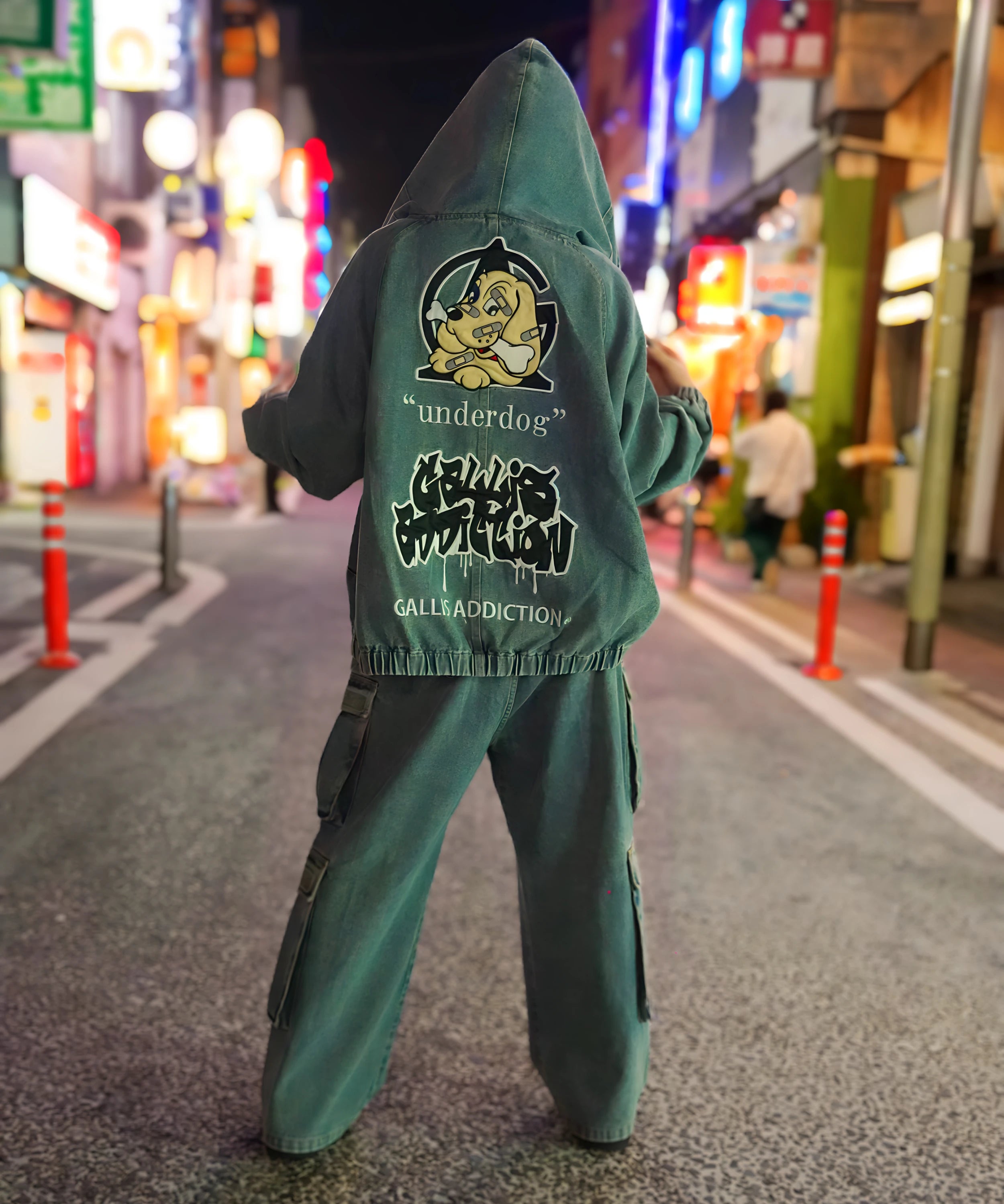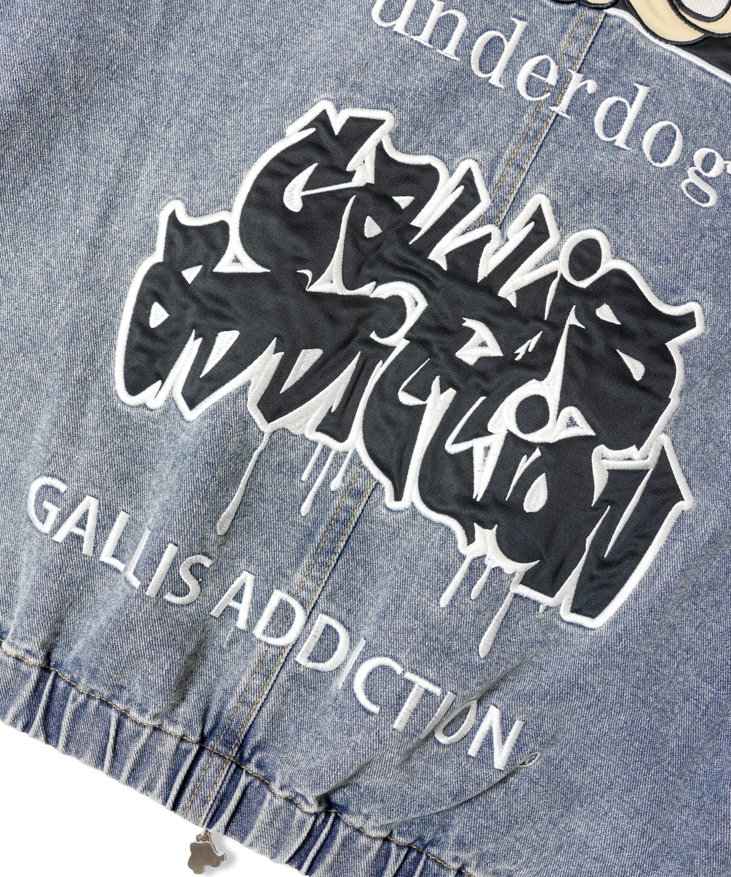 GALFYとGALLIS ADDICTIONのコラボレーションによって誕生した、存在感抜群の別注デニムフードジャケット。フロントにはブランドロゴ刺繍を施し、背面には大胆なグラフィックアートを配置することで、視線を惹きつけるデザインに仕上げました。ゆったりとしたシルエットはストリートスタイルに最適で、レイヤードにも対応。単品使いでも十分なインパクトを放ちますが、同シリーズのカーゴパンツとセットアップで着用することで、より統一感のあるスタイリングが完成します。