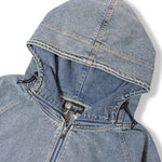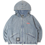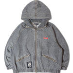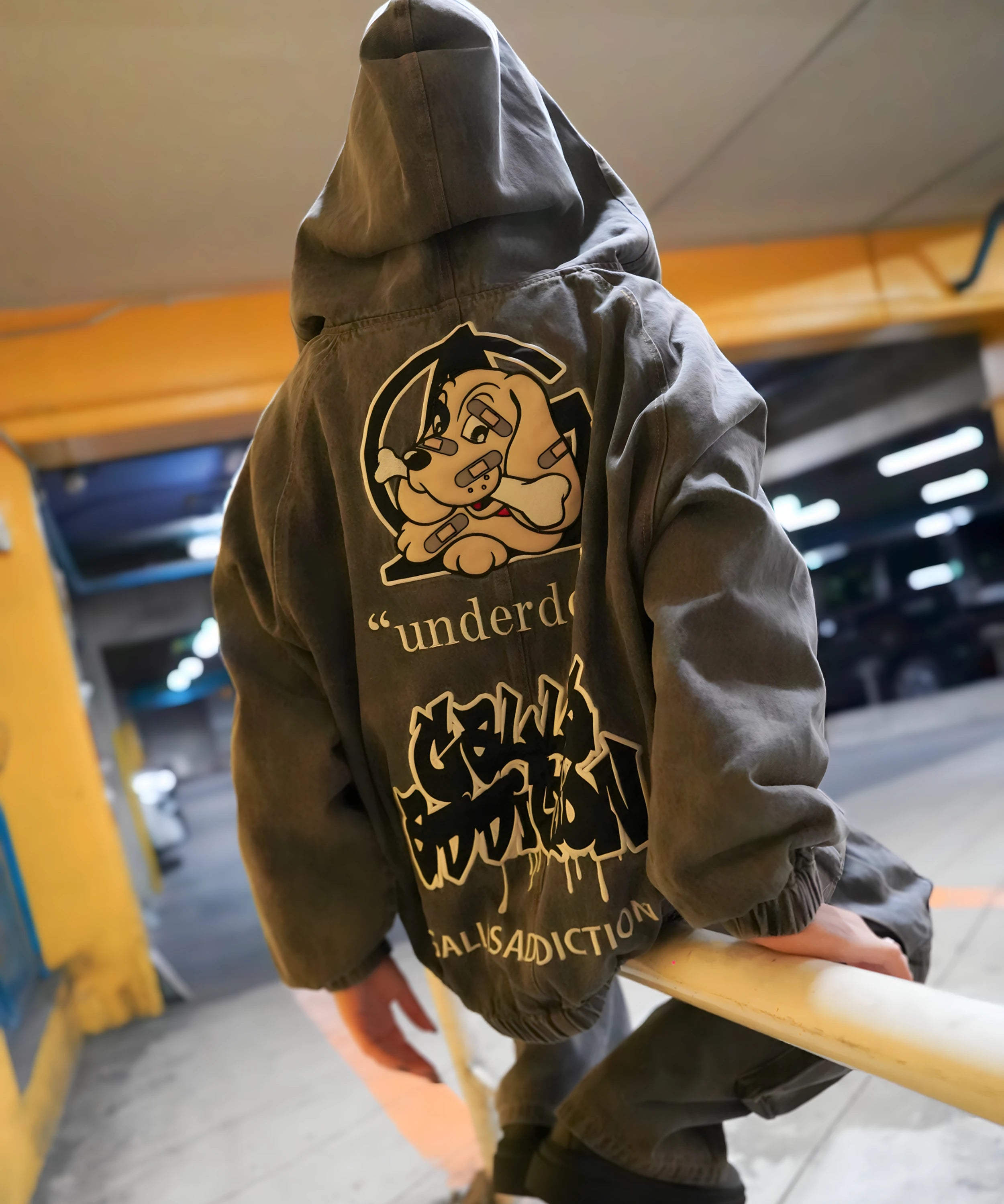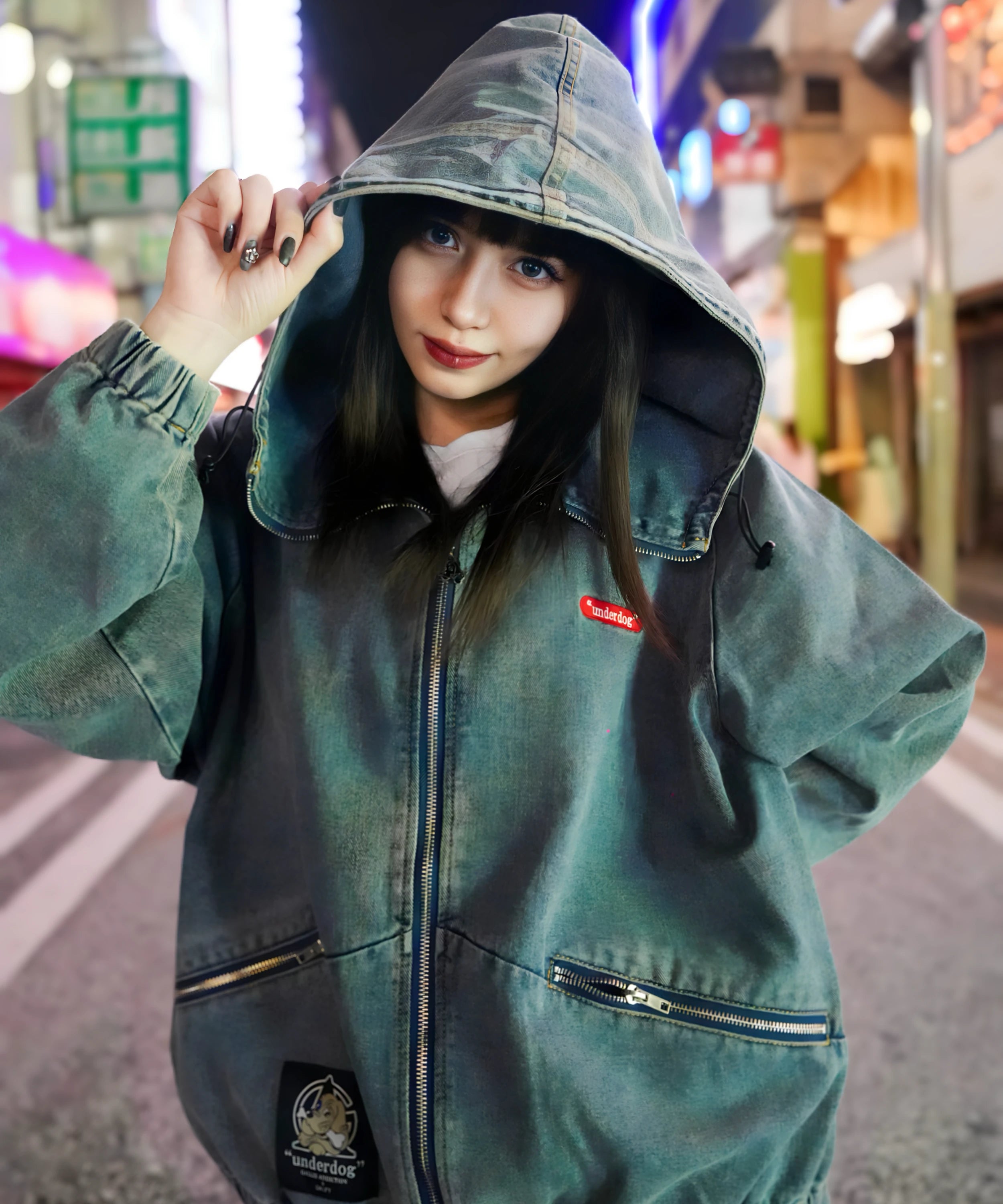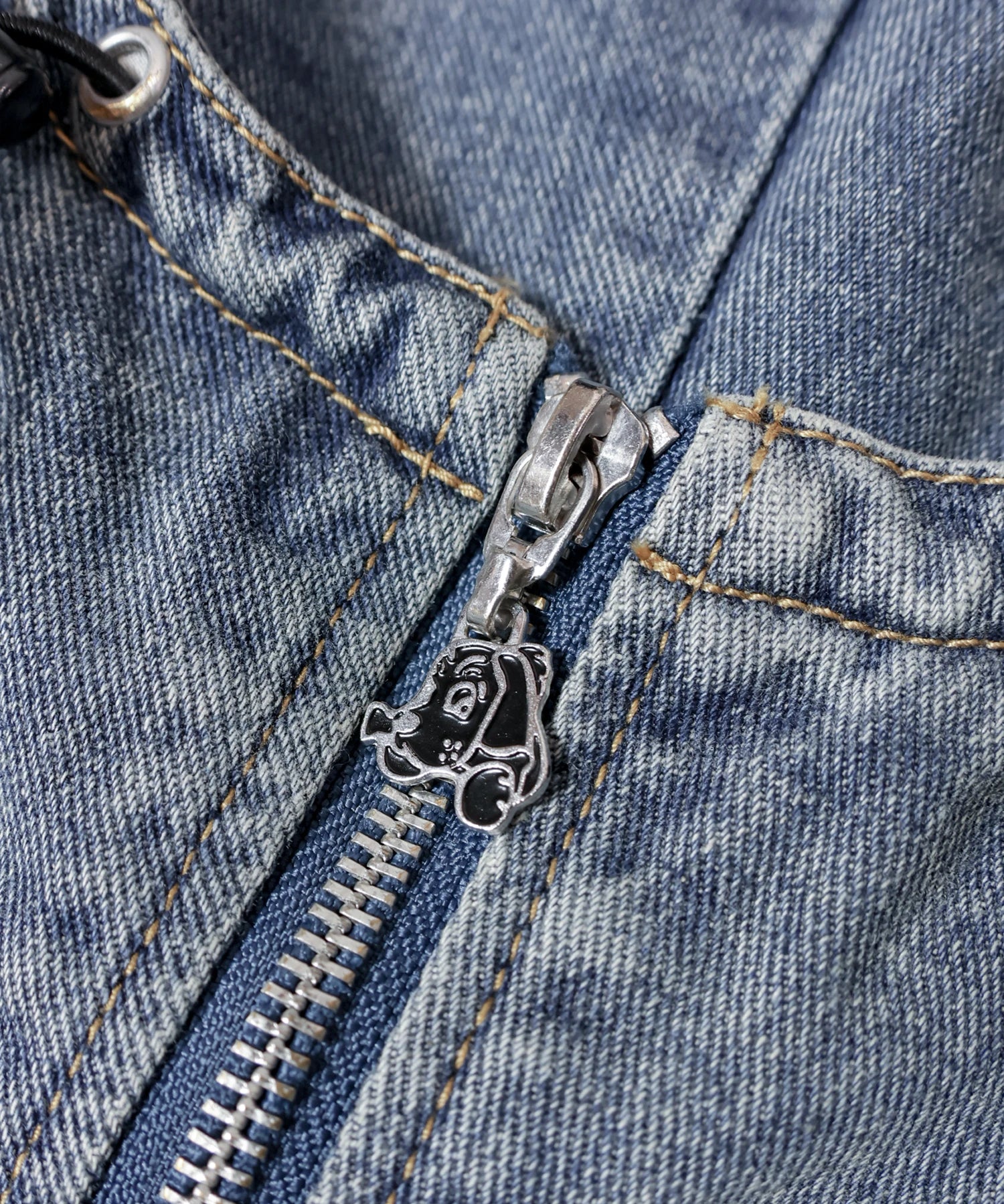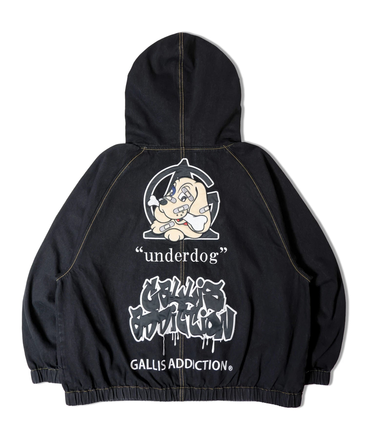 GALFYとGALLIS ADDICTIONのコラボレーションによって誕生した、存在感抜群の別注デニムフードジャケット。フロントにはブランドロゴ刺繍を施し、背面には大胆なグラフィックアートを配置することで、視線を惹きつけるデザインに仕上げました。ゆったりとしたシルエットはストリートスタイルに最適で、レイヤードにも対応。単品使いでも十分なインパクトを放ちますが、同シリーズのカーゴパンツとセットアップで着用することで、より統一感のあるスタイリングが完成します。