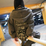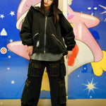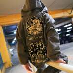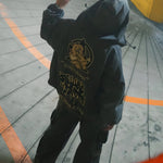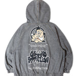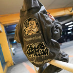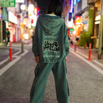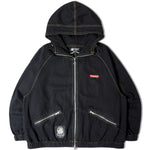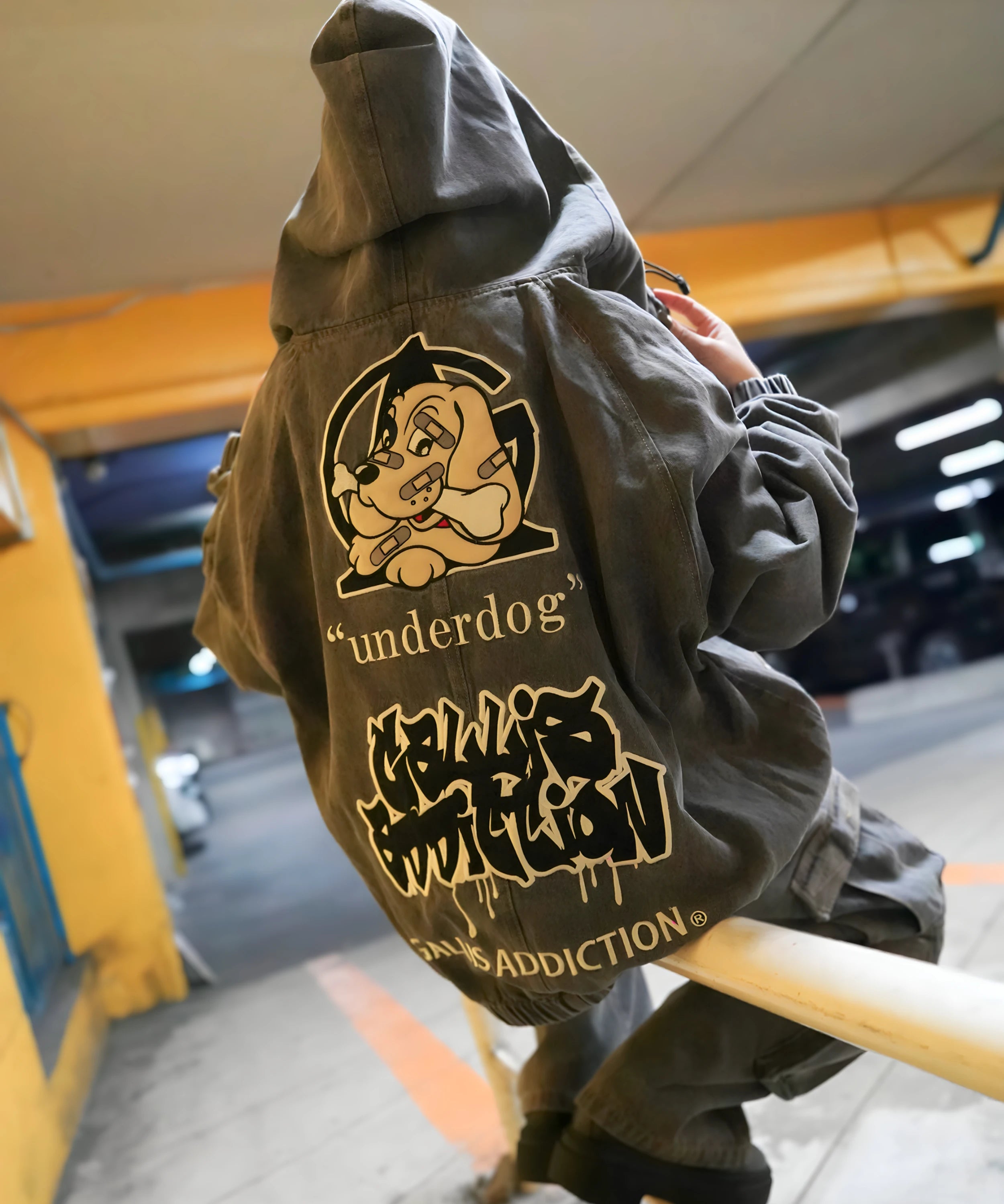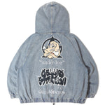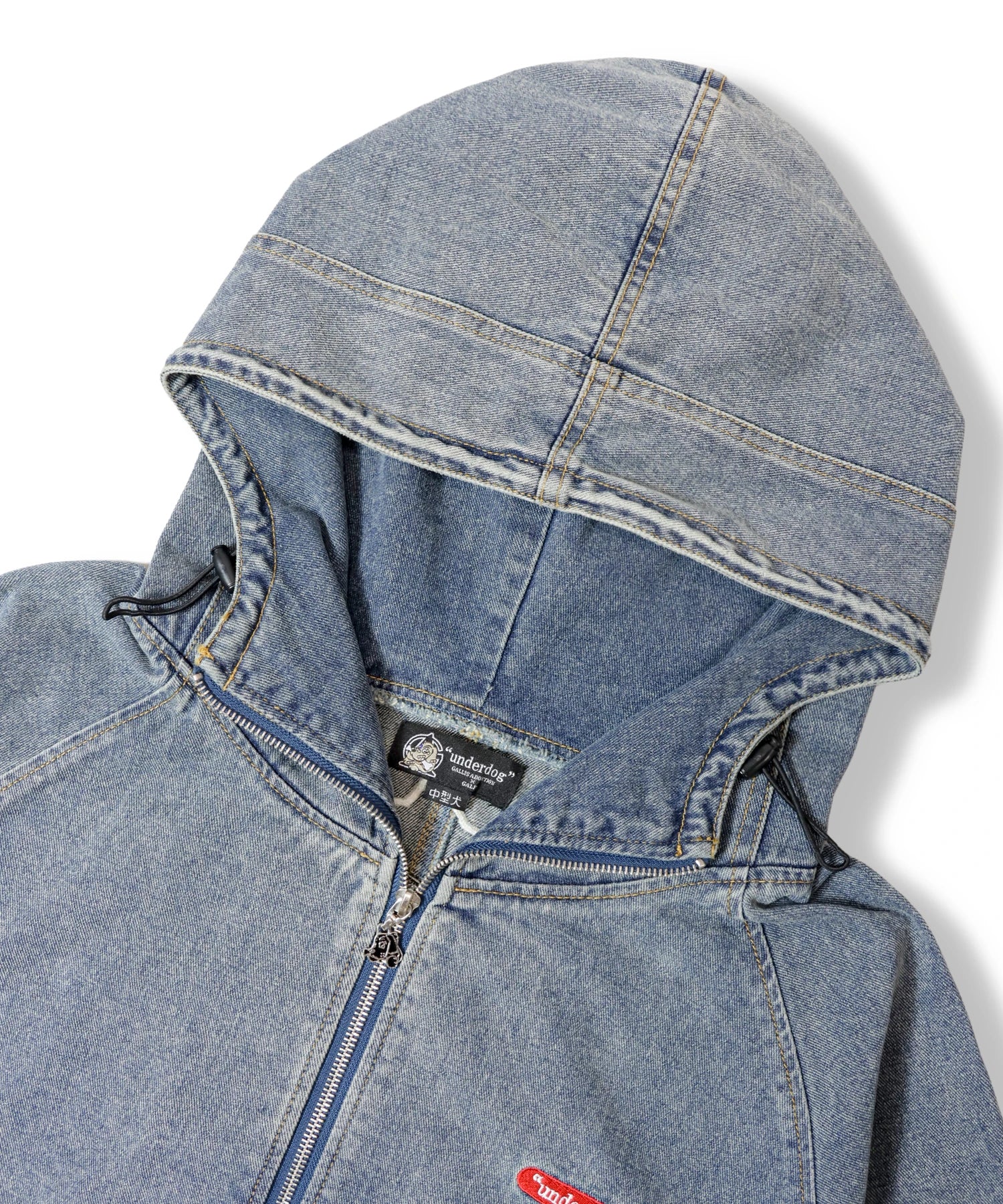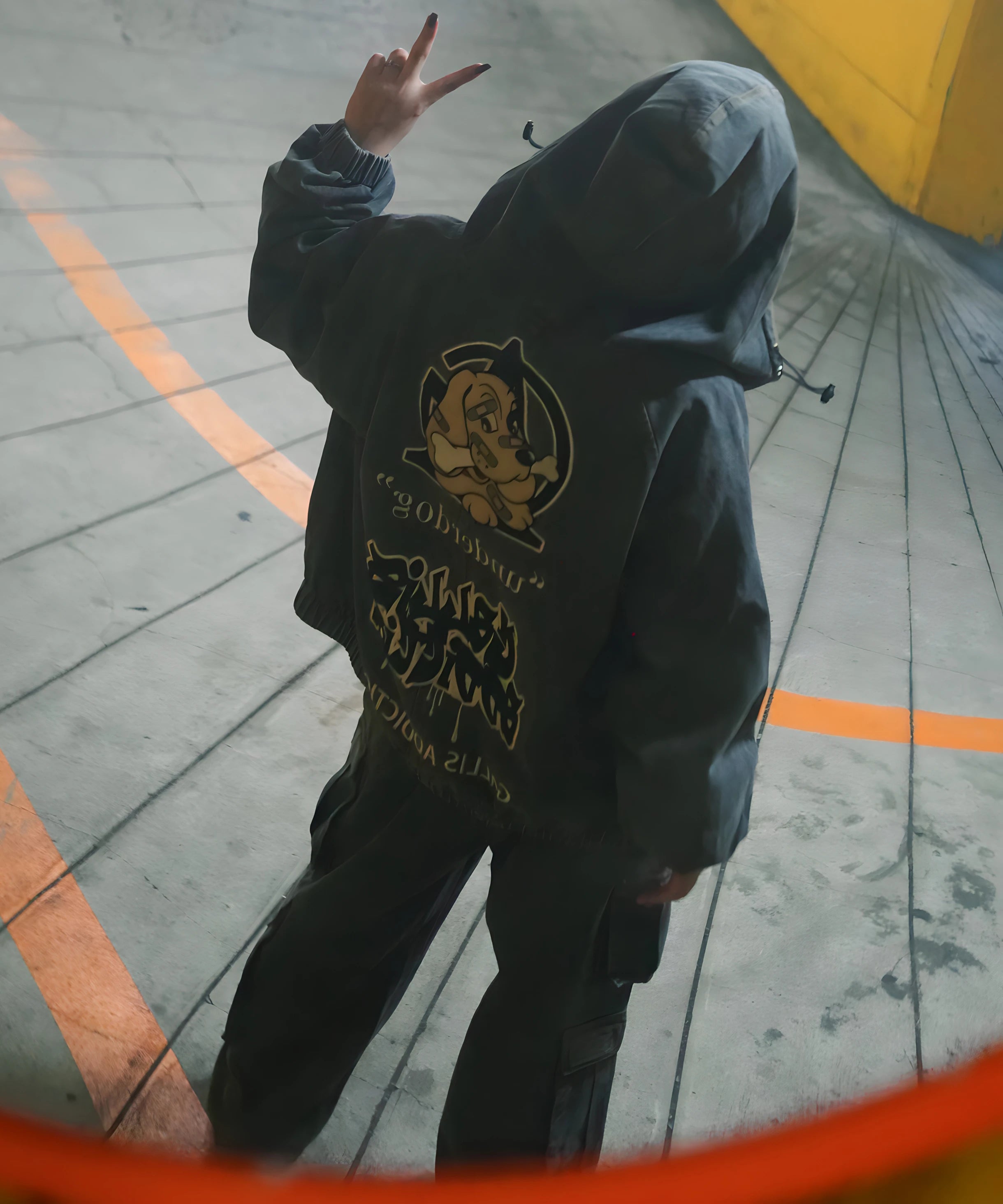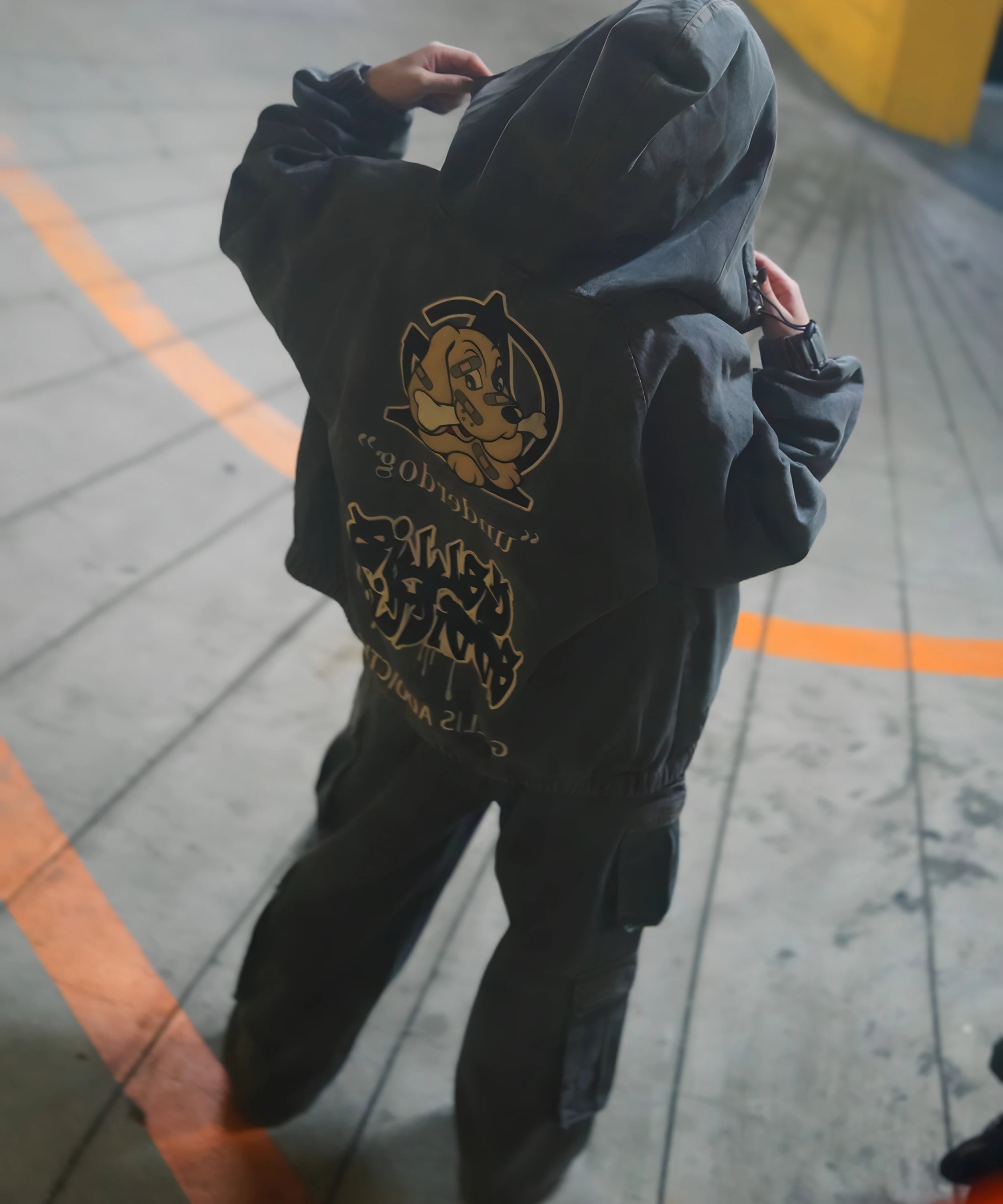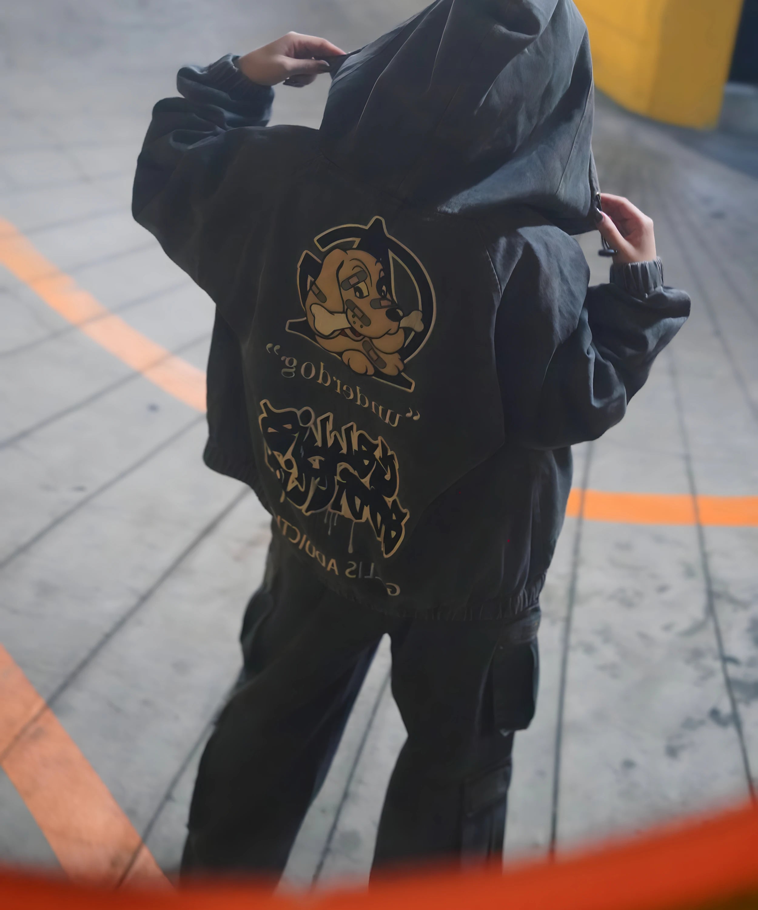 GALFYとGALLIS ADDICTIONのコラボレーションによって誕生した、存在感抜群の別注デニムフードジャケット。フロントにはブランドロゴ刺繍を施し、背面には大胆なグラフィックアートを配置することで、視線を惹きつけるデザインに仕上げました。ゆったりとしたシルエットはストリートスタイルに最適で、レイヤードにも対応。単品使いでも十分なインパクトを放ちますが、同シリーズのカーゴパンツとセットアップで着用することで、より統一感のあるスタイリングが完成します。