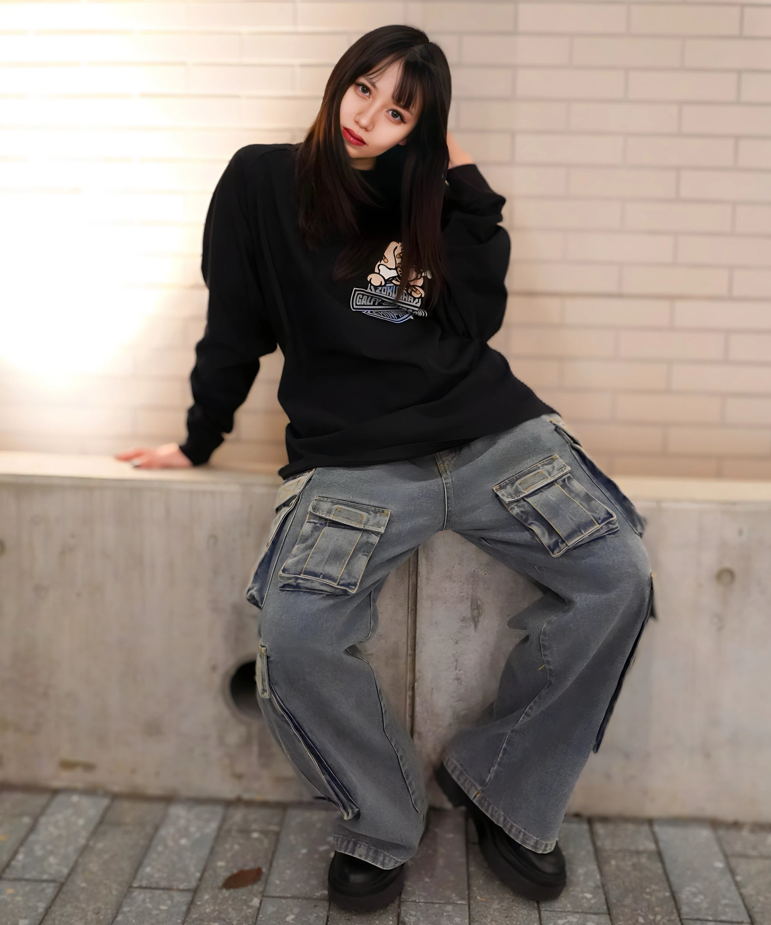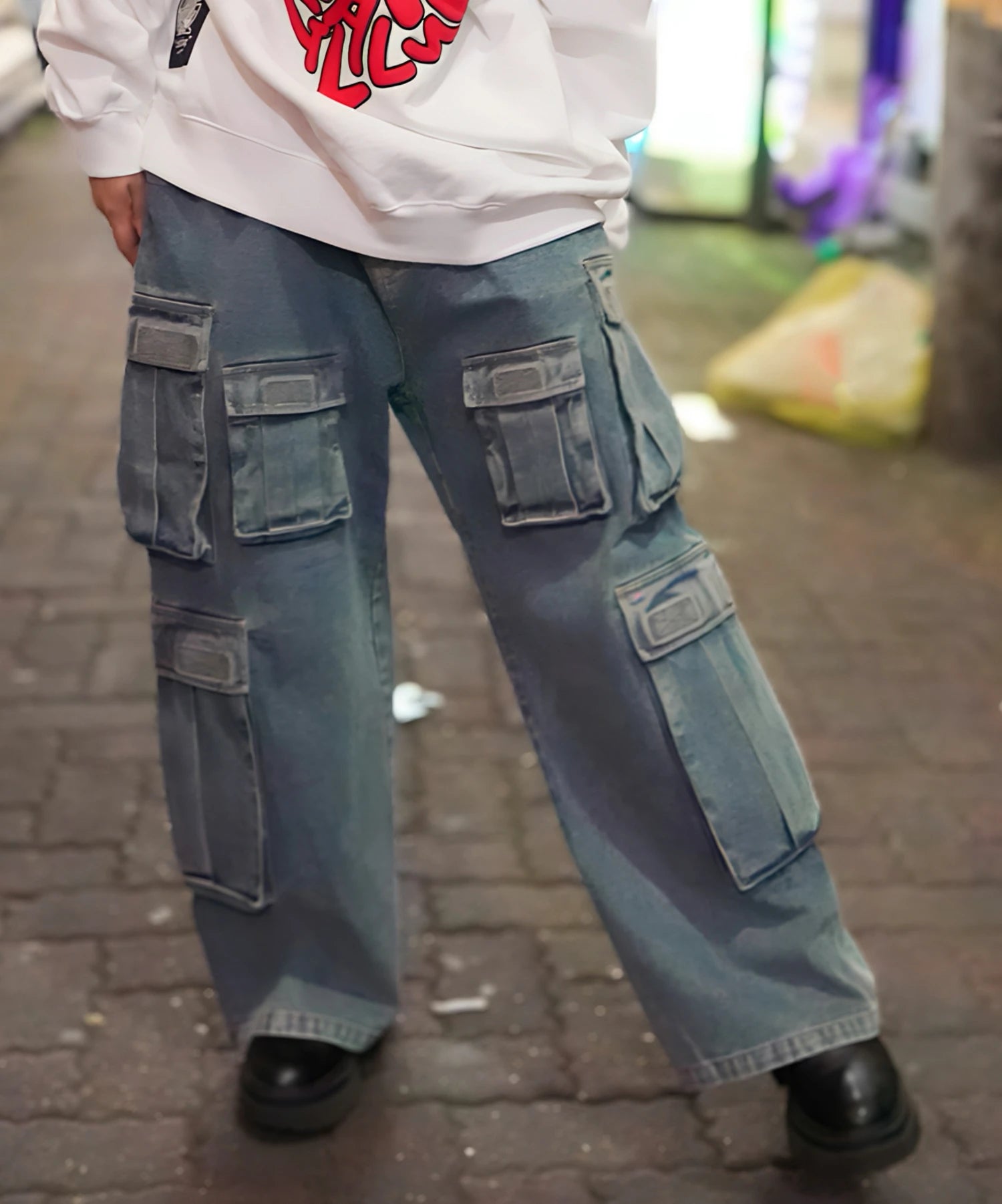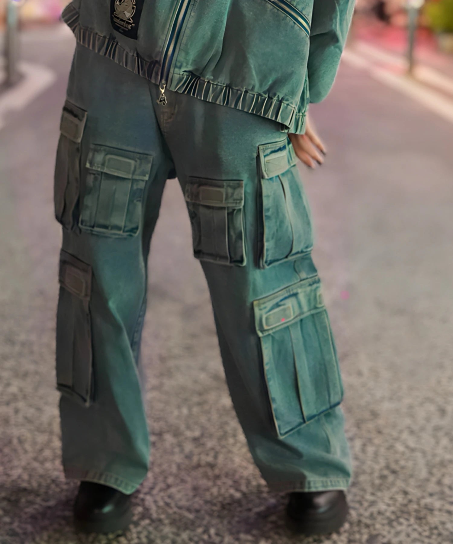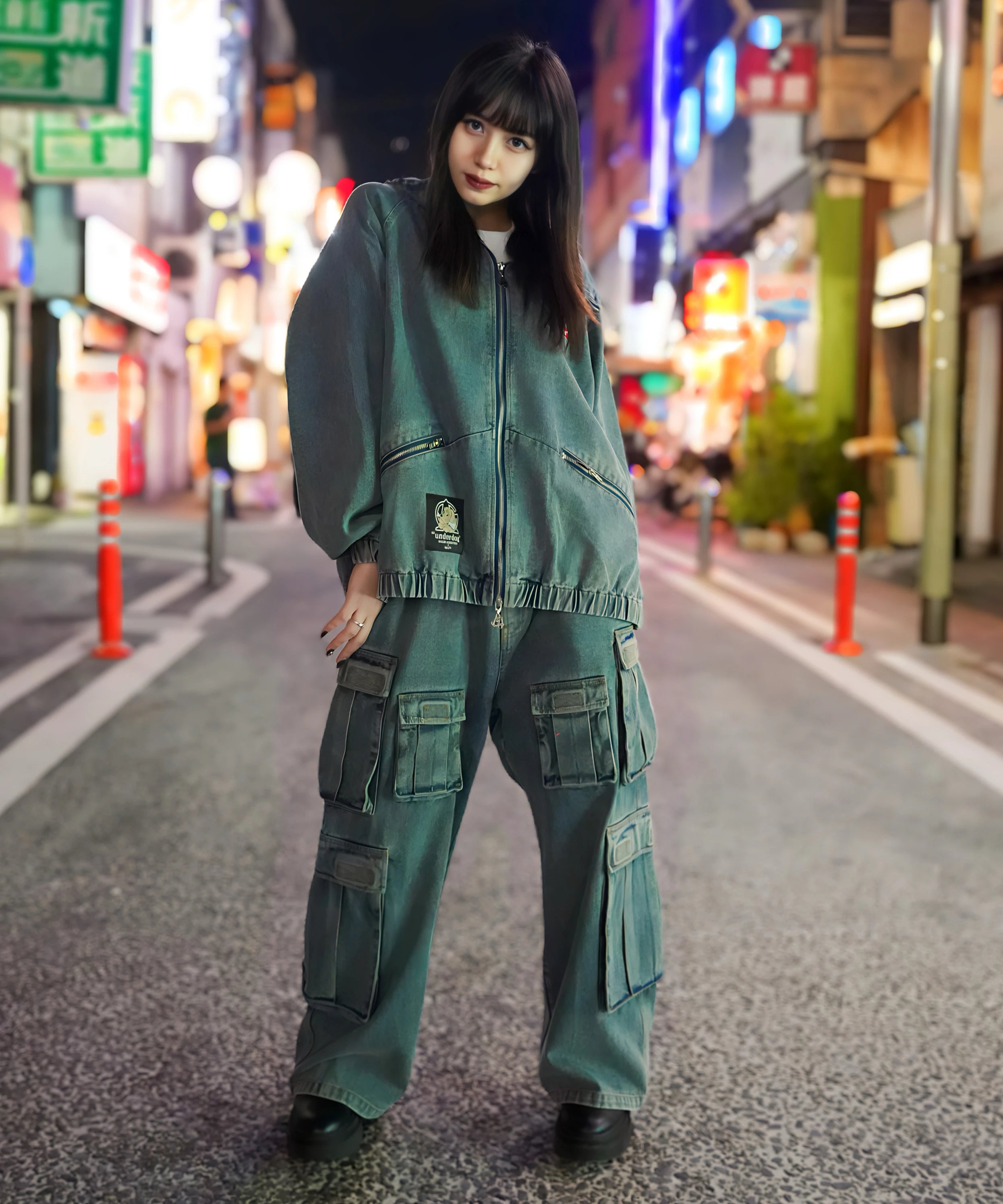 ストリートと機能性を融合させた、GALFY×GALLIS ADDICTIONの別注デニムカーゴパンツ。複数のポケットを備えた実用的なディテールと、程よくルーズなシルエットが特徴です。動きやすさとスタイルを両立し、日常使いからアクティブなシーンまで幅広く対応。単品でもコーディネートの主役として活躍しますが、同シリーズのフードジャケットとセットアップで着用することで、ブランドの世界観をより深く体現できます。