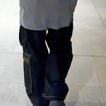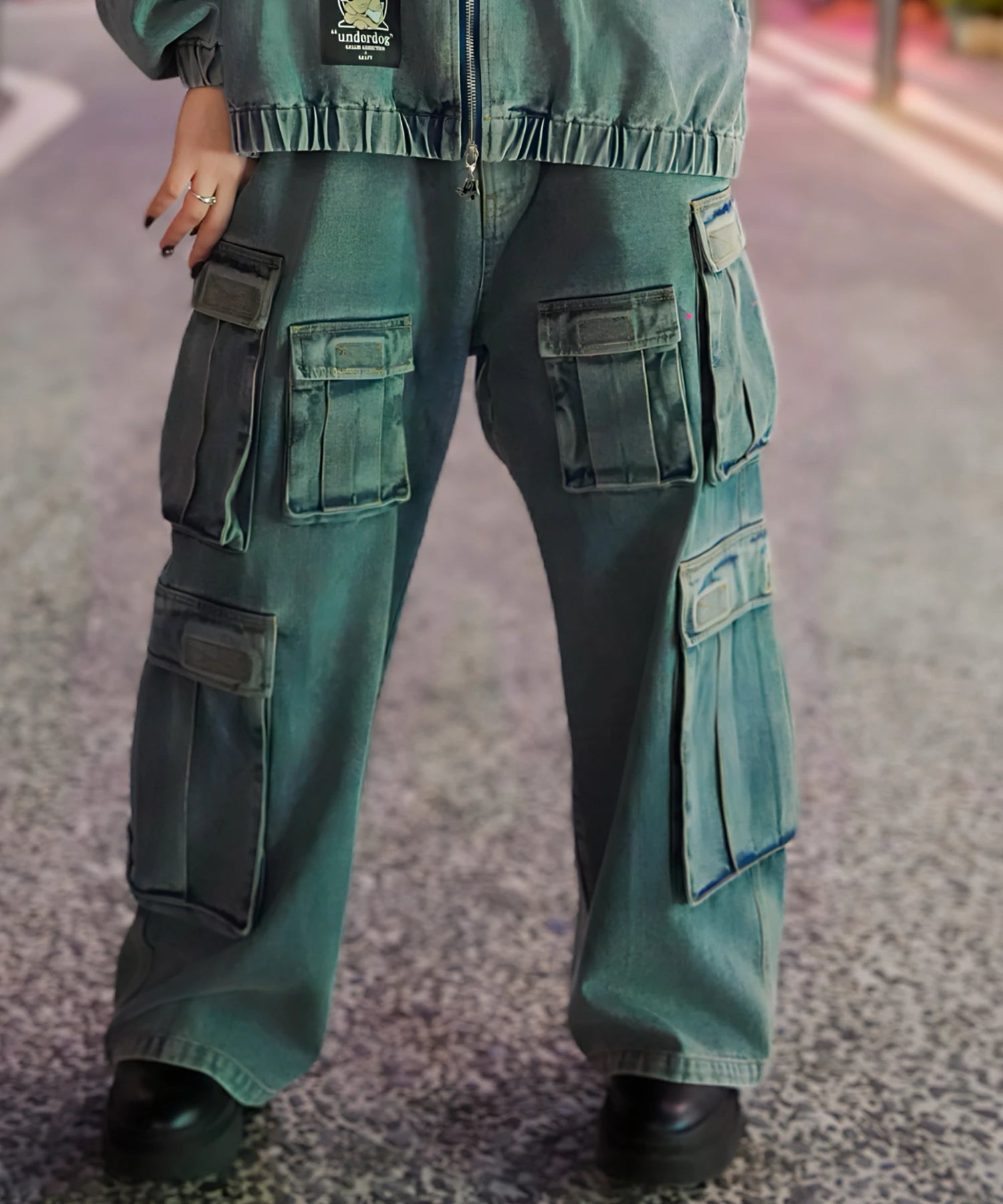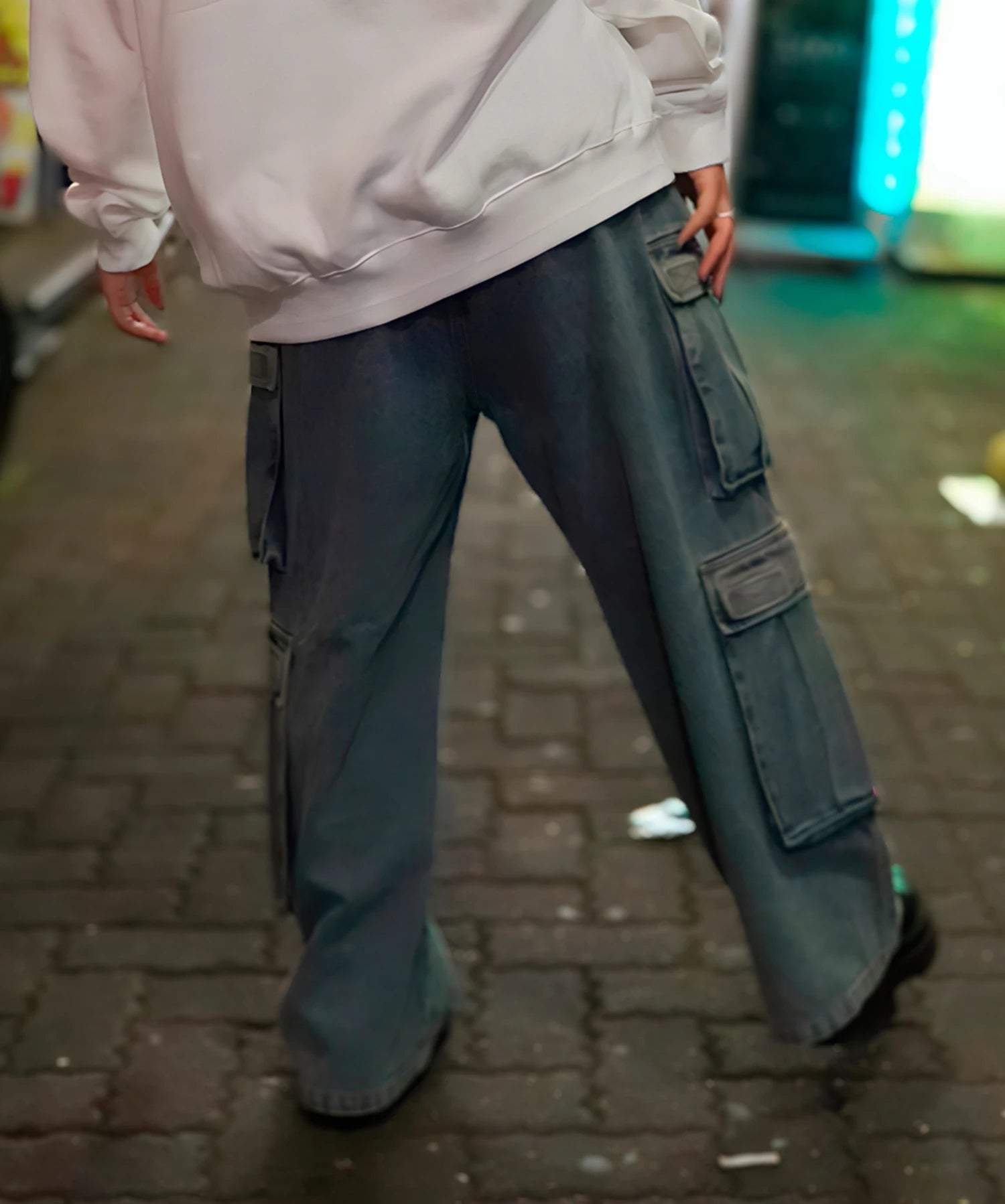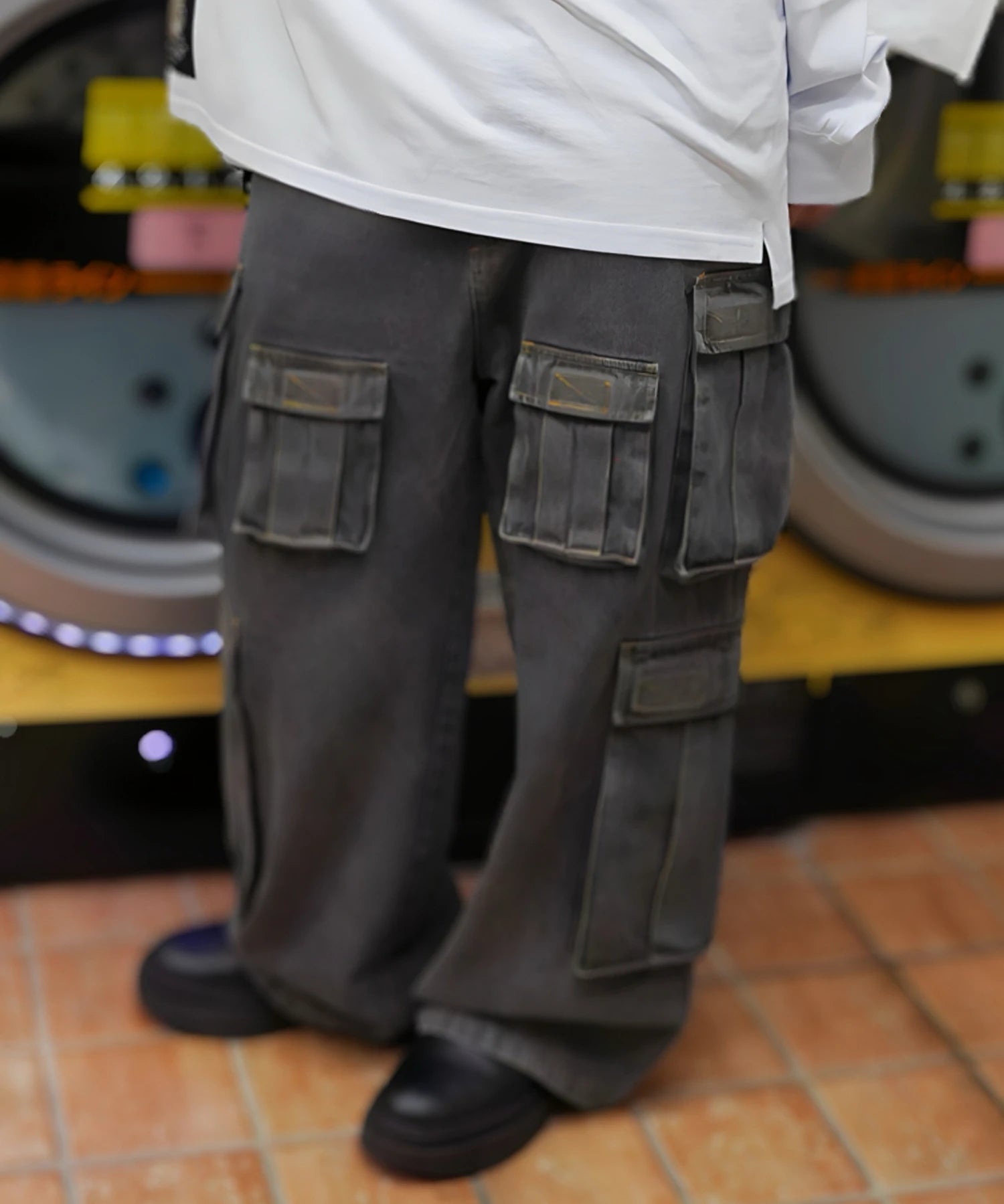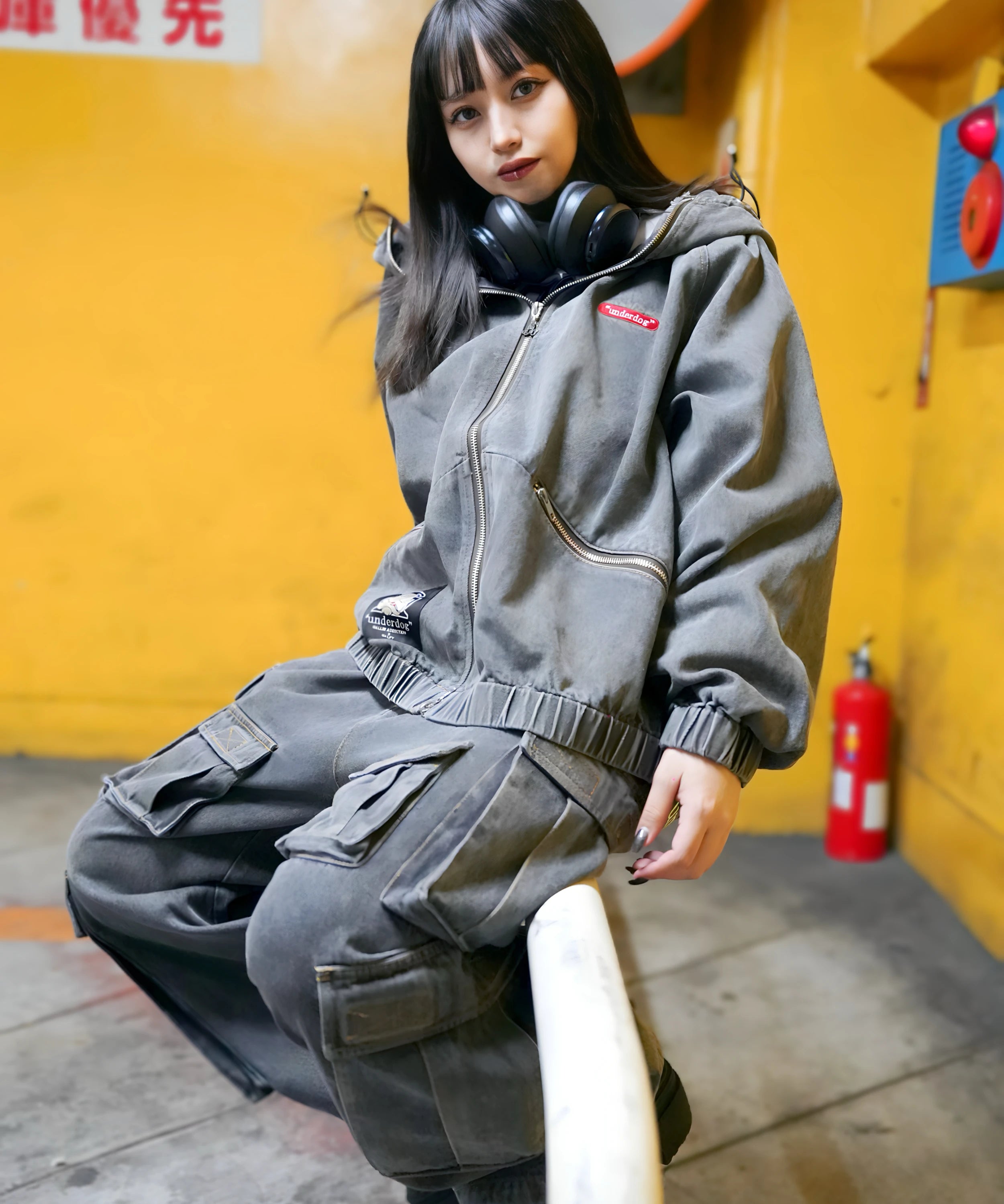 ストリートと機能性を融合させた、GALFY×GALLIS ADDICTIONの別注デニムカーゴパンツ。複数のポケットを備えた実用的なディテールと、程よくルーズなシルエットが特徴です。動きやすさとスタイルを両立し、日常使いからアクティブなシーンまで幅広く対応。単品でもコーディネートの主役として活躍しますが、同シリーズのフードジャケットとセットアップで着用することで、ブランドの世界観をより深く体現できます。