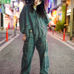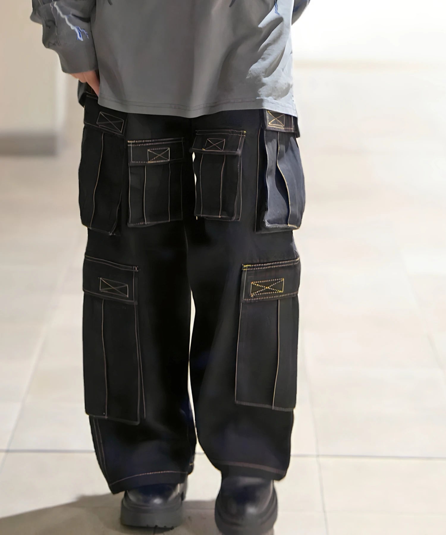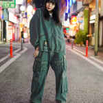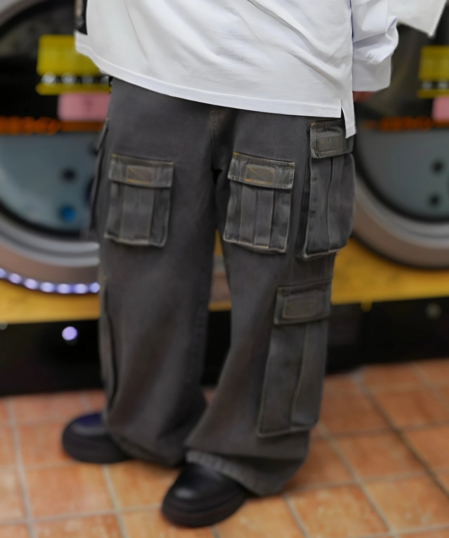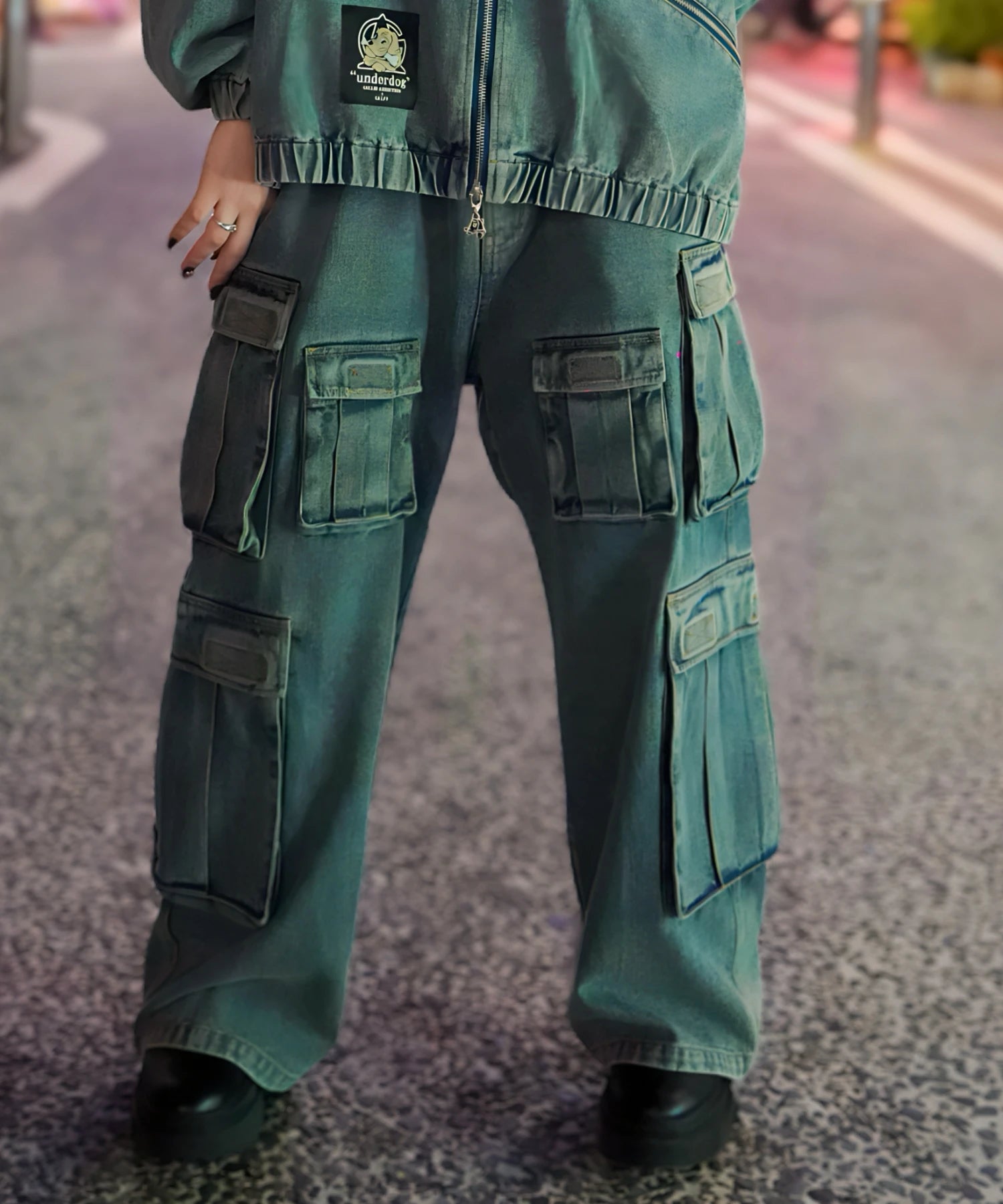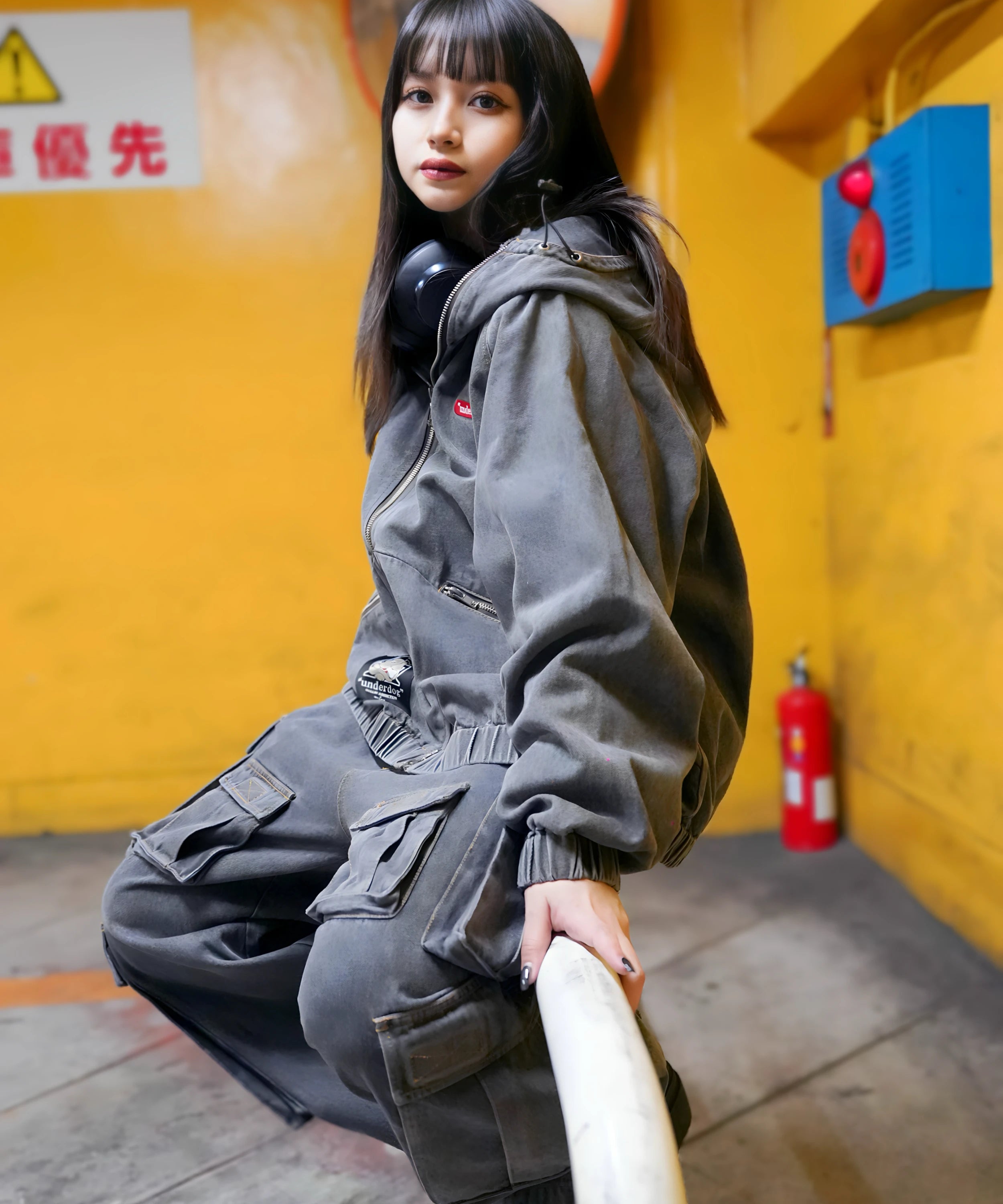 ストリートと機能性を融合させた、GALFY×GALLIS ADDICTIONの別注デニムカーゴパンツ。複数のポケットを備えた実用的なディテールと、程よくルーズなシルエットが特徴です。動きやすさとスタイルを両立し、日常使いからアクティブなシーンまで幅広く対応。単品でもコーディネートの主役として活躍しますが、同シリーズのフードジャケットとセットアップで着用することで、ブランドの世界観をより深く体現できます。