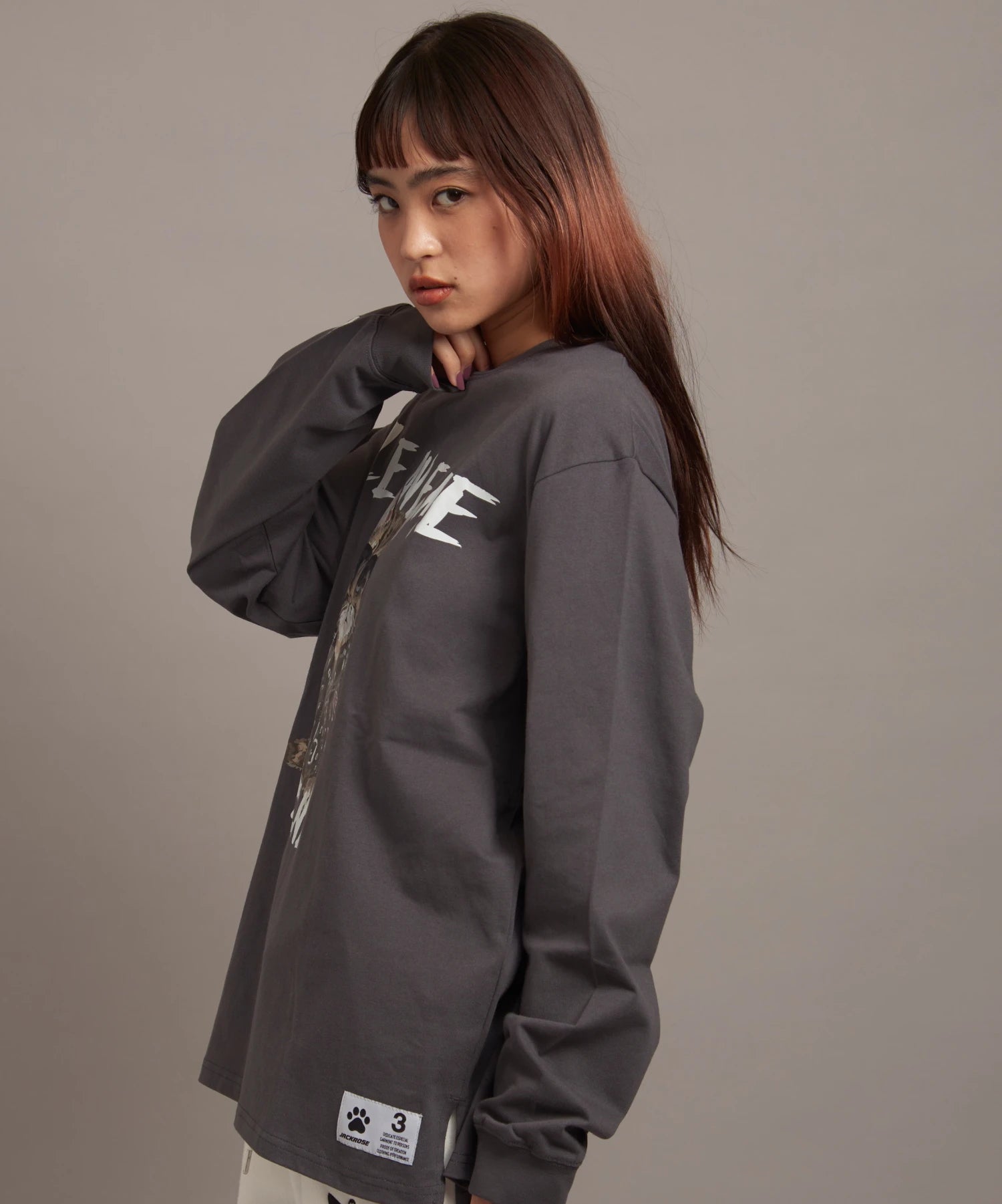 半袖で人気だったサングラスDOG柄に加え、JACKROSEらしい鋲付きのライダースジャケットを着たサングラスCAT柄が加わり、ロンTとしてラインナップしました。デニムと併せてシティカジュアルに着こなしてみたり、カーゴパンツと合わせてストリートスタイル風にしたりと、幅広い活躍ができユニセックスでおすすめです。
