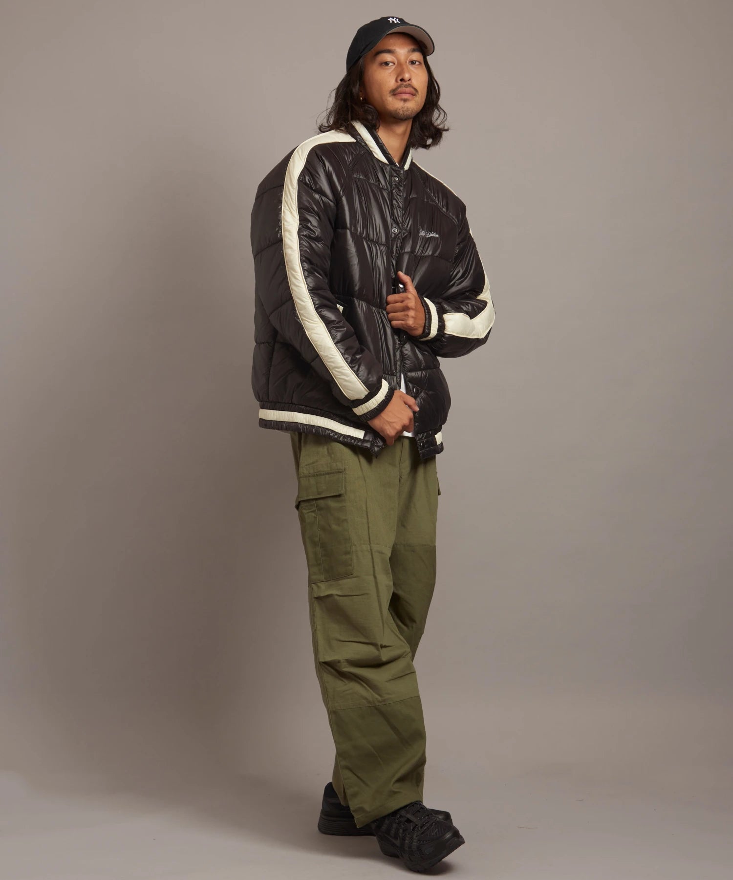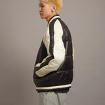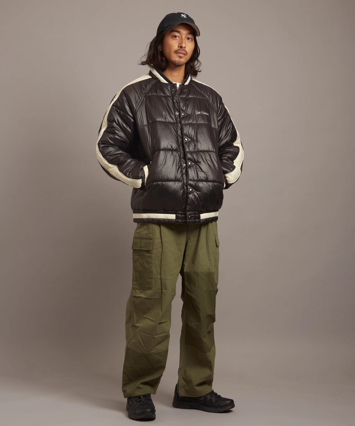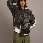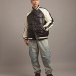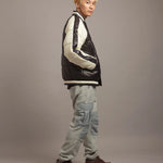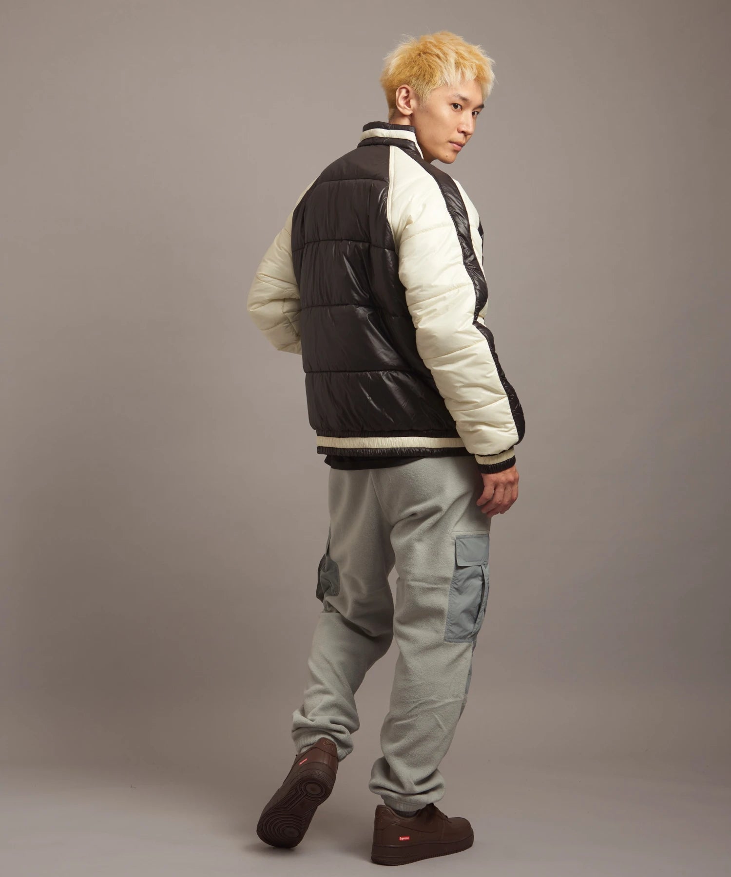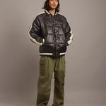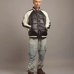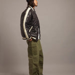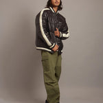JE-ビンテージPU 衿ファー脱着フライトブルゾン