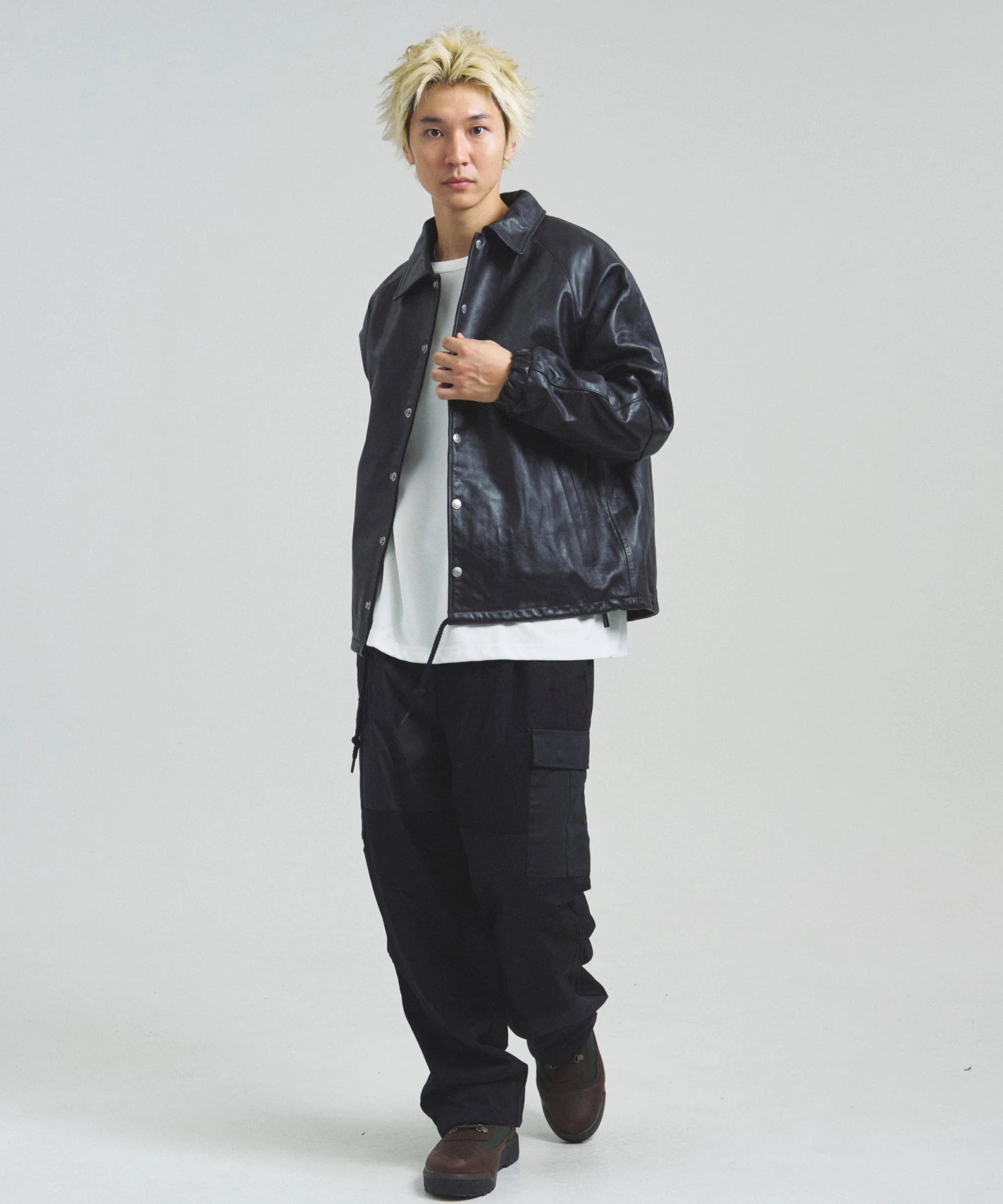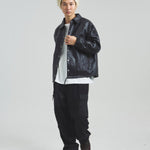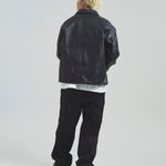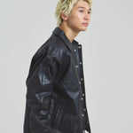 クローム鞣しのカウレザーを採用し、しなやかさと耐久性を兼ね備えた一着に仕上げました。 程よくゆったりとしたサイジングで、ラフに羽織れる快適な着心地。 カジュアルからモードスタイルまで幅広いコーディネートに対応し、着るだけで存在感を放つアイテムです。 レザーならではの経年変化も楽しめるため、長く愛用するほどに味わいが増し、自分だけの一着へと育っていきます。