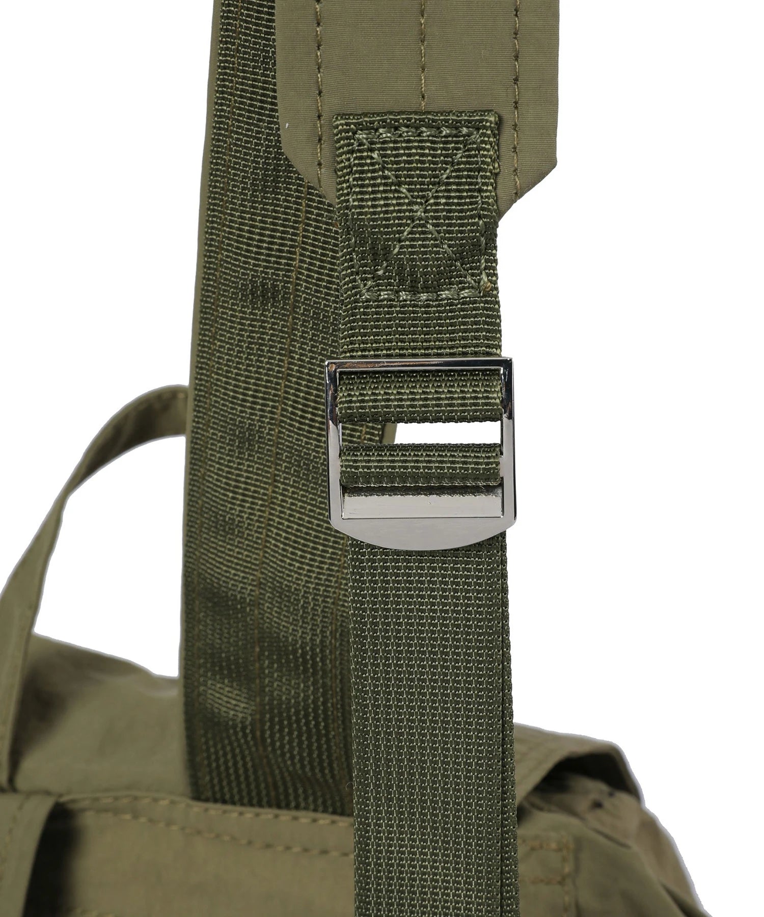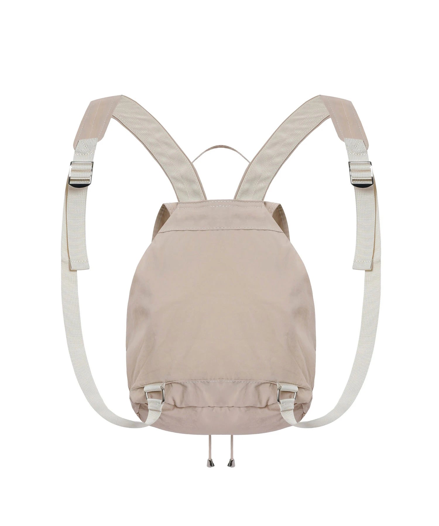 フラップ部分にはブランドオリジナルのロゴ刺繍を施したデザイン。ドローストリングのギャザーがポイントのナップサック。開口部はドローストリング仕様で大きく開き、物を出し入れしやすい。ショルダー部分はクッションになっているので、肩が痛くなりにくいです。A4サイズ収納可能で大きめなサイズ感なので、通勤・通学にはもちろん、お買い物や旅行にぴったりなバッグ。フロントにはオープンポケット、サイドにジッパーポケットと3つ付いているので小物の小分けに便利です◎内側にはクッション入りのオープンポケット付きなので、ノートPCを入れることが出来ます。底にはアジャスターが付いており、アウターやブランケット、ヨガマットなど様々なアイテムの持ち運びに便利です。性別や年齢を問わずにメンズ・レディース共にユニセックスで着用いただけるアイテム。