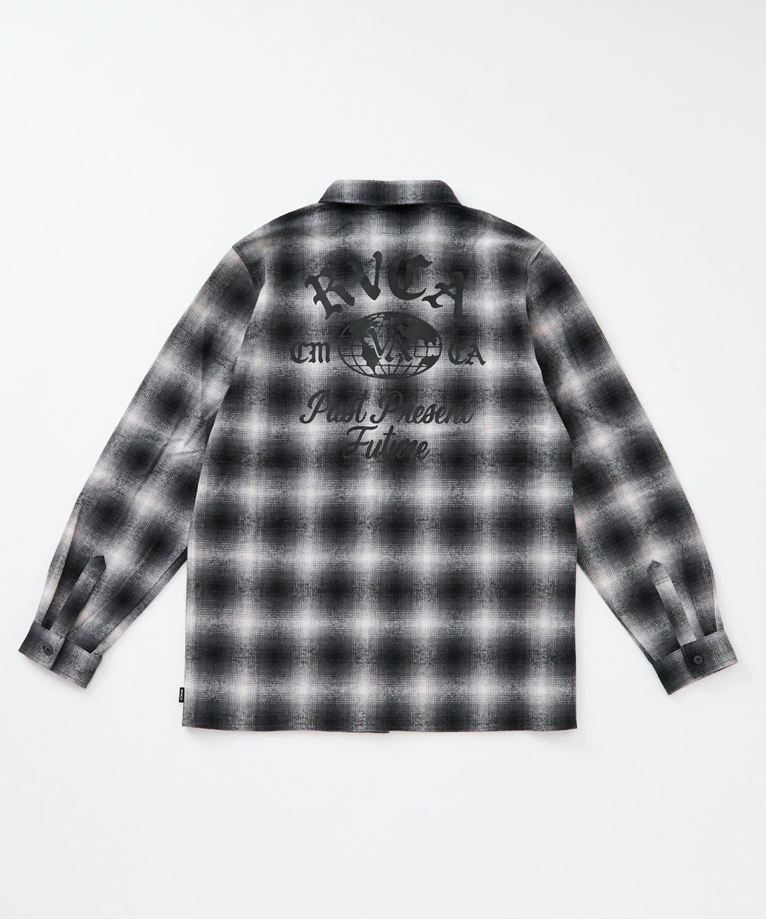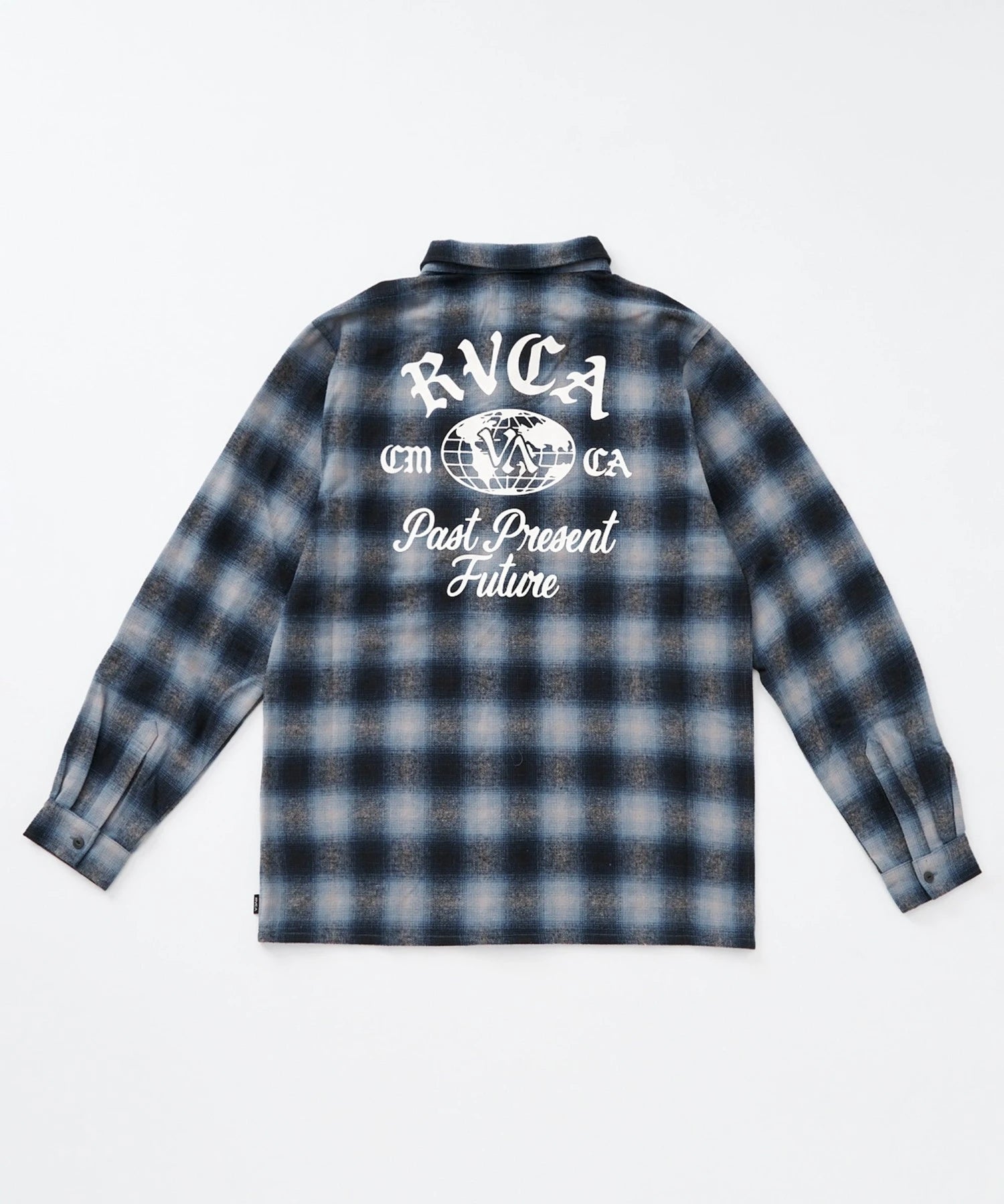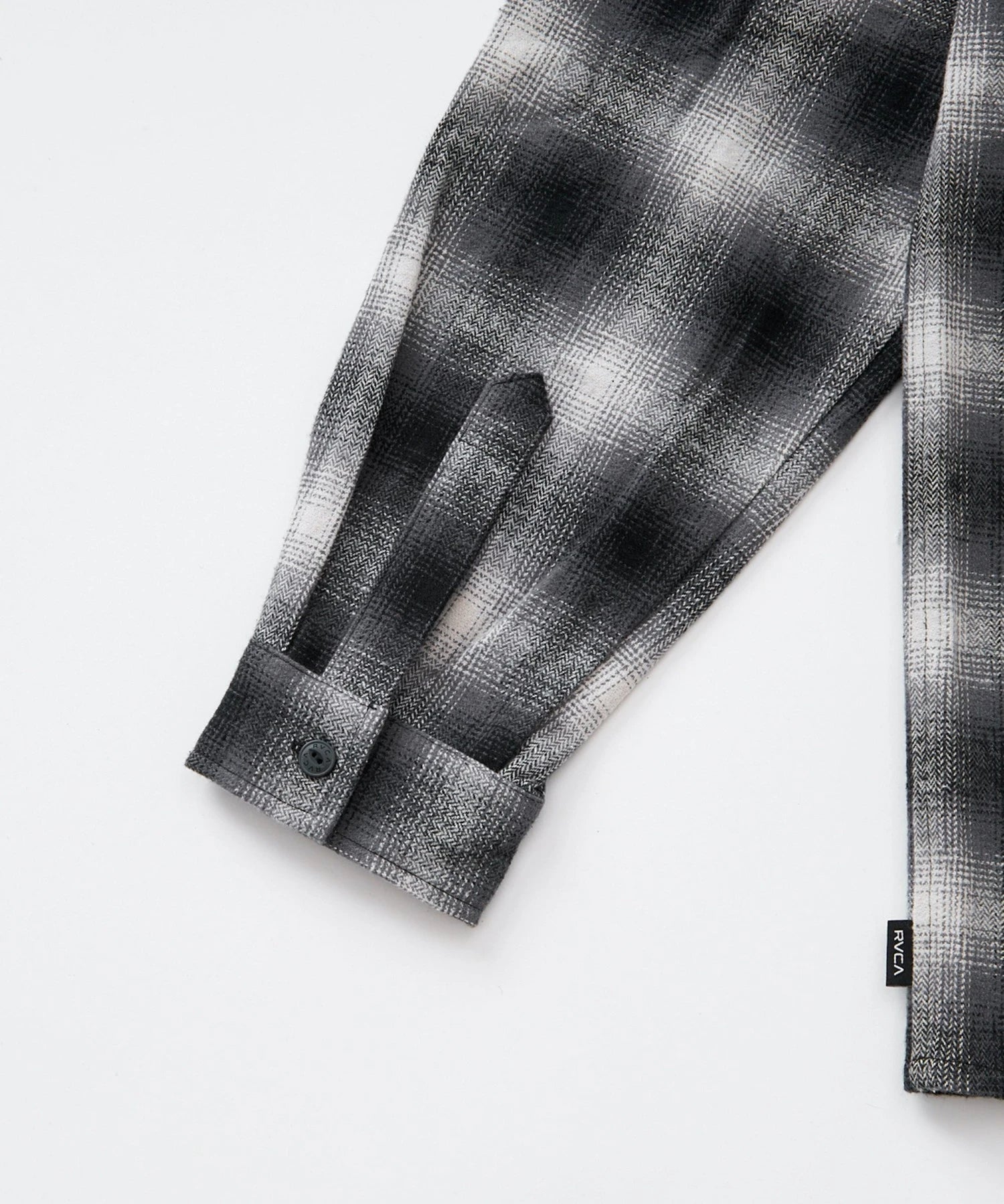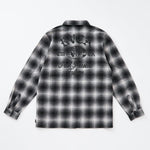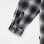 ポリエステルをベースに、ウールやレーヨンをブレンドしたチェック柄フランネル素材のシャツ。クラシックなチェックに、オールドイングリッシュ調のグラフィックを組み合わせた、ヴィンテージ感を醸し出すキャッチーなデザインが魅力。ほどよい厚みで、羽織りとしてもインナーとしても活躍する一枚です。