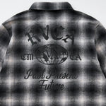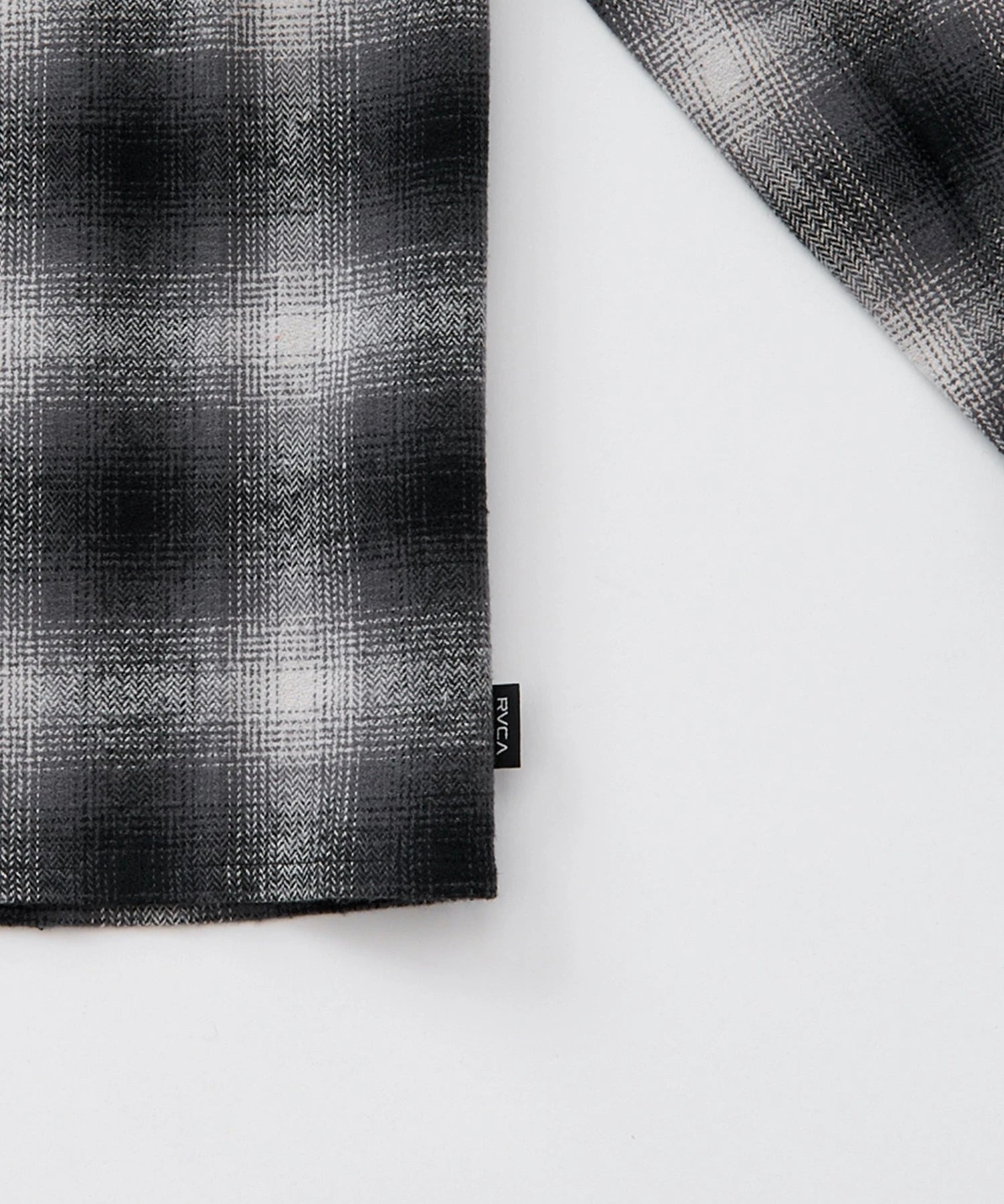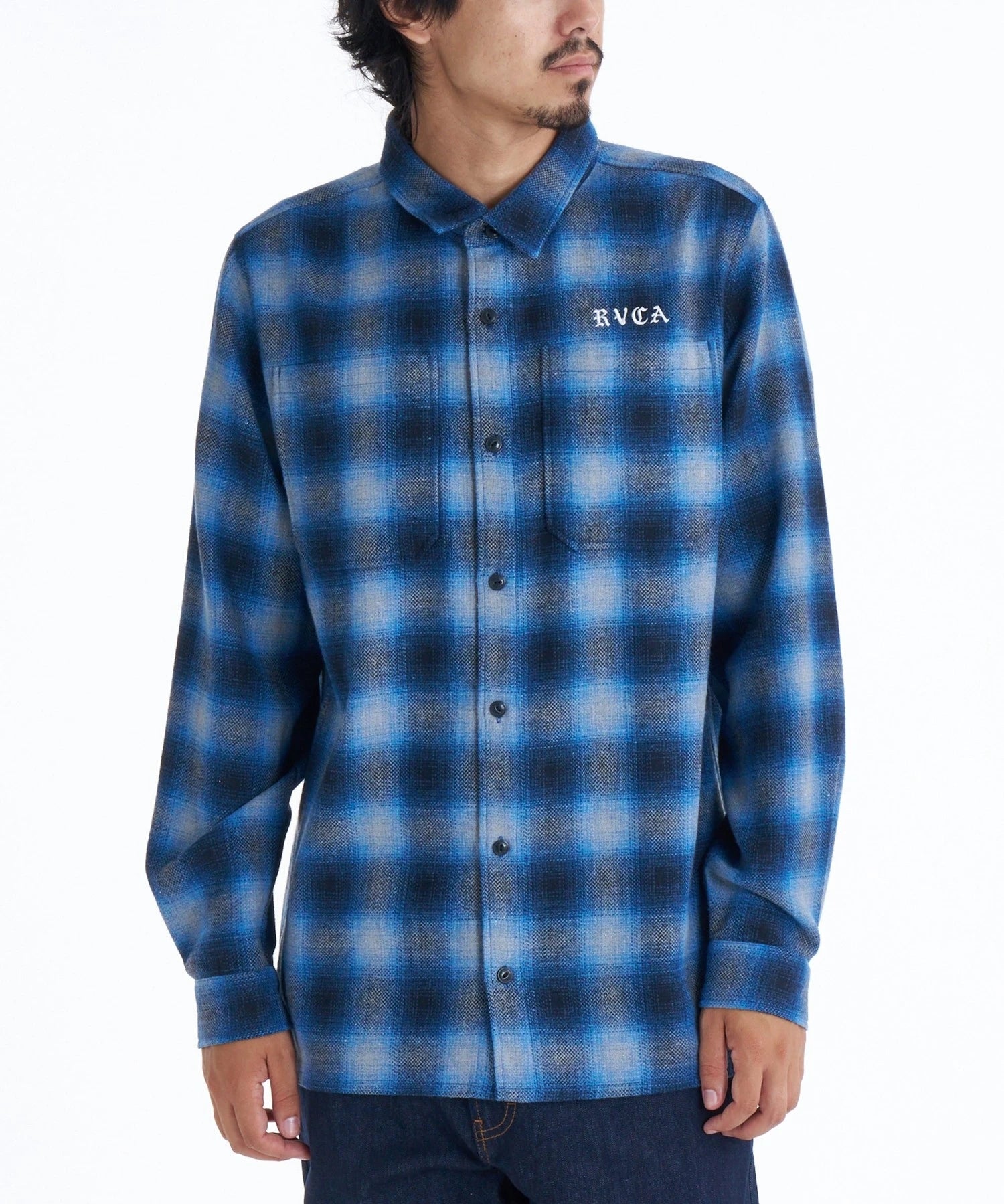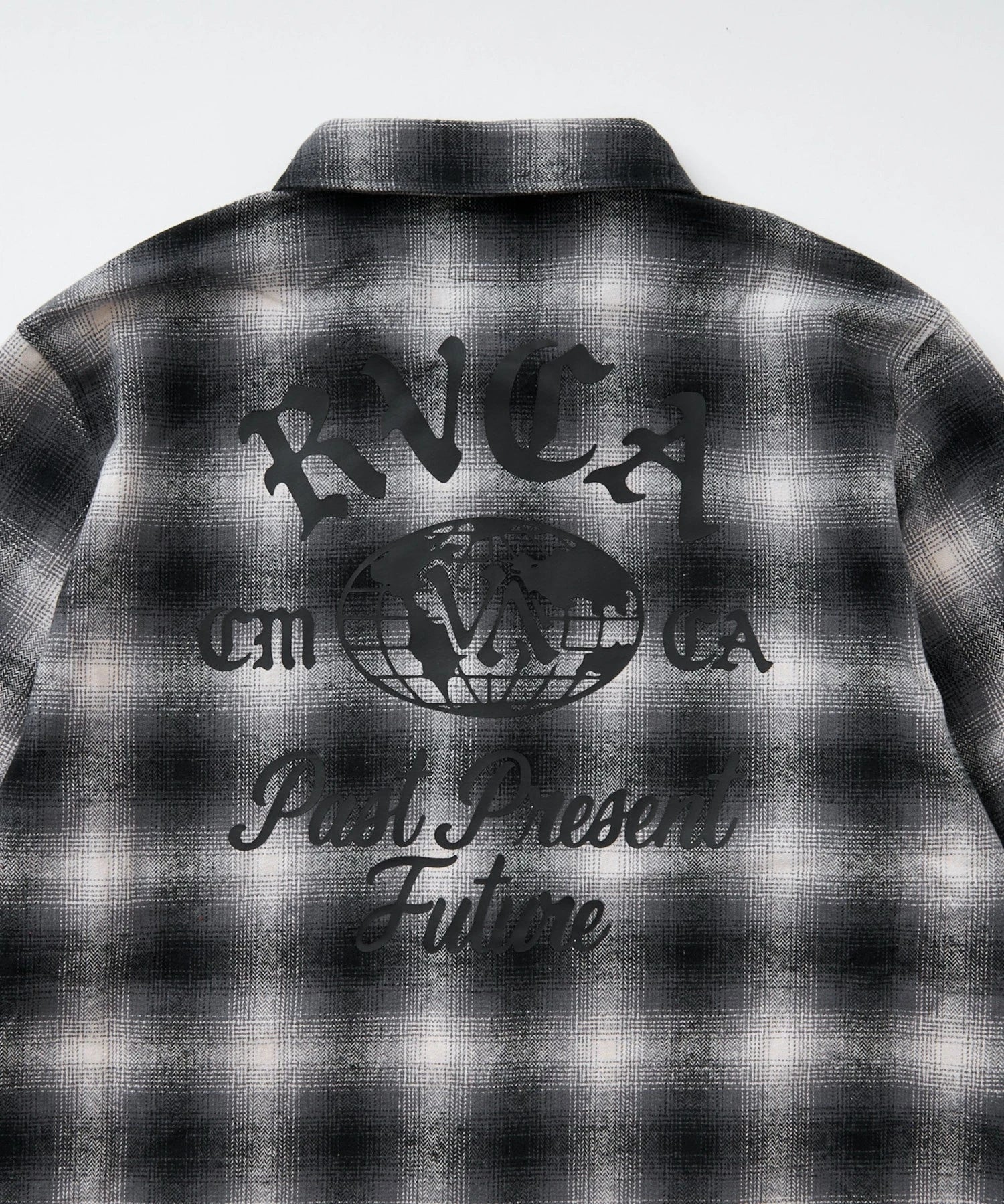 ポリエステルをベースに、ウールやレーヨンをブレンドしたチェック柄フランネル素材のシャツ。クラシックなチェックに、オールドイングリッシュ調のグラフィックを組み合わせた、ヴィンテージ感を醸し出すキャッチーなデザインが魅力。ほどよい厚みで、羽織りとしてもインナーとしても活躍する一枚です。