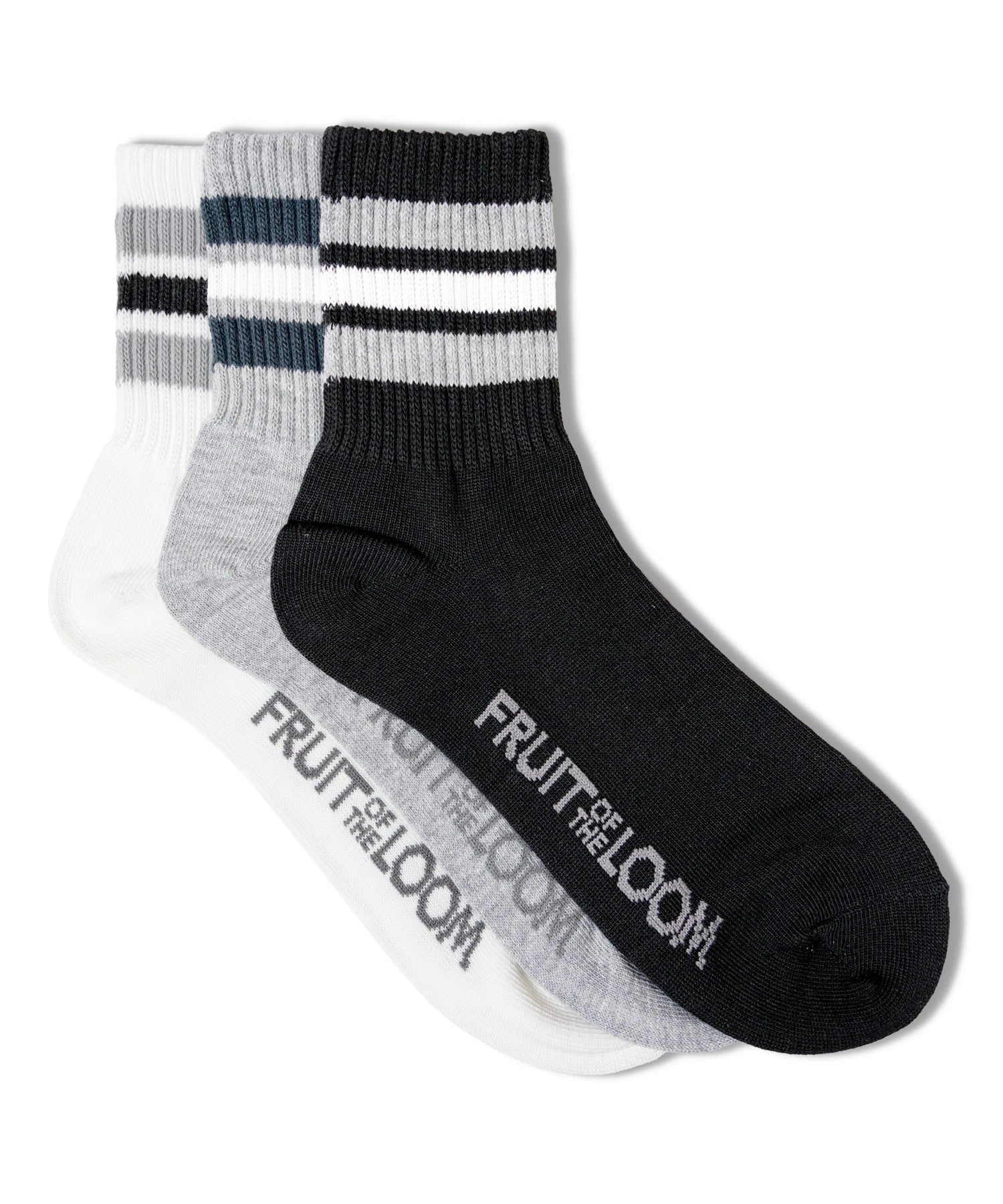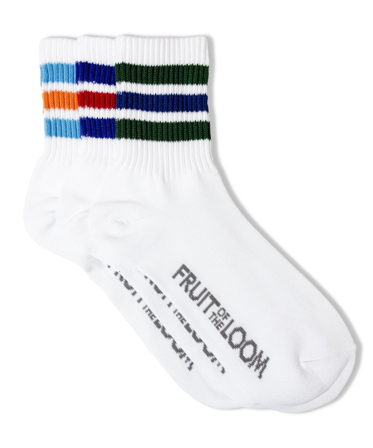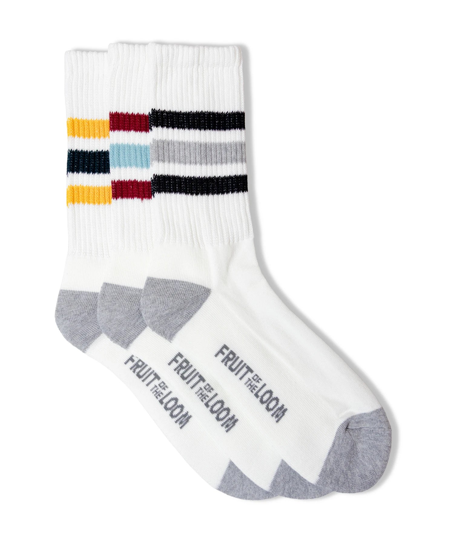 FRUIT OF THE LOOM ボーダー刺繍 クルーソックス 3足パック