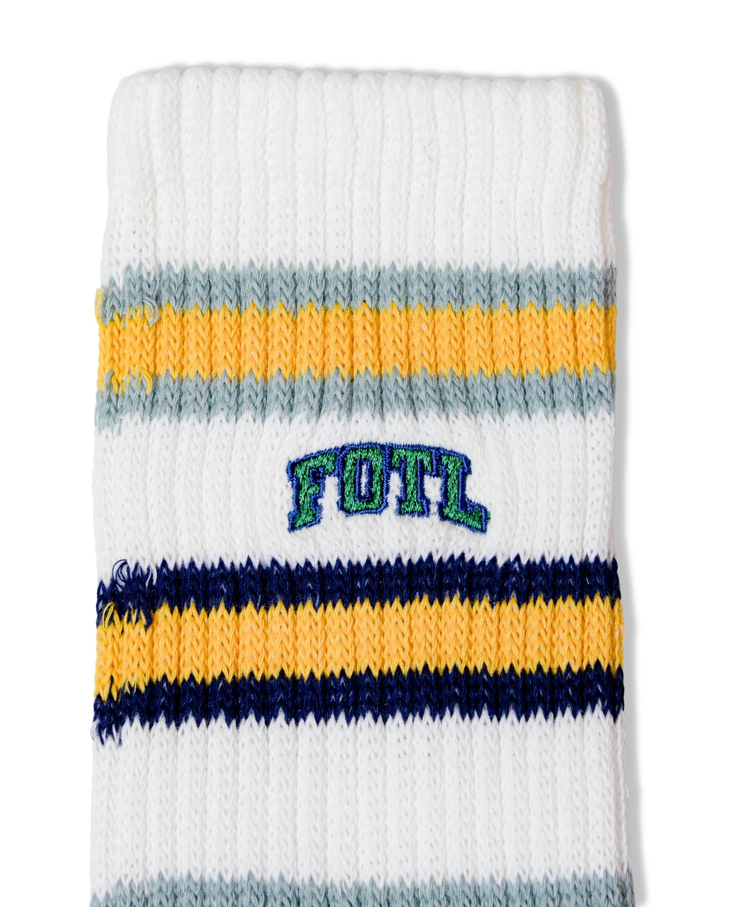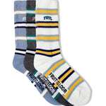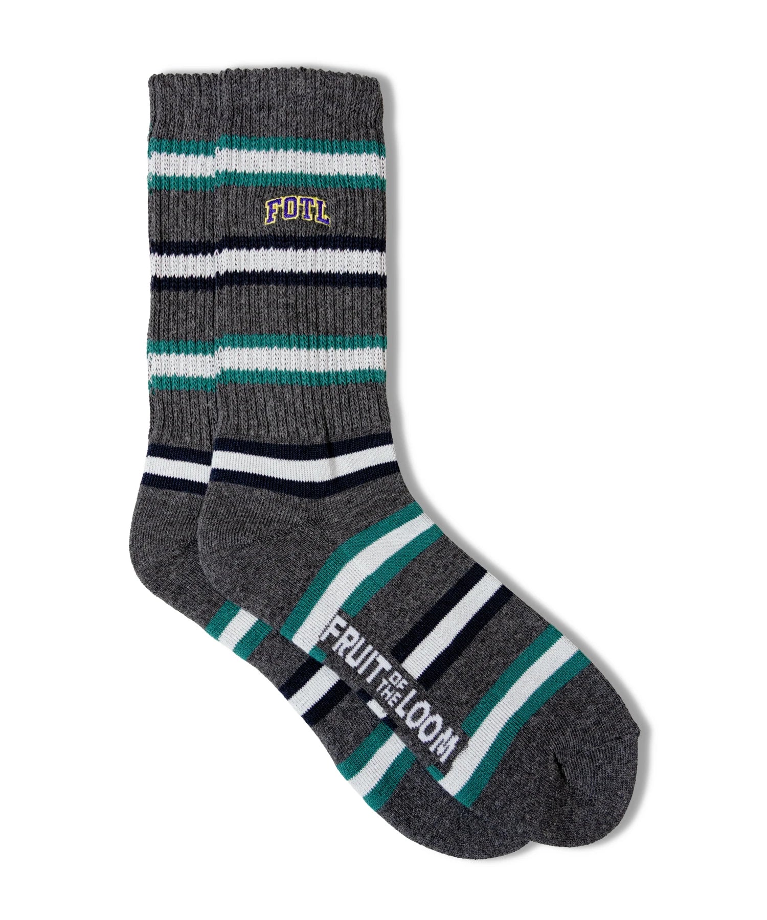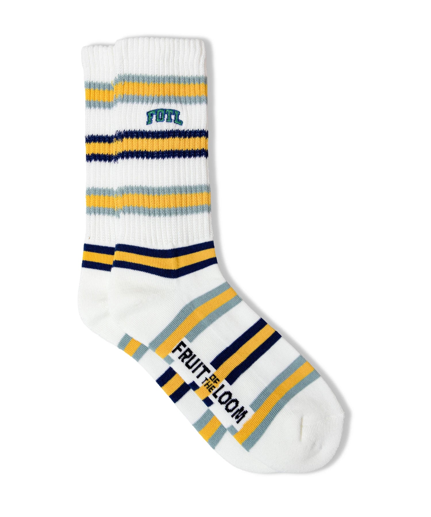 FRUIT OF THE LOOMマルチボーダークルー ソックス3足セットの登場。 締め付けを感じないゆったりとした着用感が特徴で、ルーズに履きこなすことができます。クッション性とコンプレッション機能が備わったソックス、刺繡ロゴもアクセントに。肌触りのよいソフトタッチな素材感で、伸縮性も良く足に気持ちよくフィット。