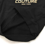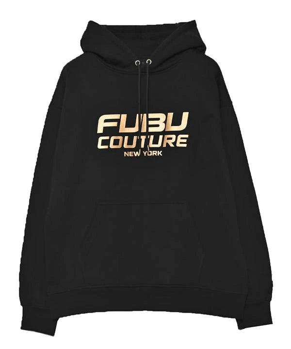 身幅と肩幅にゆとりを持たせたルーズなバランスで、リラックスした着こなしを楽しめます。フロントには「FUBU COUTURE NEW YORK」のロゴを大胆に配置し、ゴールドの光沢プリントがカジュアルな中にラグジュアリーなアクセントをプラスします。