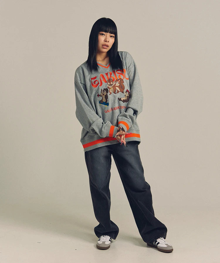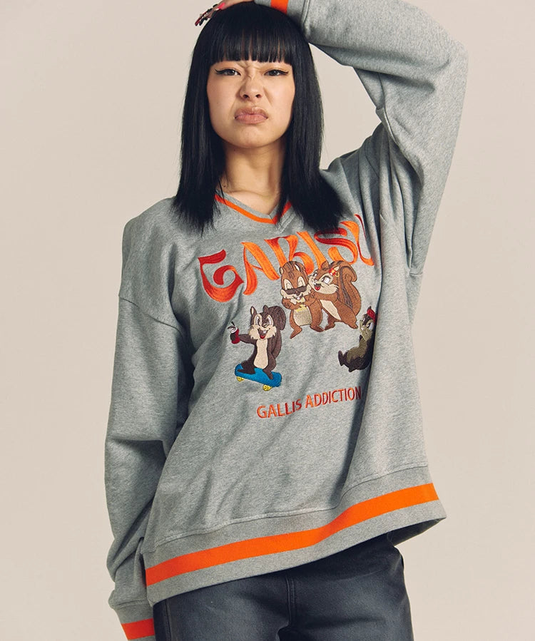 GALLIS ADDICTIONオリジナルキャラクターのリスと刺繍ロゴを組み合わせデザインしたユーモア溢れる1枚。襟元・袖・裾部分にカラーラインを入れアクセントに。すべて刺繍でデザインされ、さりげない高見え感も◎。ビッグシルエットのサイズ感で、トレンドのルーズシルエットのボトムスとも相性がよく、コーデのアクセントアイテムとしてユニセックスでおすすめです。