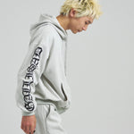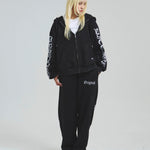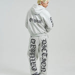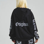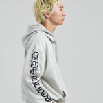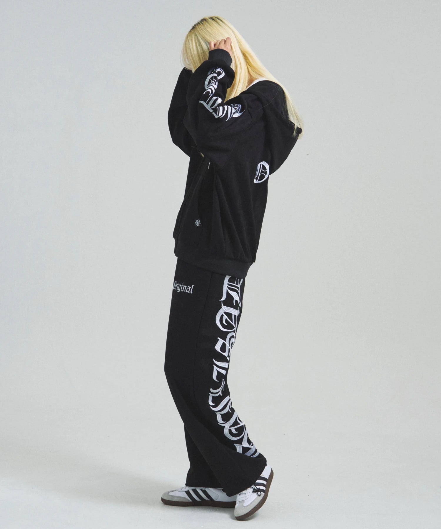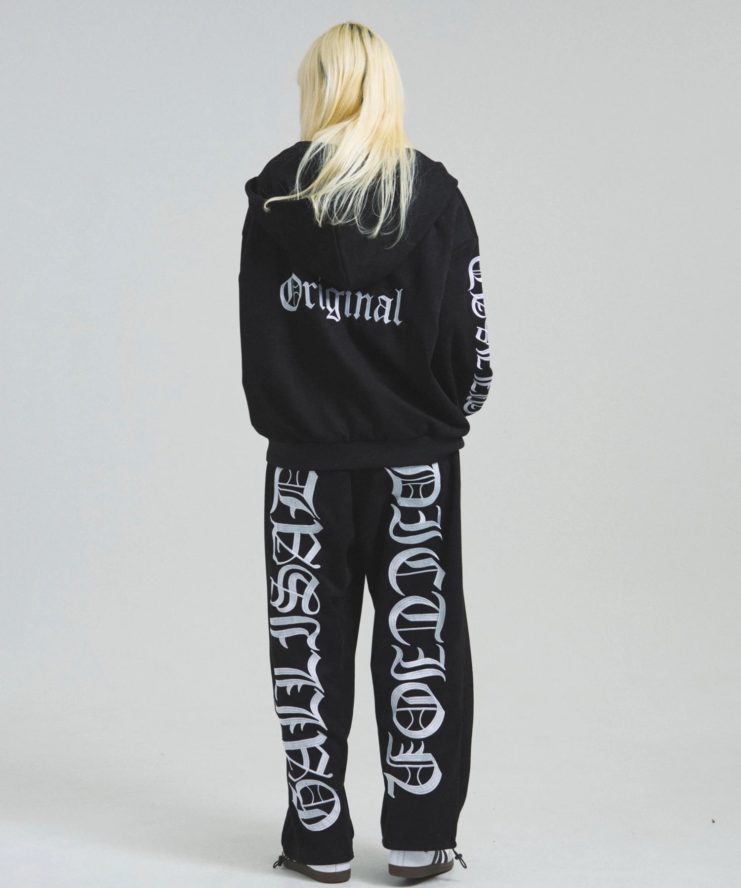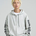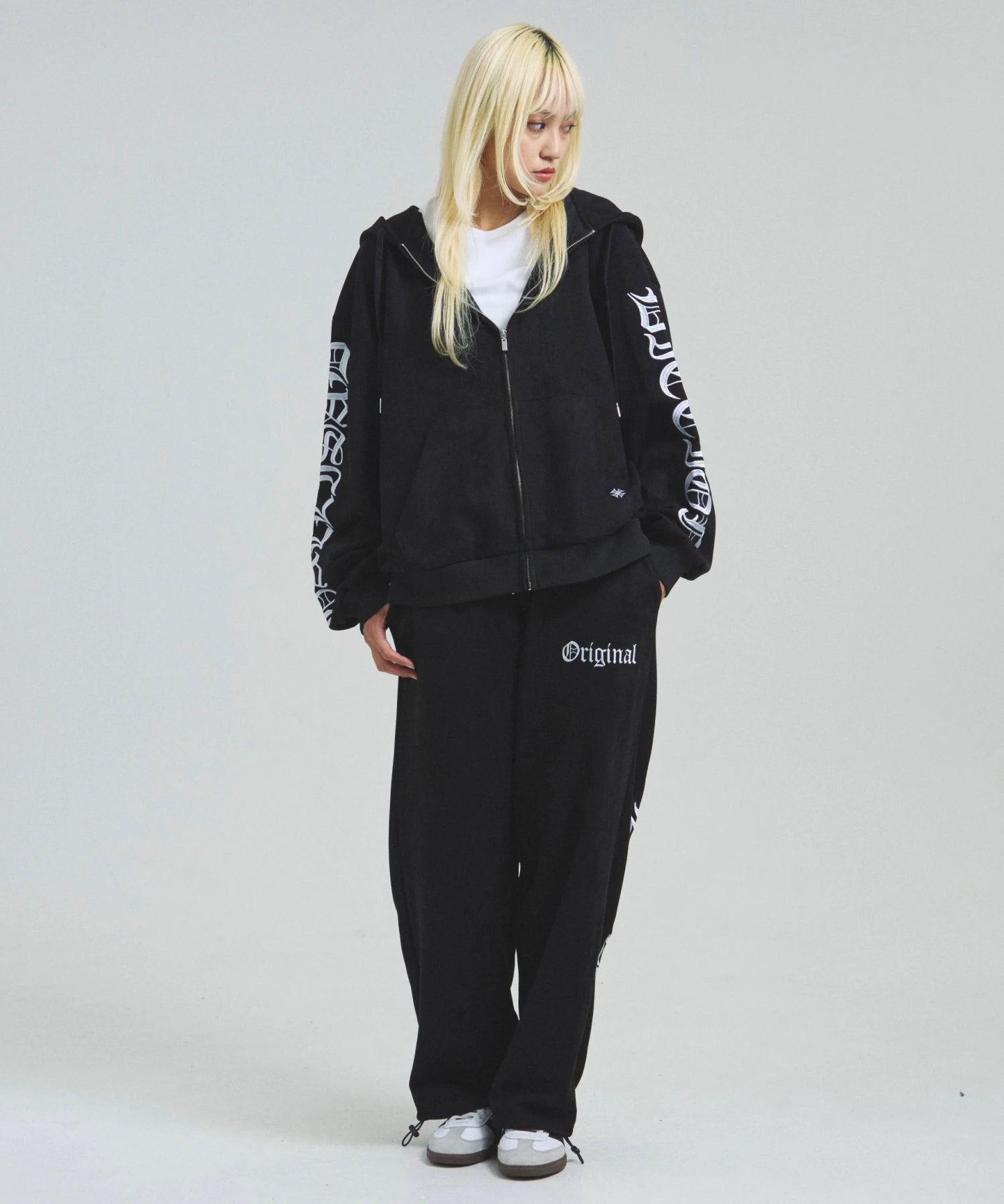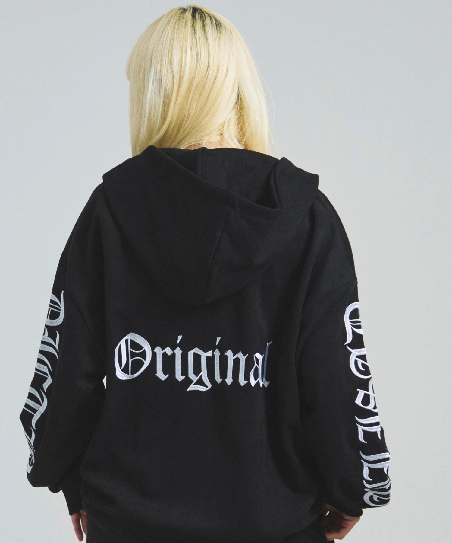 GALLIS ADDICTIONから大胆なOLD ENGLISHロゴ刺繍が存在感を放つジップフーディ。袖から背面にかけて施された迫力ある刺繍デザインが、ストリートスタイルに映える仕上がりです。柔らかく伸縮性のあるスウェードライク素材を使用し、快適な着心地とトレンド感を両立。男女問わずユニセックスで着用可能なリラックスシルエット。