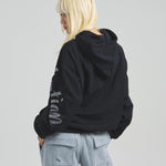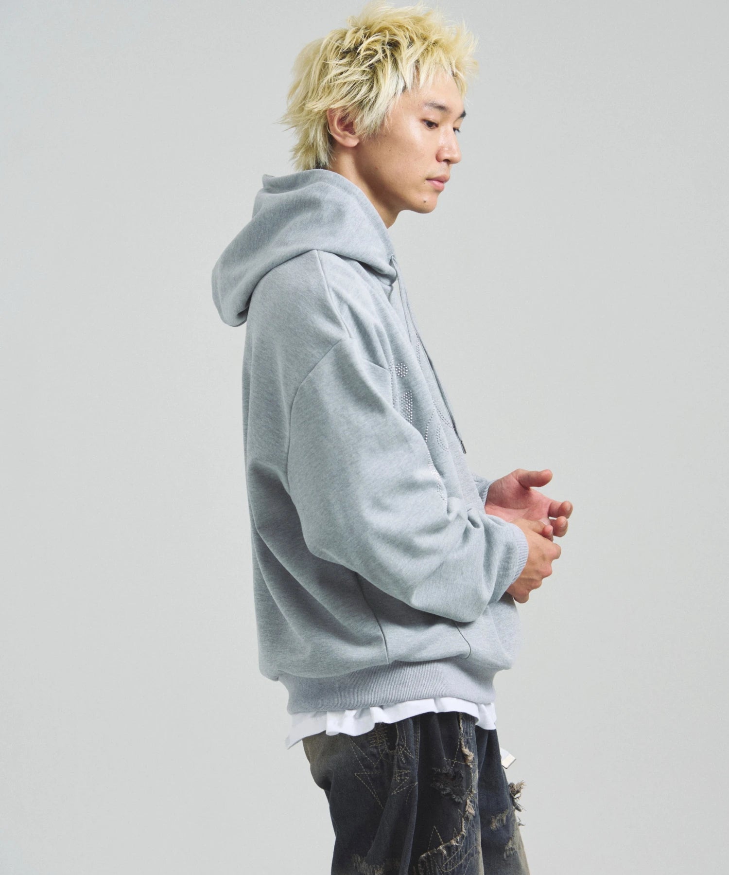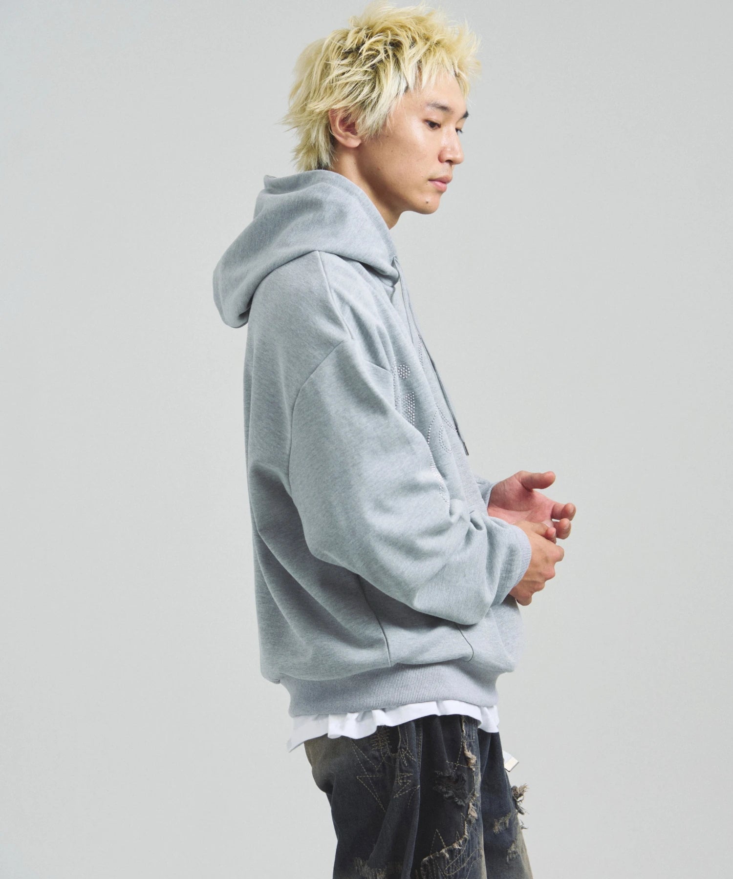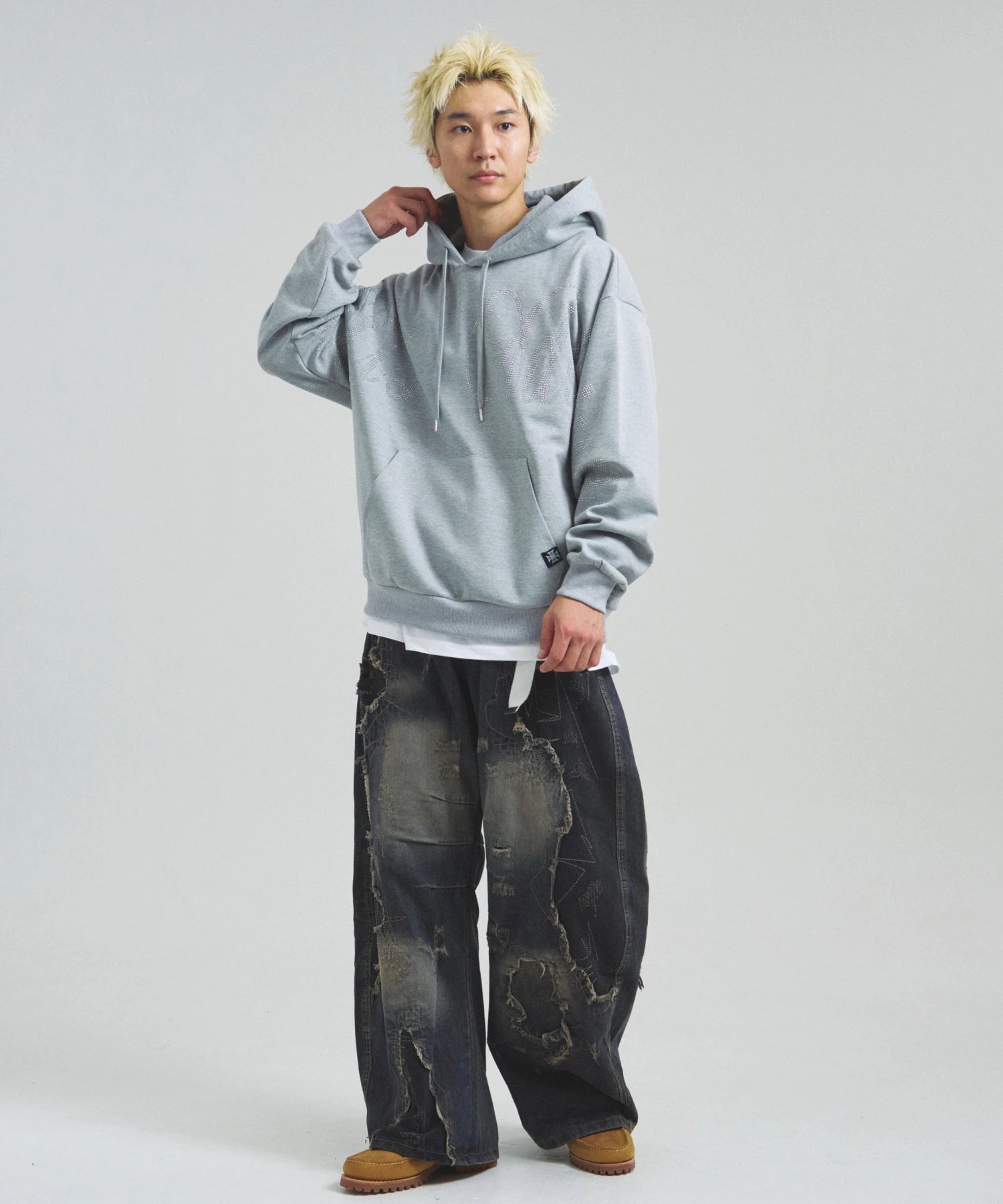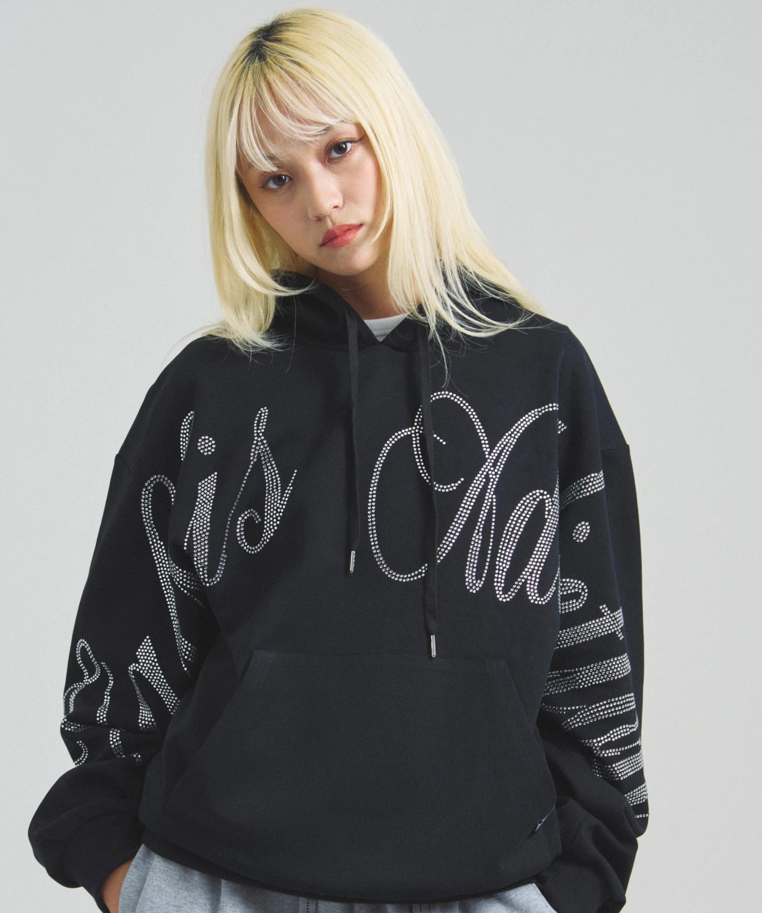 GALLIS ADDICTIONからフロントから袖にかけて大胆にあしらったラインストーンロゴが存在感抜群のフーディー。