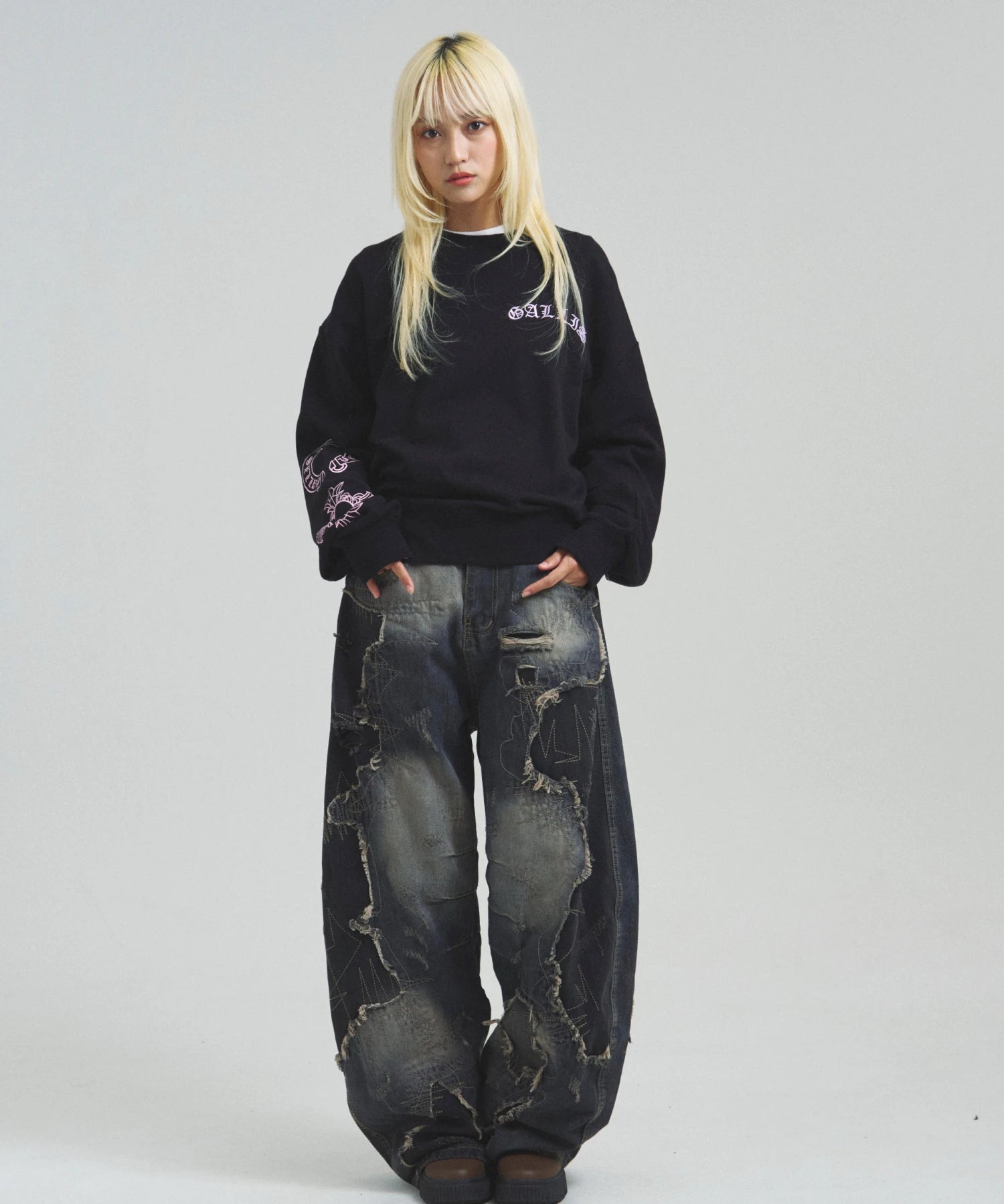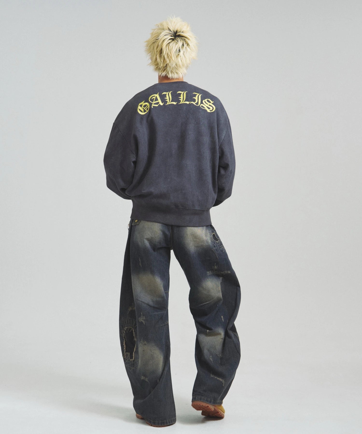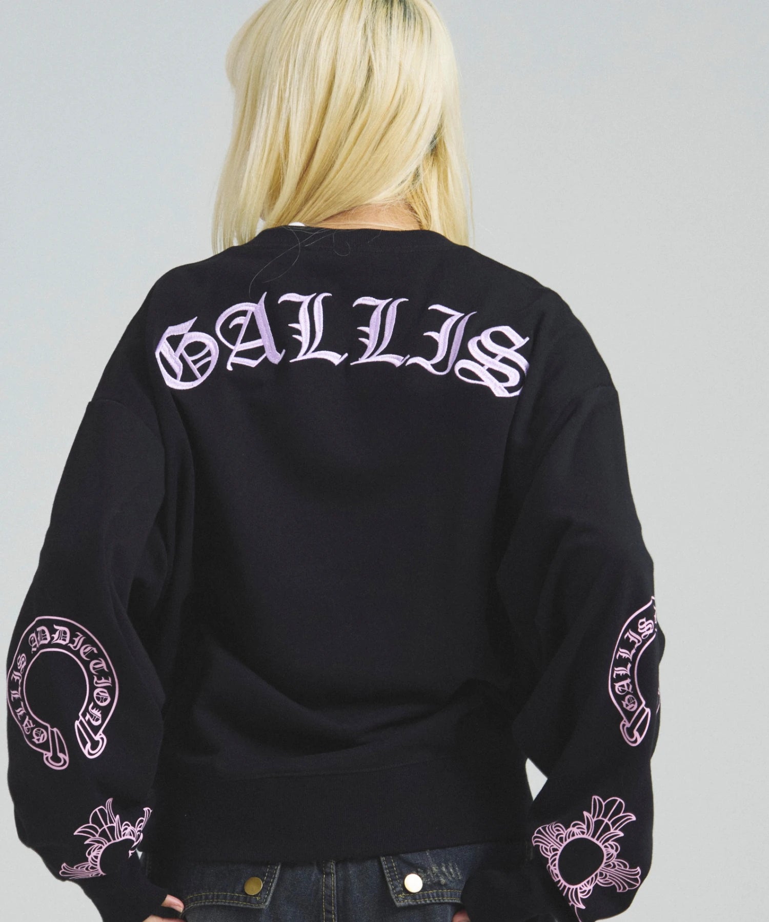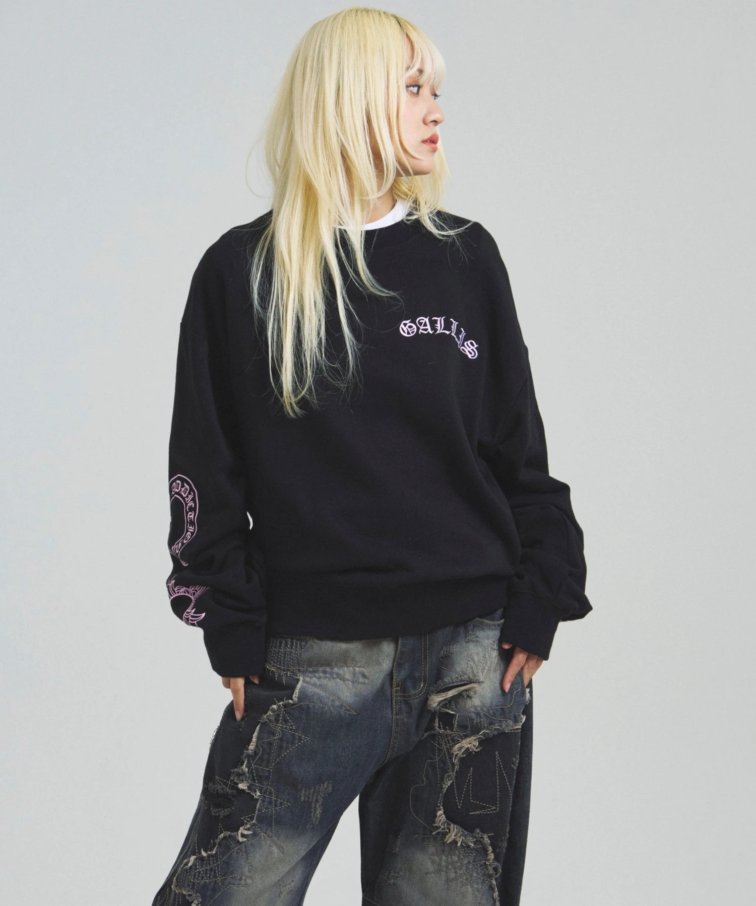 GALLIS ADDICTIONからフロント・バック・スリーブに施されたカラフルな刺繍&プリントが存在感を放つクルーネックスウェット。