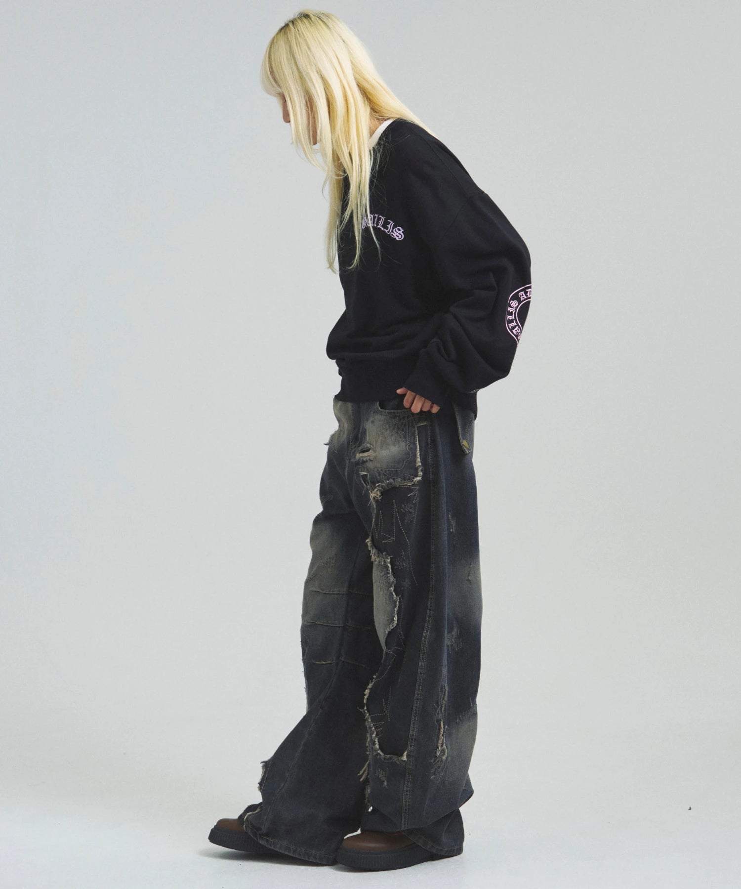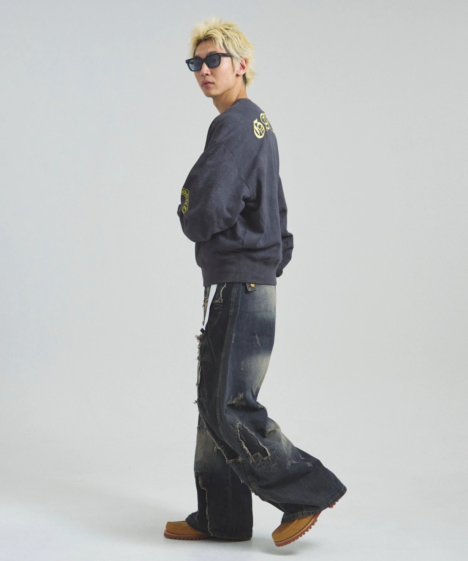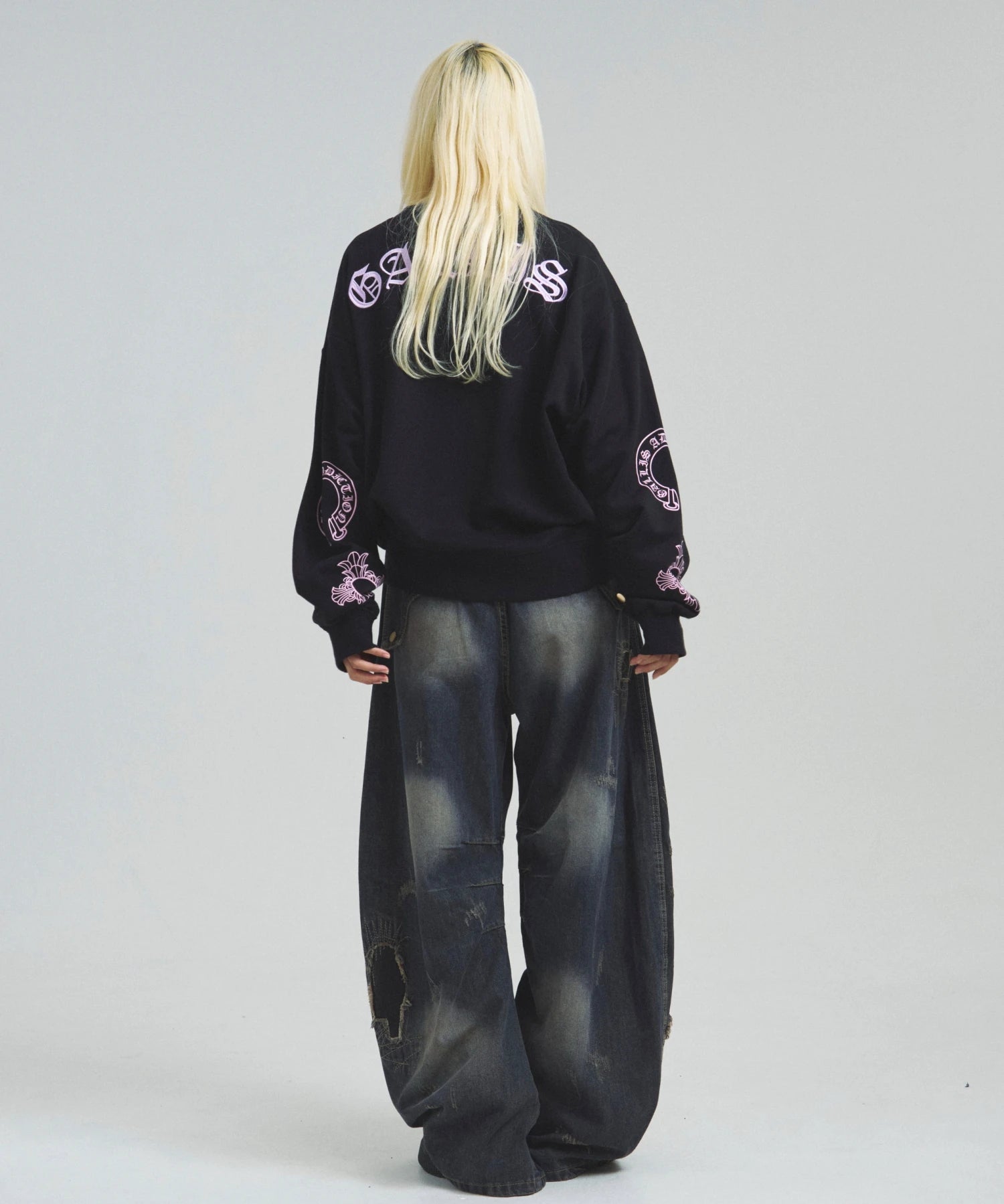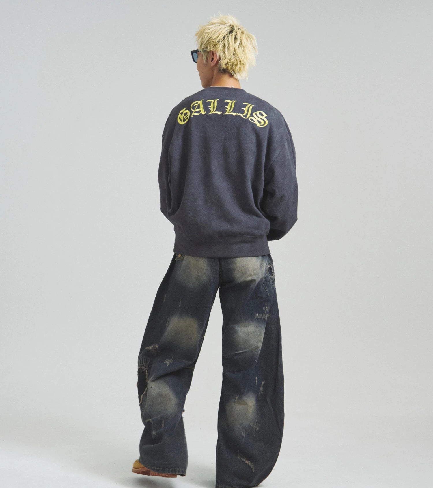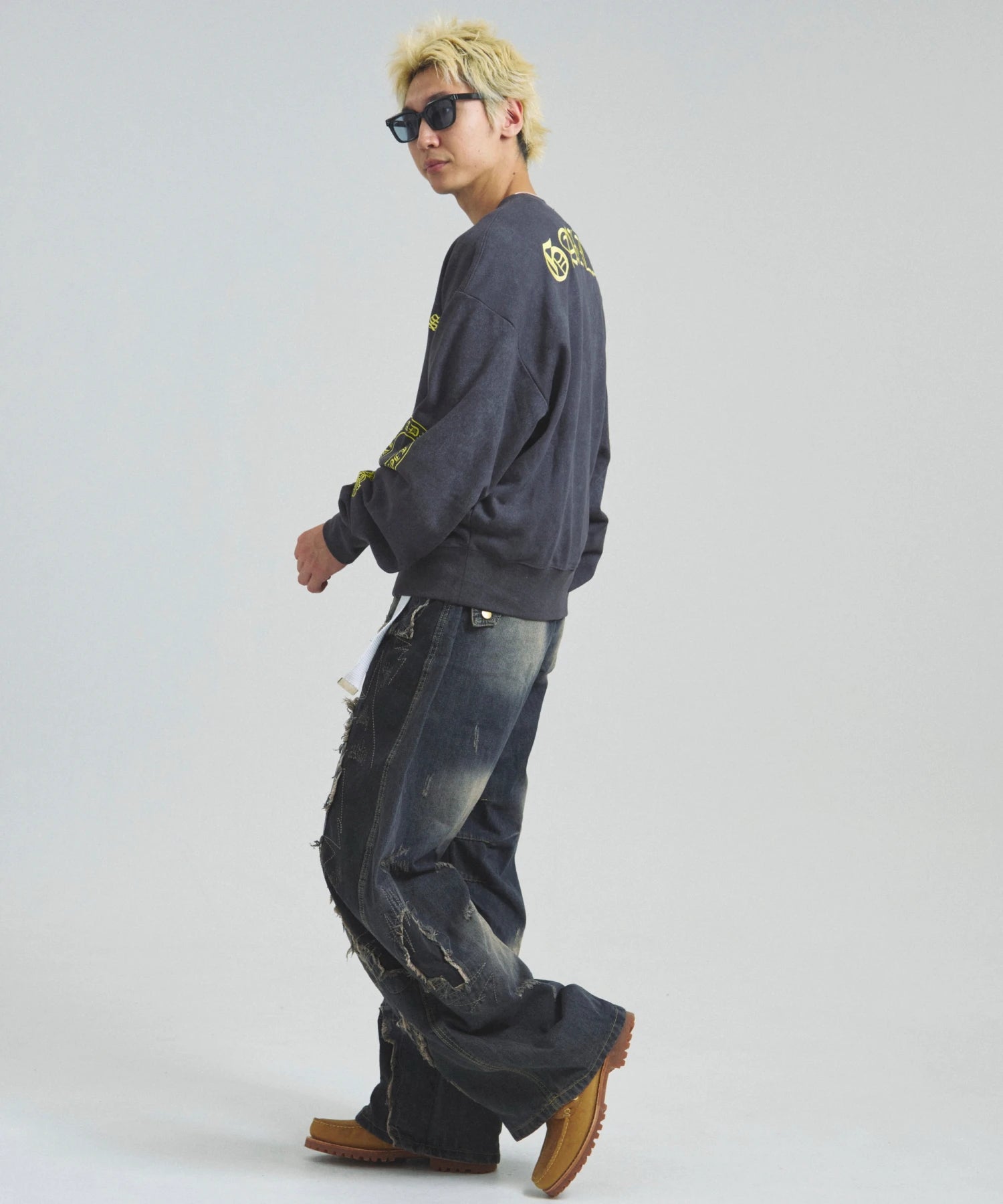 GALLIS ADDICTIONからフロント・バック・スリーブに施されたカラフルな刺繍&プリントが存在感を放つクルーネックスウェット。