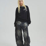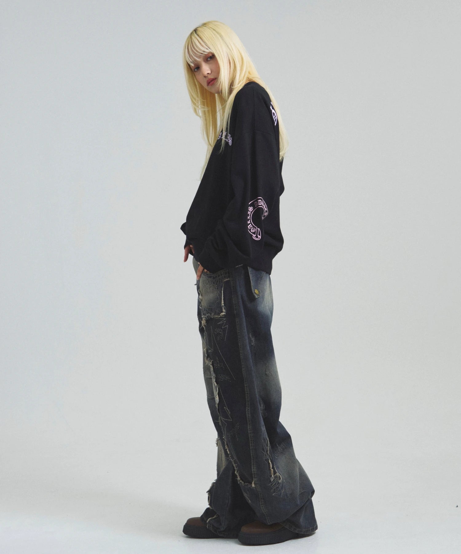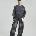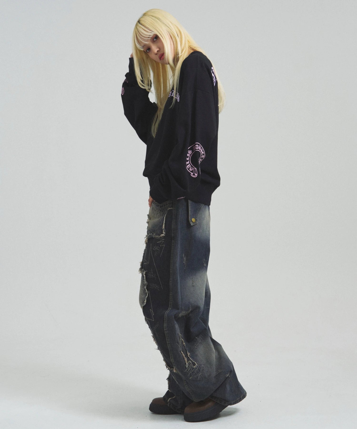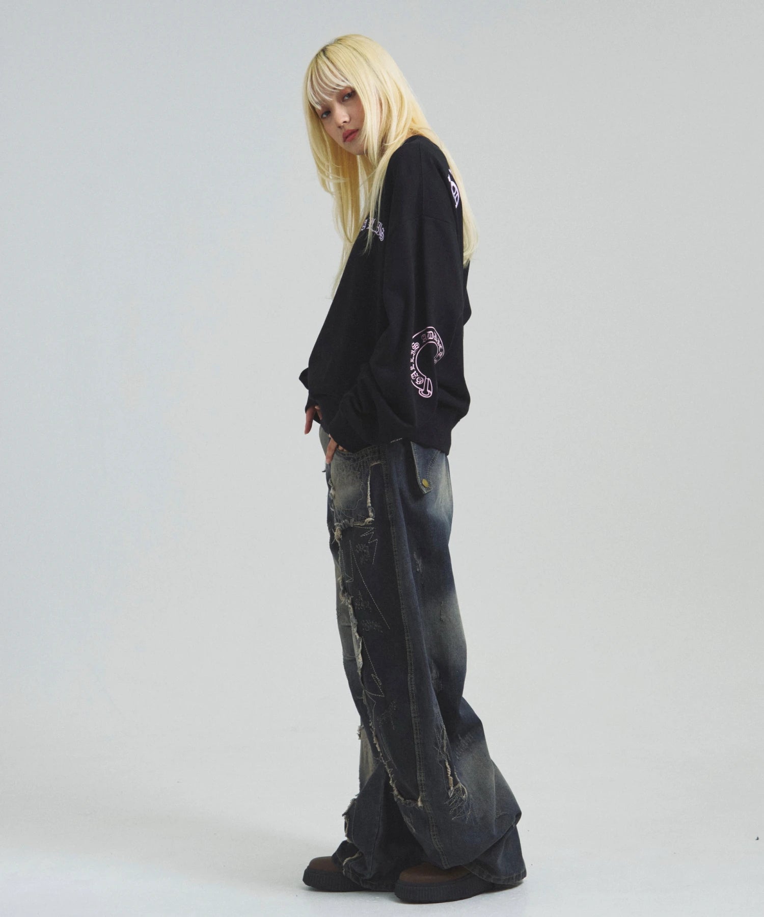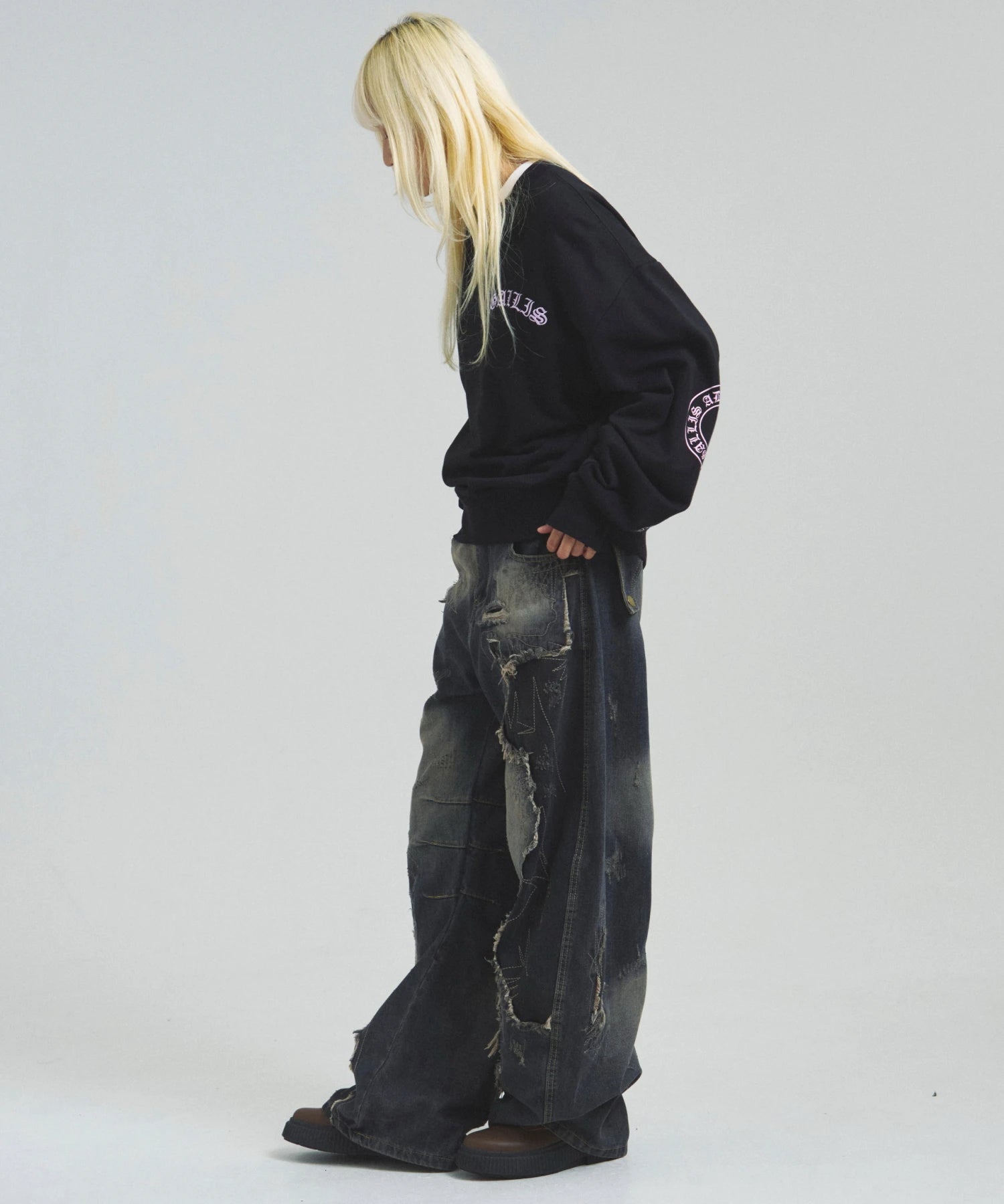 GALLIS ADDICTIONからフロント・バック・スリーブに施されたカラフルな刺繍&プリントが存在感を放つクルーネックスウェット。