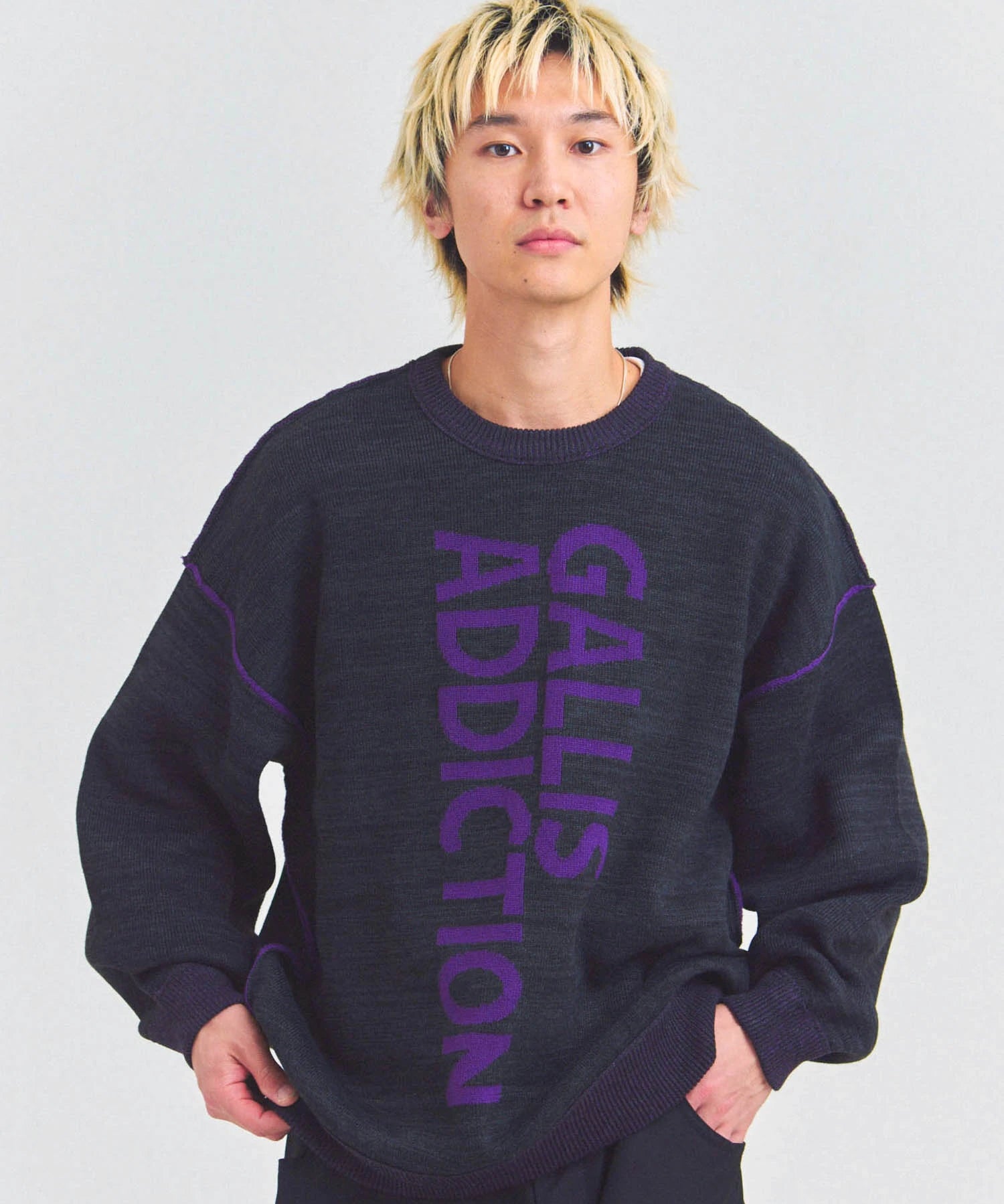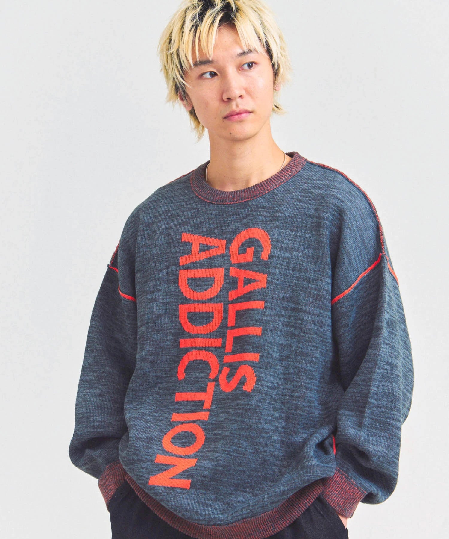 胸元の“GALLIS ADDICTION”のロゴがアクセントのクルーネックニット。シンプルながら存在感があり、スリムパンツやワイドデニムとの相性も抜群。ストリートスタイルからカジュアルコーデまで幅広く活用でき、ジャケットやブルゾンのインナーとしてもおすすめ。メンズ・レディースともにユニセックスで着こなせる一枚です。
