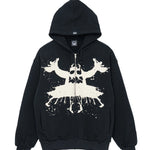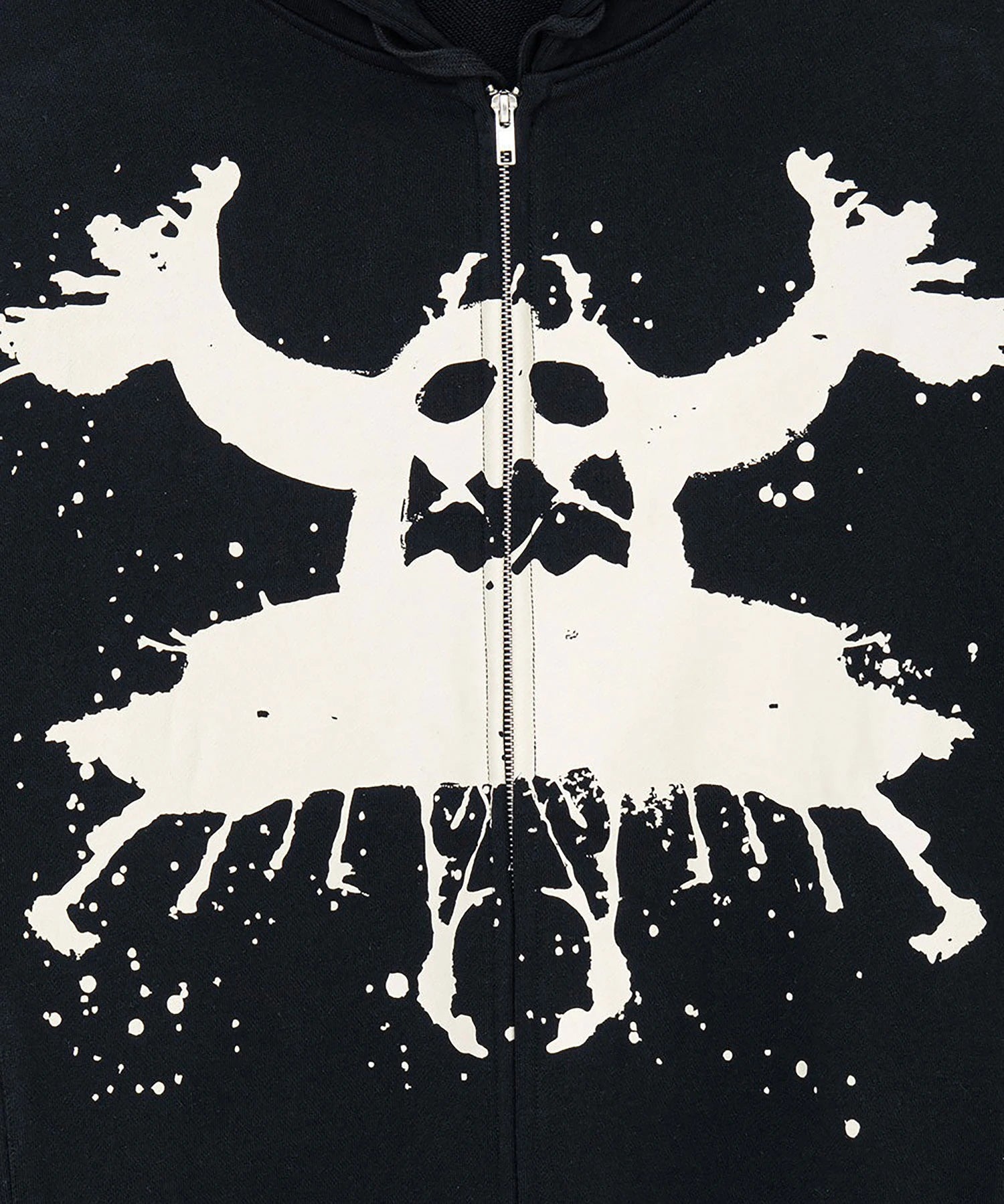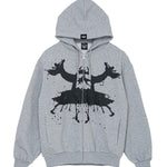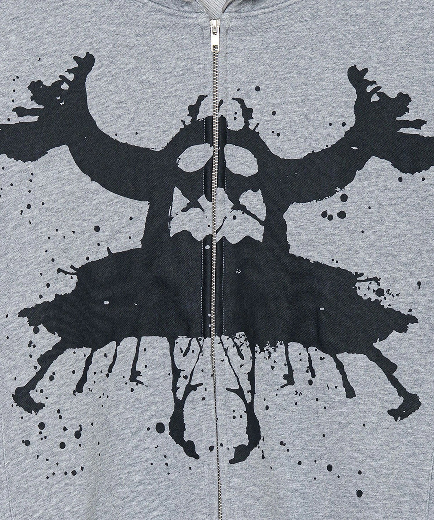 インクのシミがトイモンスターのように広がるロールシャッハテスト風のグラフィックが落とし込まれたジップパーカ。ボディはフレンチテリーで着心地が良く、軽い羽織にはもちろんインナーとしても大活躍。インクの飛沫が散りばめられた背面のブランドロゴも◎。