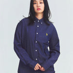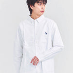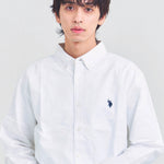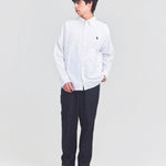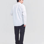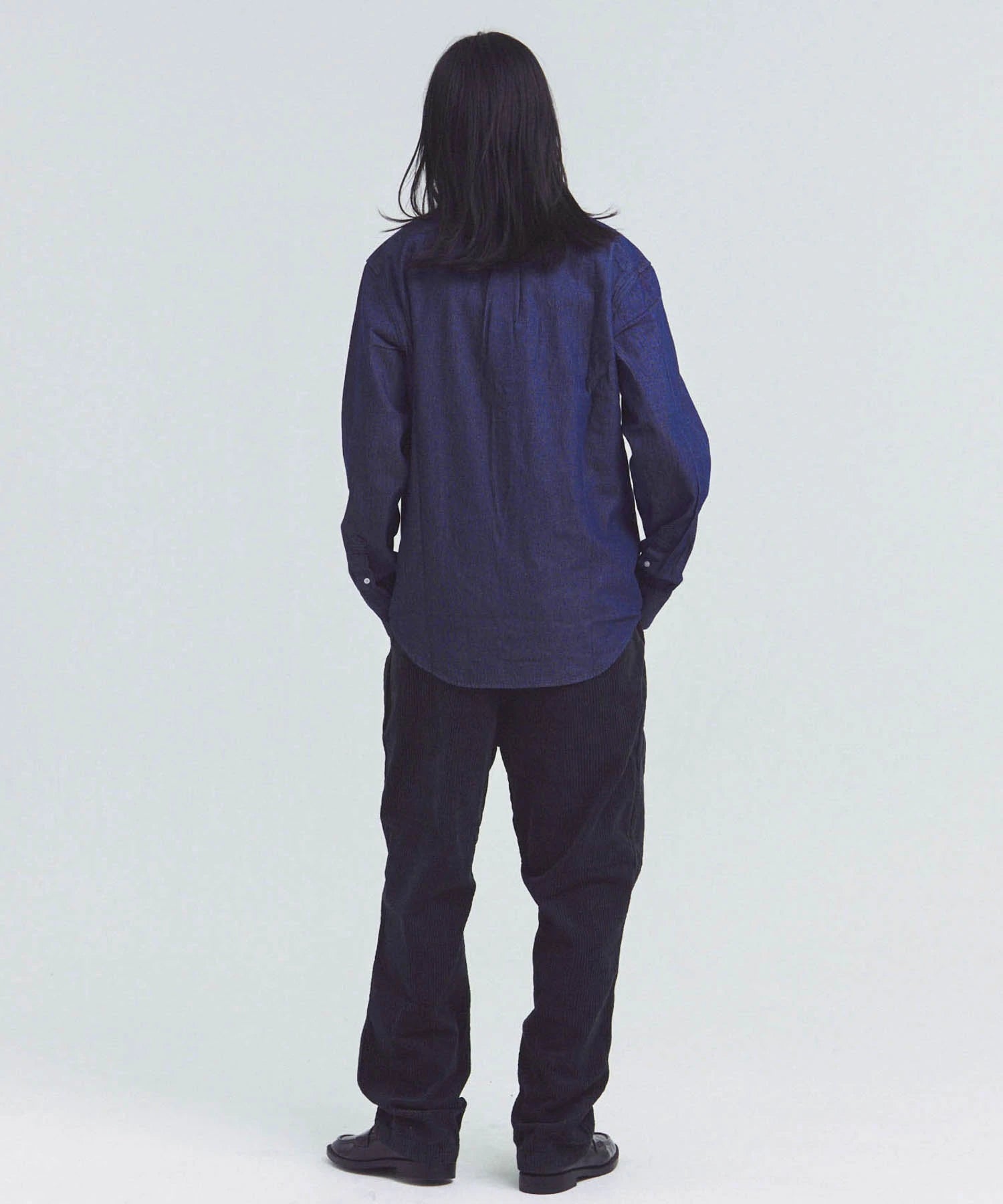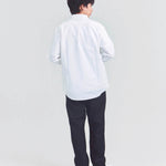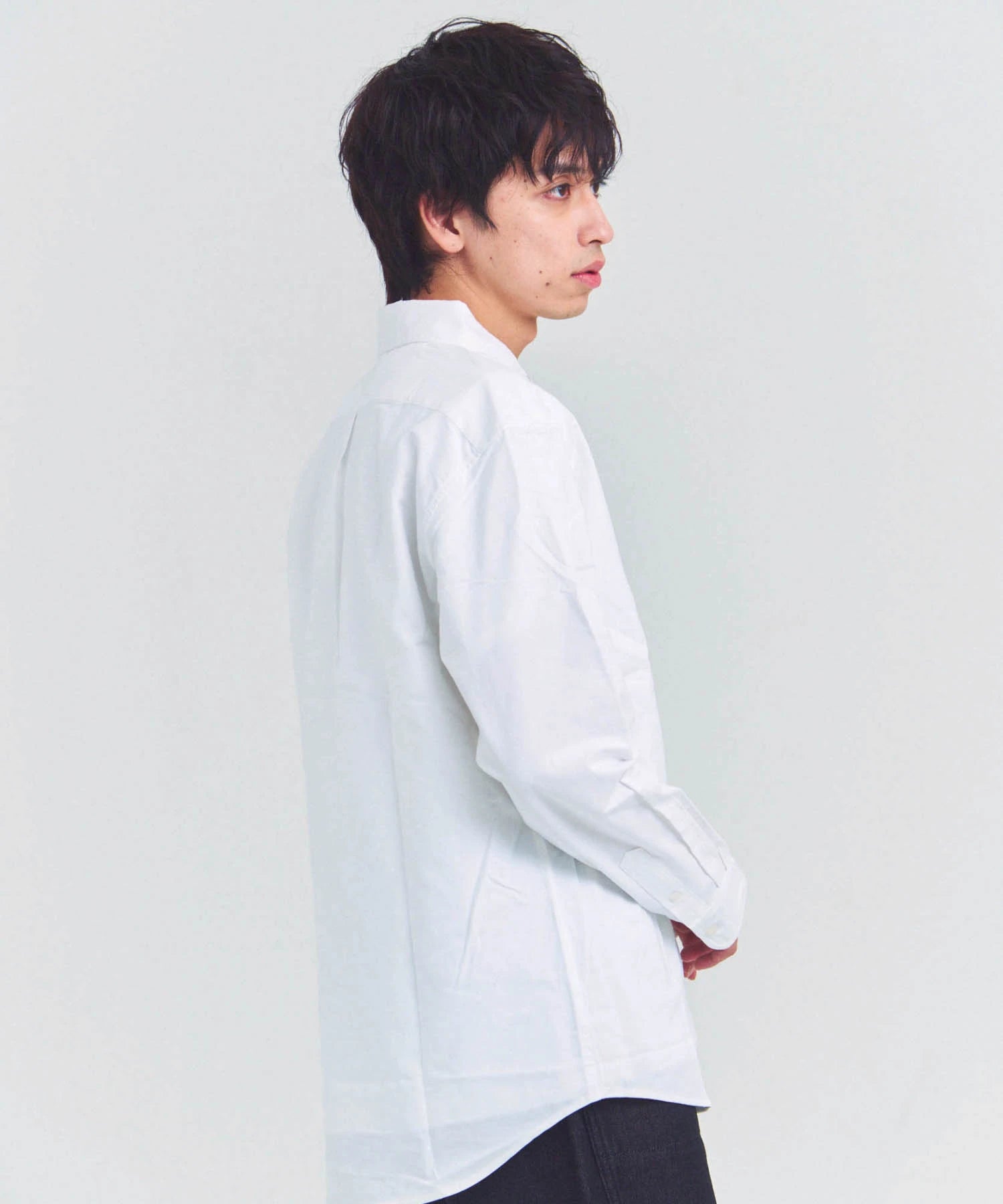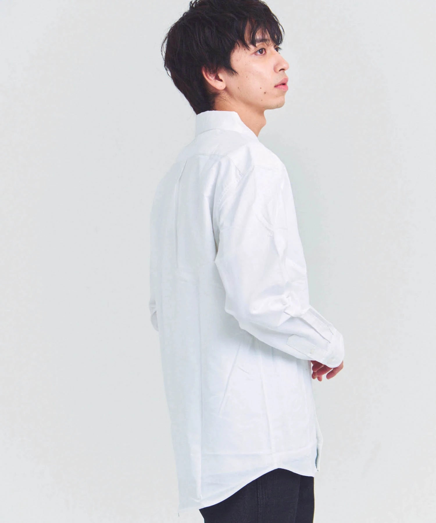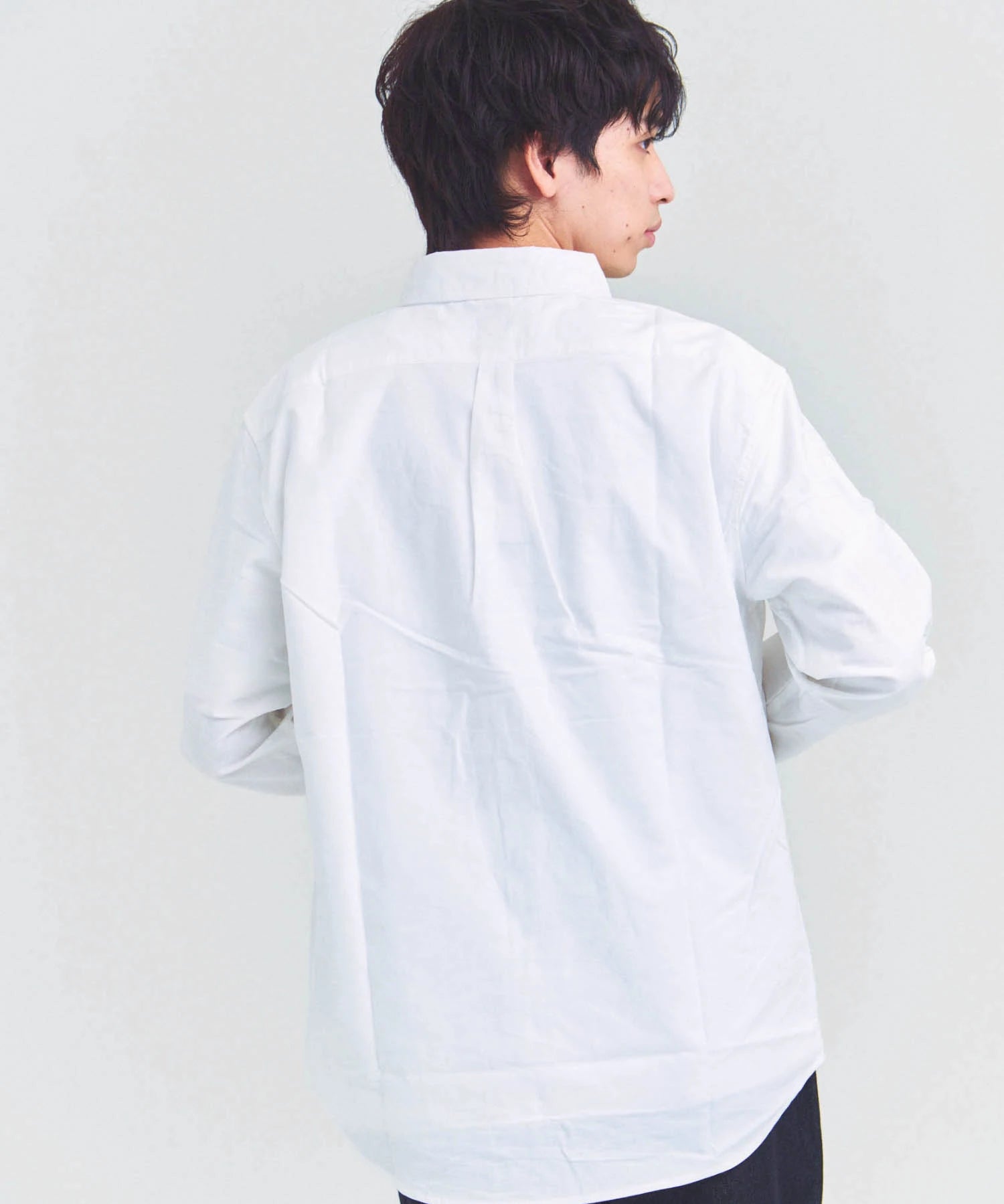 しっかりとした綿100%生地を使用したボタンダウンシャツ。ハリ感のある素材により、アイロン仕上げでも家庭でケアがしやすく、首元から裾にかけてのラインがすっきりと映えます。定番のアイボリーは清涼感ある印象を、インディゴはほどよい色濃さでデニムやチノパンとの相性も抜群。襟のボタンダウン仕様が、ジャケットインでもノーネクタイでのラフなビジネスカジュアルでもバランスよく機能。肩・身幅をゆとりある設計にすることで、動きやすさを確保しつつ身体に沿った美しいシルエットを実現。春先から初夏、また秋口にも重宝する着回し力の高い一枚です。シャツ1枚で清潔感と余裕を演出したい方、ビジネスも休日もスマートにこなしたい方におすすめです。