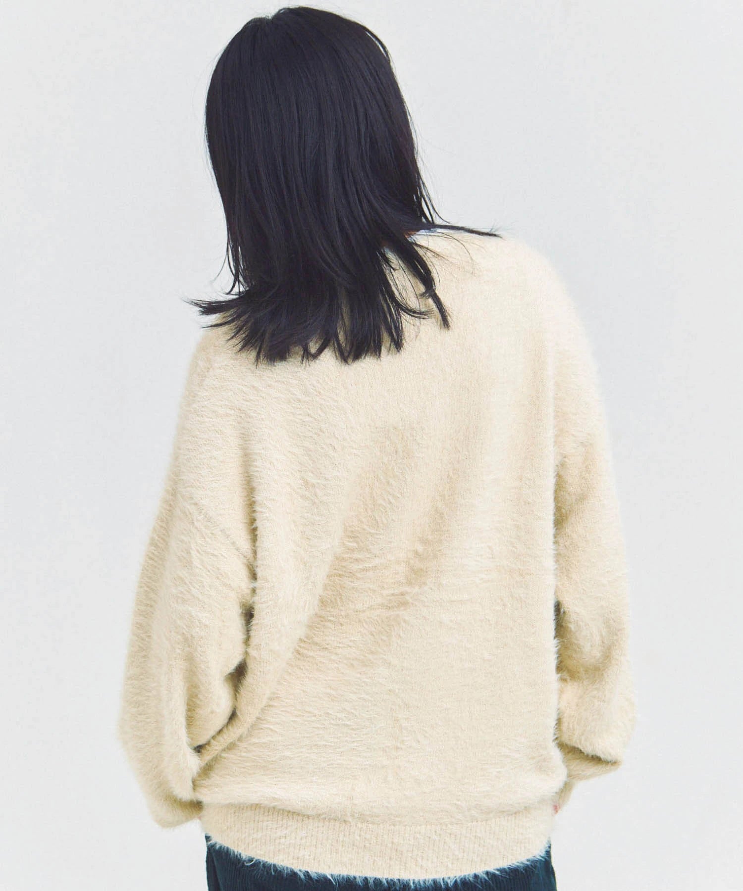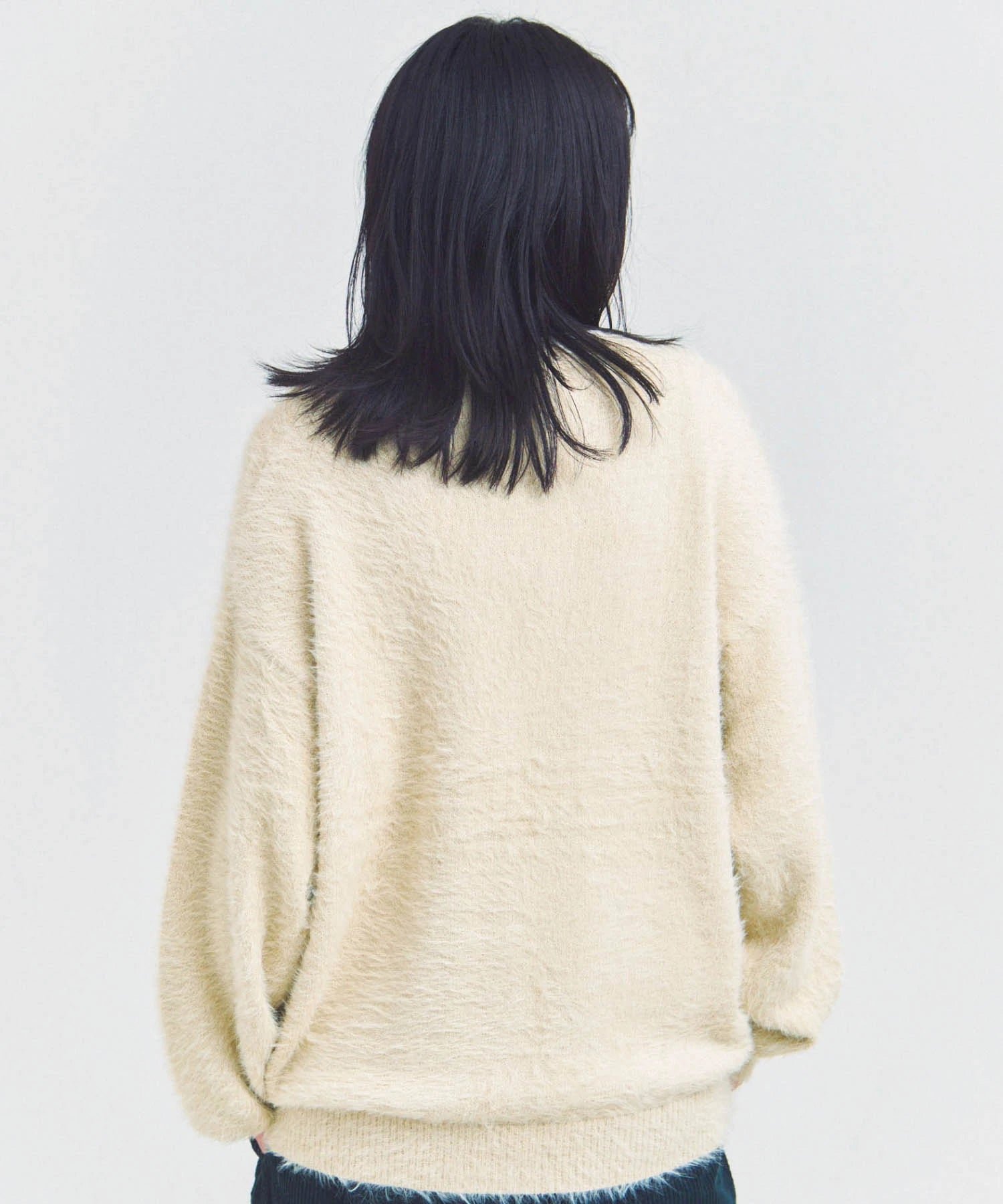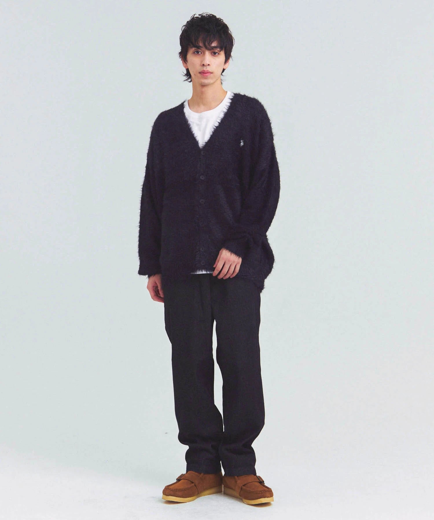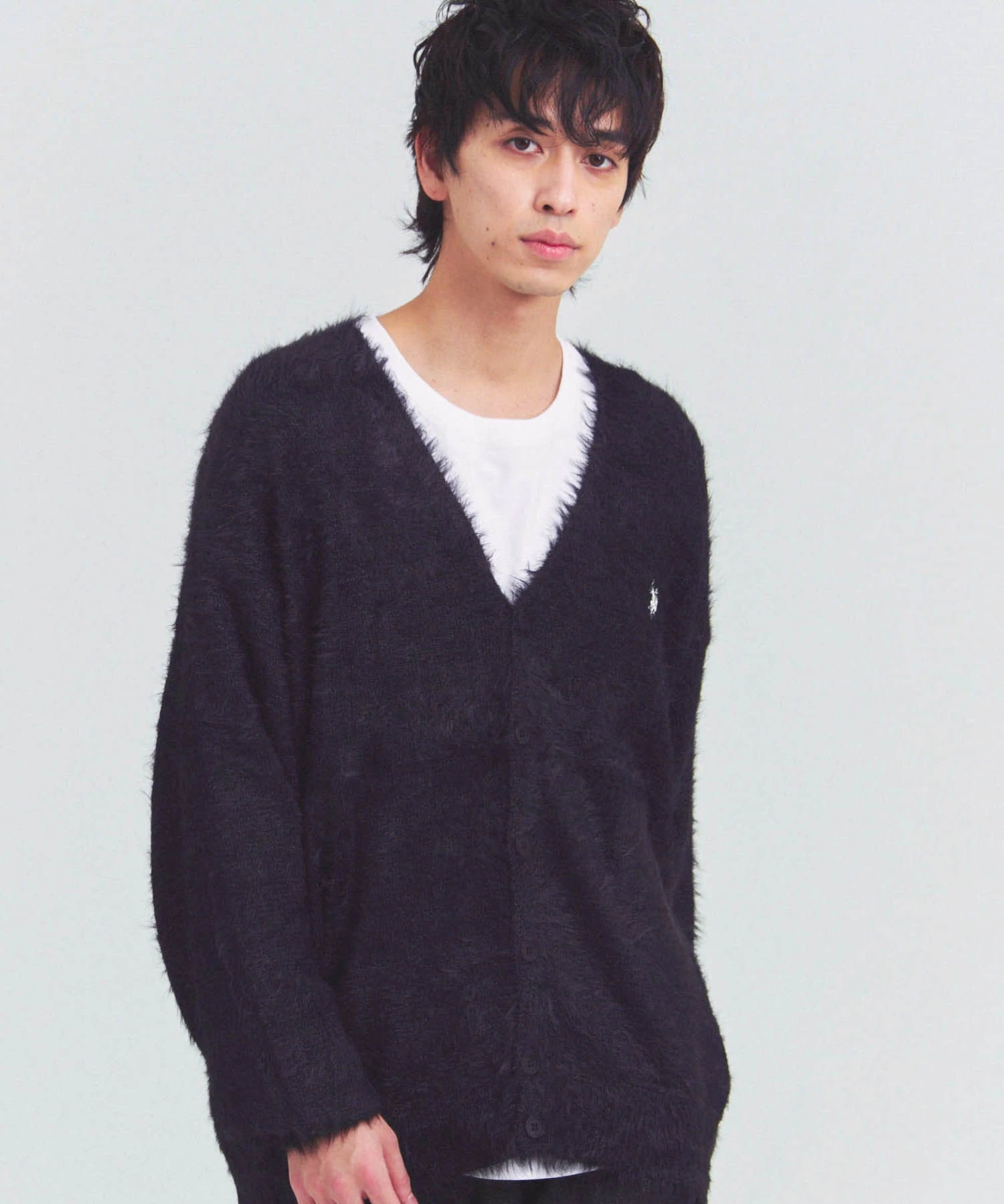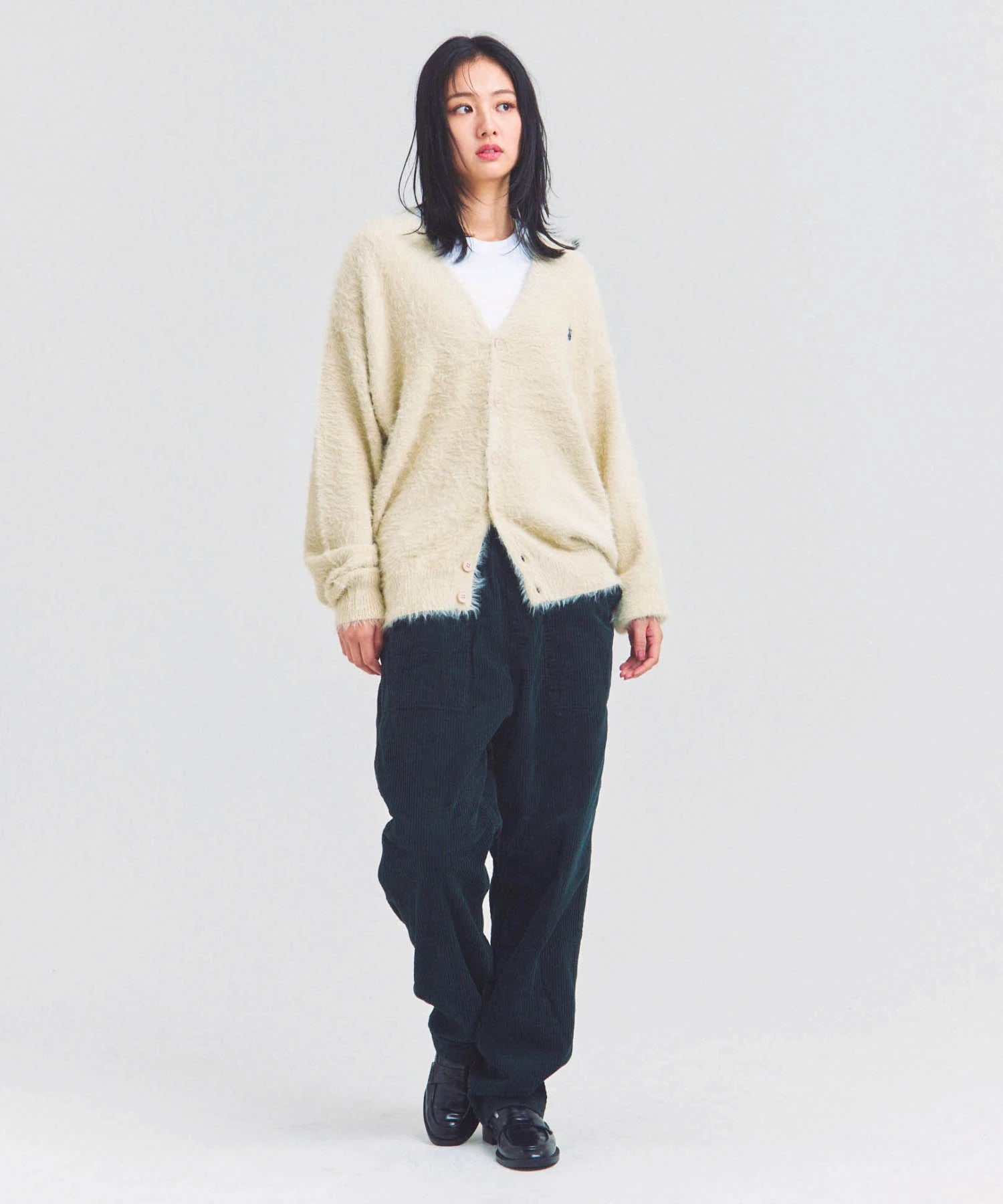 体を包み込むようなシルエットと軽やかな羽織り感を両立したカーディガン。素材はナイロン76%・ポリエステル24%で、ニットならではの柔らかさと耐久性を備えています。前を開けてラフに羽織るスタイルも、ボタンを閉じてセーター風に着るのもOK。季節の変わり目や室内の冷え対策にも活躍する一着です。