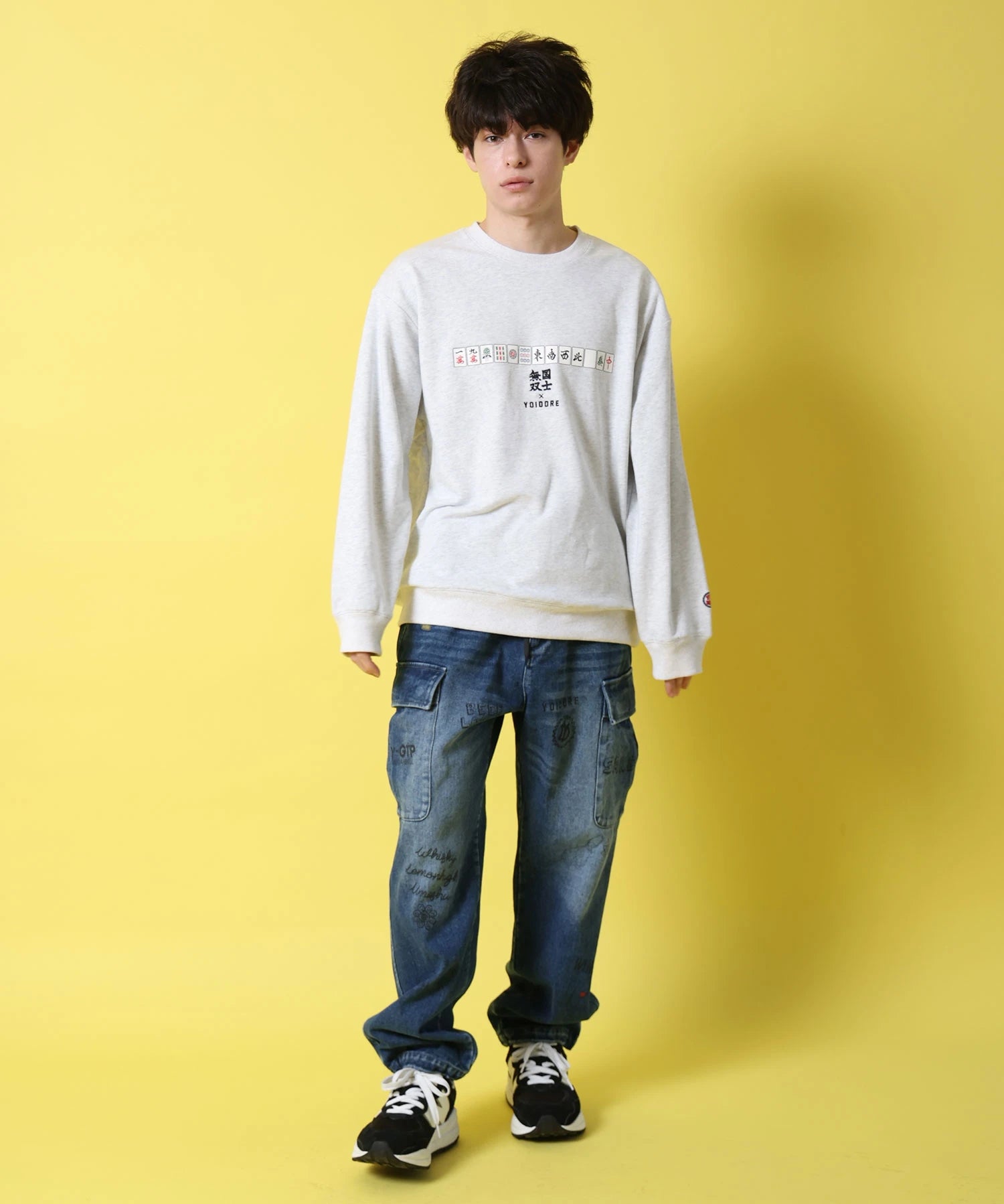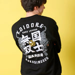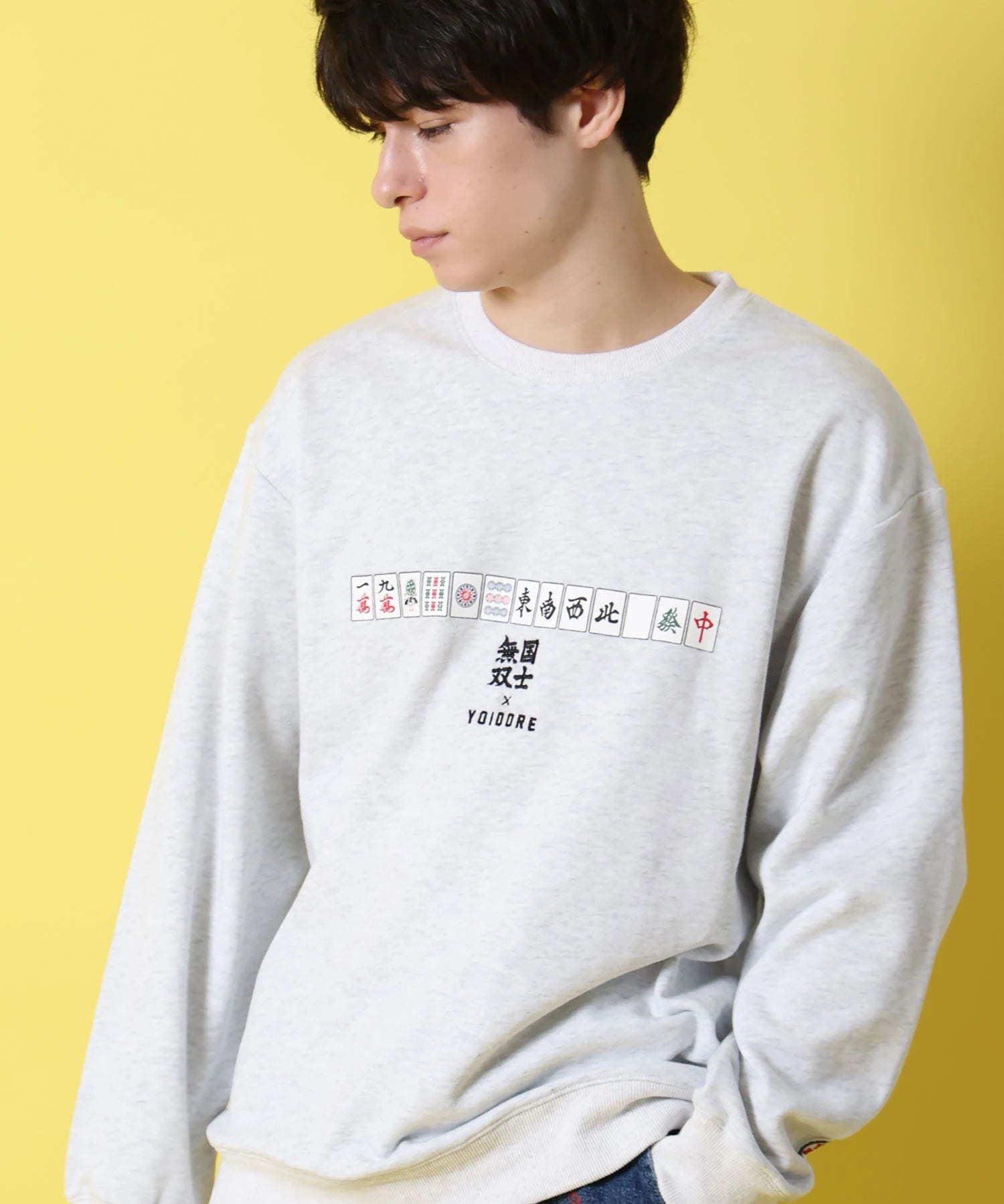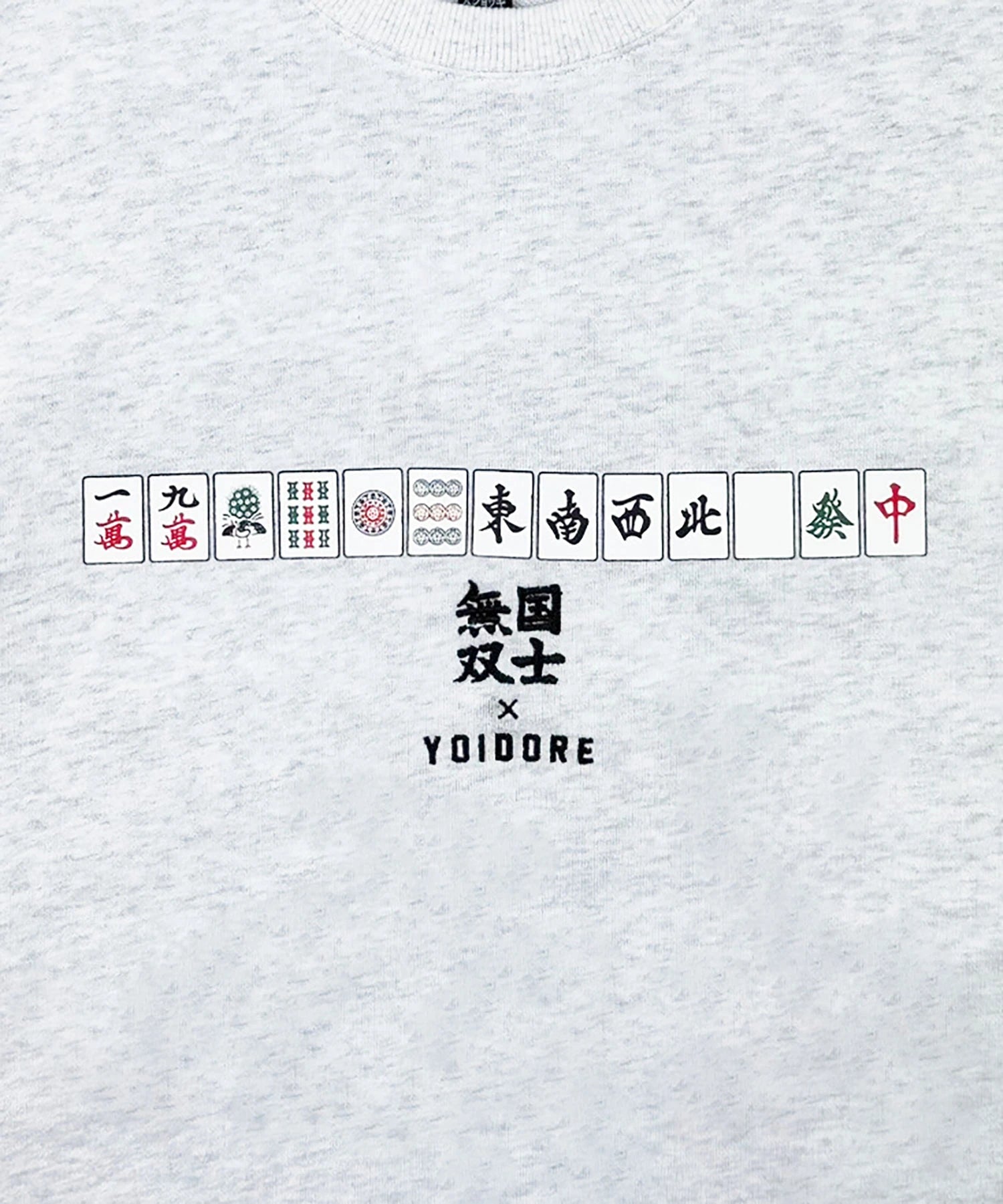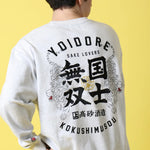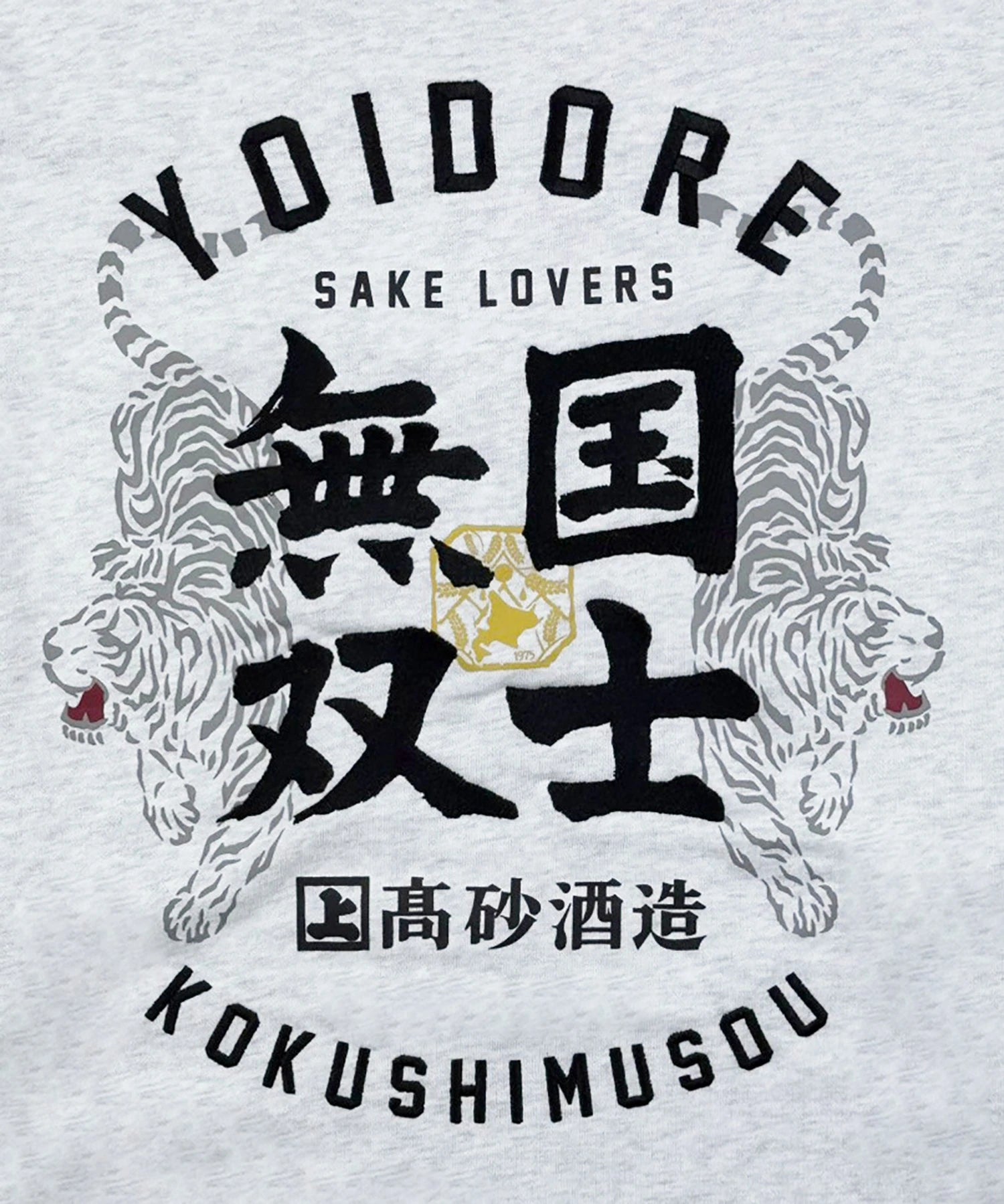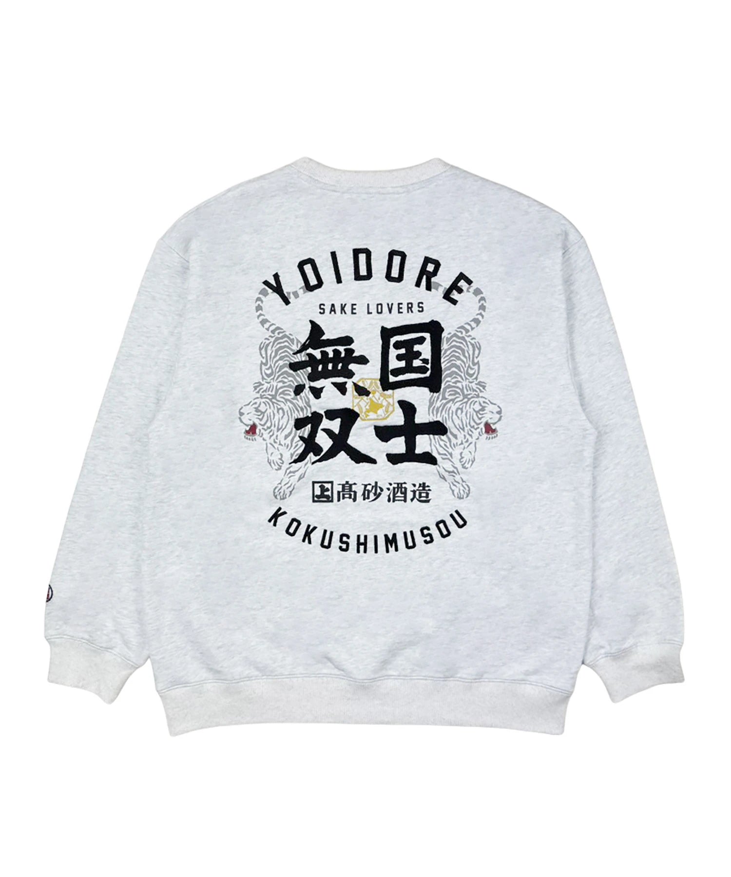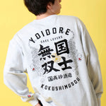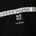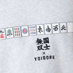 北海道が誇る酒蔵「高砂酒造」が造り出す珠玉の日本酒「国士無双」とYOIDOREが夢のコラボレーション!「国士無双(天下に二人といない傑出した人材)」かつ、麻雀の最強役の一つ、天下に二つとない酒、後世に語り継がれるような酒に。との願いが込められたネーミングエピソードに共感とリスペクトを込め、YOIDORE流の世界観をMIXさせて生まれた至高のアイテム!バックはヴィンテージ風のYOIDOREアーチロゴに国士無双の力強いロゴデザイン、強さの象徴「酔虎」をレイアウトした無骨なデザイン。フロントは、13種類の么九牌が全て1枚ずつ揃った状態で、あと1枚来れば国士無双が完成する状態の「13面待ち」をプリントで配置したインパクト抜群なデザイン。ボディは綿をベースにポリエステルを絶妙に混紡し、綿の風合いを消さずに柔らかく、重過ぎずにサラリとした着心地をキープする裏毛生地を使用したYOIDOREオリジナルです。