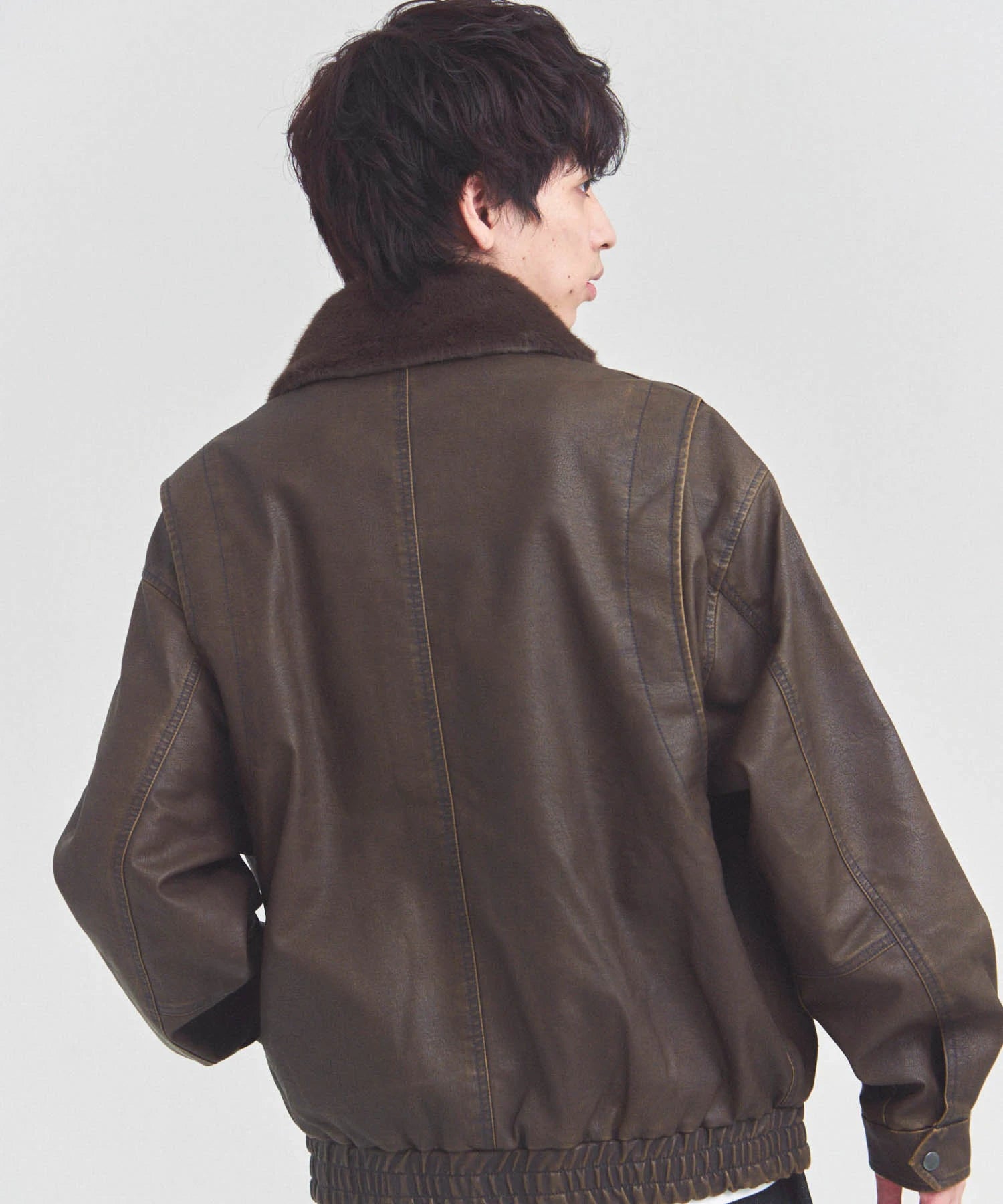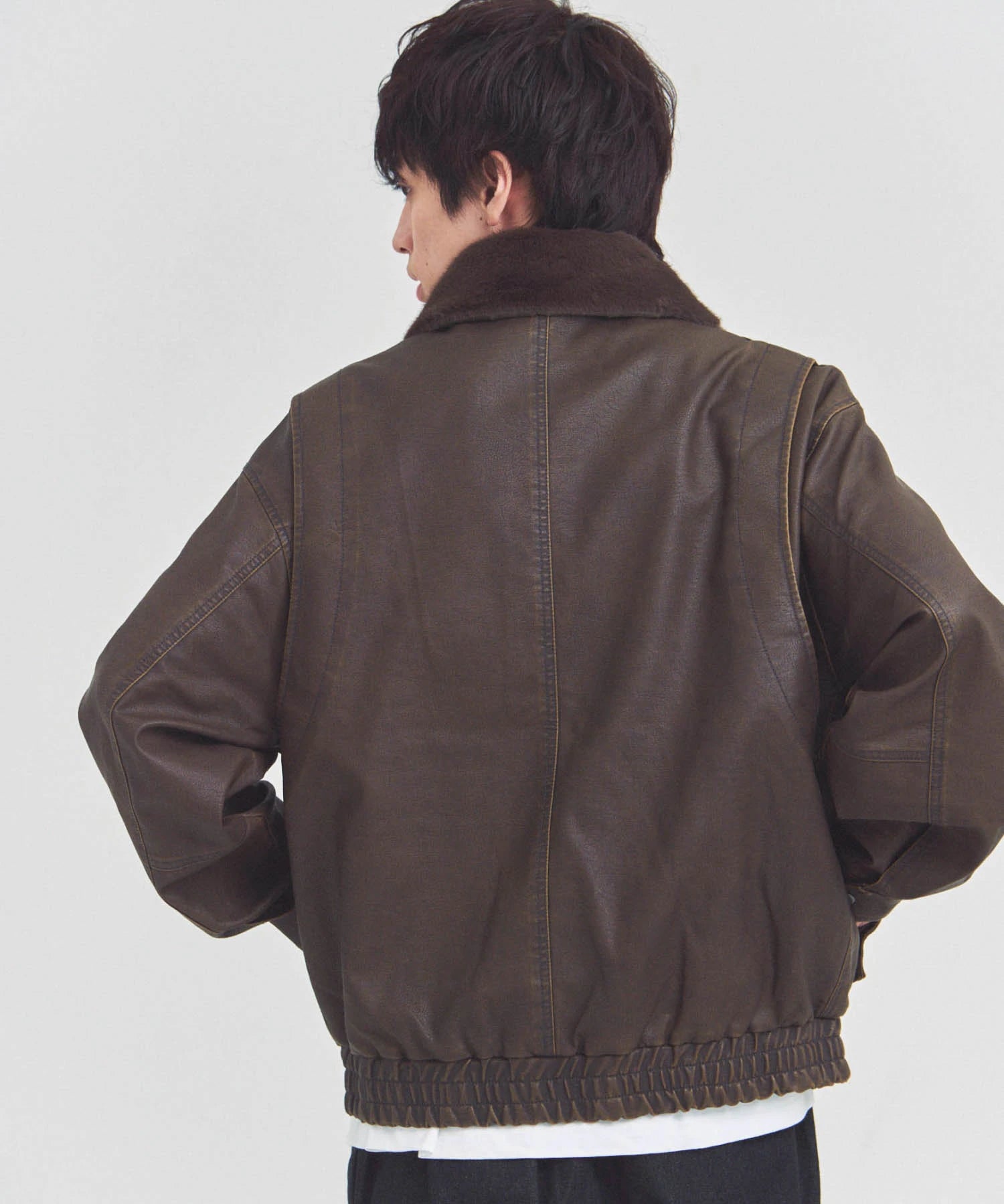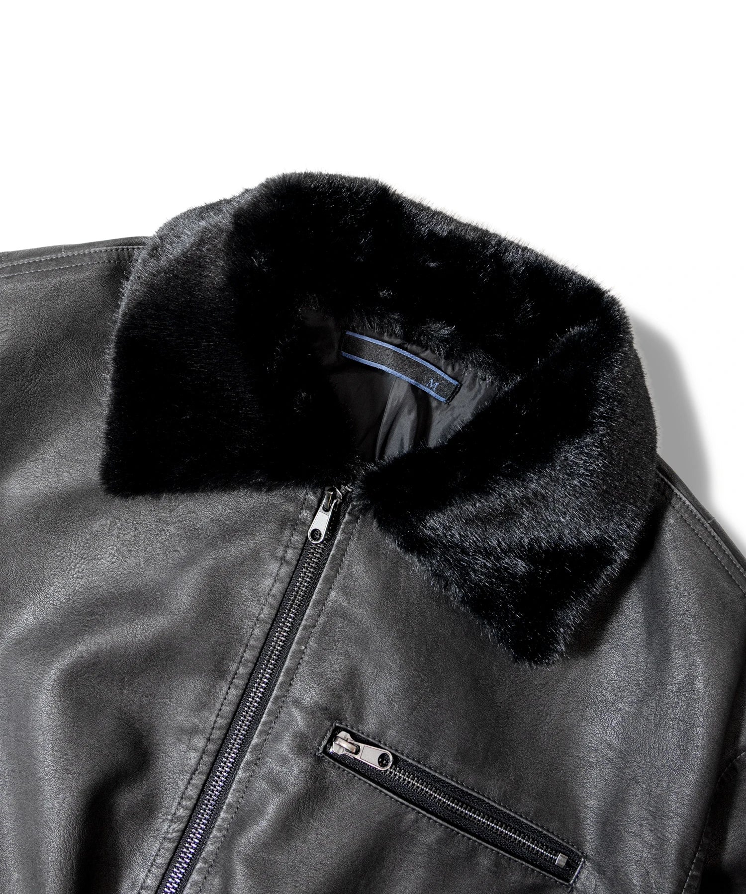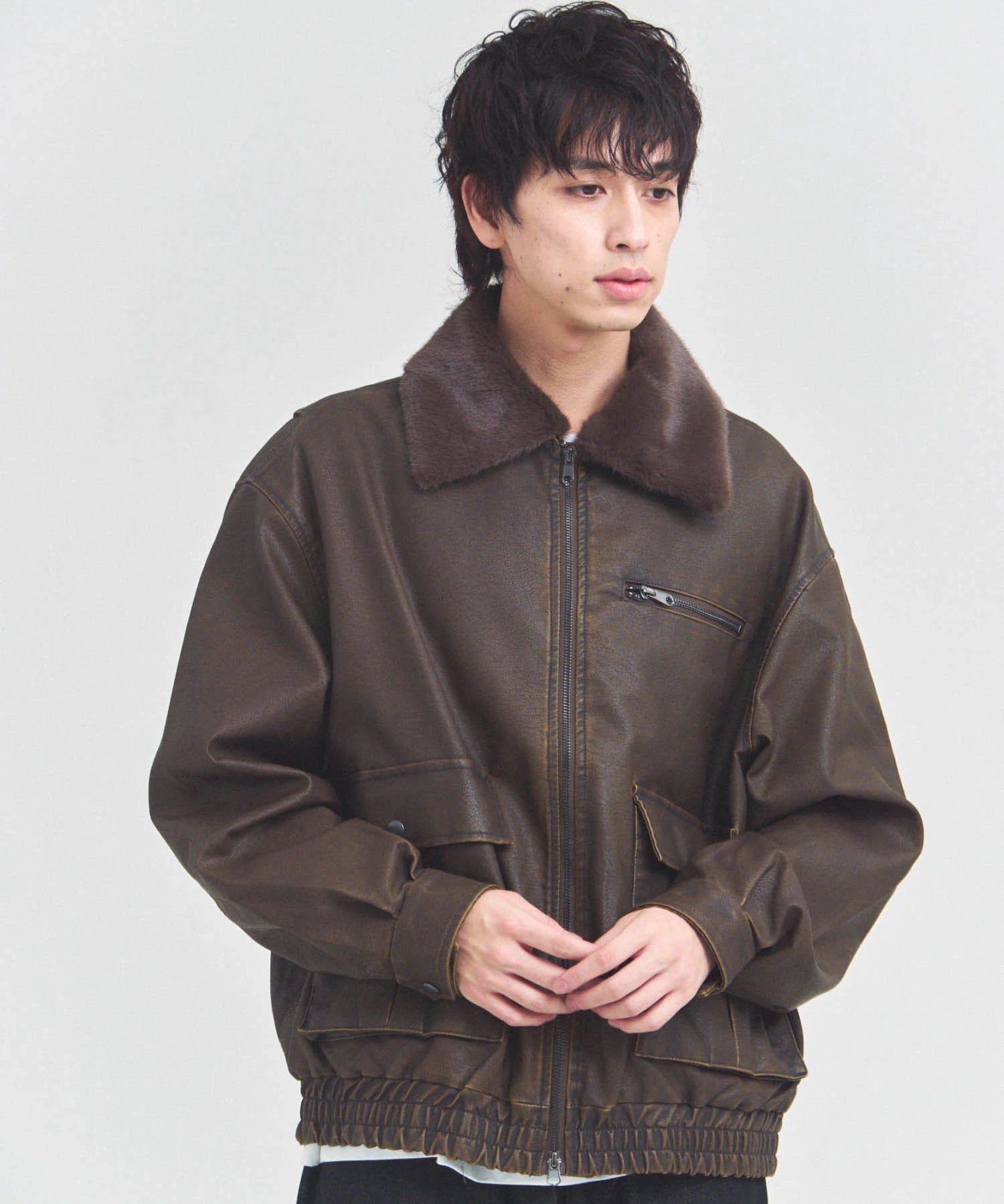 この一着で、冬のタウンスタイルにワイルドで洗練されたアクセントを。ヴィンテージ感漂うPUレザーを使用し、襟にあしらわれたファーは取外し可能なので、気分やコーディネートによって表情を変えることができます。