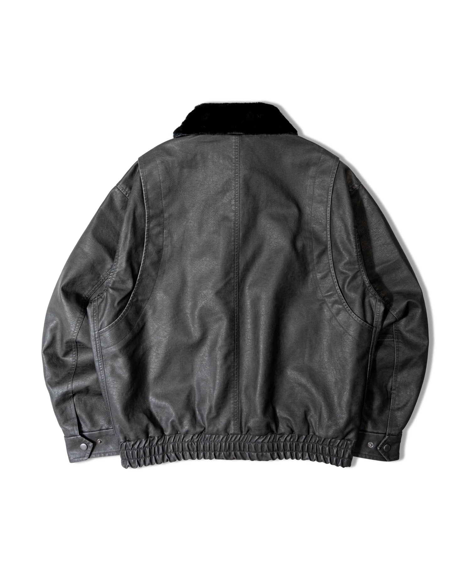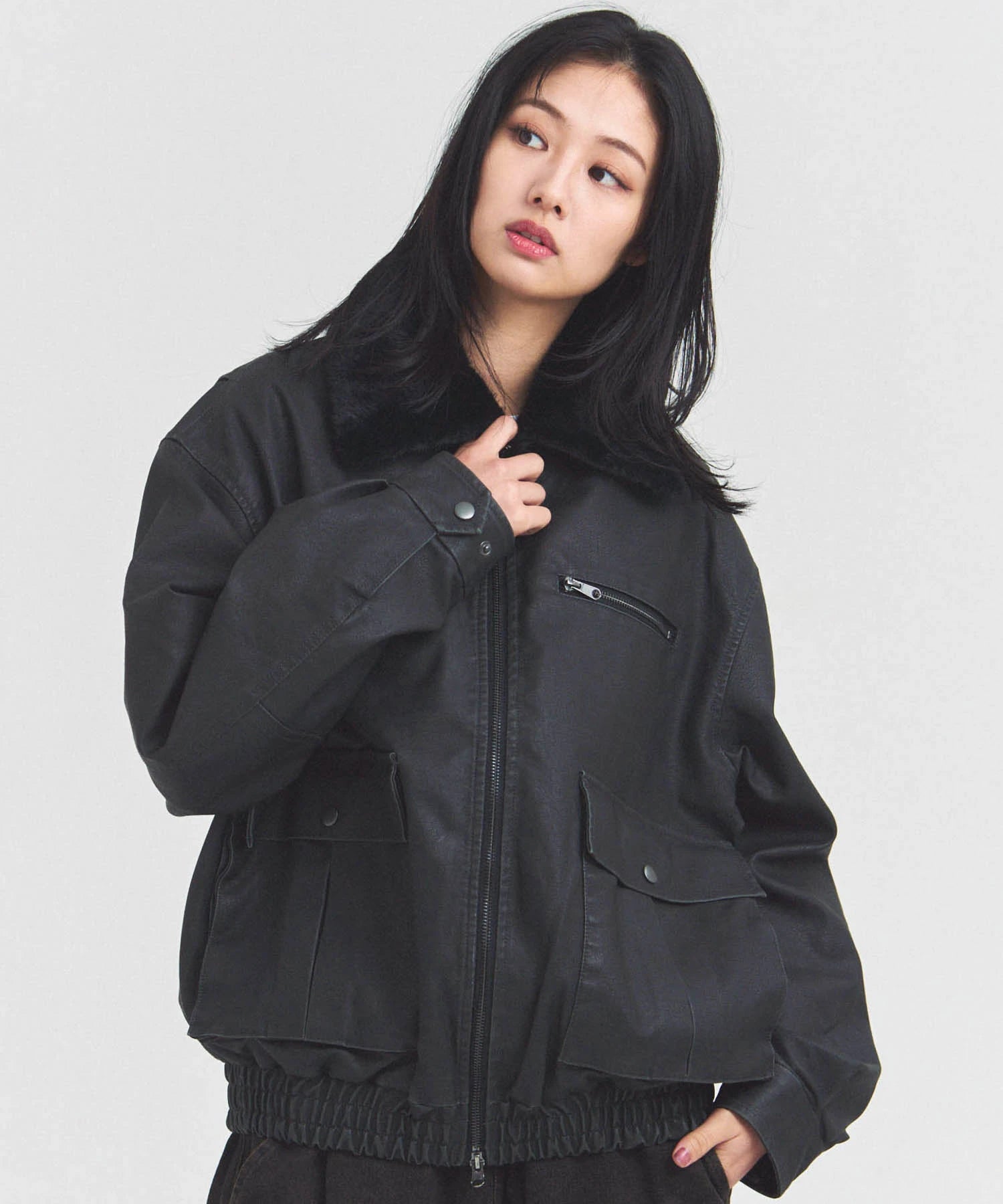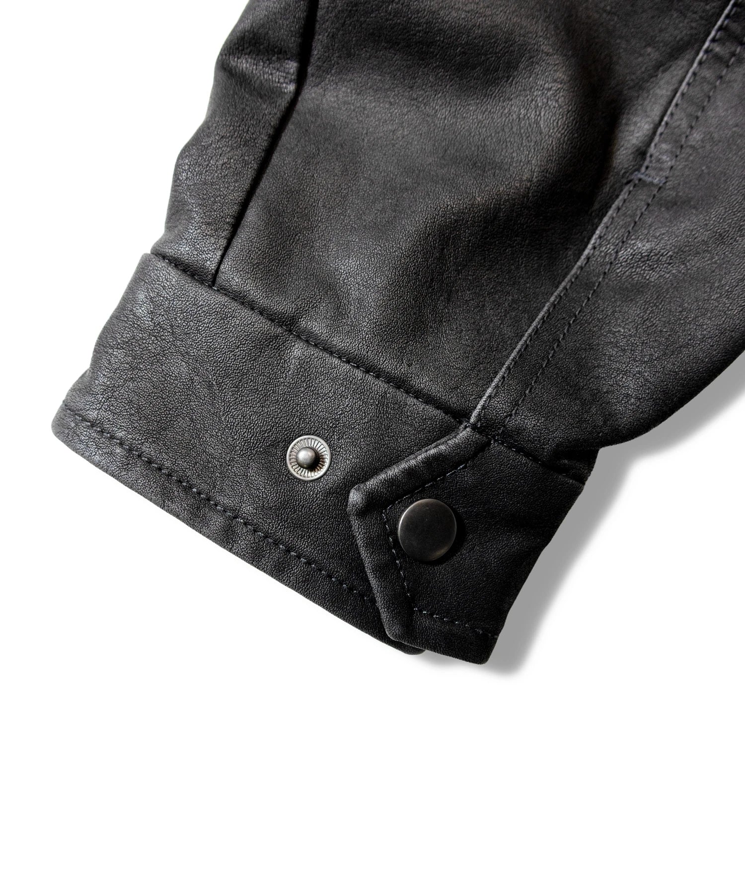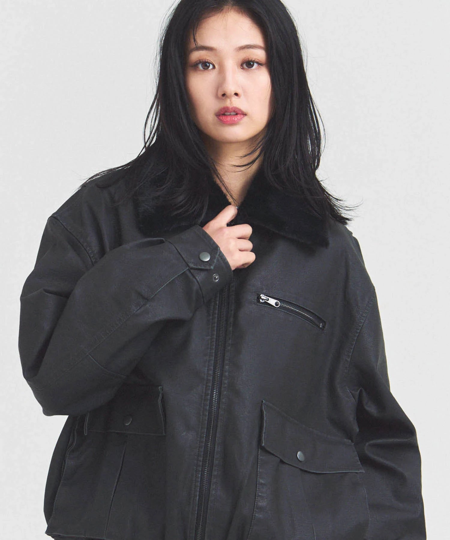 この一着で、冬のタウンスタイルにワイルドで洗練されたアクセントを。ヴィンテージ感漂うPUレザーを使用し、襟にあしらわれたファーは取外し可能なので、気分やコーディネートによって表情を変えることができます。