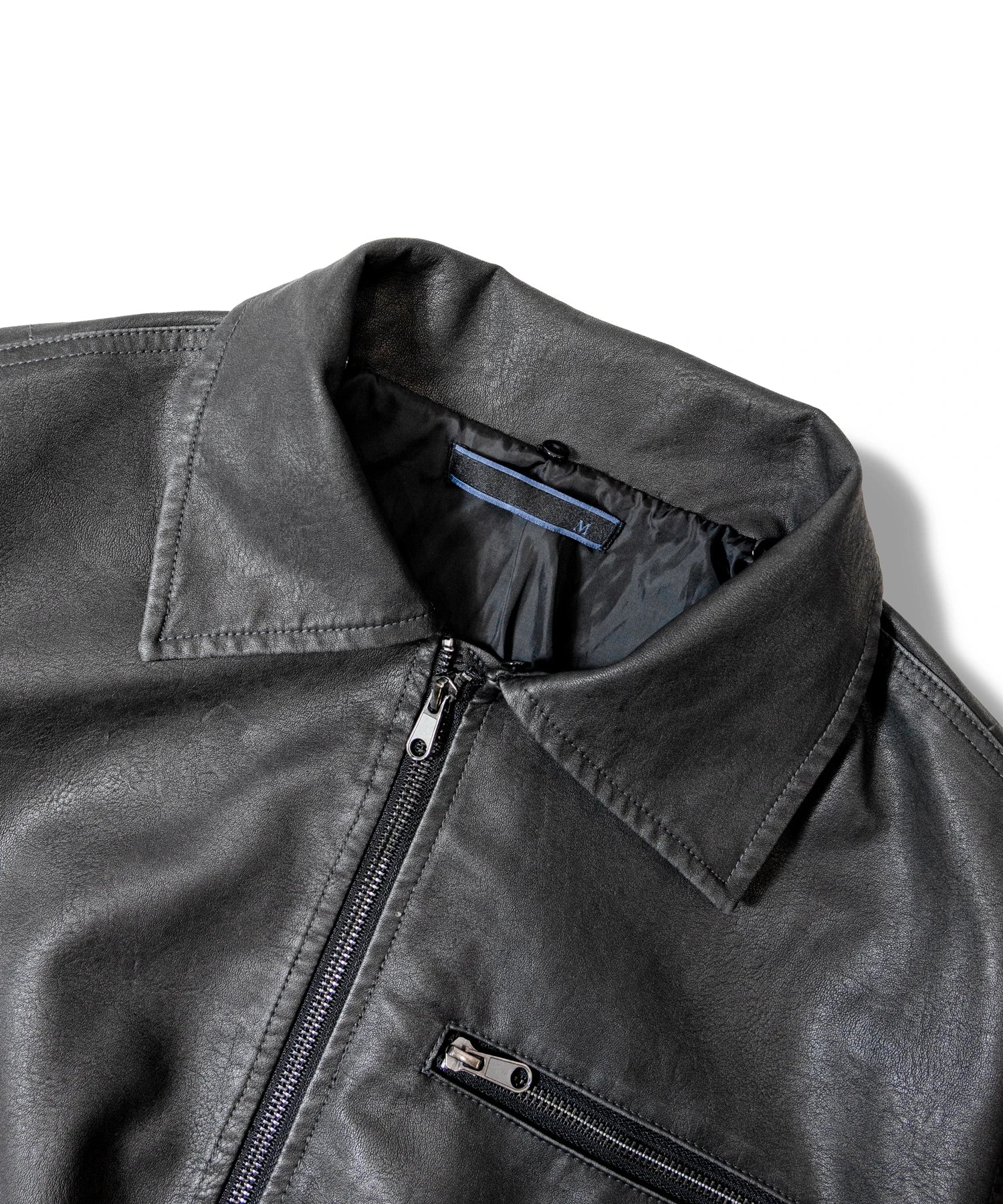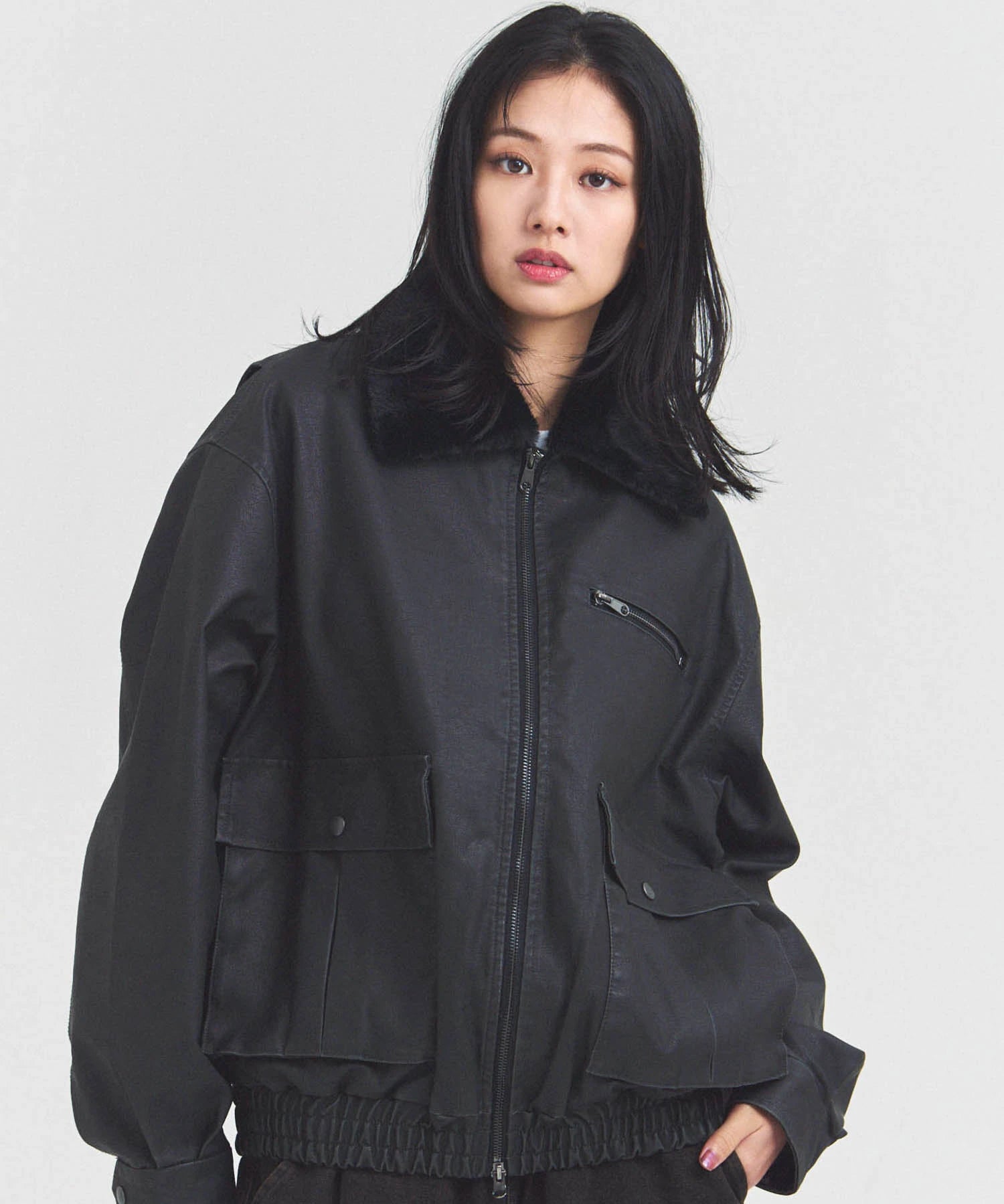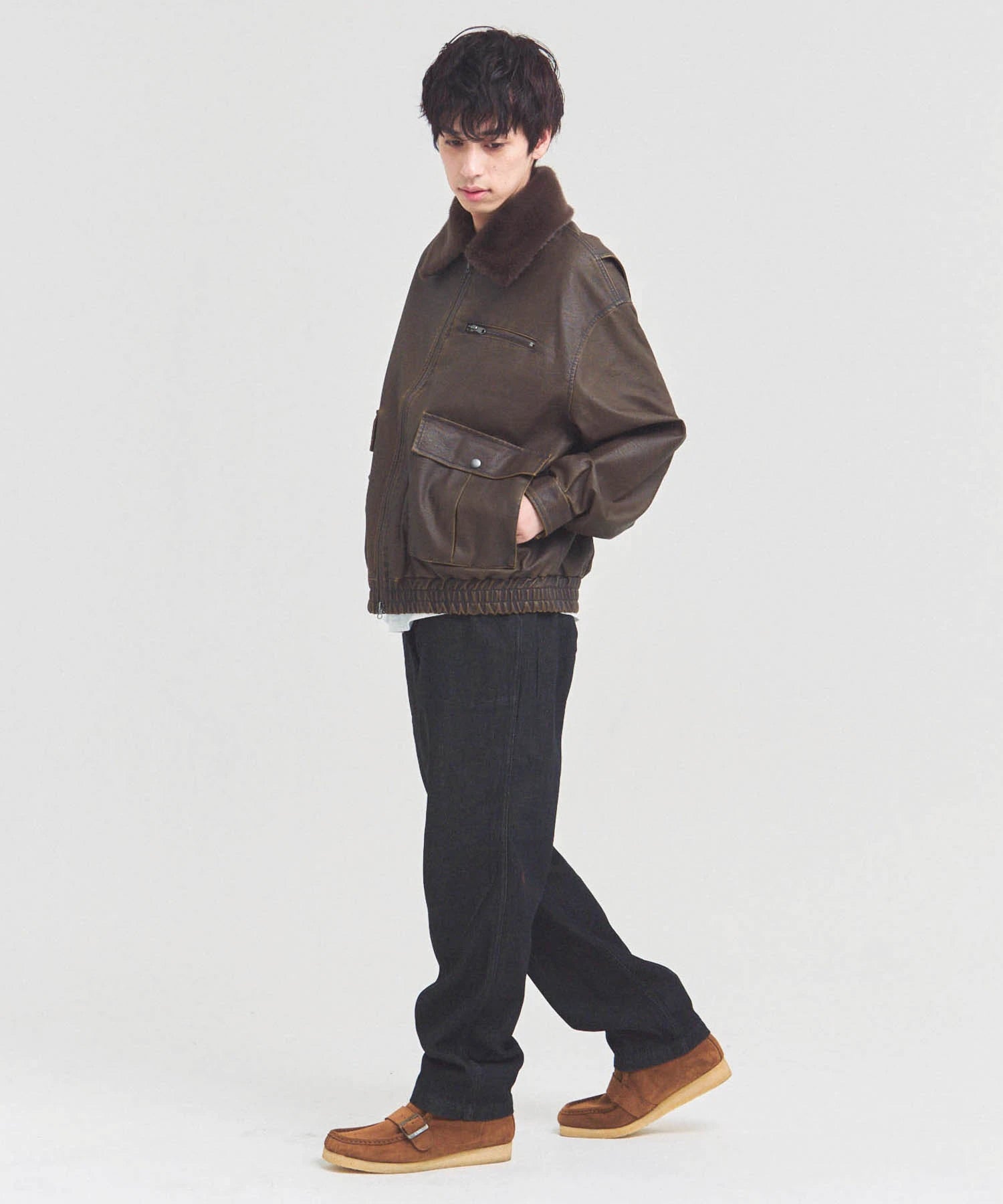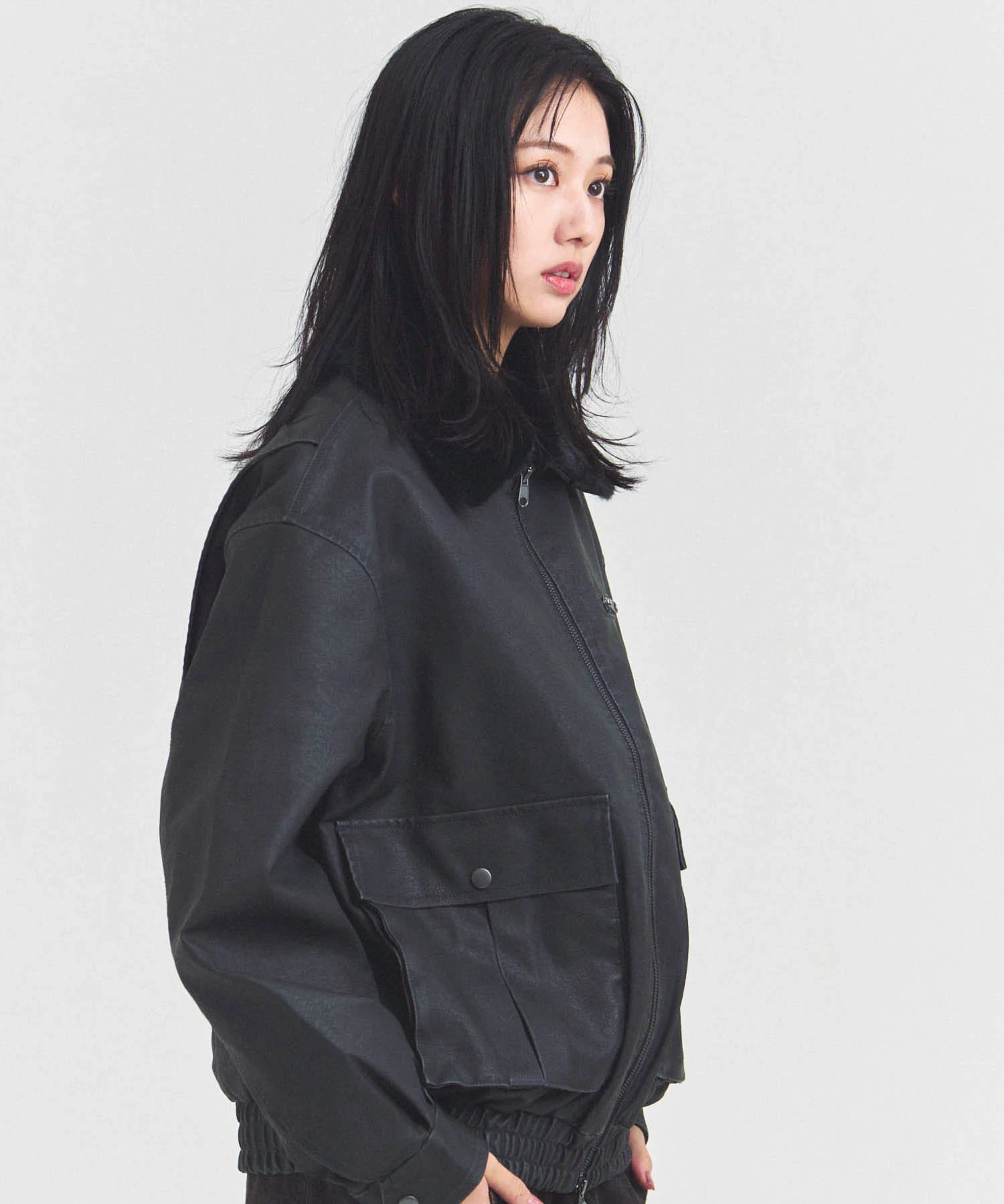 この一着で、冬のタウンスタイルにワイルドで洗練されたアクセントを。ヴィンテージ感漂うPUレザーを使用し、襟にあしらわれたファーは取外し可能なので、気分やコーディネートによって表情を変えることができます。
