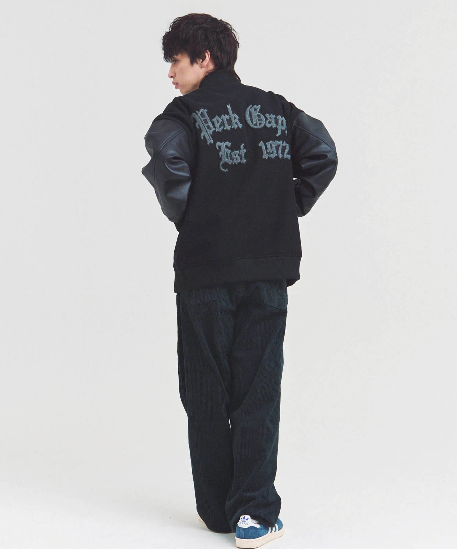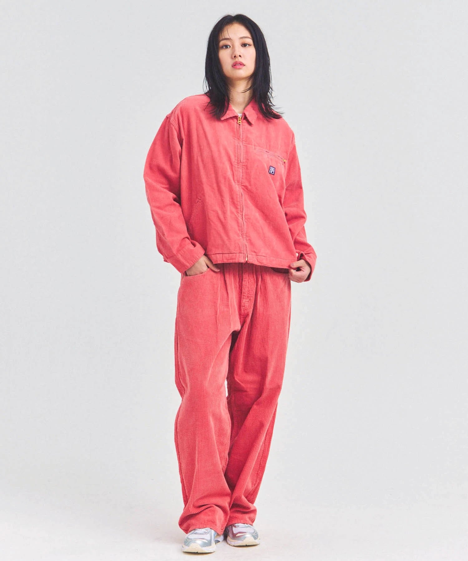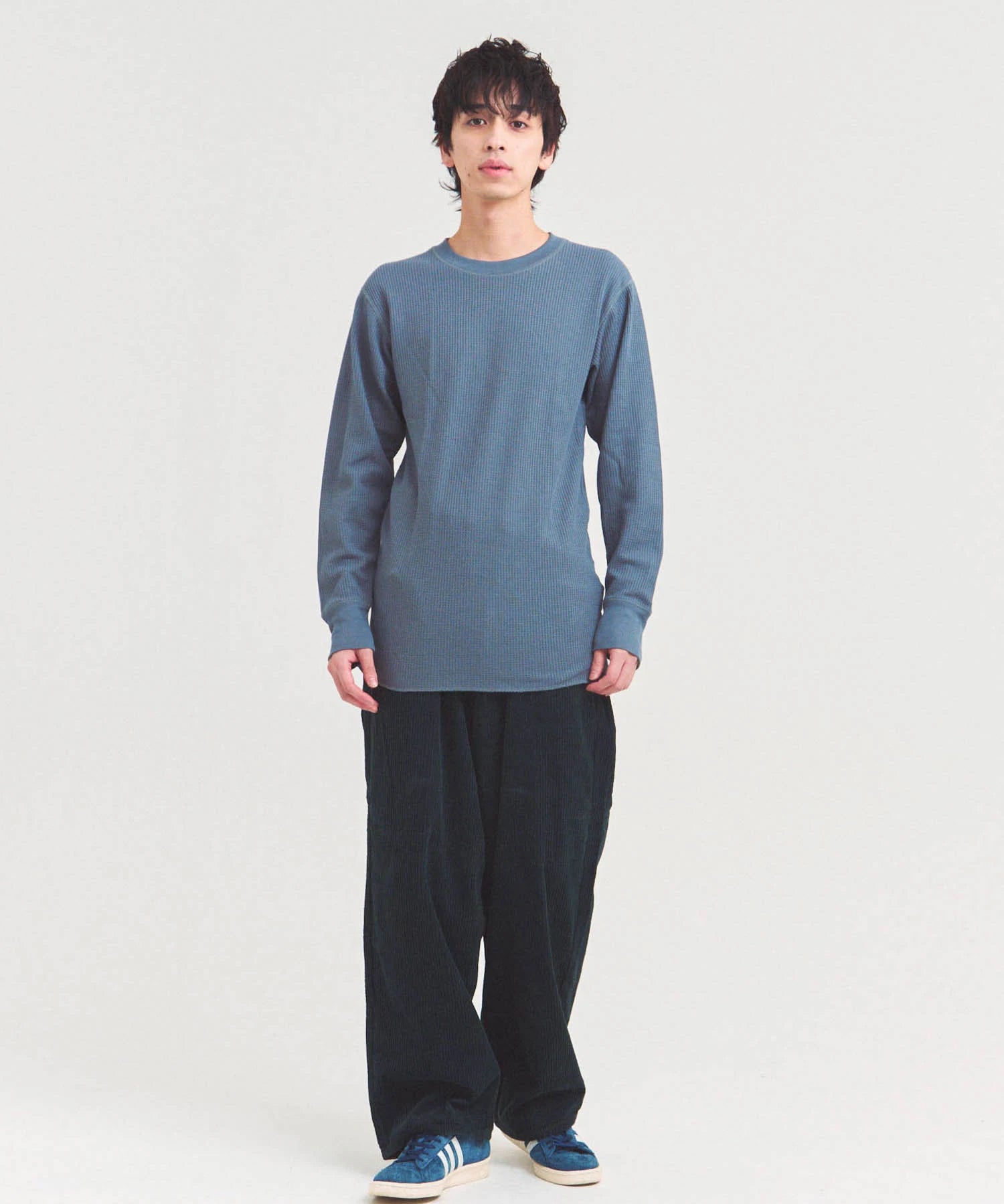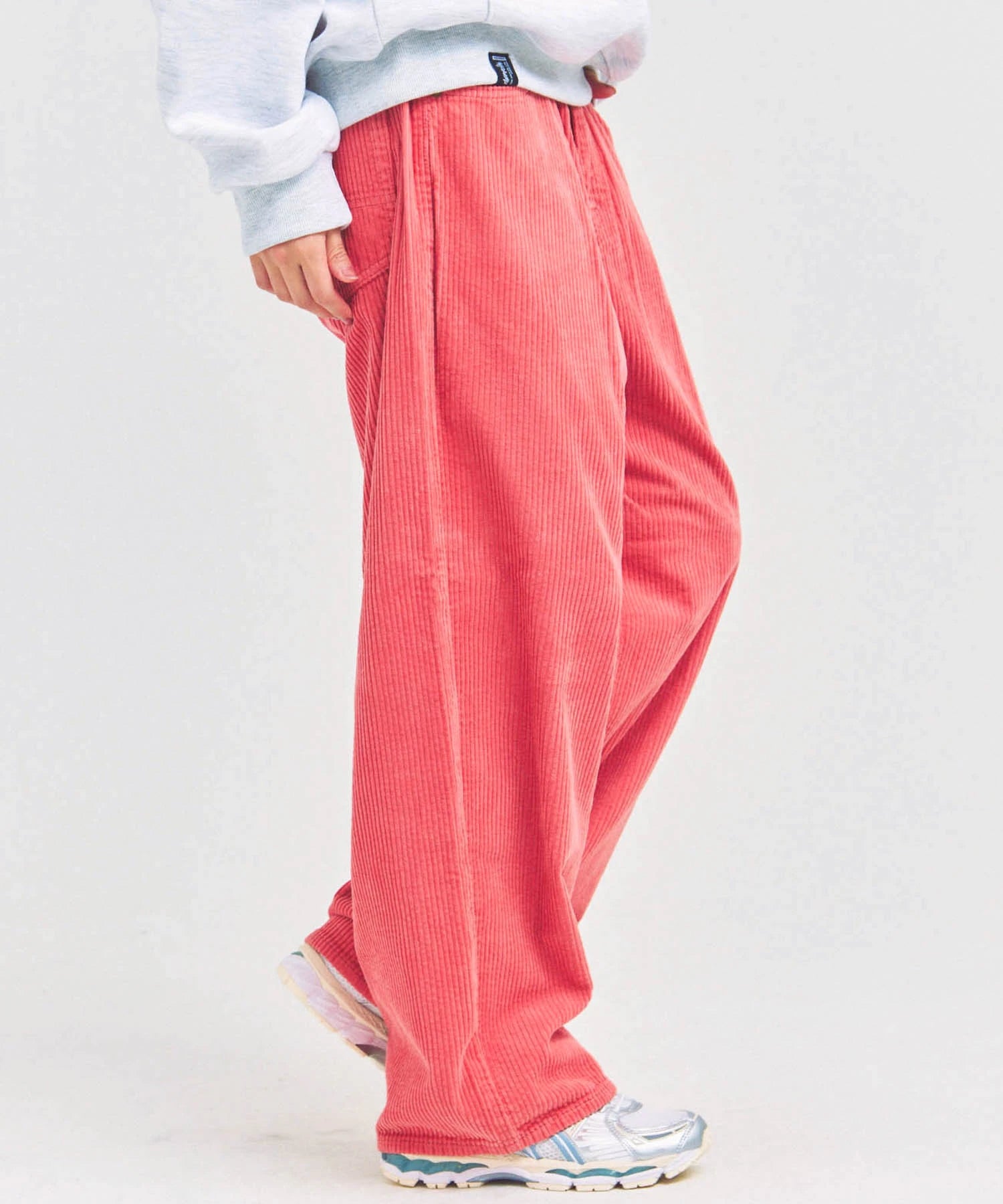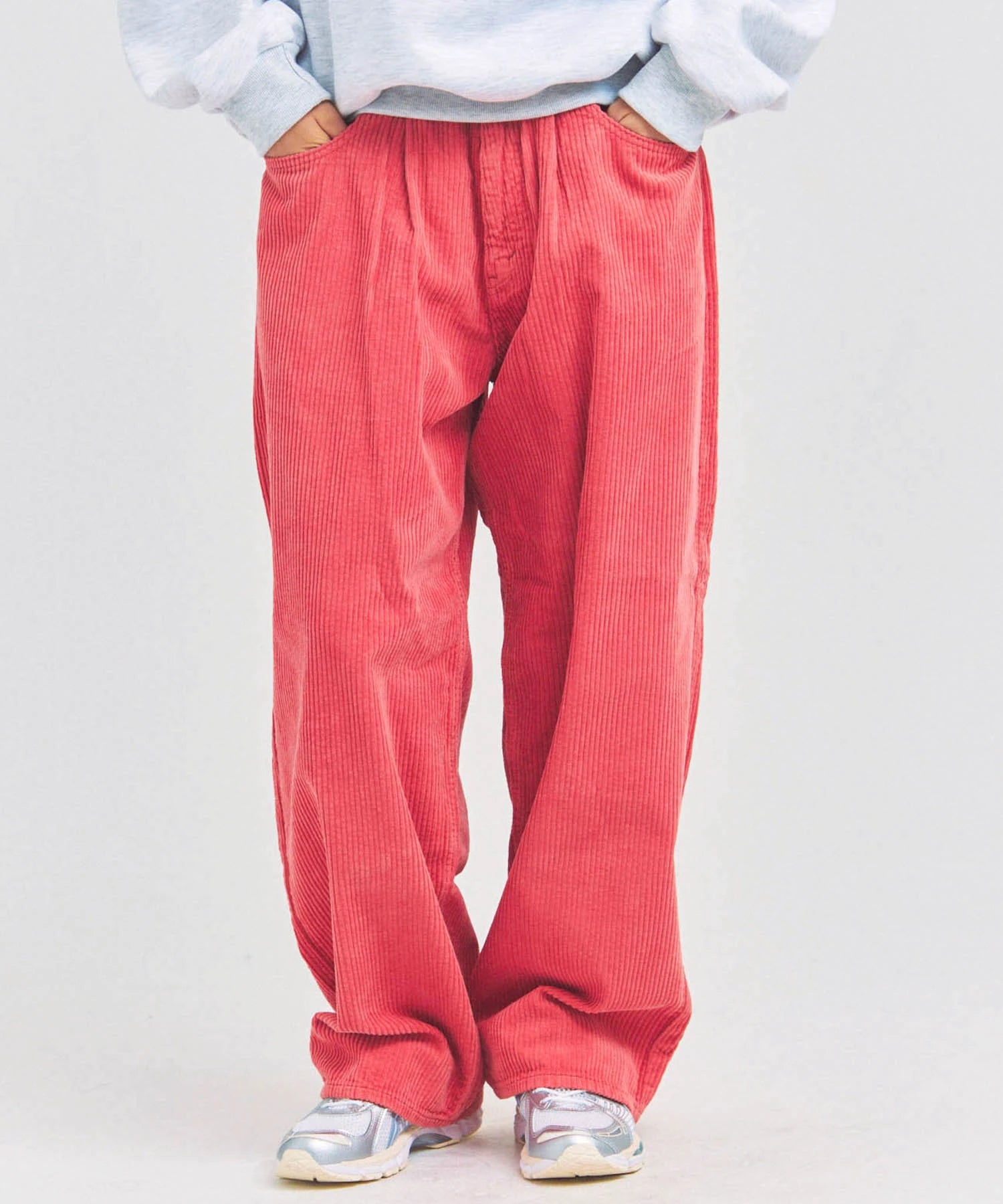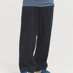 太畝(9W)コーデュロイを使用した存在感あるバギーパンツ。ゆとりのあるヒップともも周りから、裾に向けて自然にテーパードするシルエットが魅力。動きやすさとトレンド感を両立し、ユニセックスで楽しめるデザインです。