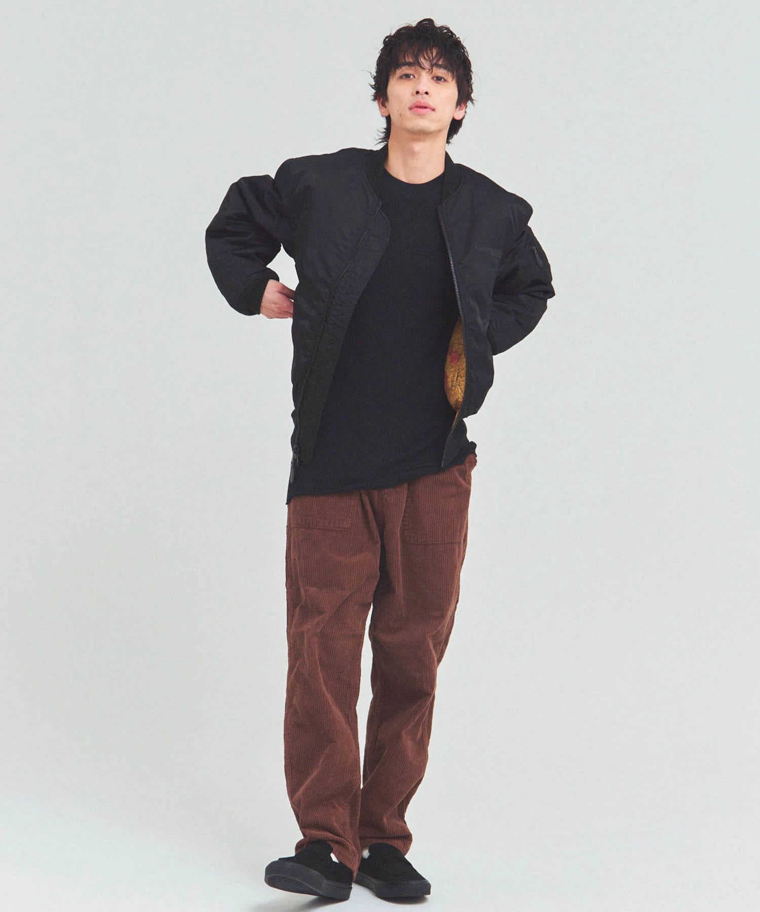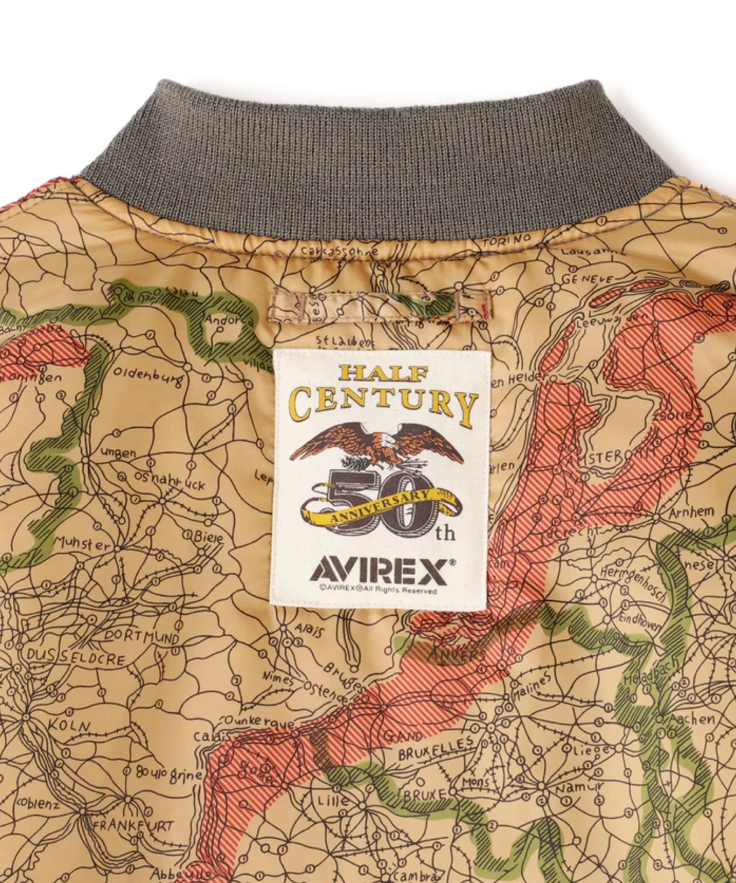 - 50周年記念パッチをあしらった限定モデル- AVIREXアーカイブから復刻したビッグロゴワッペンが存在感を演出- 表地にはブランド定番のヘビーナイロン素材を採用し、耐久性と質感を両立- 裏地にはAVIREXの象徴ともいえるMAP柄を使用し、内側までこだわり抜いたデザイン- シルエットは従来のMA-1よりややワイドなサイズ感で、現代的なスタイルにアップデート