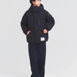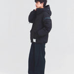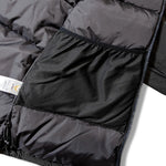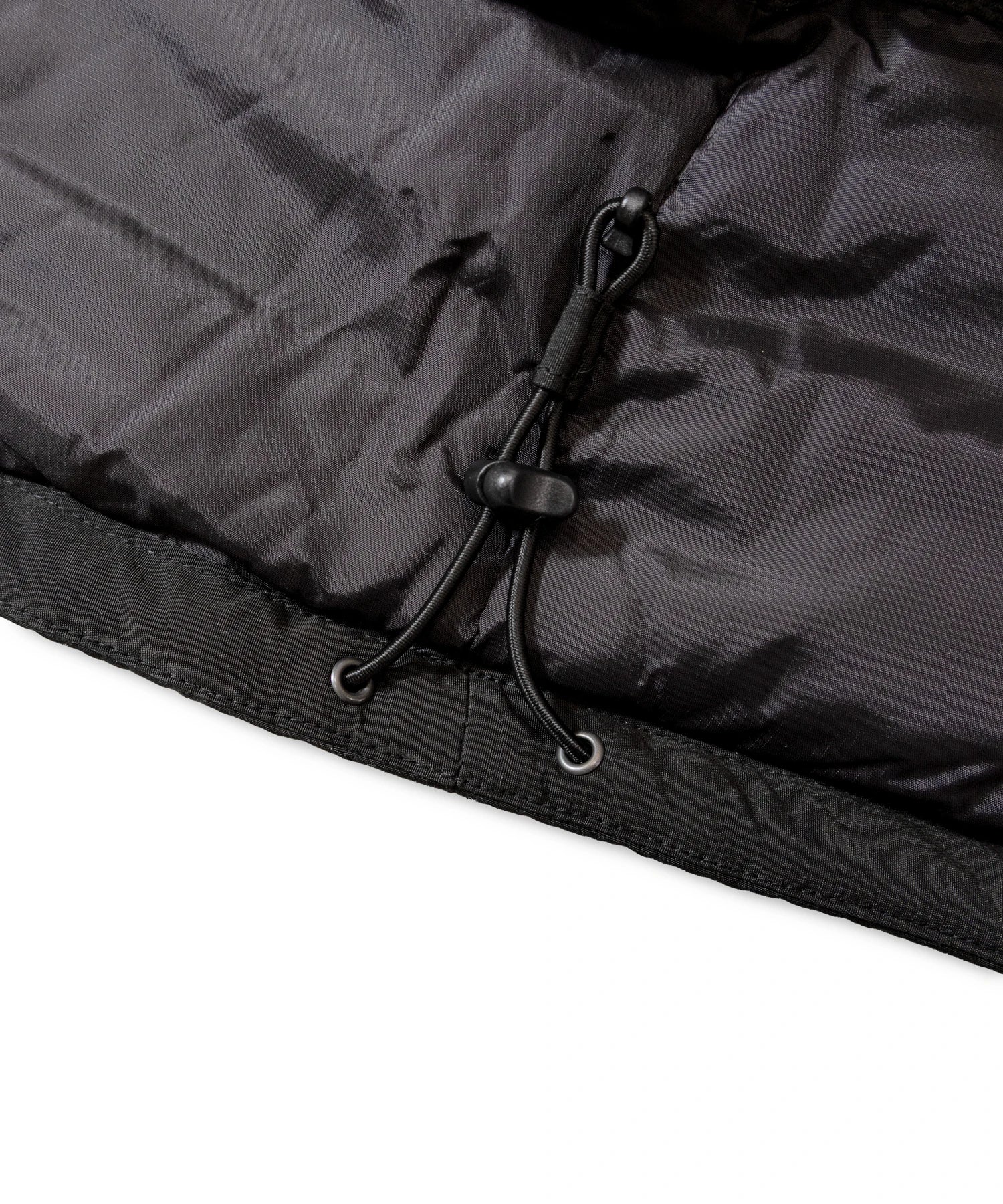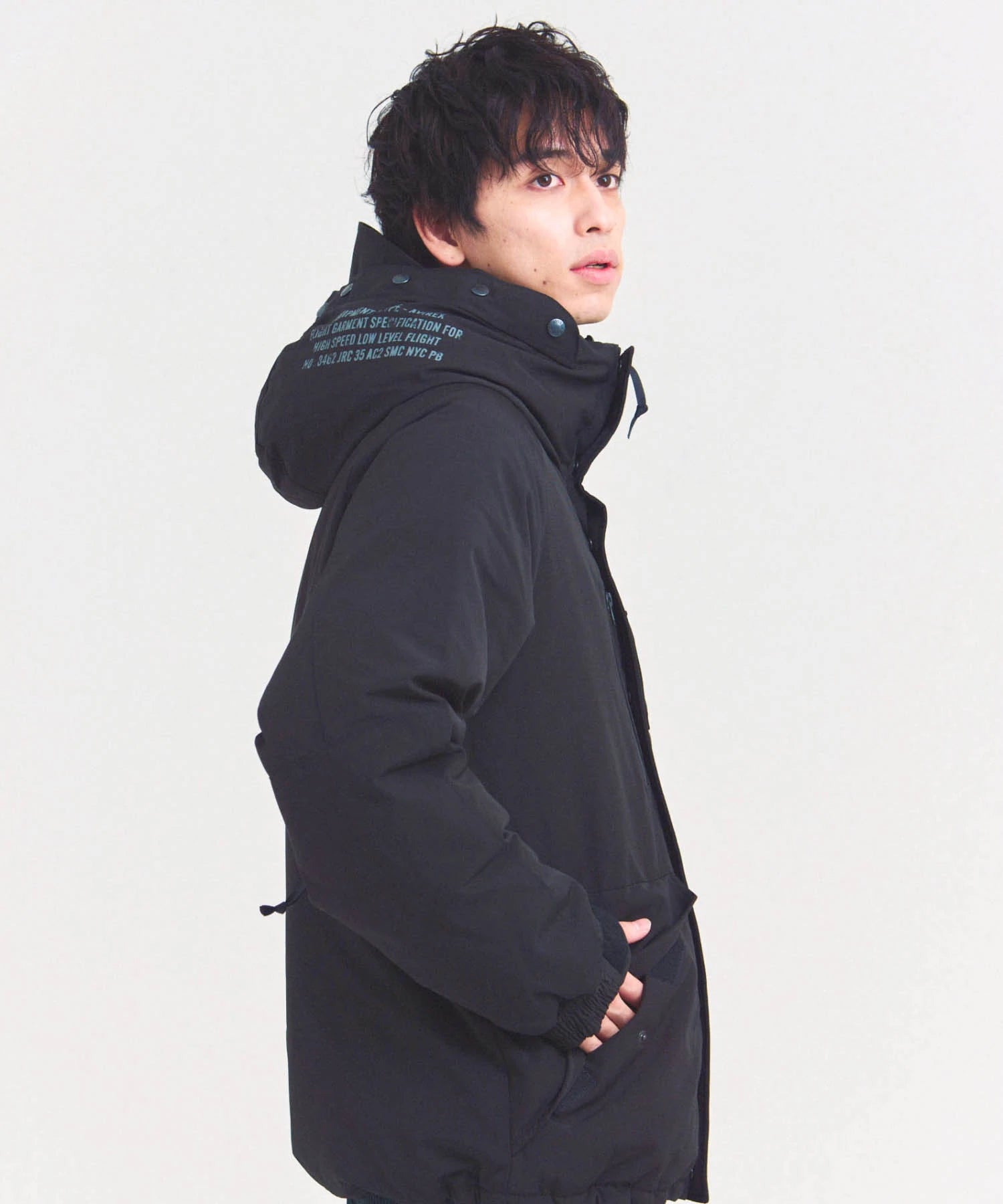 素材ブラック表生地:ポリエステル85%、コットン15%裏生地:ナイロン100%別布部分:ポリエステル100%詰物:ダウン80%、フェザー20%中わた:ポリエステル100%