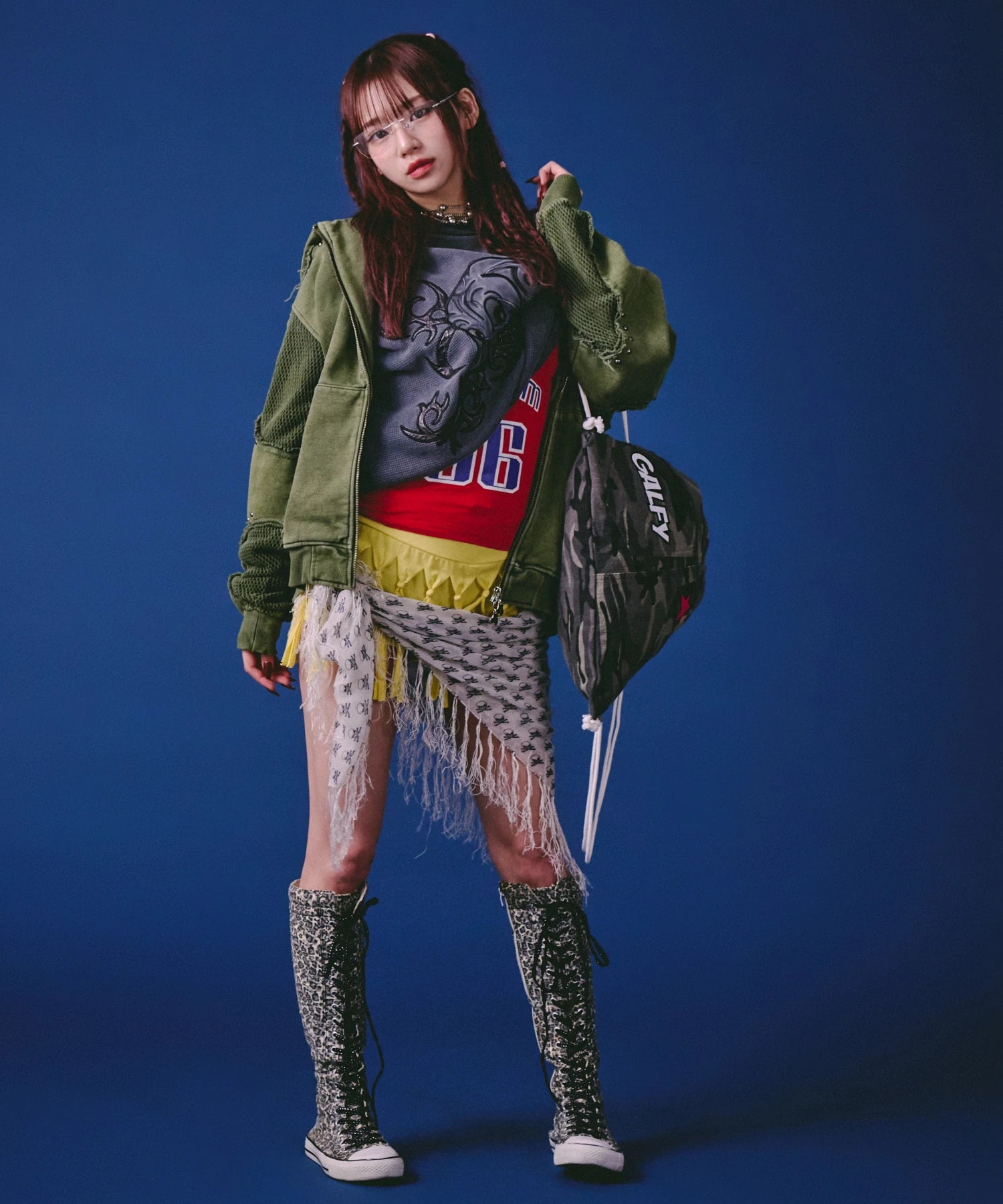 90年代のストリートカルチャーをベースに当時の「バブル感」を継承しつつ現在のトレンドとのMIX感を重要視し、都会的かつアクティブな提案を展開していく超話題の唯一無二の炎上ブランド。