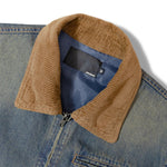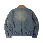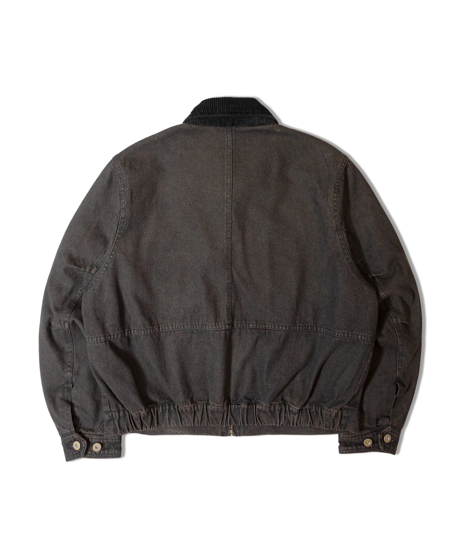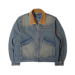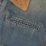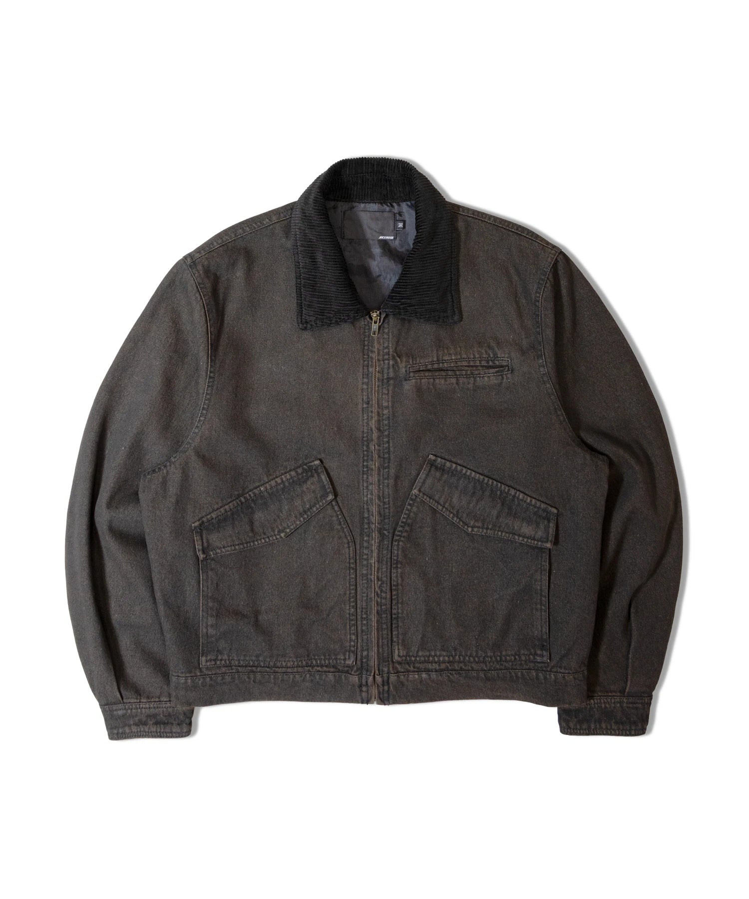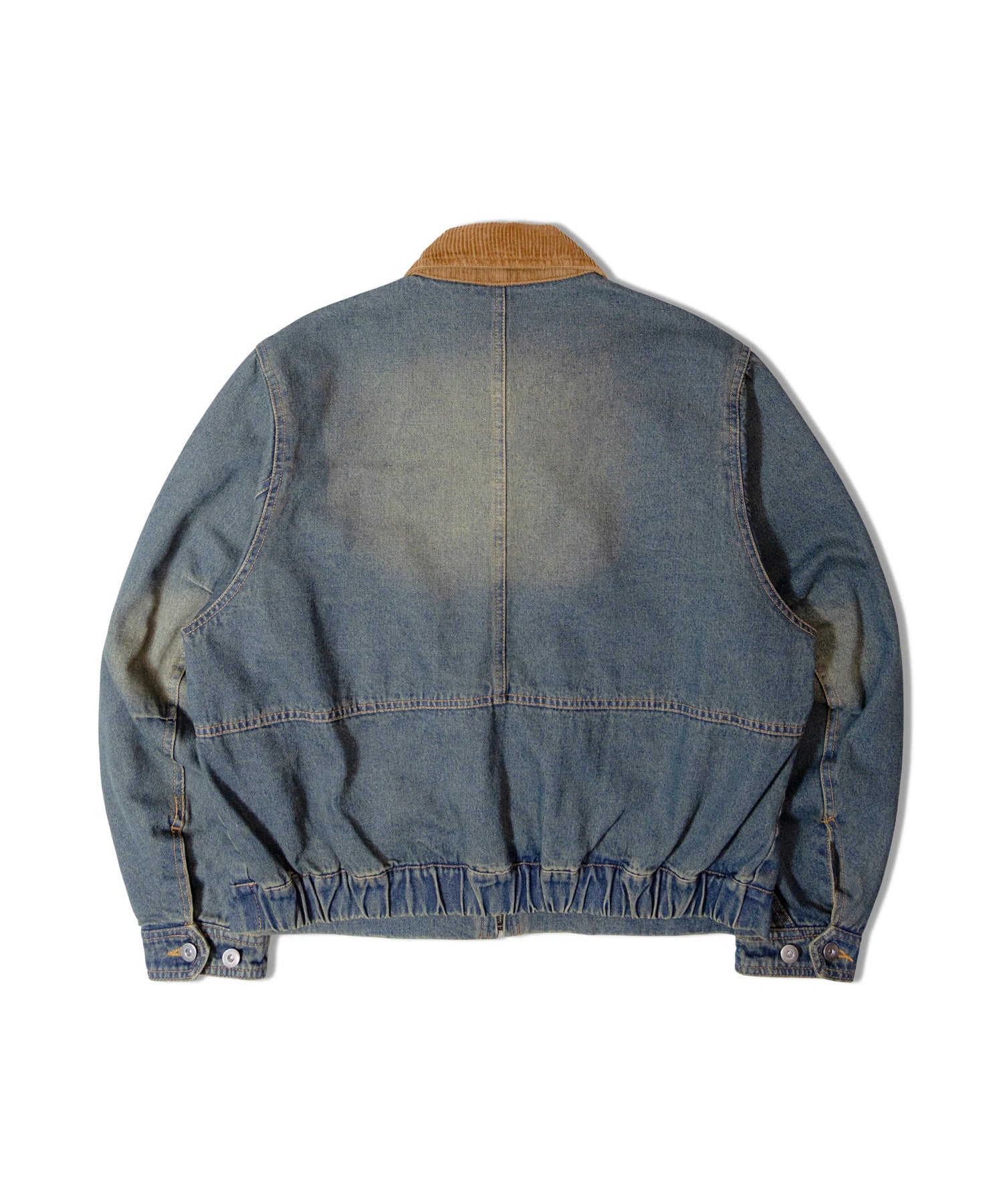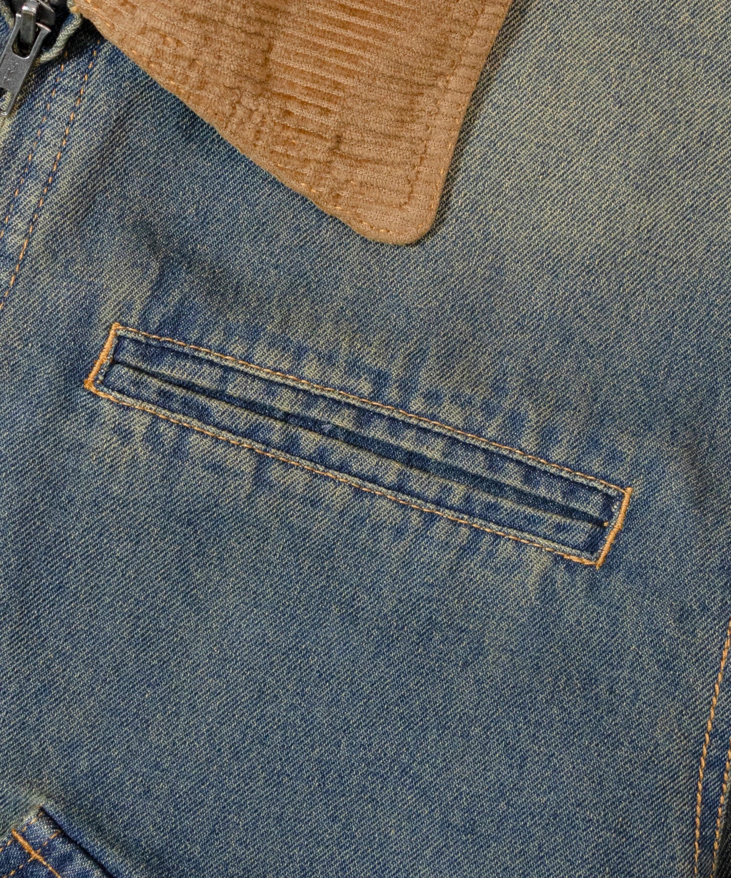 襟コーデュロイ切り替えがポイントのジップアップデニムジャケット。