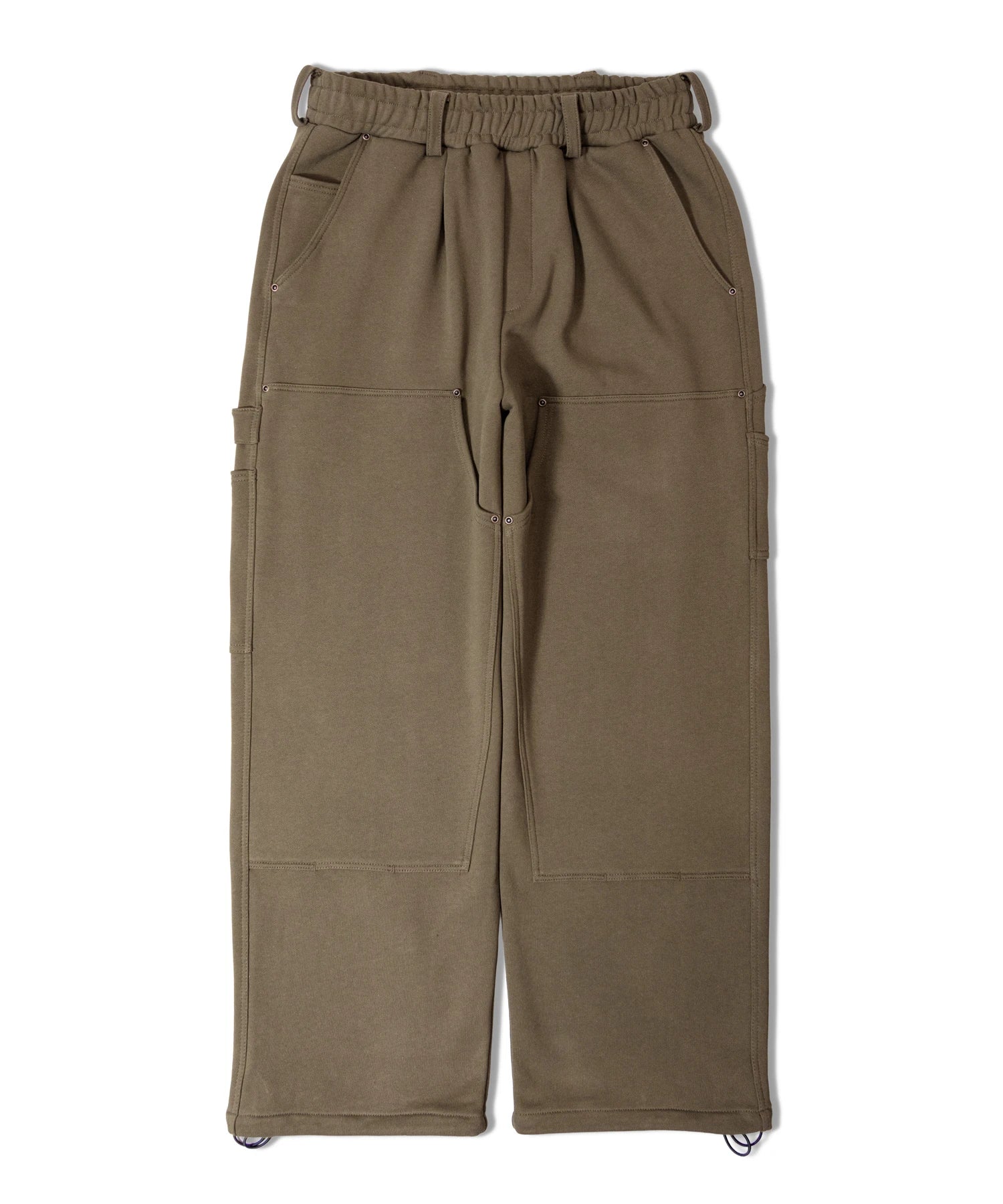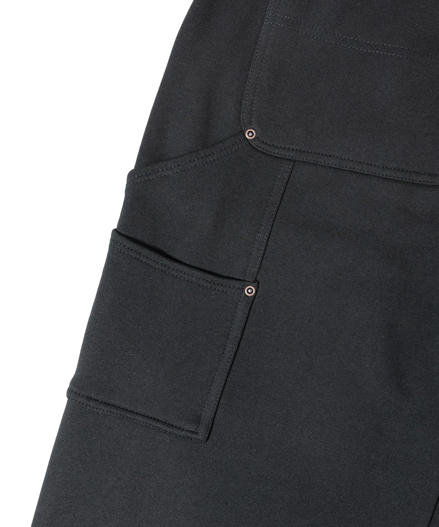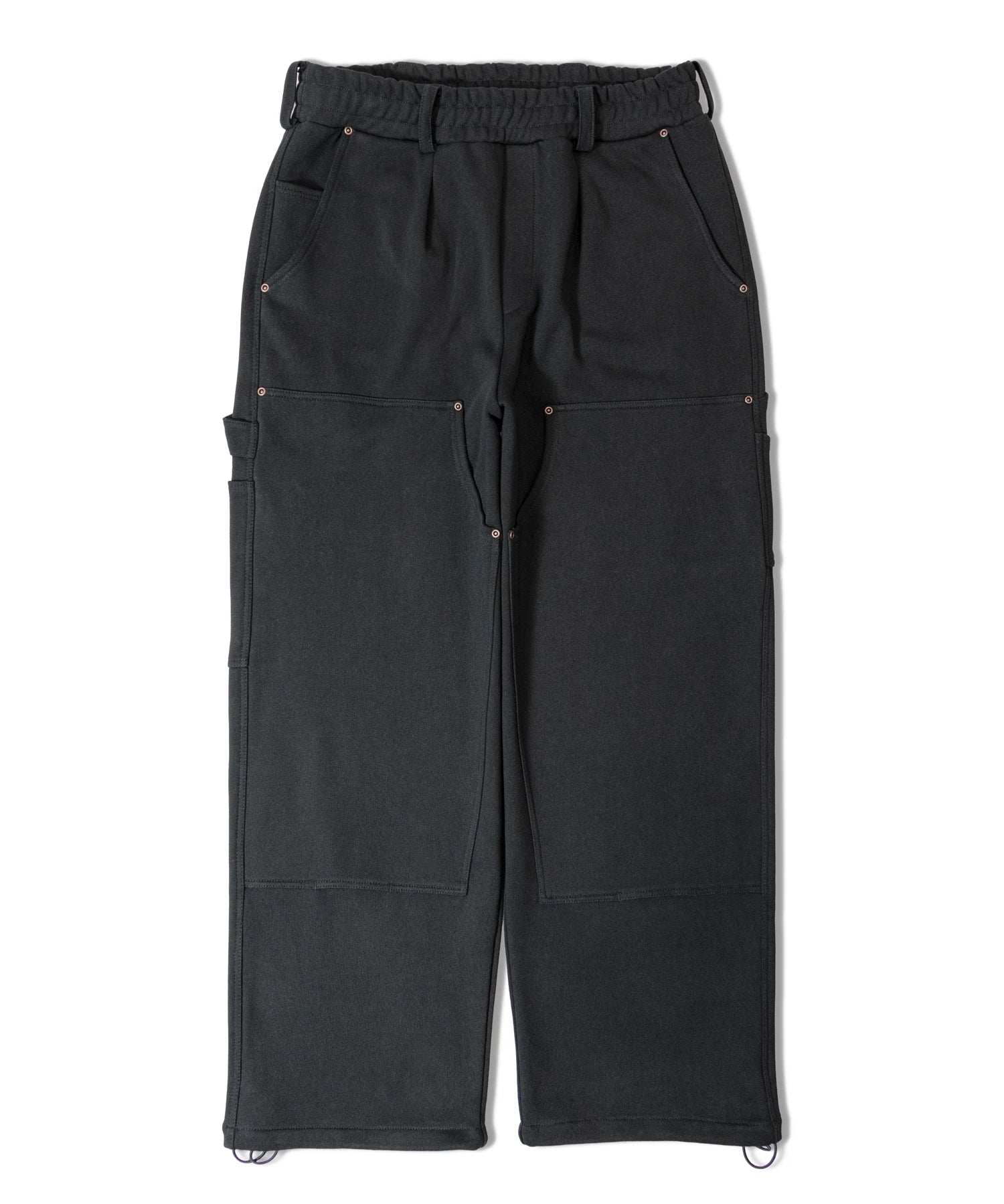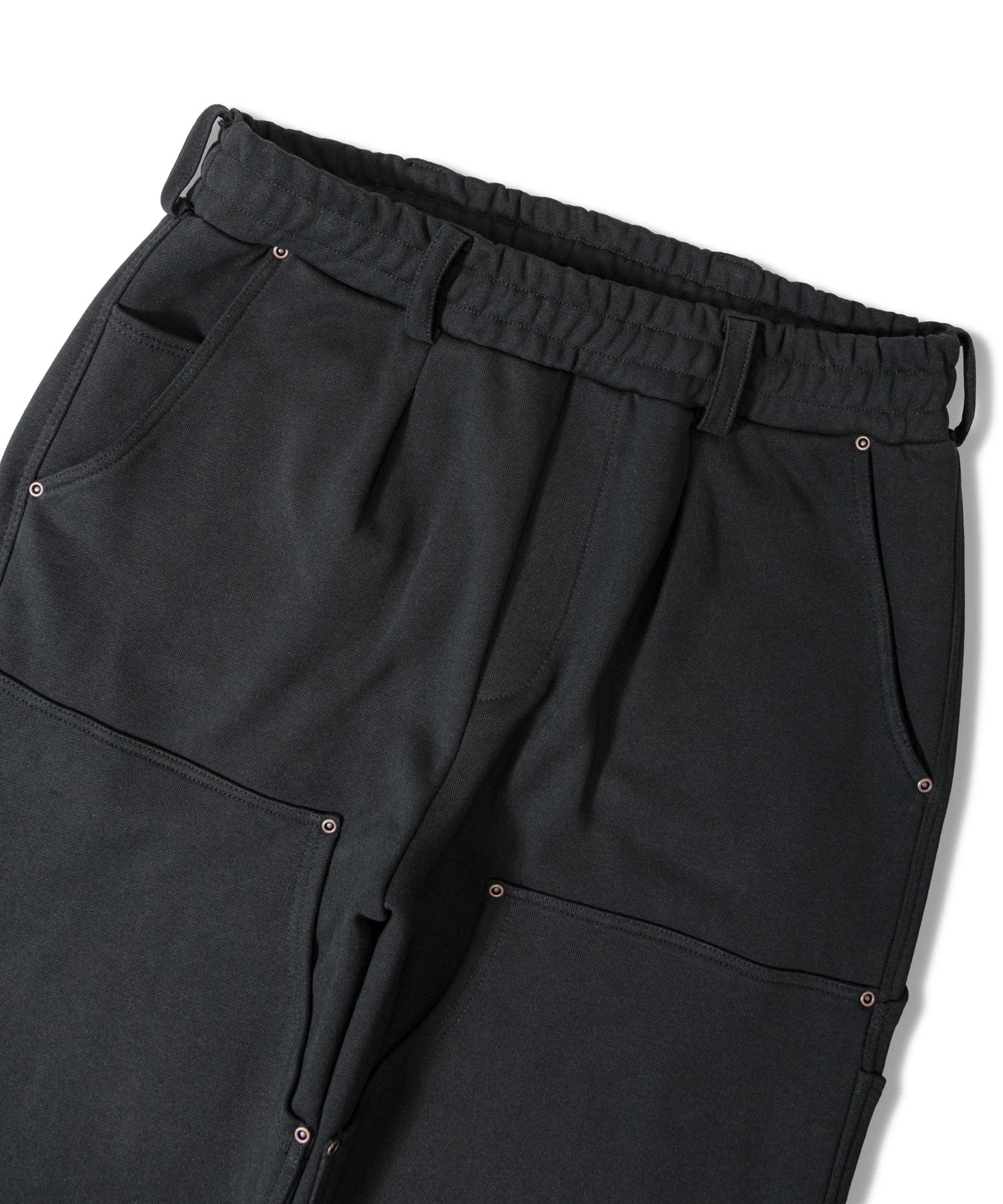 ワークウェアの定番であるダブルニーパンツのデザインをスウェット生地に落とし込んだ、