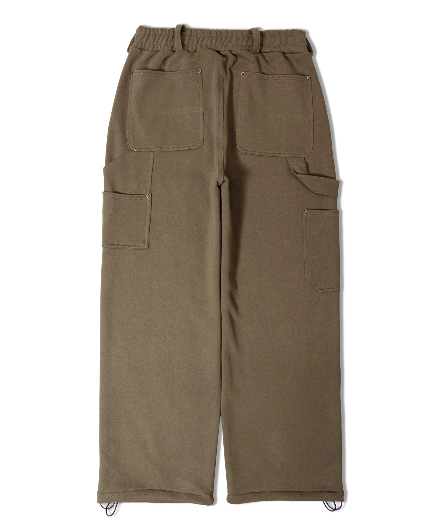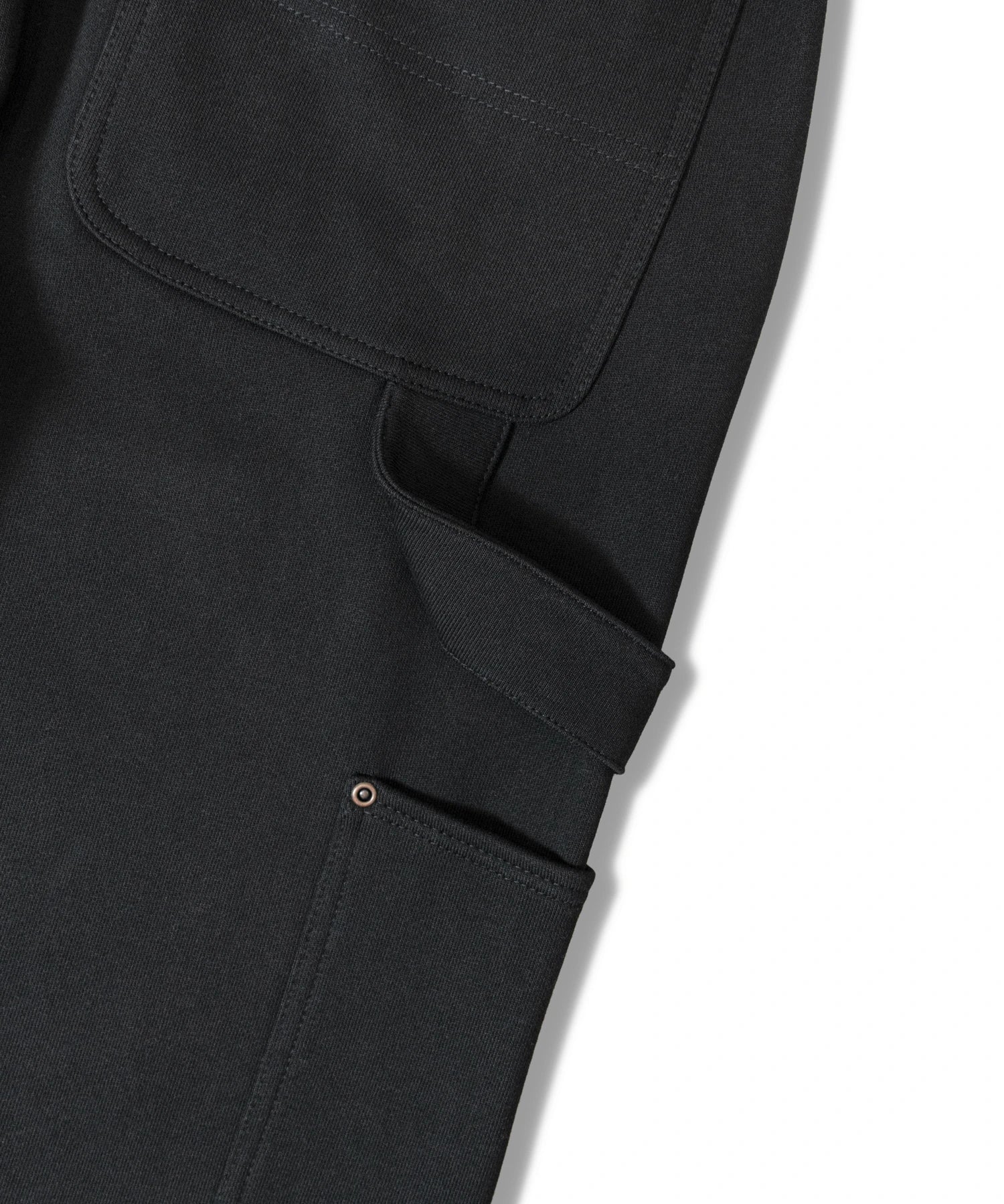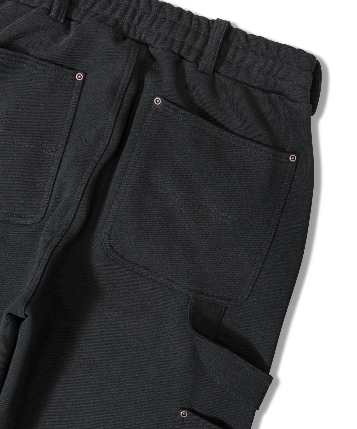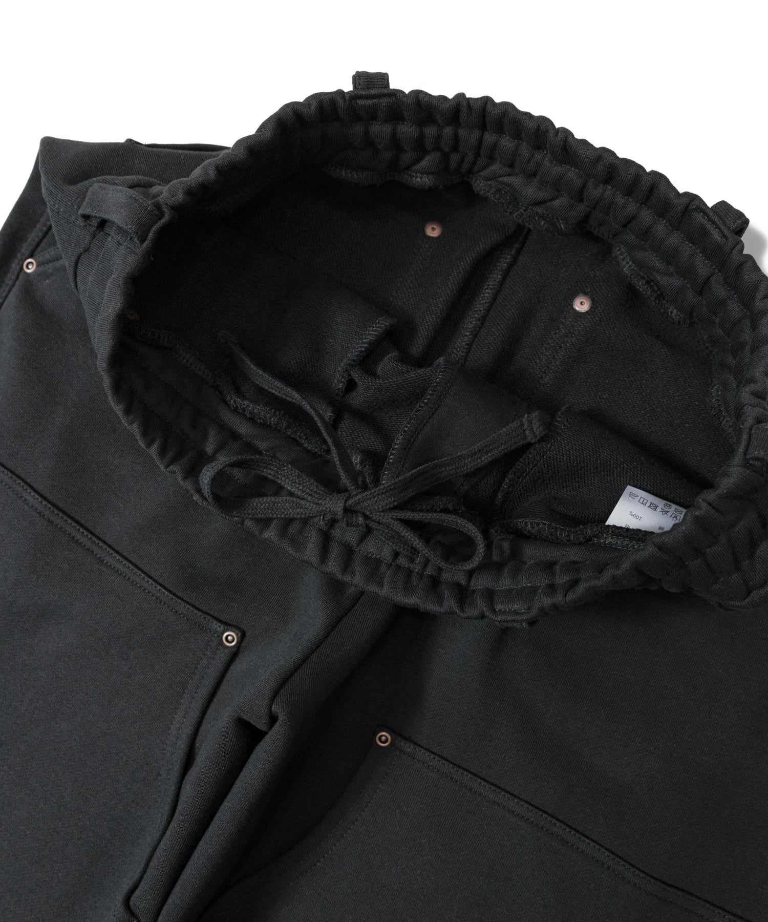 ワークウェアの定番であるダブルニーパンツのデザインをスウェット生地に落とし込んだ、