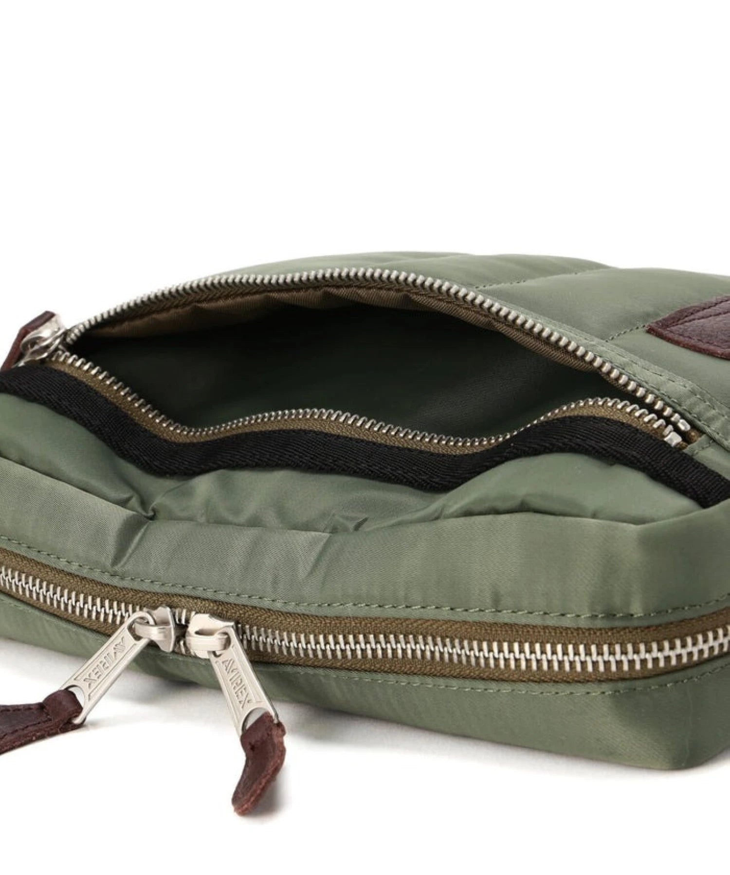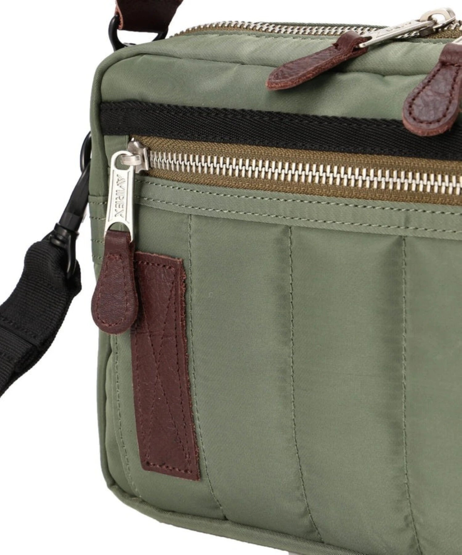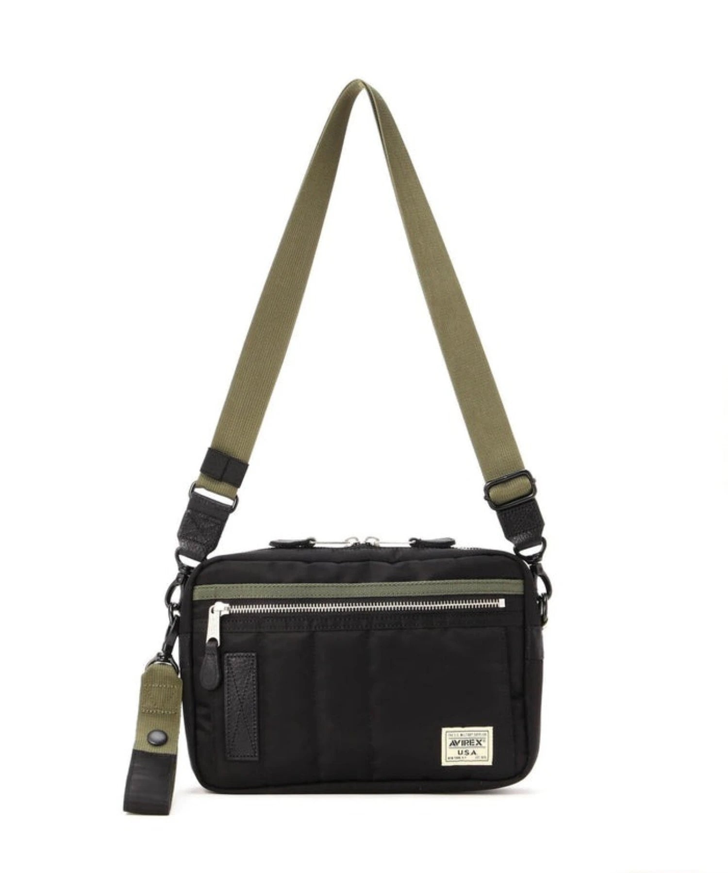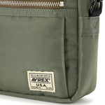 VIREXの定番MA-1と同じ生地を使用したナイロンバッグシリーズから登場した、MA-1をモチーフにしたショルダーバッグ。表地にはナイロンツイル、中間層にポリエステル綿、裏地まで含めた3レイヤー構造を採用し、MA-1特有のふっくらとした風合いとタフな表情をそのままバッグに落とし込んでいます。着脱式のショルダーベルト付きで、シーンに応じてショルダーバッグとしても、ベルトを外して単体のポーチとしても使用可能。長財布やスマートフォンなど、日常使いに欠かせない小物をしっかり収納できるサイズ感で、実用性も申し分なし。さらにループストラップ付きのため、アクセサリー感覚でのアレンジや持ち運びにも対応します。MA-1の無骨さとAVIREXらしいミリタリー感を、デイリーに使いやすいバッグへと昇華させたアイテムです。