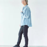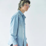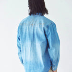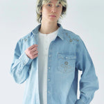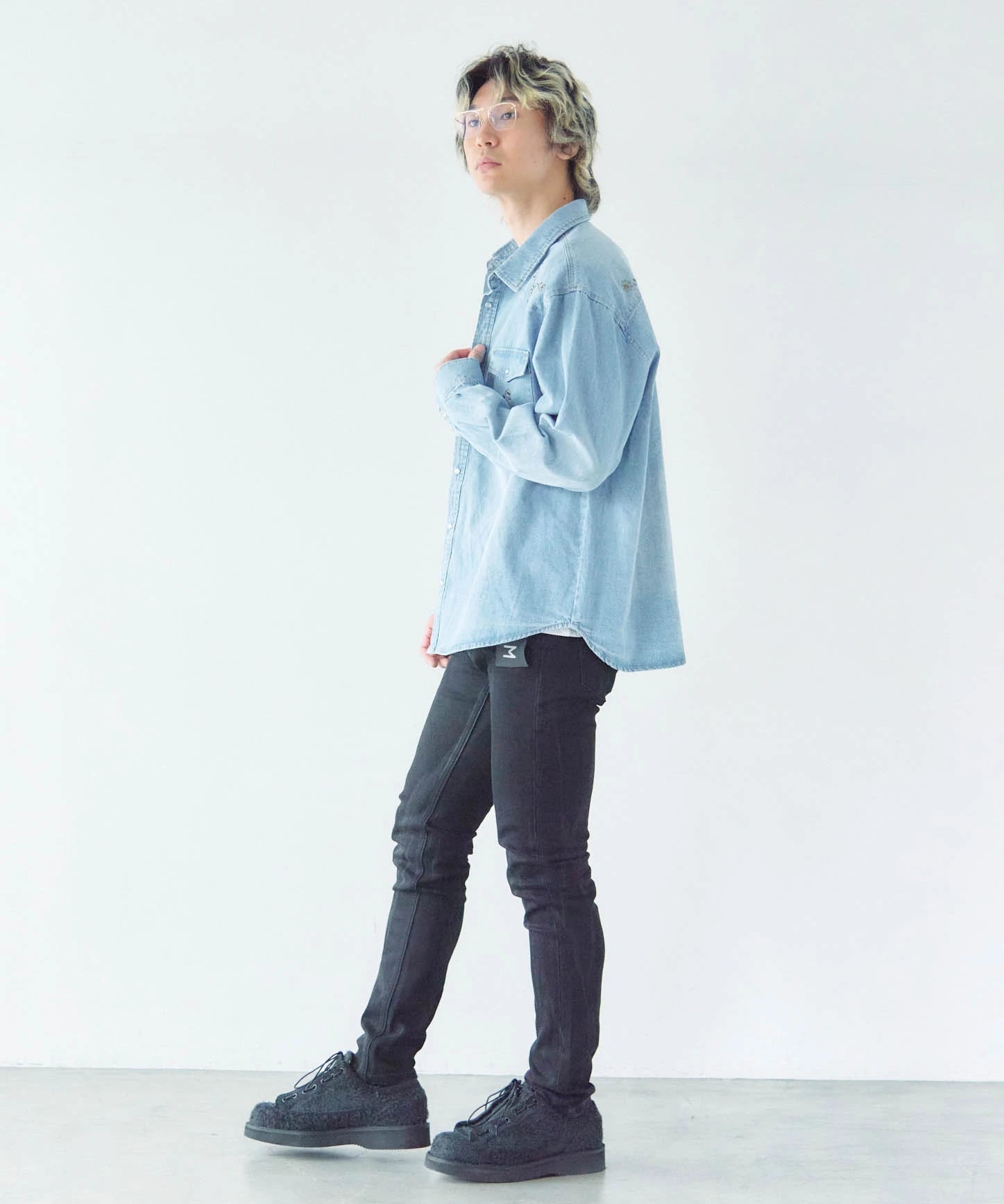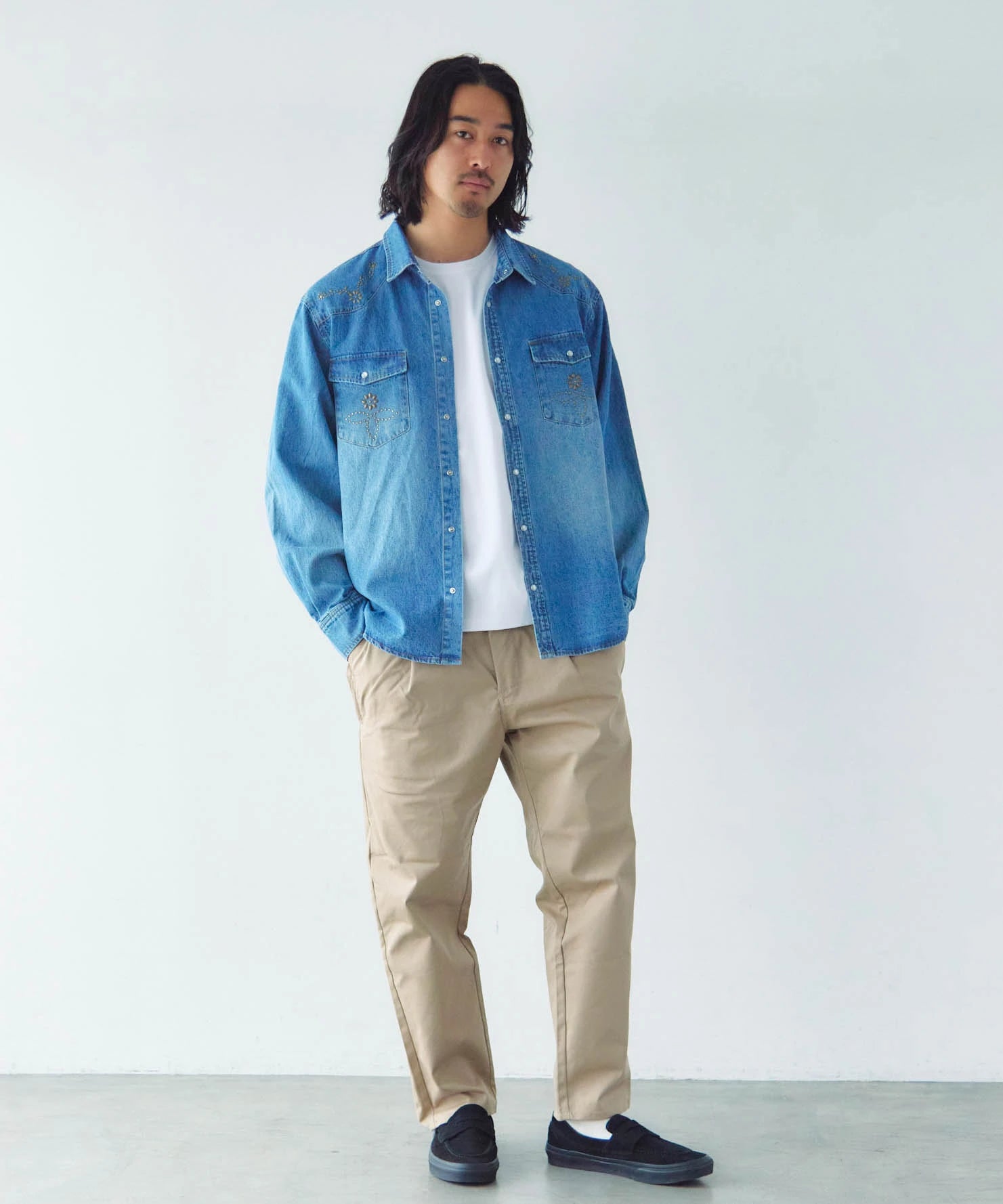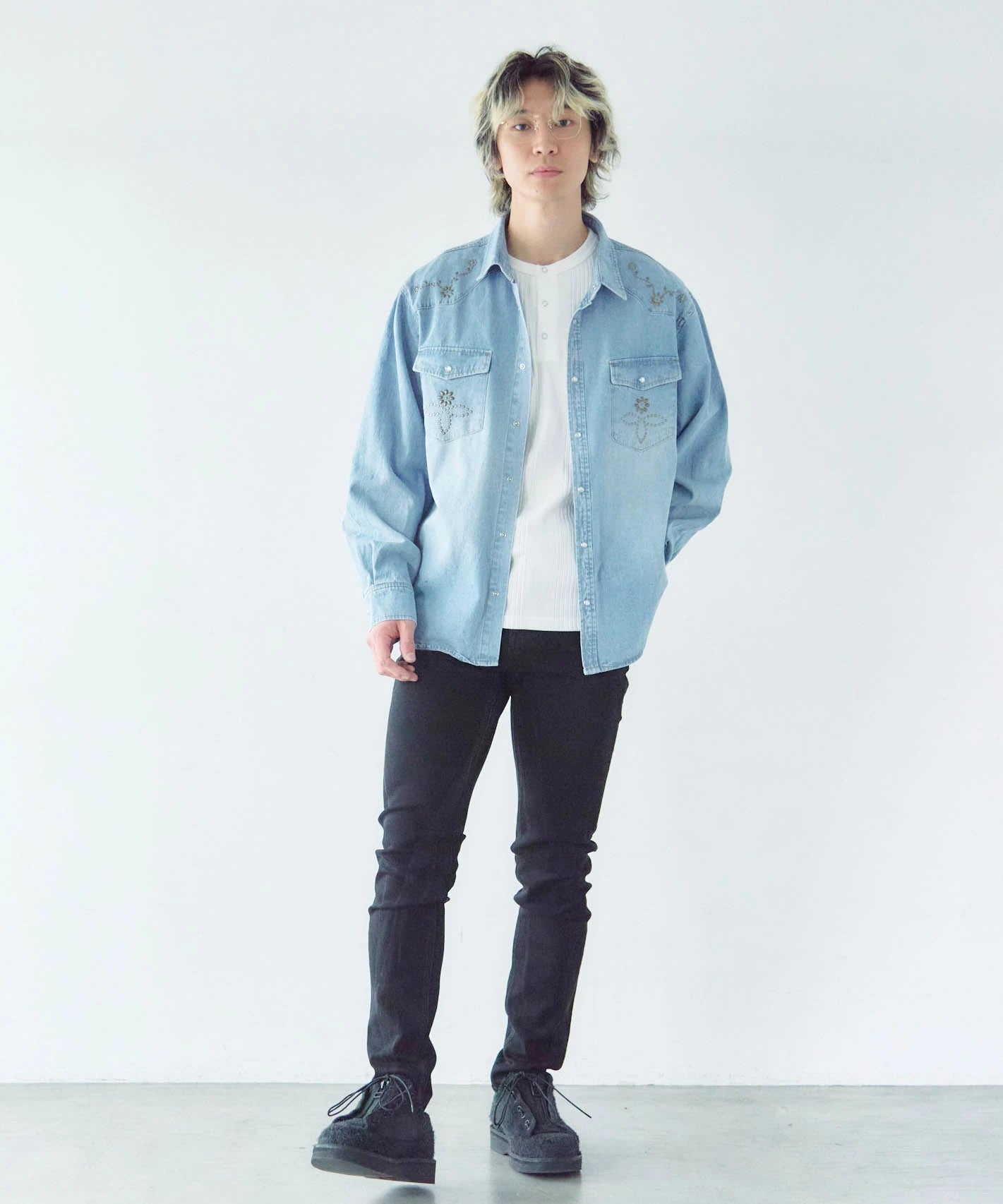 スタッズが目を惹くデニムロングスリーブシャツ。