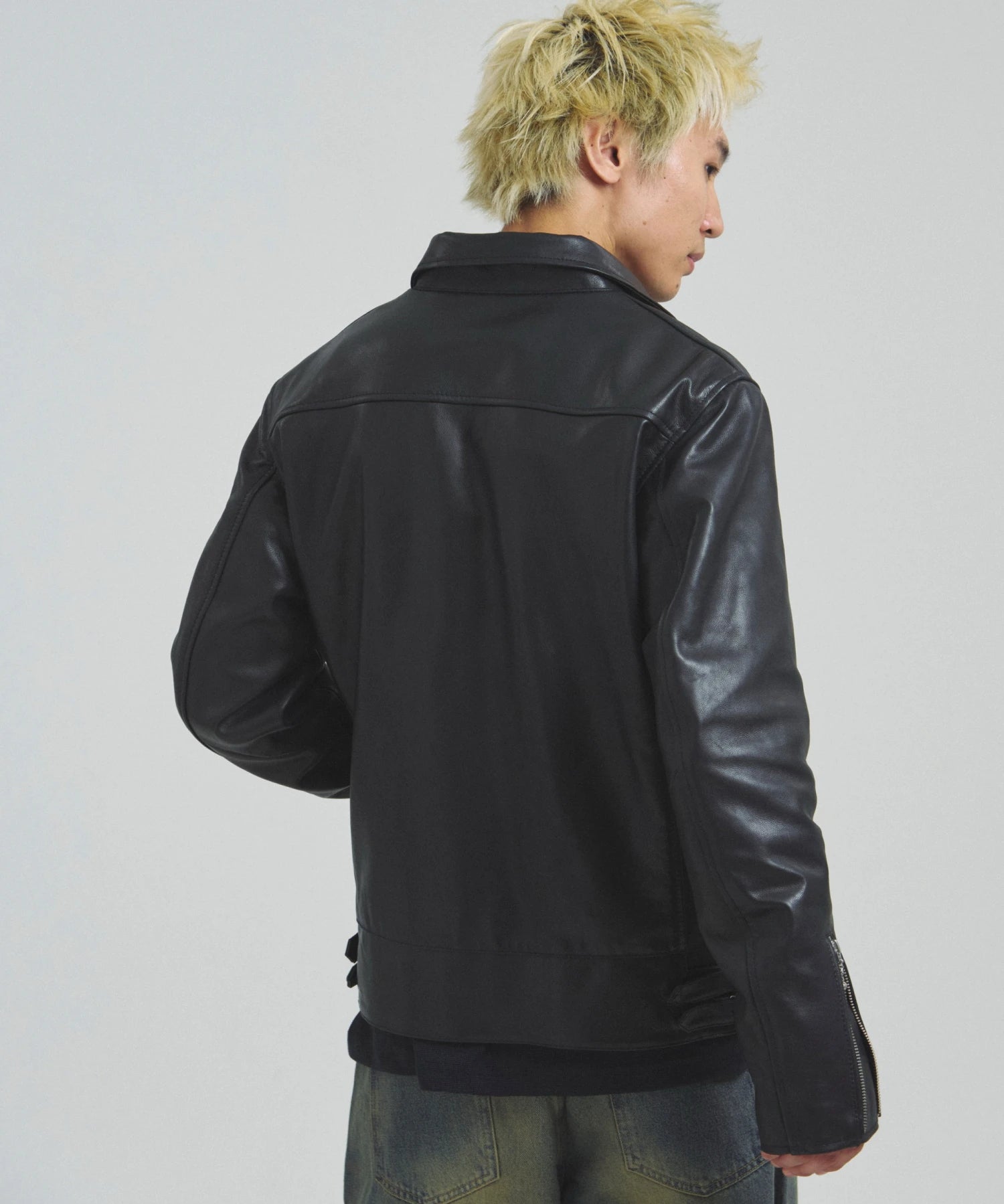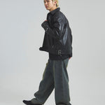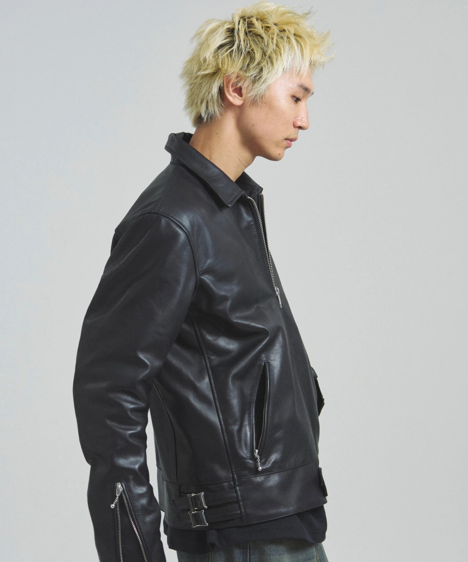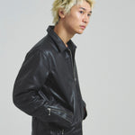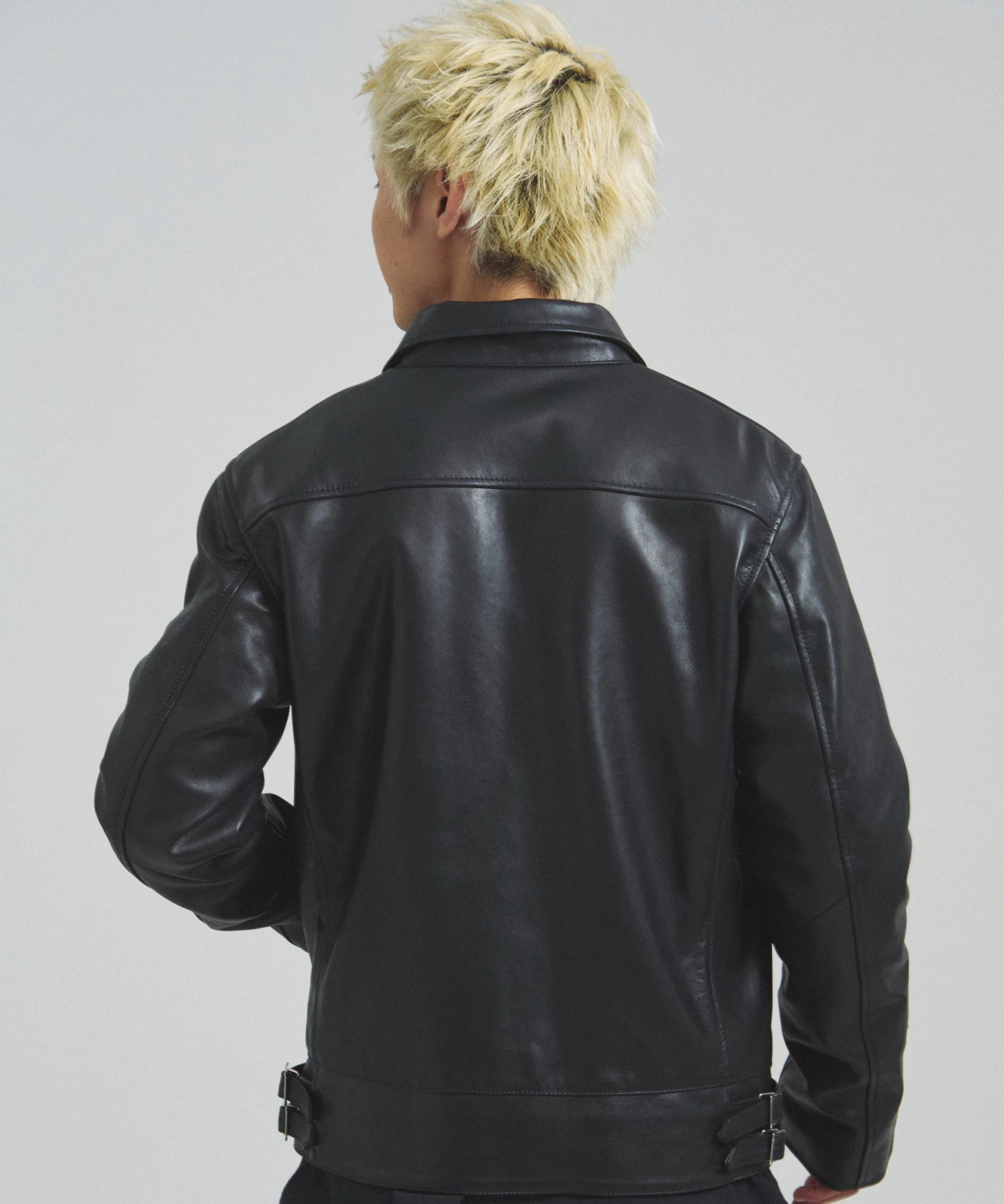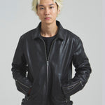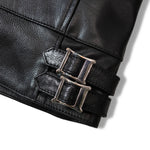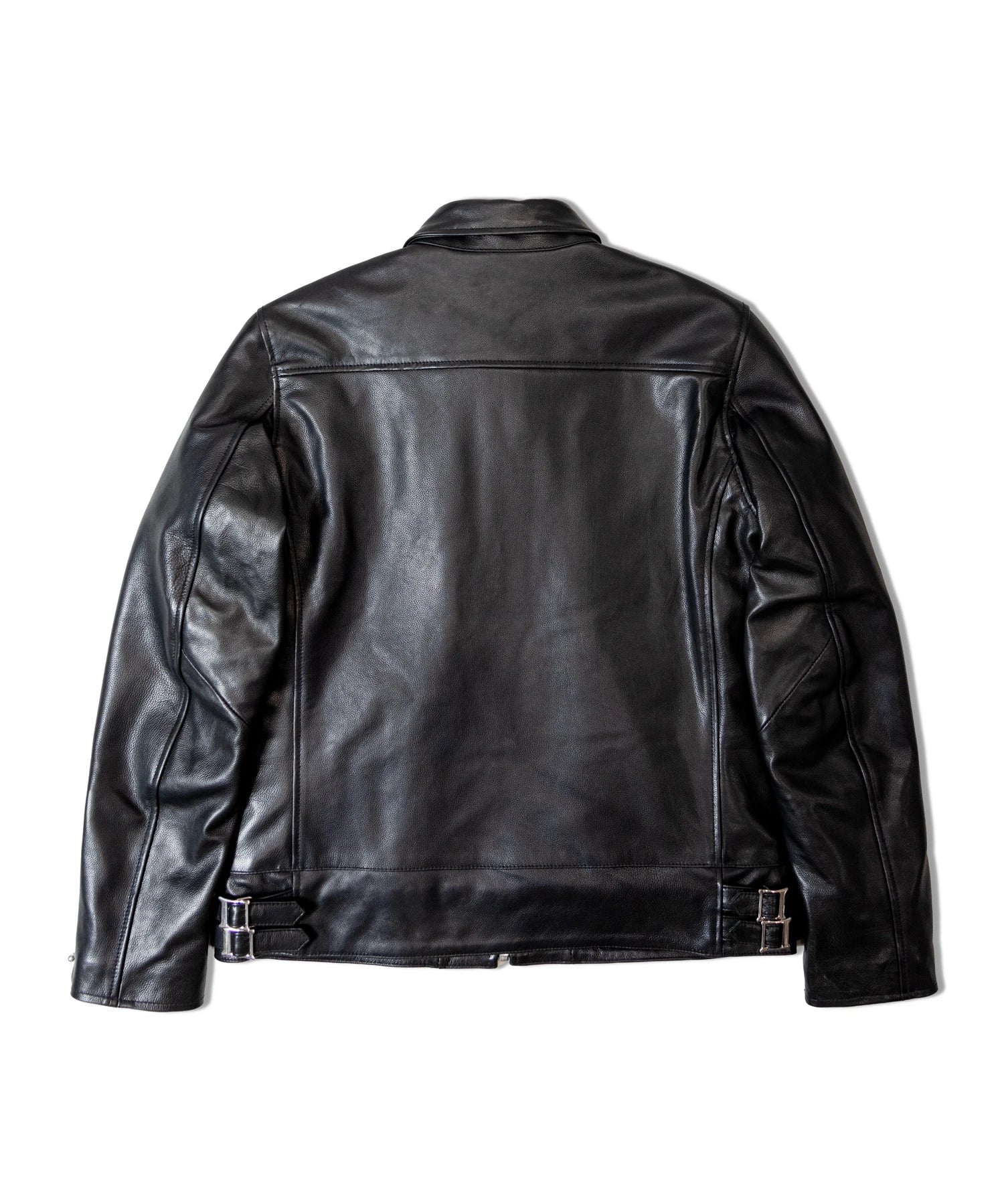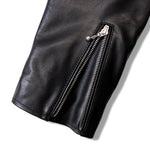 ≪BUFFARO CALF LEATHER SINGLE RIDERS JACKET≫バッファローカーフ(水牛の子牛)レザーを贅沢に使用し、しなやかさと耐久性を兼ね備えた一着です。襟付きのシングルライダースデザインで、洗練された大人の雰囲気を演出。裏地には薄中綿入りのキルティングを採用し、保温性と着心地を両立しています。シルエットは程よく現代的にアレンジされ、アメカジからモードまで幅広く対応。シンプルながらも高級感ある佇まいは、着込むほどに身体に馴染み、経年変化を楽しめます。ジーンズやテーパードパンツ、ワイドパンツまで、多彩なボトムスと好相性。時代を超えて愛されるライダースジャケットを、ぜひワードローブに加えてください。