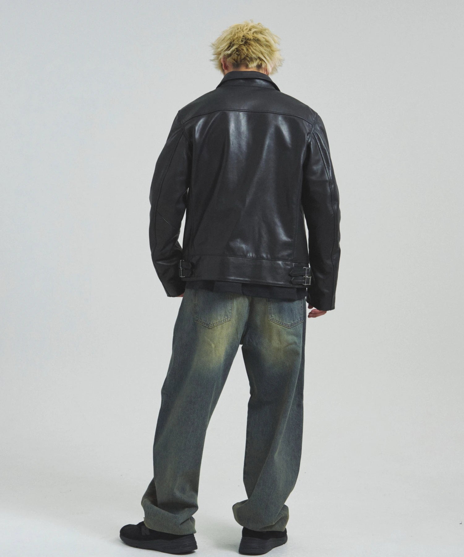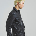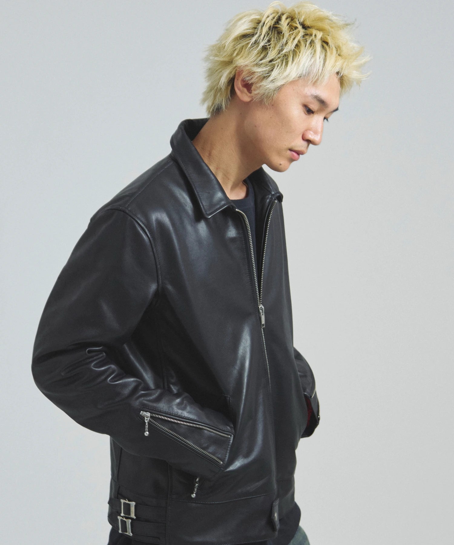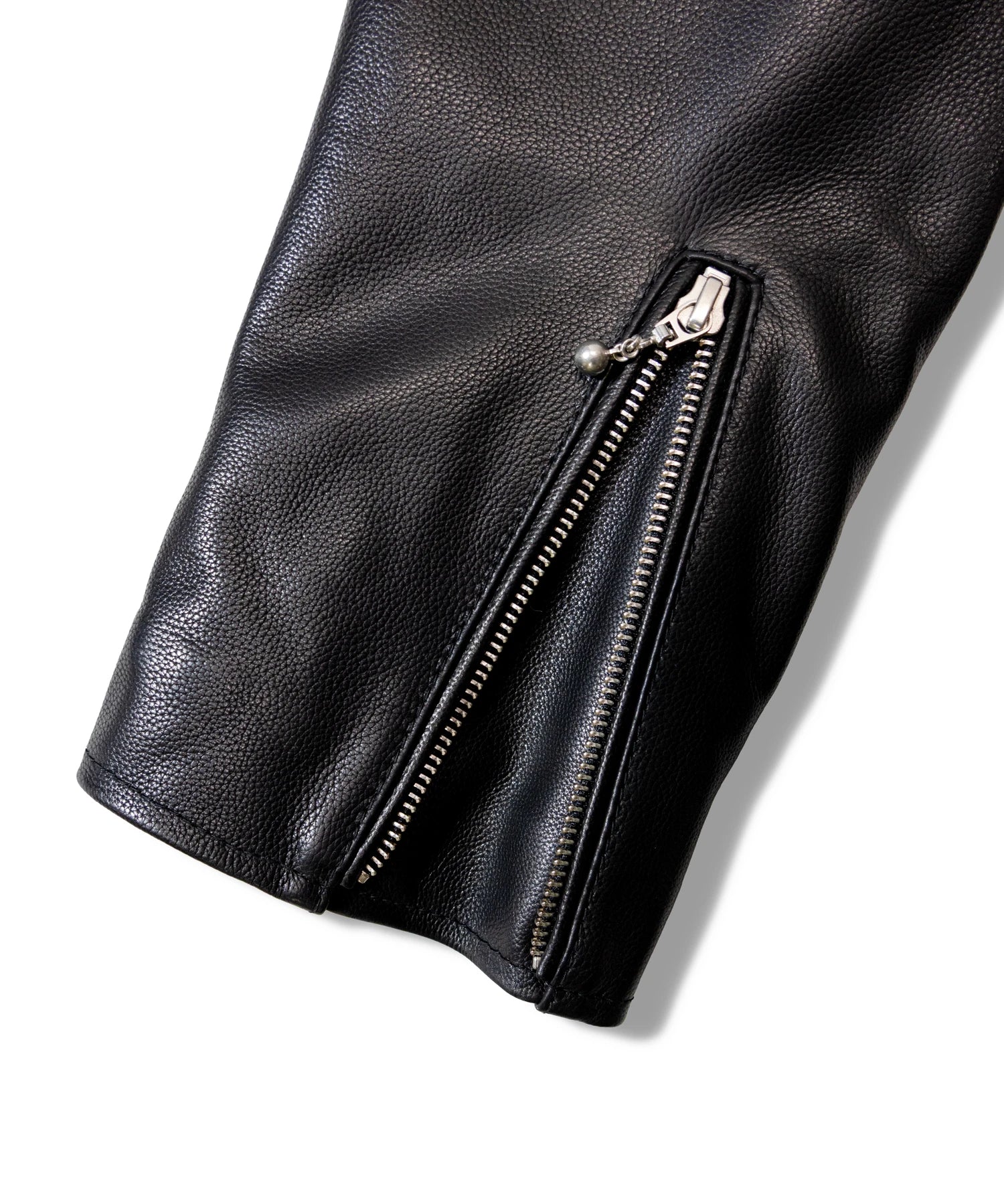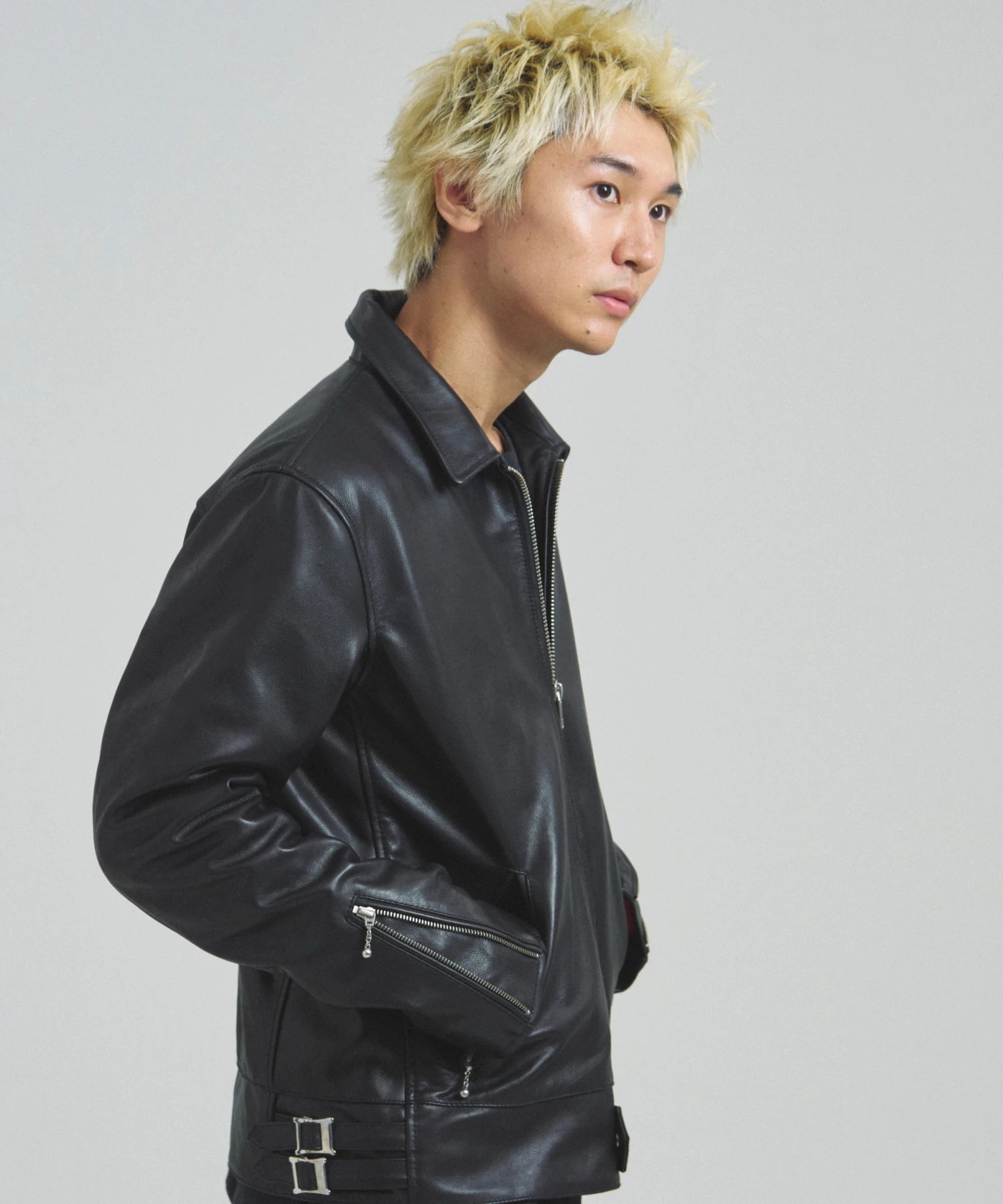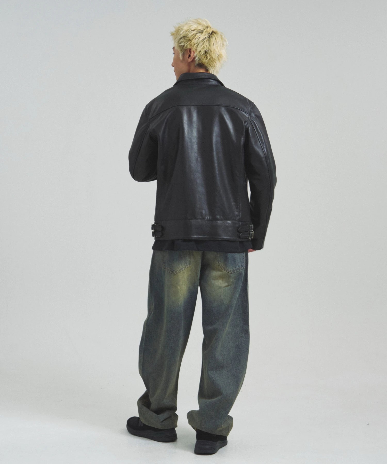 ≪BUFFARO CALF LEATHER SINGLE RIDERS JACKET≫バッファローカーフ(水牛の子牛)レザーを贅沢に使用し、しなやかさと耐久性を兼ね備えた一着です。襟付きのシングルライダースデザインで、洗練された大人の雰囲気を演出。裏地には薄中綿入りのキルティングを採用し、保温性と着心地を両立しています。シルエットは程よく現代的にアレンジされ、アメカジからモードまで幅広く対応。シンプルながらも高級感ある佇まいは、着込むほどに身体に馴染み、経年変化を楽しめます。ジーンズやテーパードパンツ、ワイドパンツまで、多彩なボトムスと好相性。時代を超えて愛されるライダースジャケットを、ぜひワードローブに加えてください。