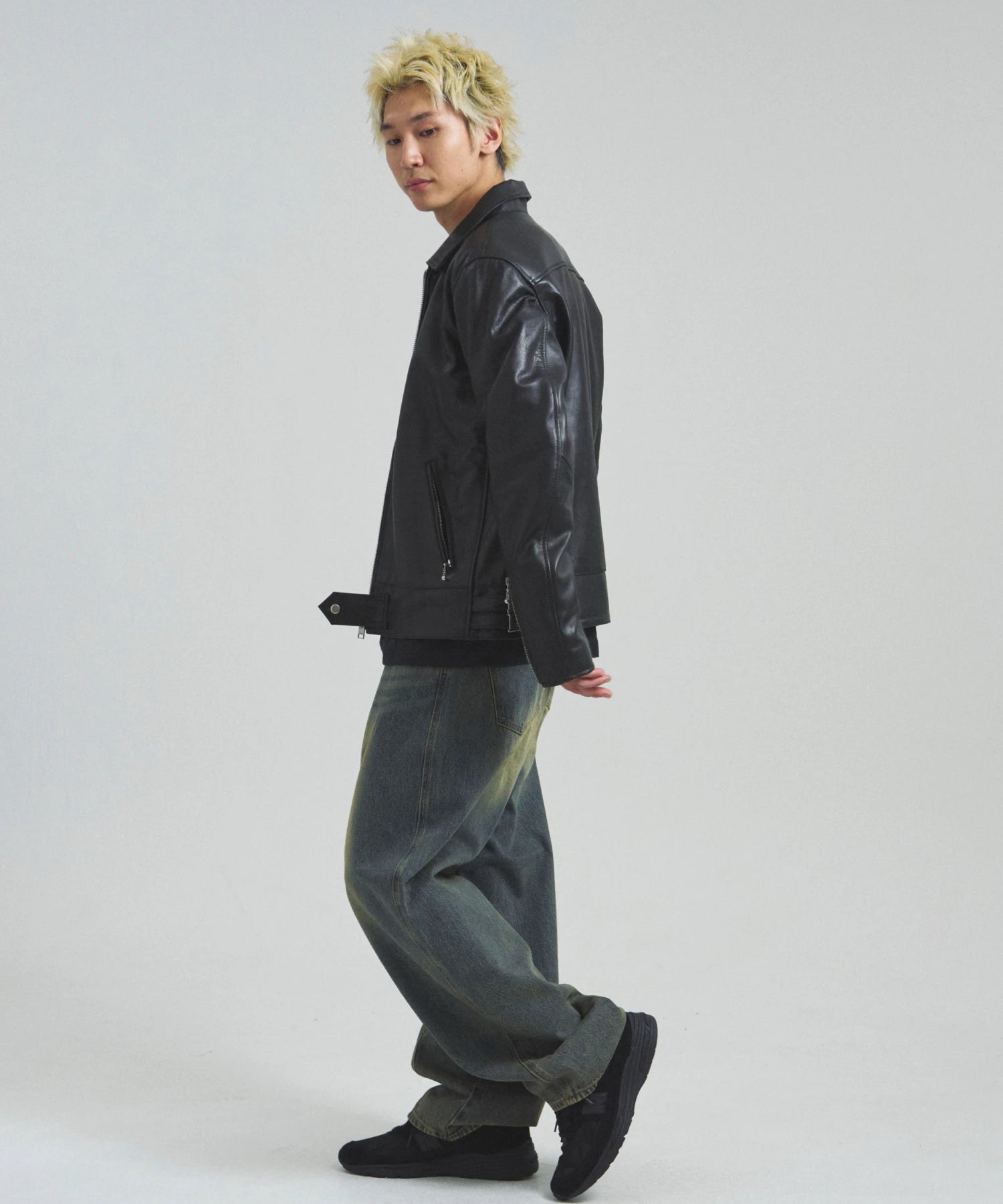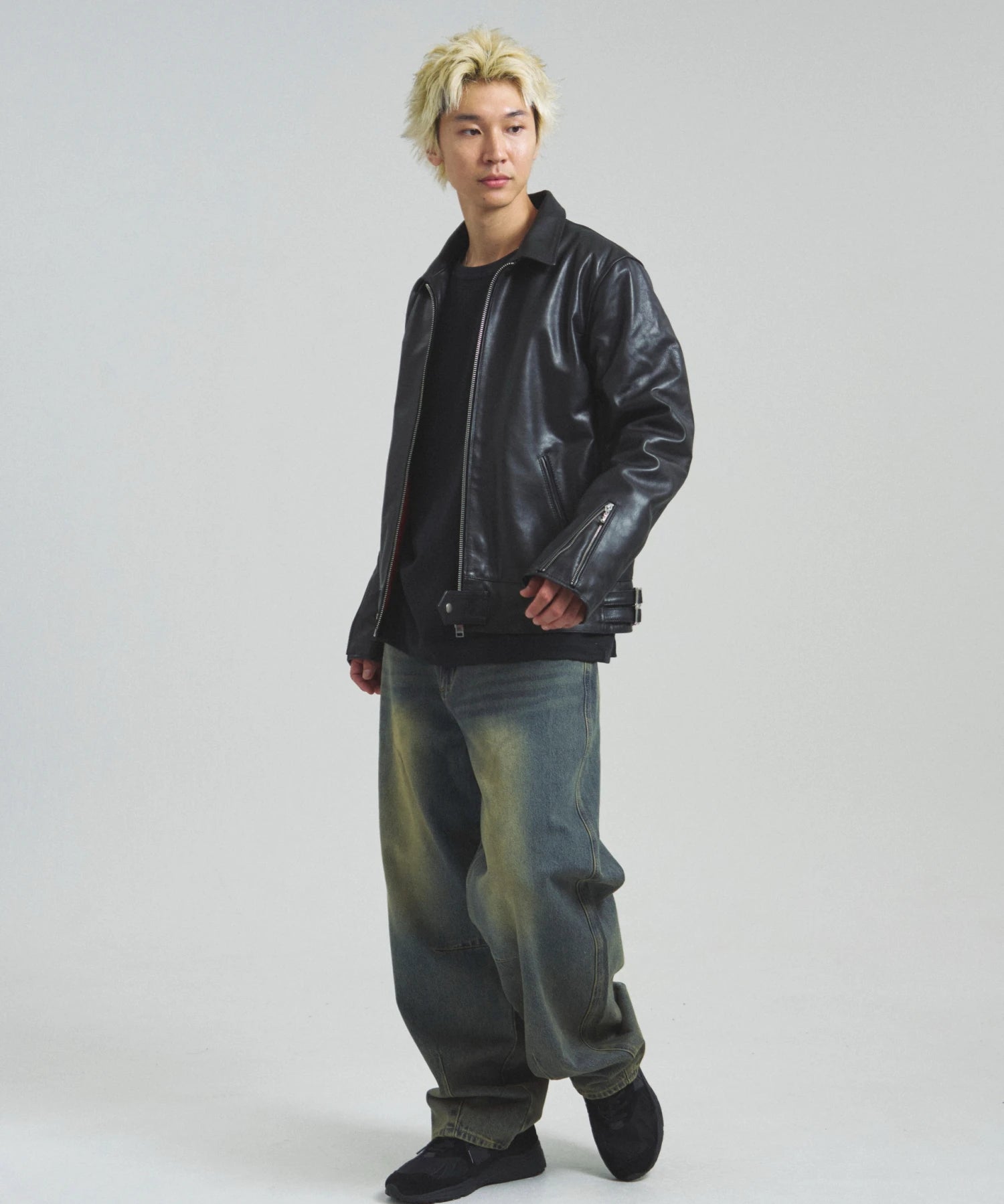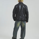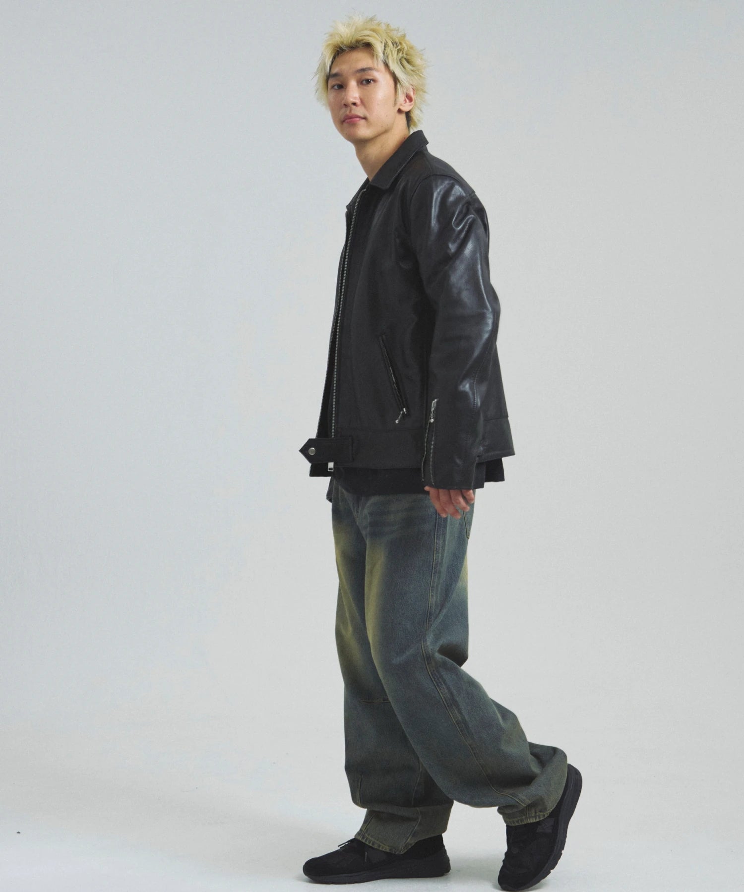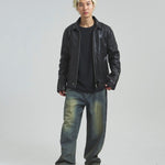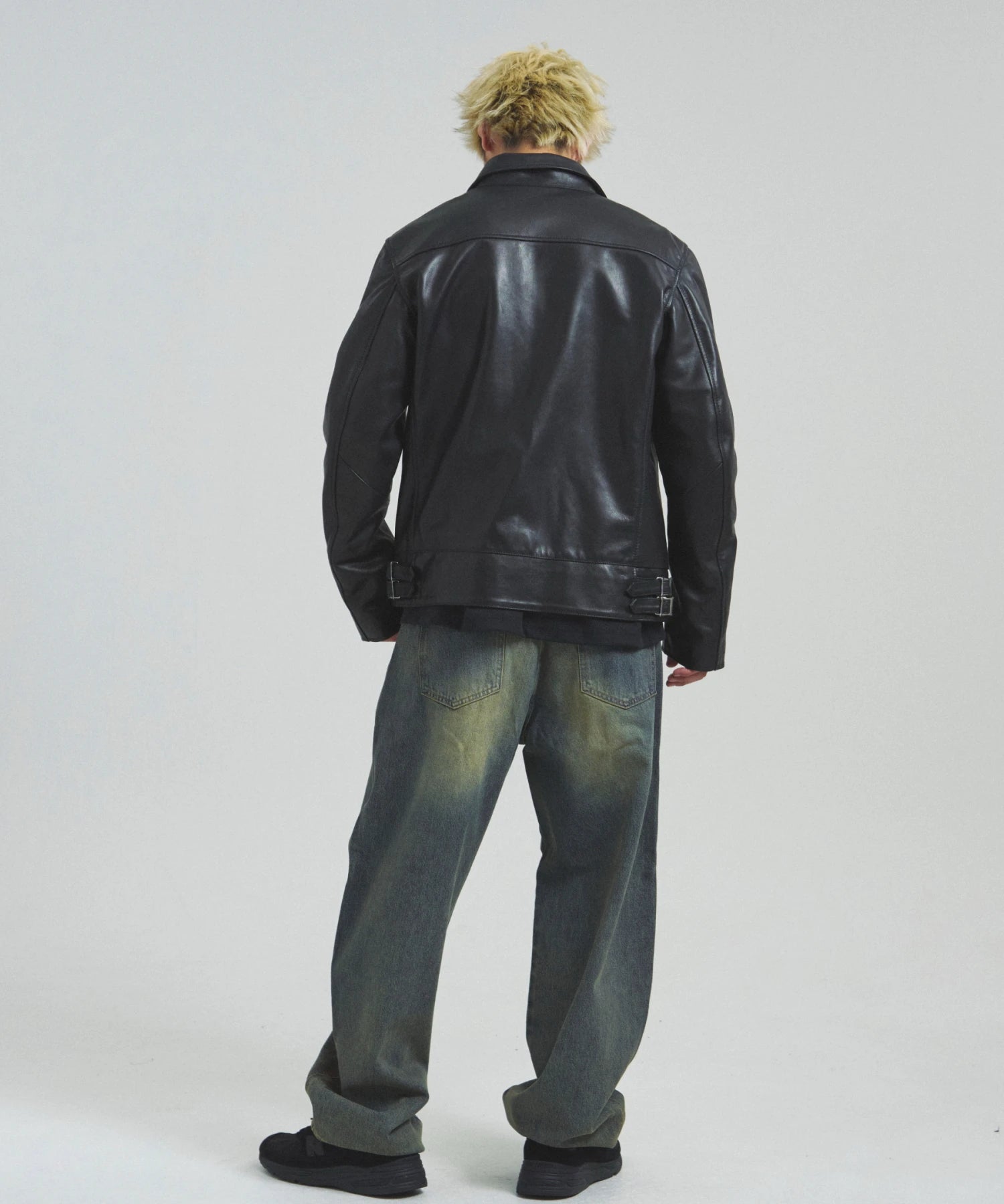 ≪BUFFARO CALF LEATHER SINGLE RIDERS JACKET≫バッファローカーフ(水牛の子牛)レザーを贅沢に使用し、しなやかさと耐久性を兼ね備えた一着です。襟付きのシングルライダースデザインで、洗練された大人の雰囲気を演出。裏地には薄中綿入りのキルティングを採用し、保温性と着心地を両立しています。シルエットは程よく現代的にアレンジされ、アメカジからモードまで幅広く対応。シンプルながらも高級感ある佇まいは、着込むほどに身体に馴染み、経年変化を楽しめます。ジーンズやテーパードパンツ、ワイドパンツまで、多彩なボトムスと好相性。時代を超えて愛されるライダースジャケットを、ぜひワードローブに加えてください。