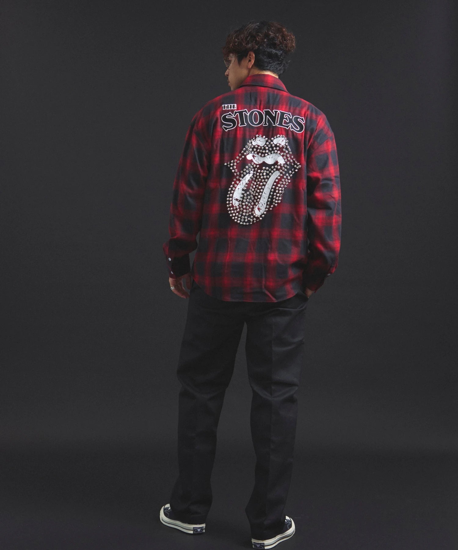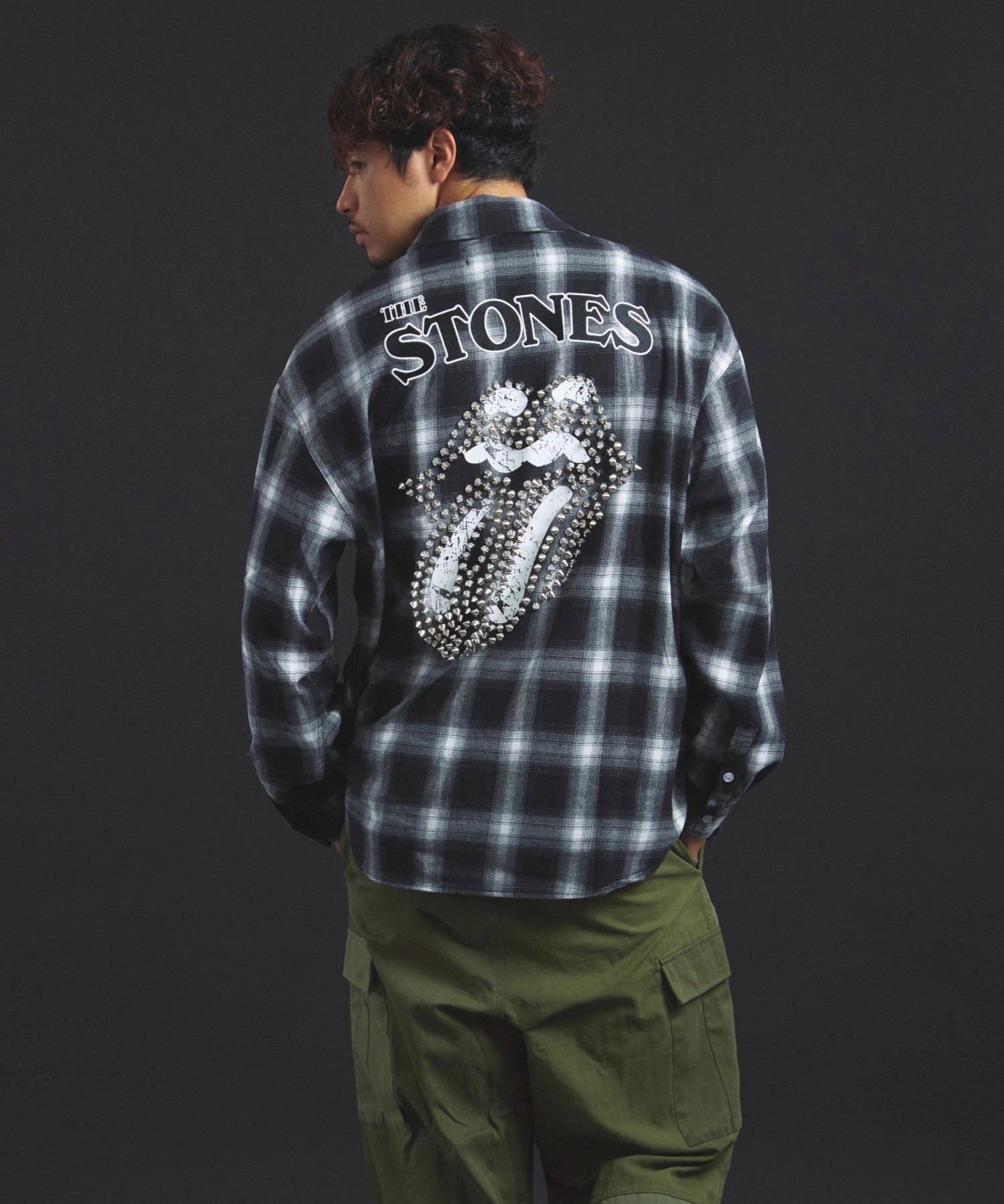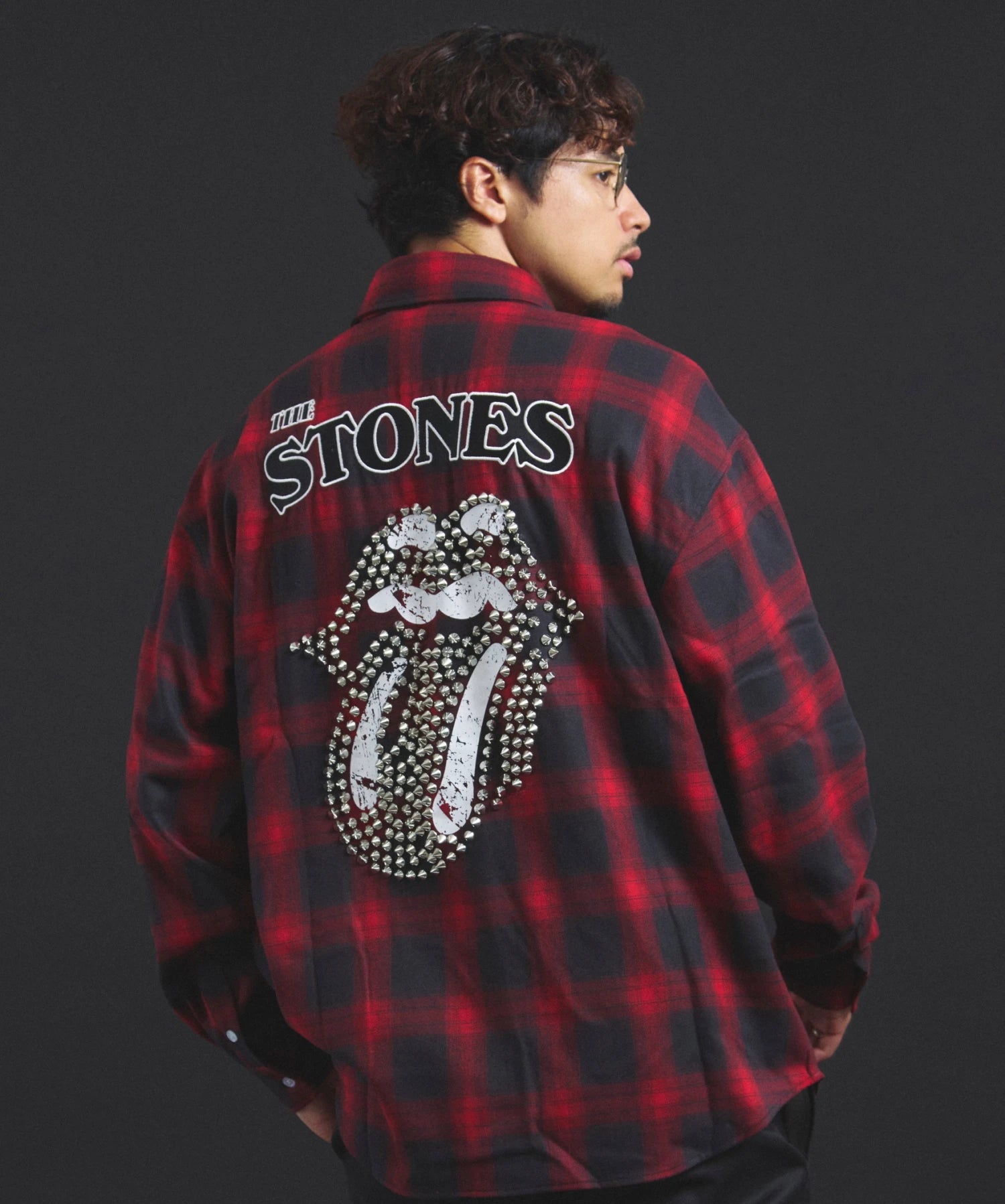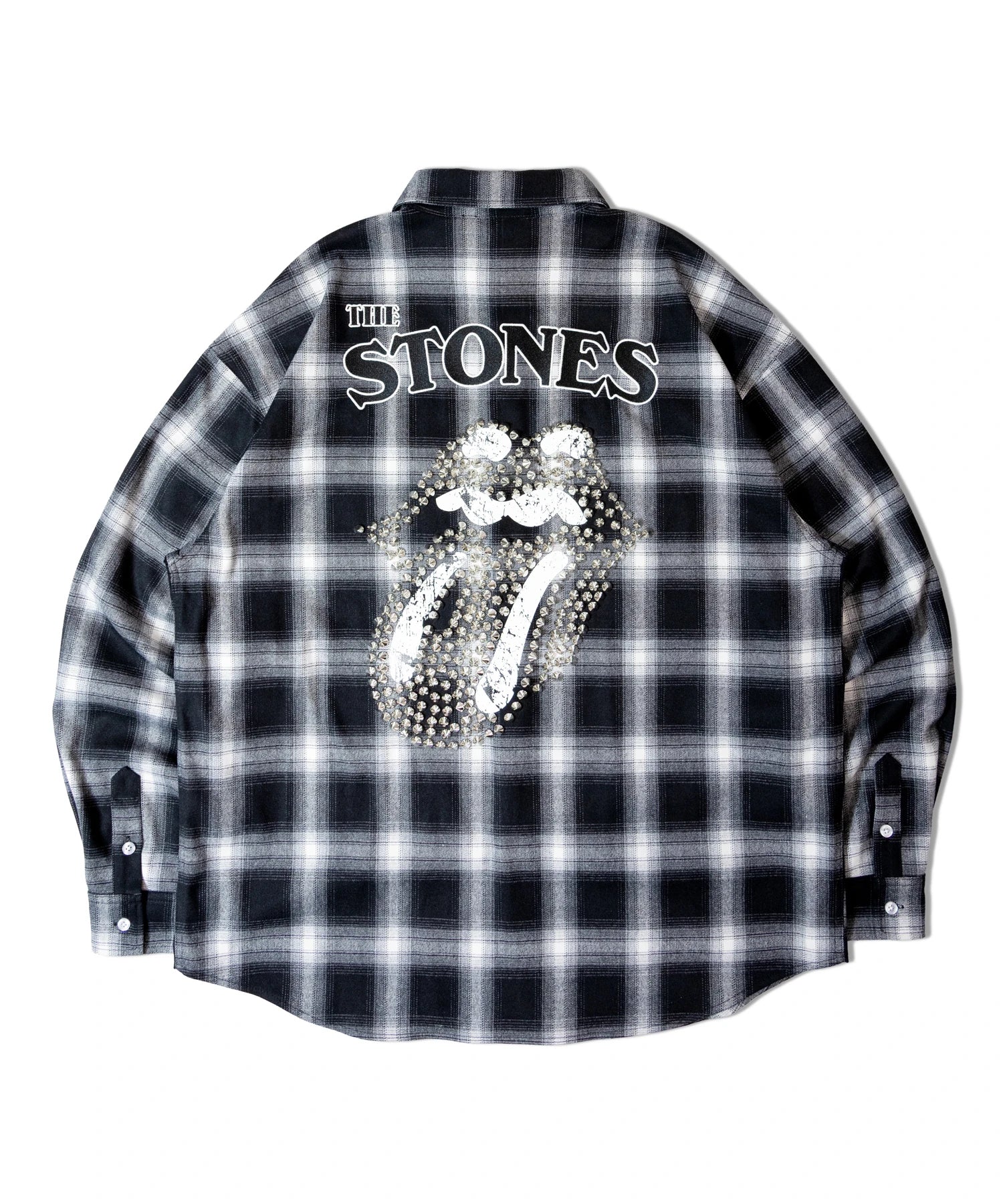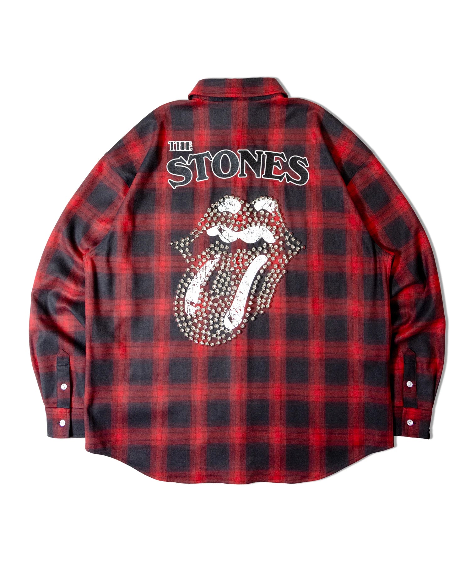 The Rolling Stones×JACKROSELips&Tongue スタッズオンブレチェックシャツ