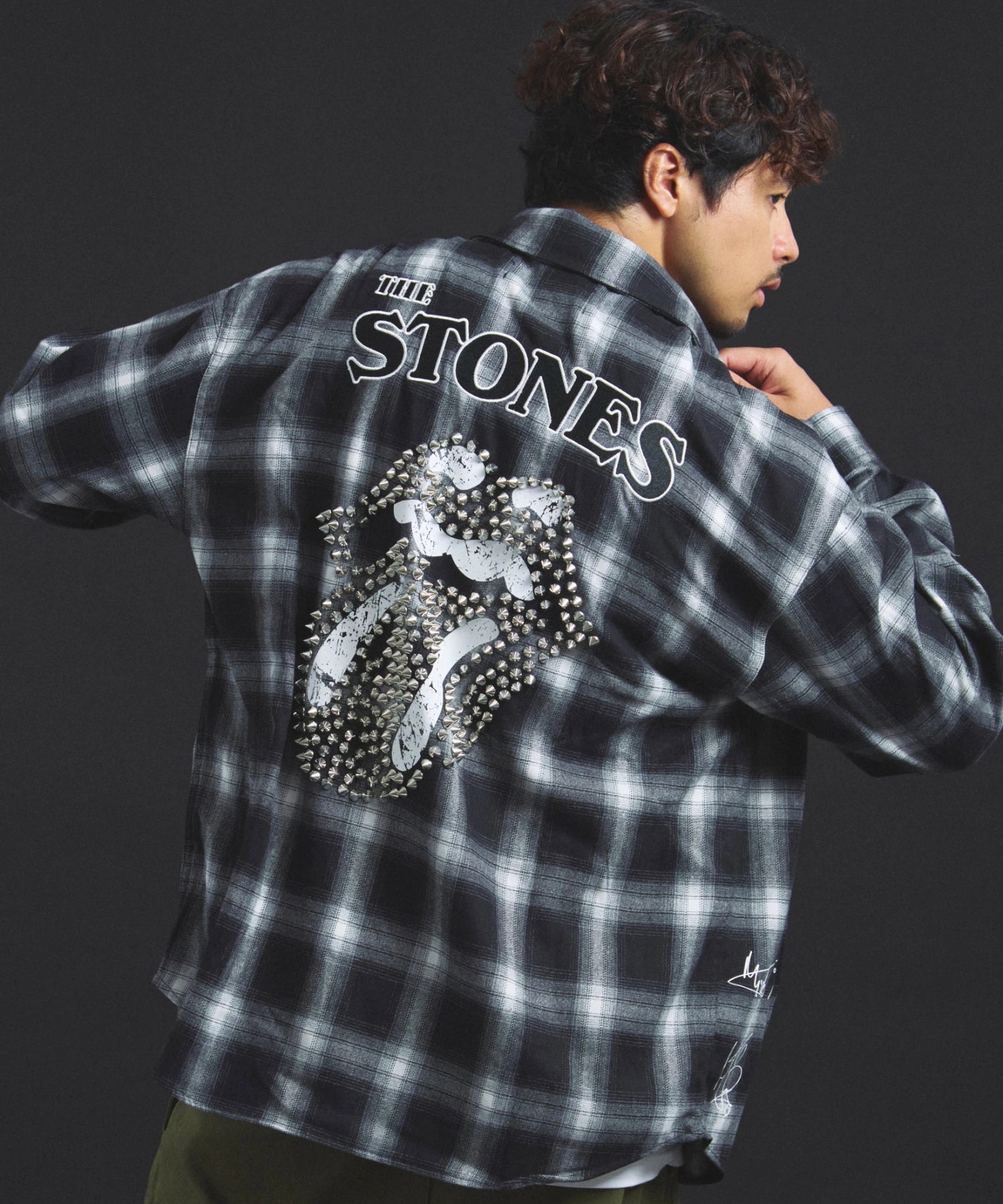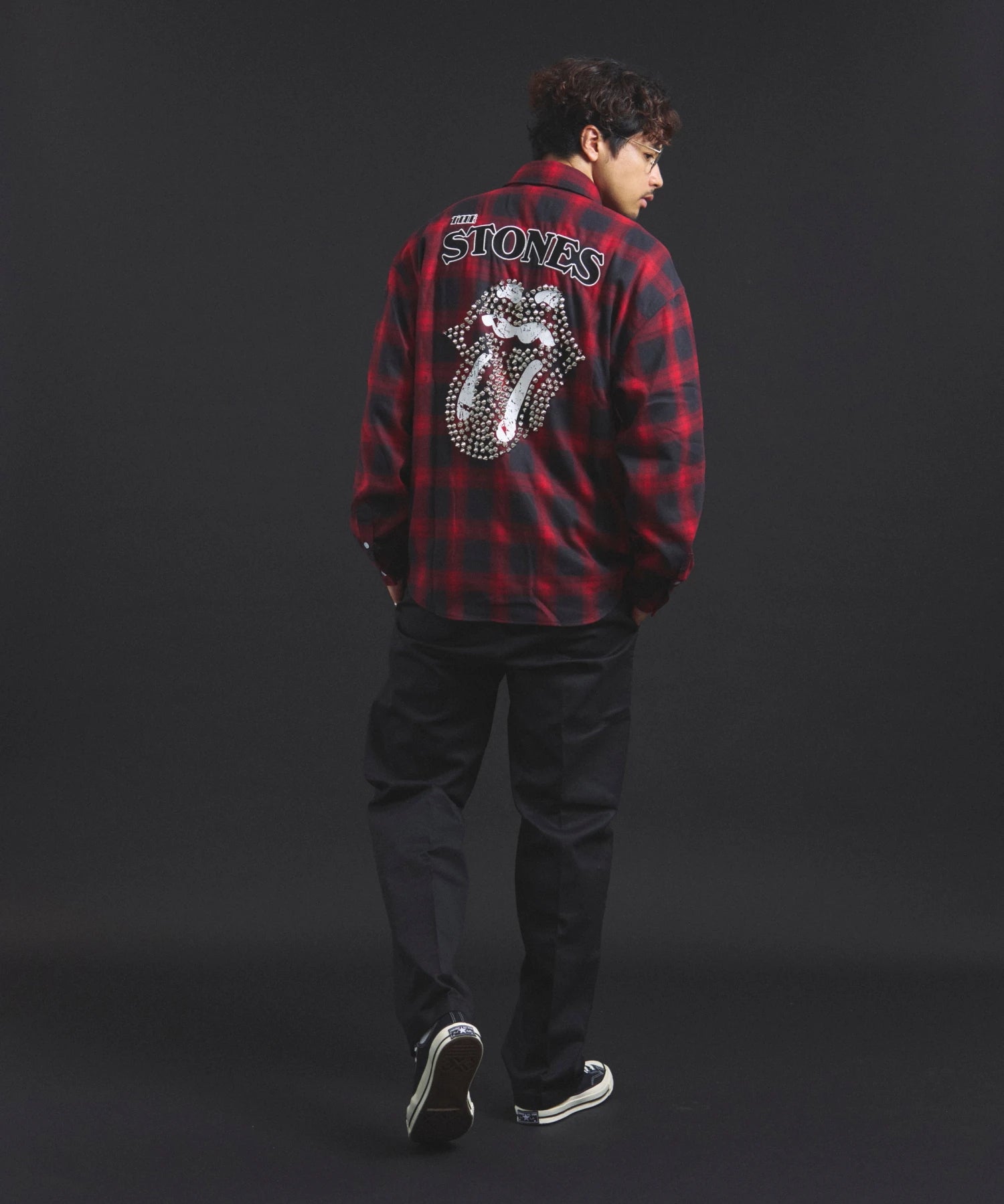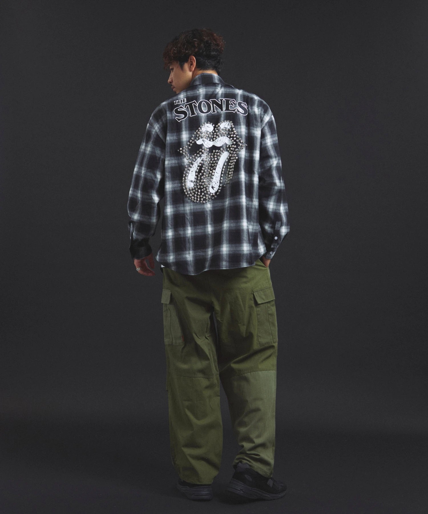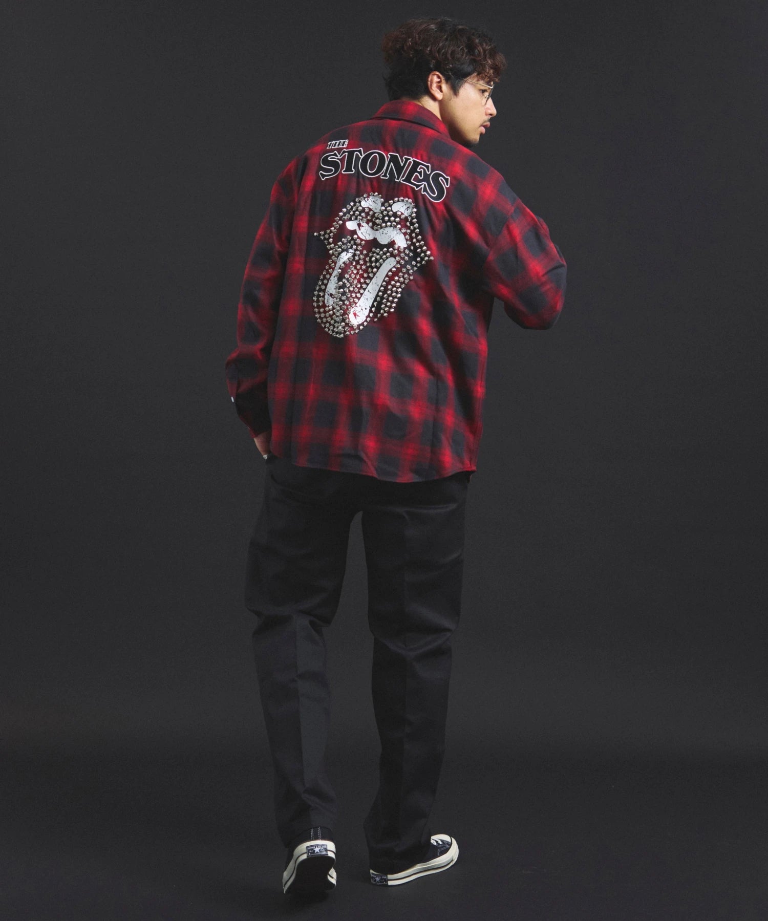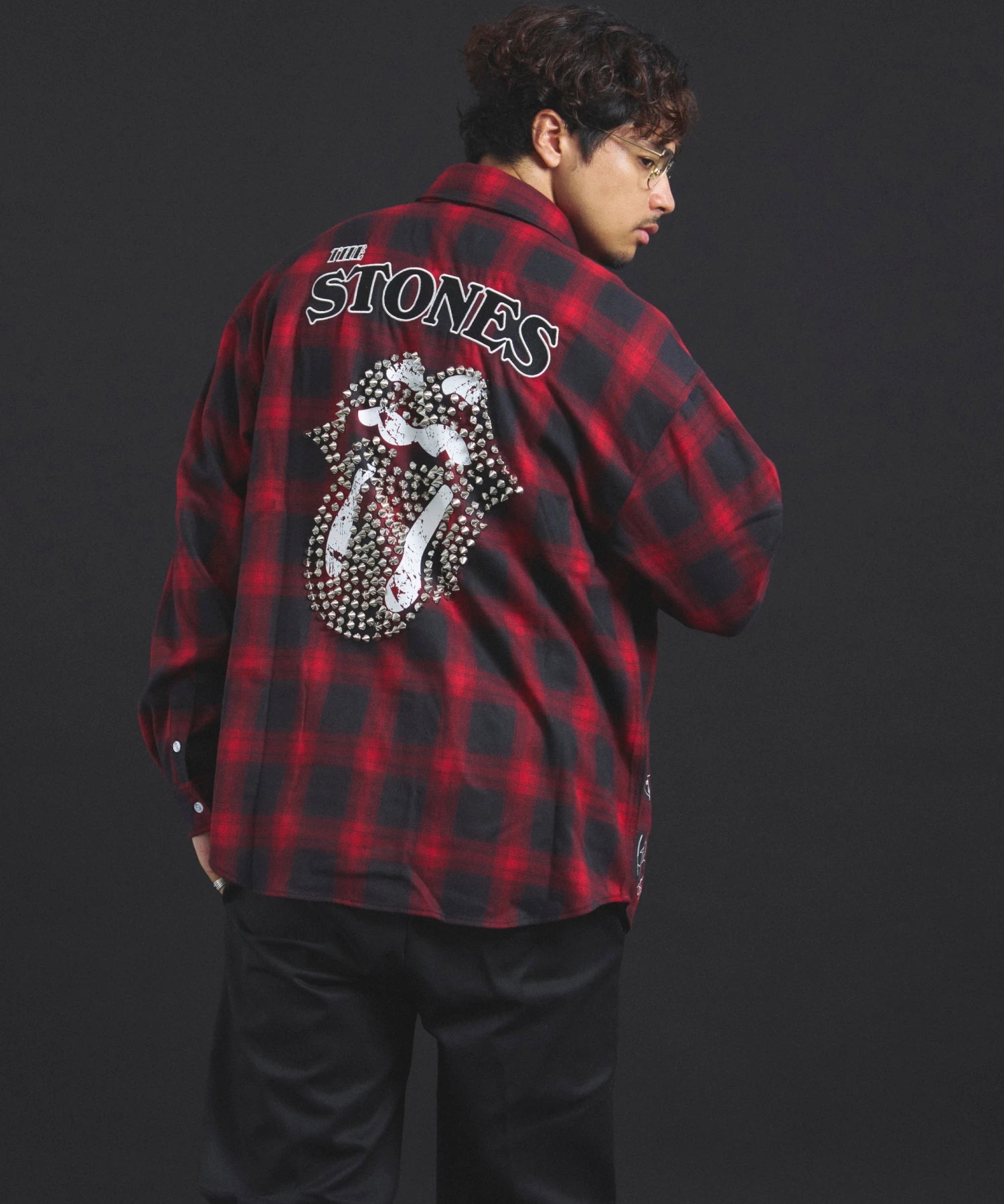 The Rolling Stones×JACKROSELips&Tongue スタッズオンブレチェックシャツ