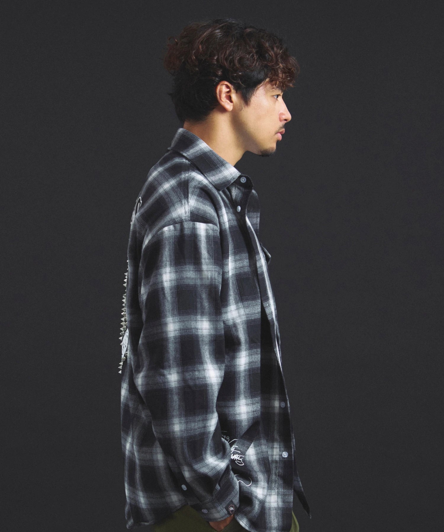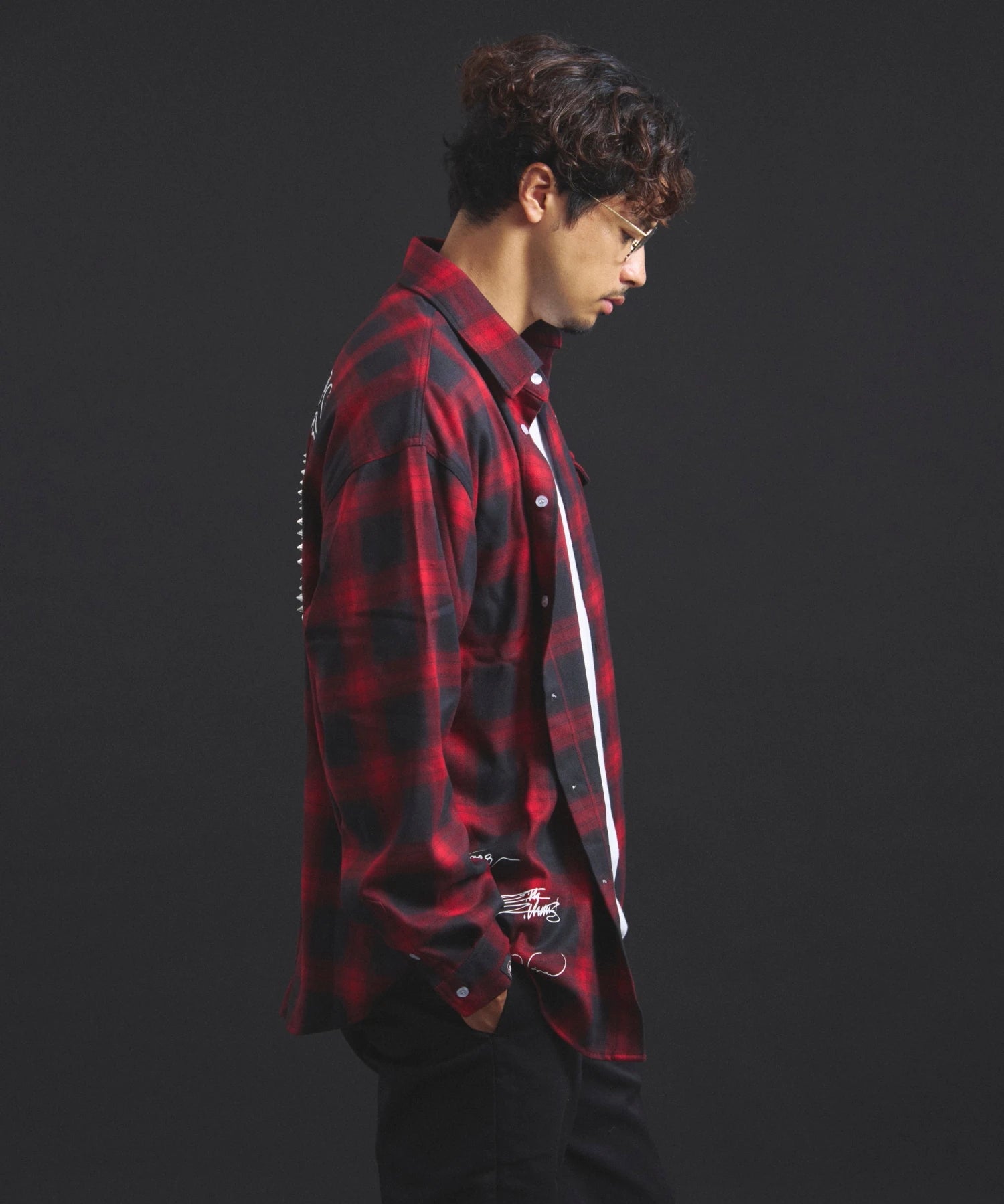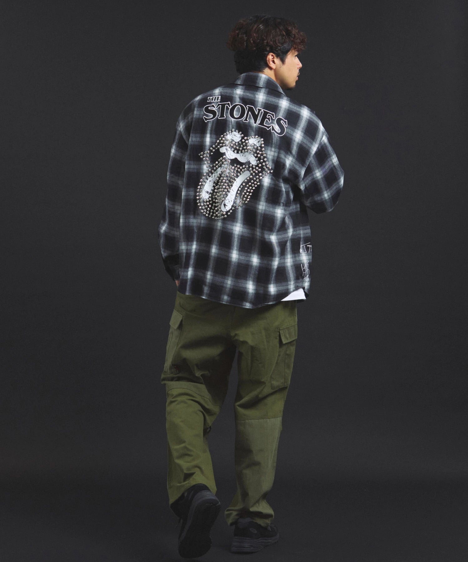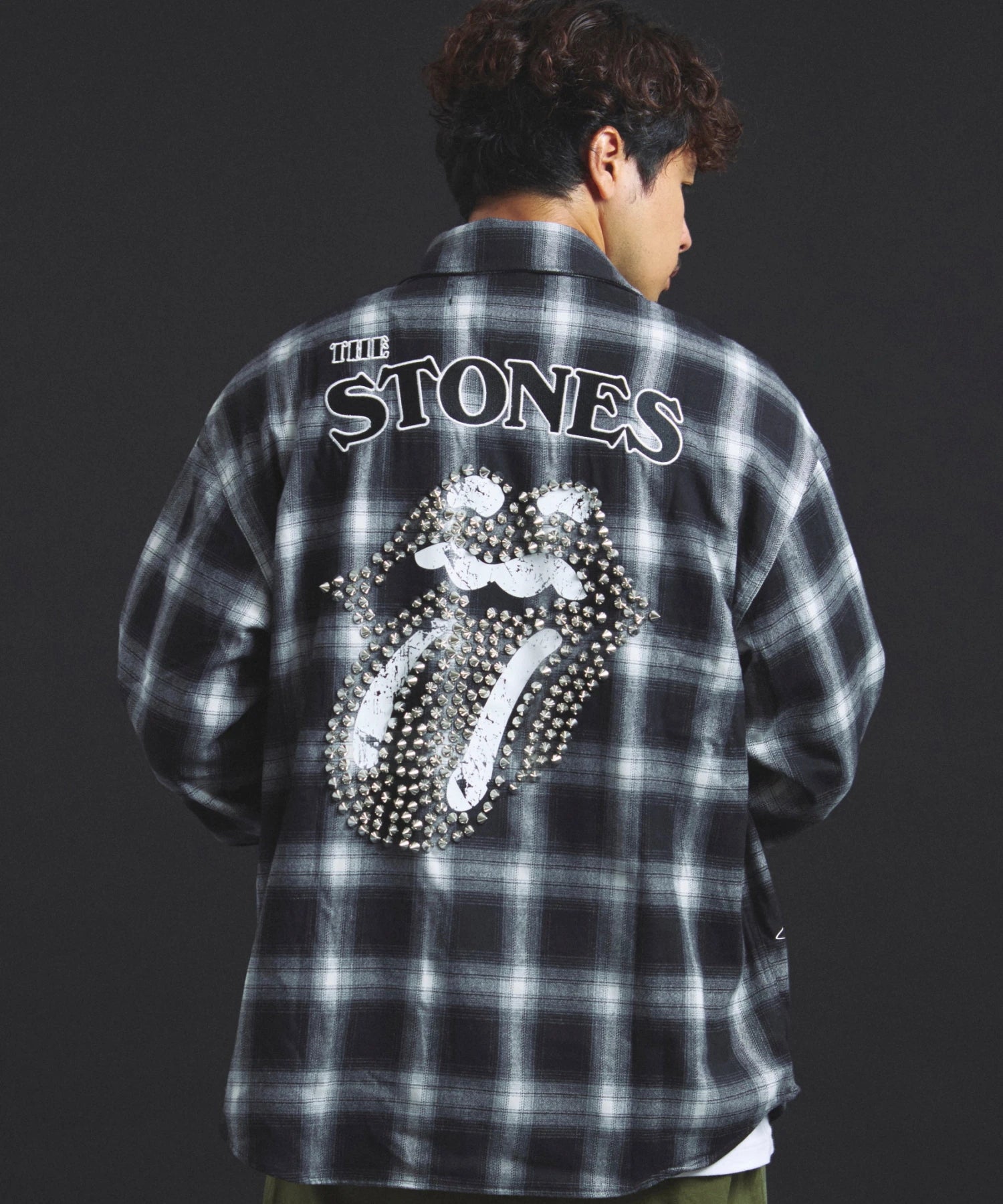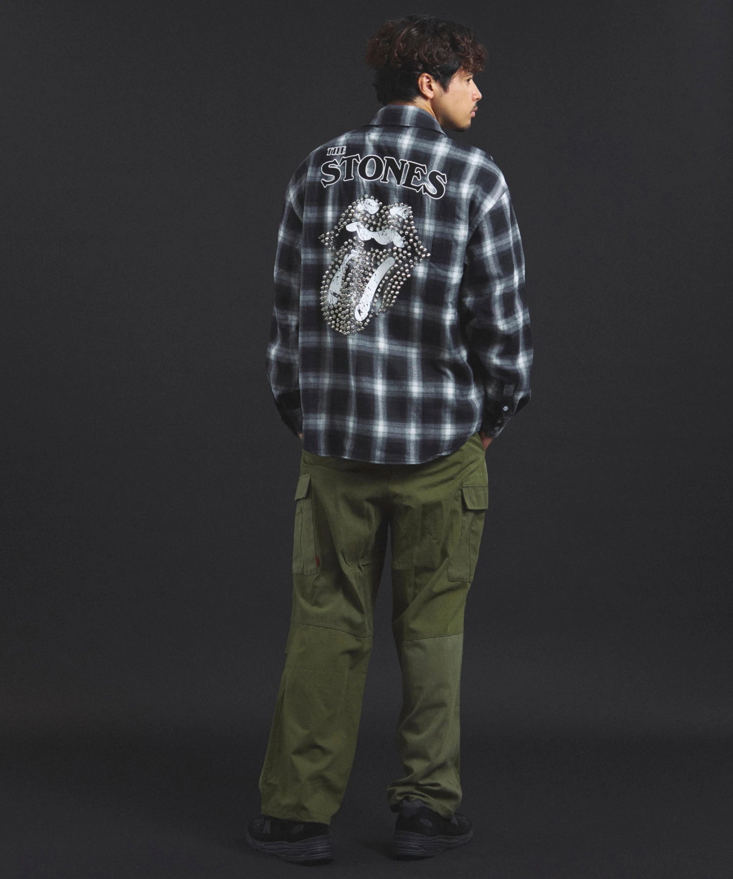 The Rolling Stones×JACKROSELips&Tongue スタッズオンブレチェックシャツ