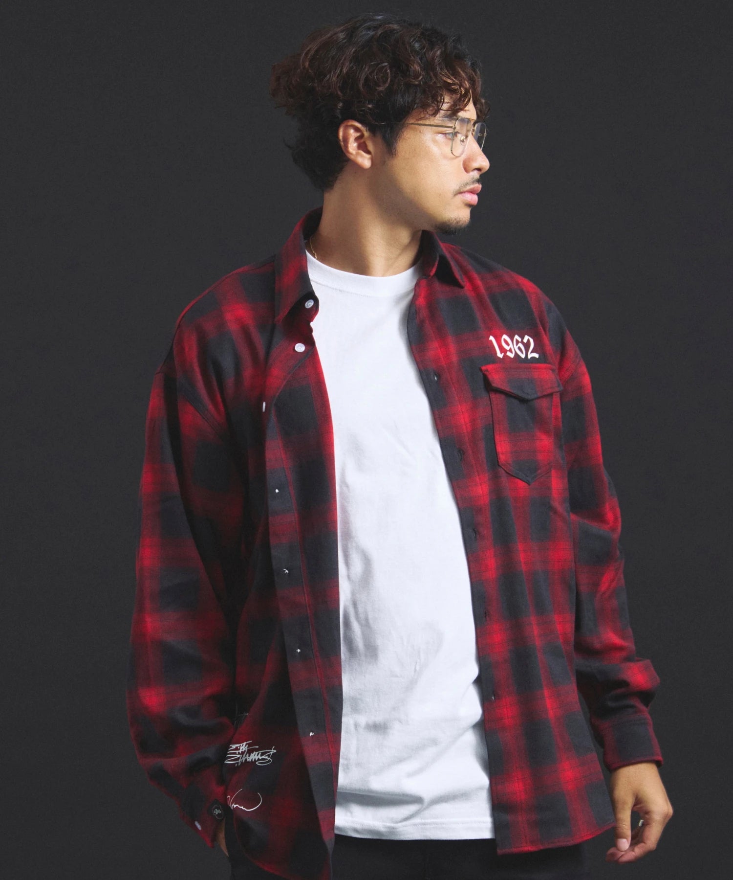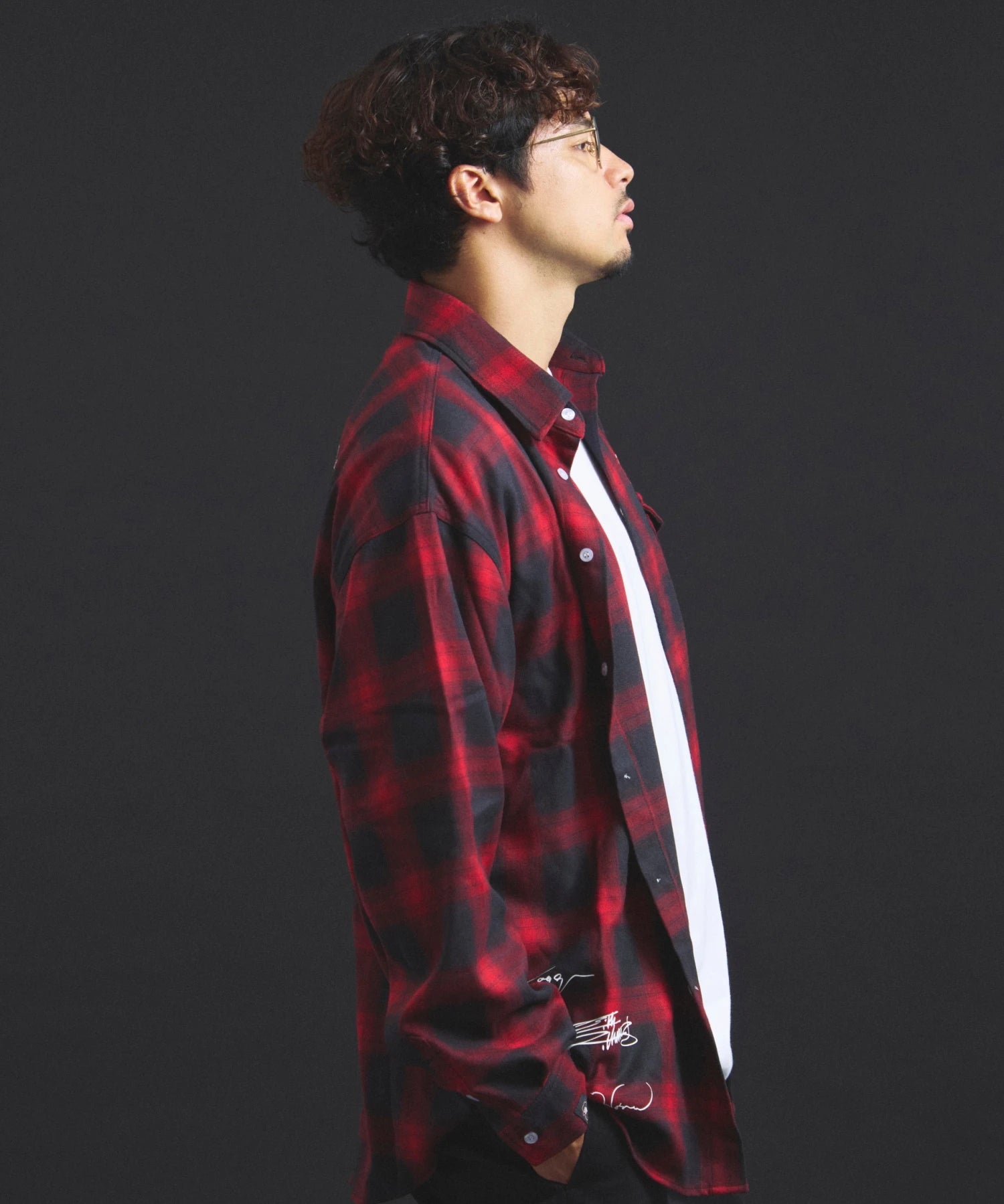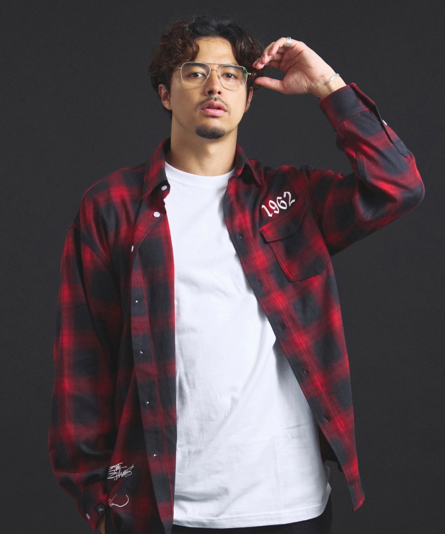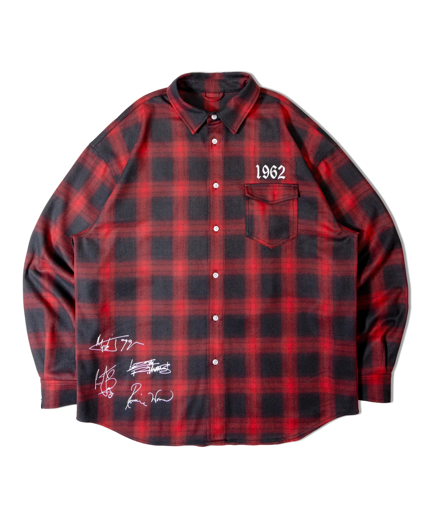 ロックアイコン The Rolling Stones と JACKROSE がコラボレーションした、オンブレチェックシャツが登場。フロントにはバンド結成年「1962」とメンバーのサインプリントを配置し、ディテールまでこだわったデザイン。バックには「Lips & Tongue」ロゴを大胆に落とし込み、さらにスタッズを打ち込むことで迫力と立体感を演出しています。トレンド感のあるゆったりとしたシルエットと、着込むほどに風合いが増すオンブレチェック柄が魅力。ブラックとレッドの2色展開で、ストリートからロックスタイルまで幅広いコーディネートに対応します。唯一無二の存在感を放つ、ファン必見のスペシャルアイテムです。