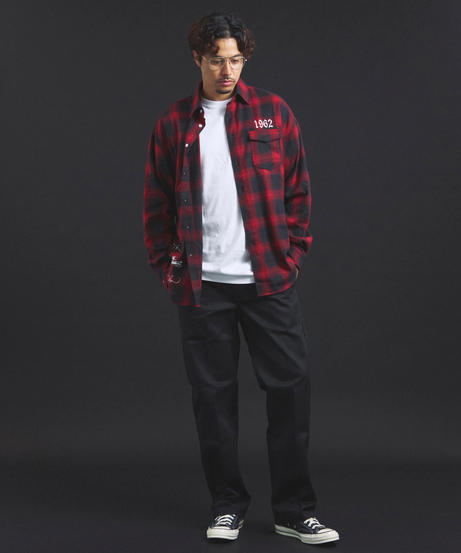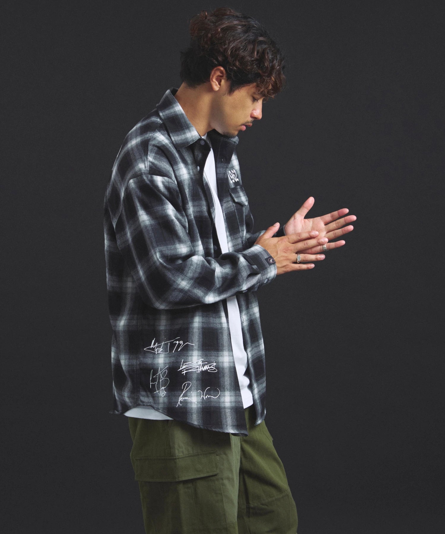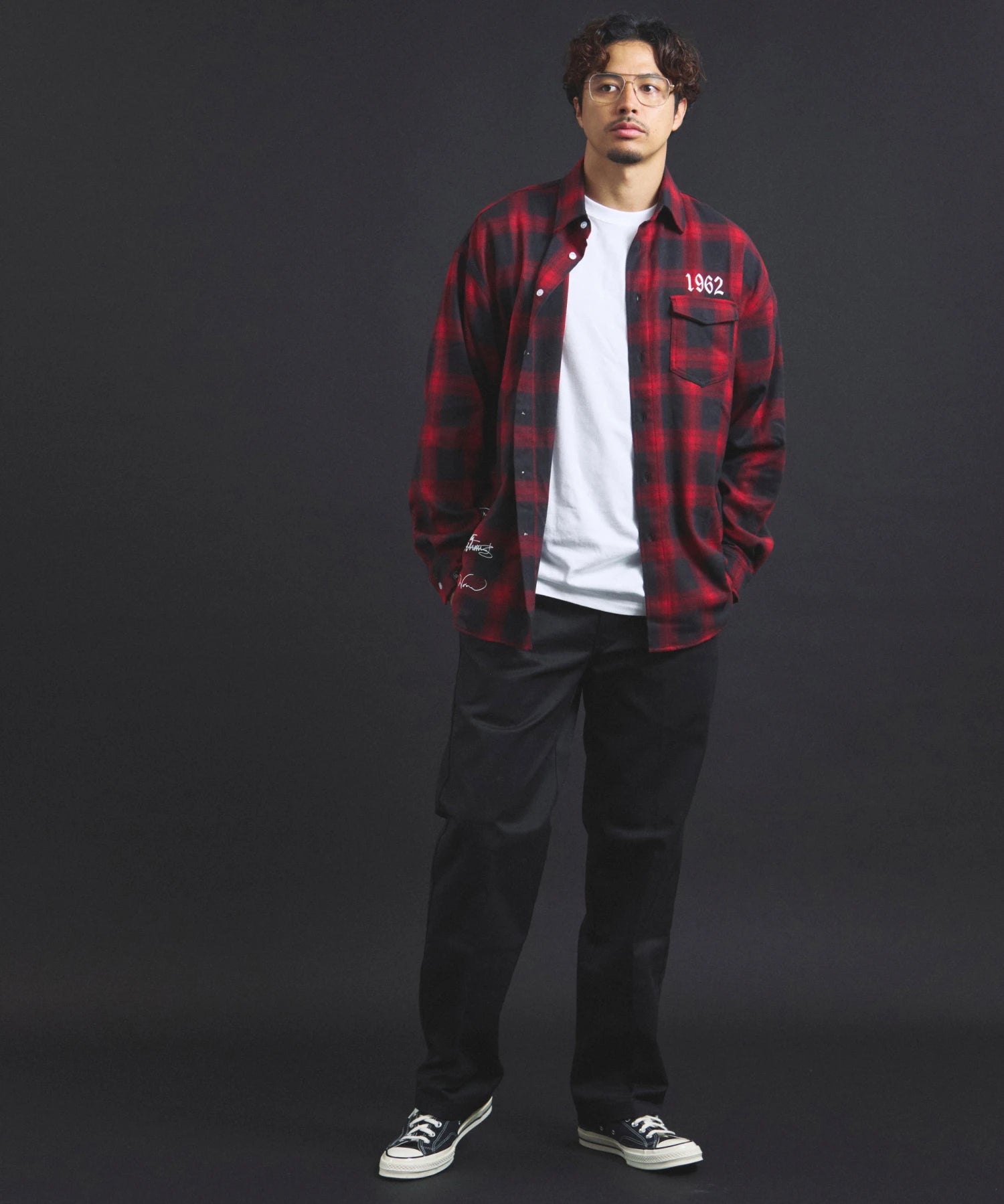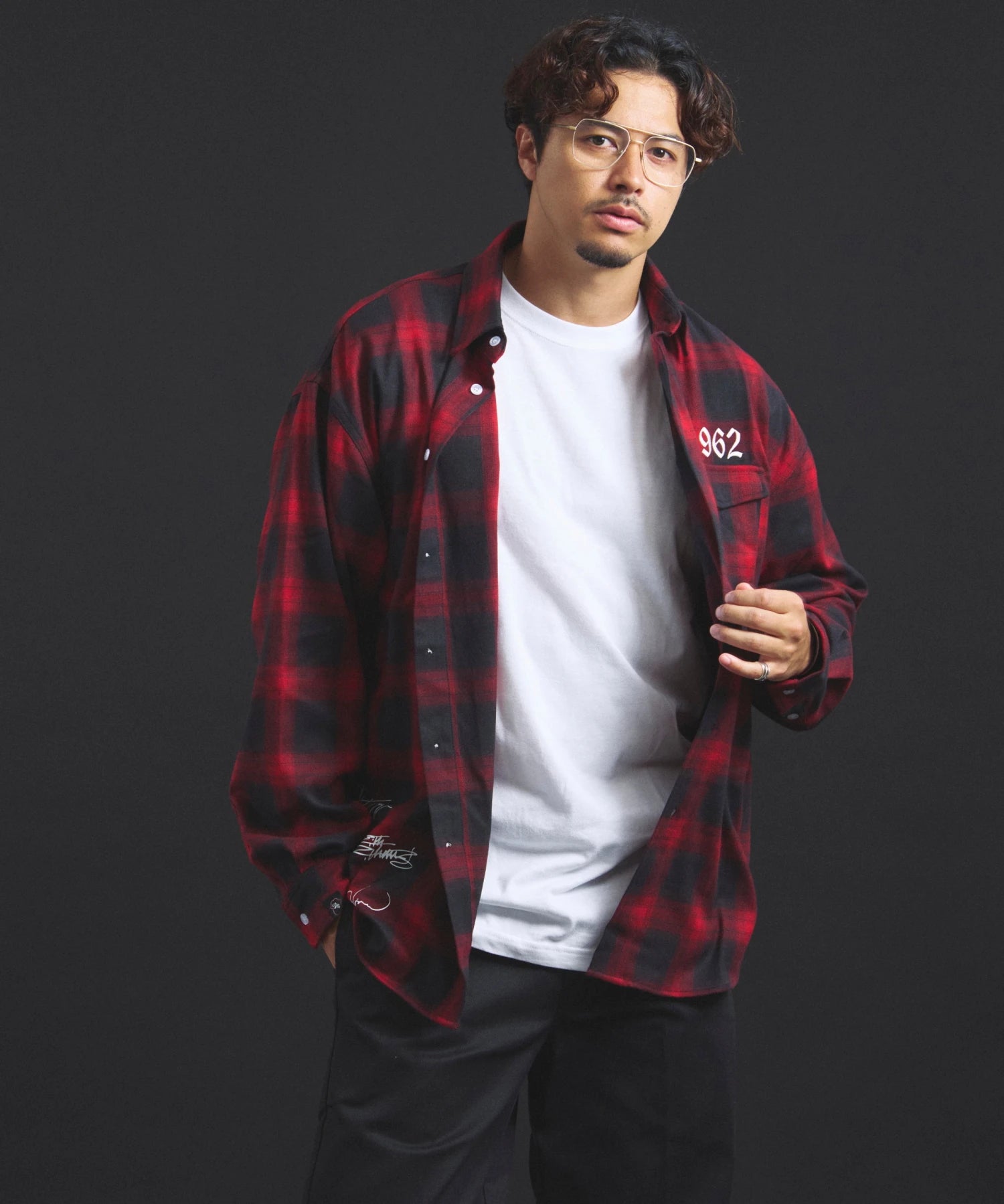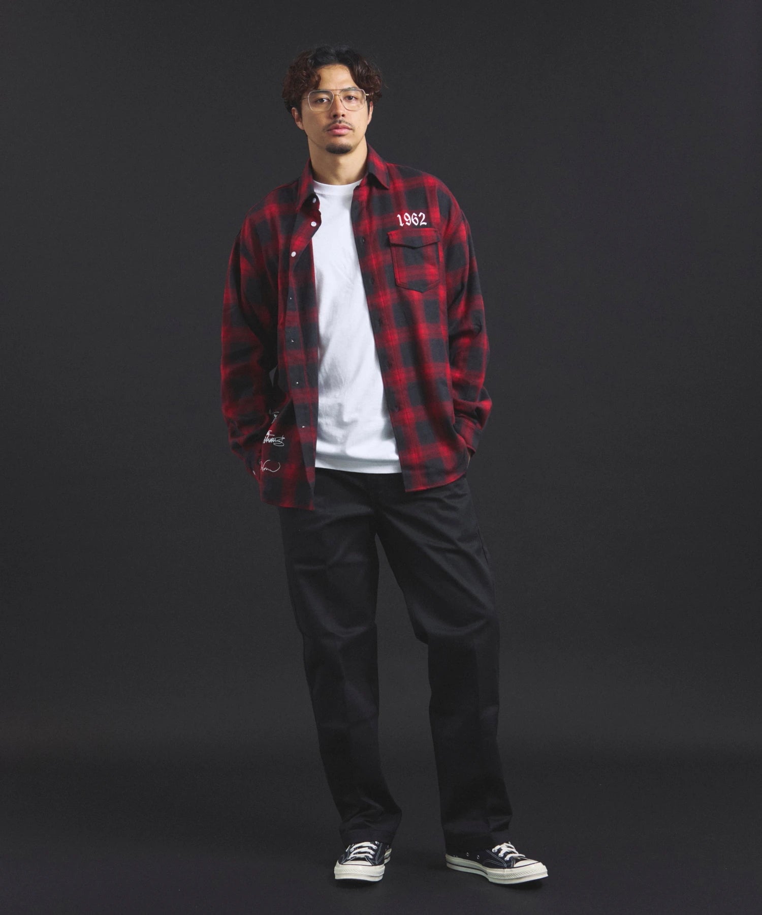 ロックアイコン The Rolling Stones と JACKROSE がコラボレーションした、オンブレチェックシャツが登場。フロントにはバンド結成年「1962」とメンバーのサインプリントを配置し、ディテールまでこだわったデザイン。バックには「Lips & Tongue」ロゴを大胆に落とし込み、さらにスタッズを打ち込むことで迫力と立体感を演出しています。トレンド感のあるゆったりとしたシルエットと、着込むほどに風合いが増すオンブレチェック柄が魅力。ブラックとレッドの2色展開で、ストリートからロックスタイルまで幅広いコーディネートに対応します。唯一無二の存在感を放つ、ファン必見のスペシャルアイテムです。