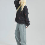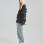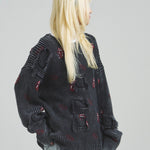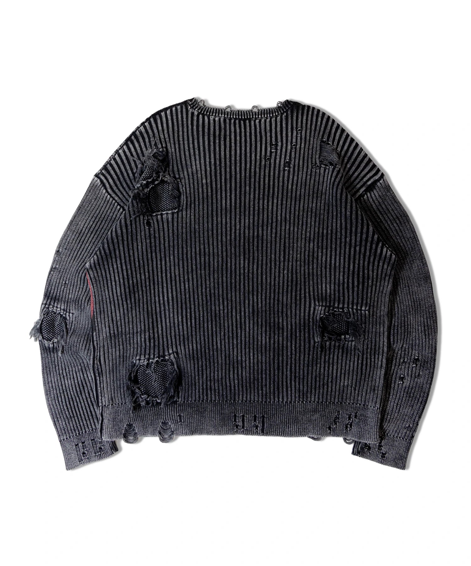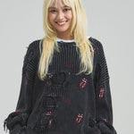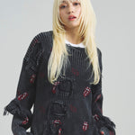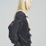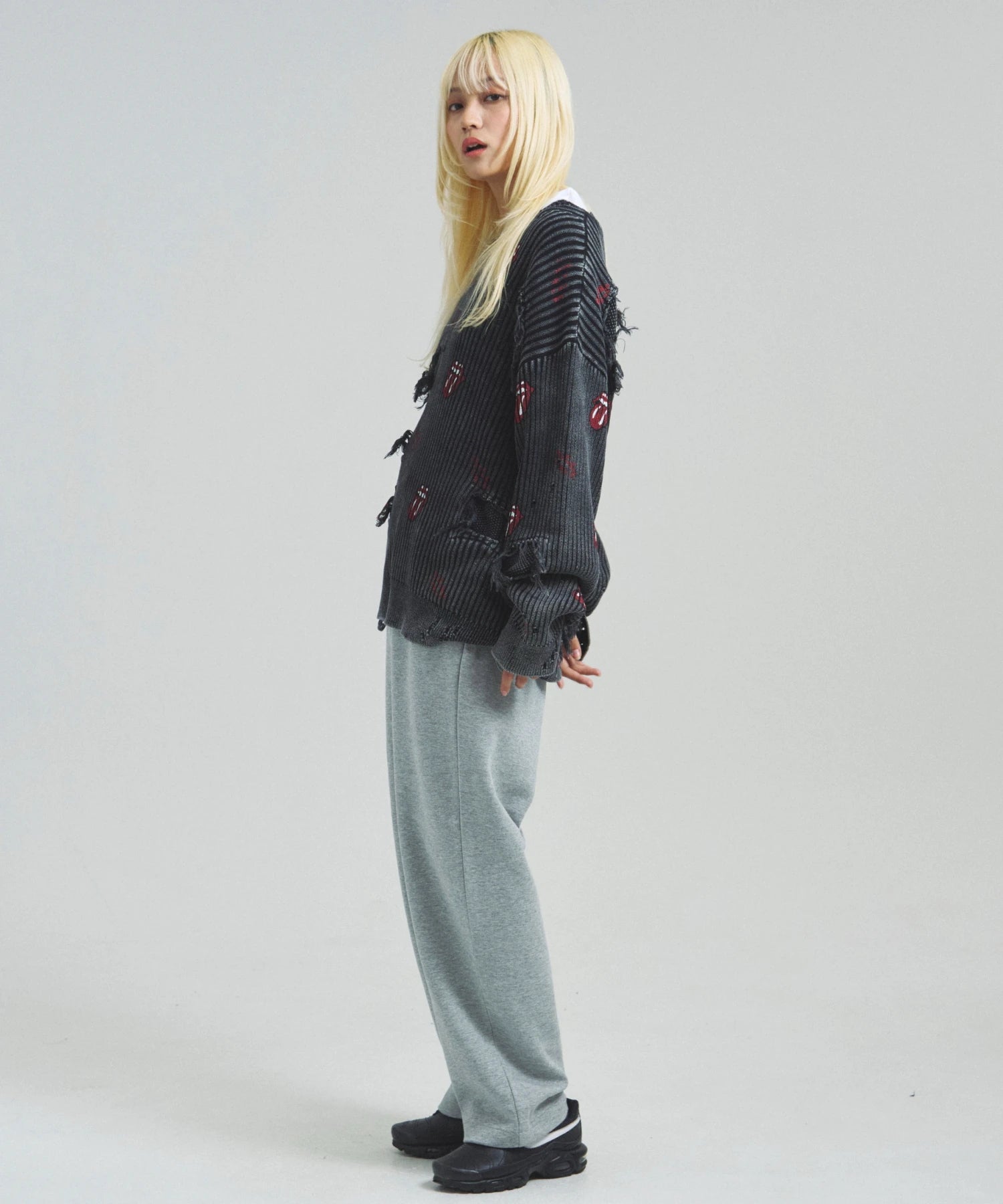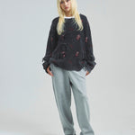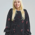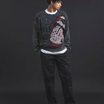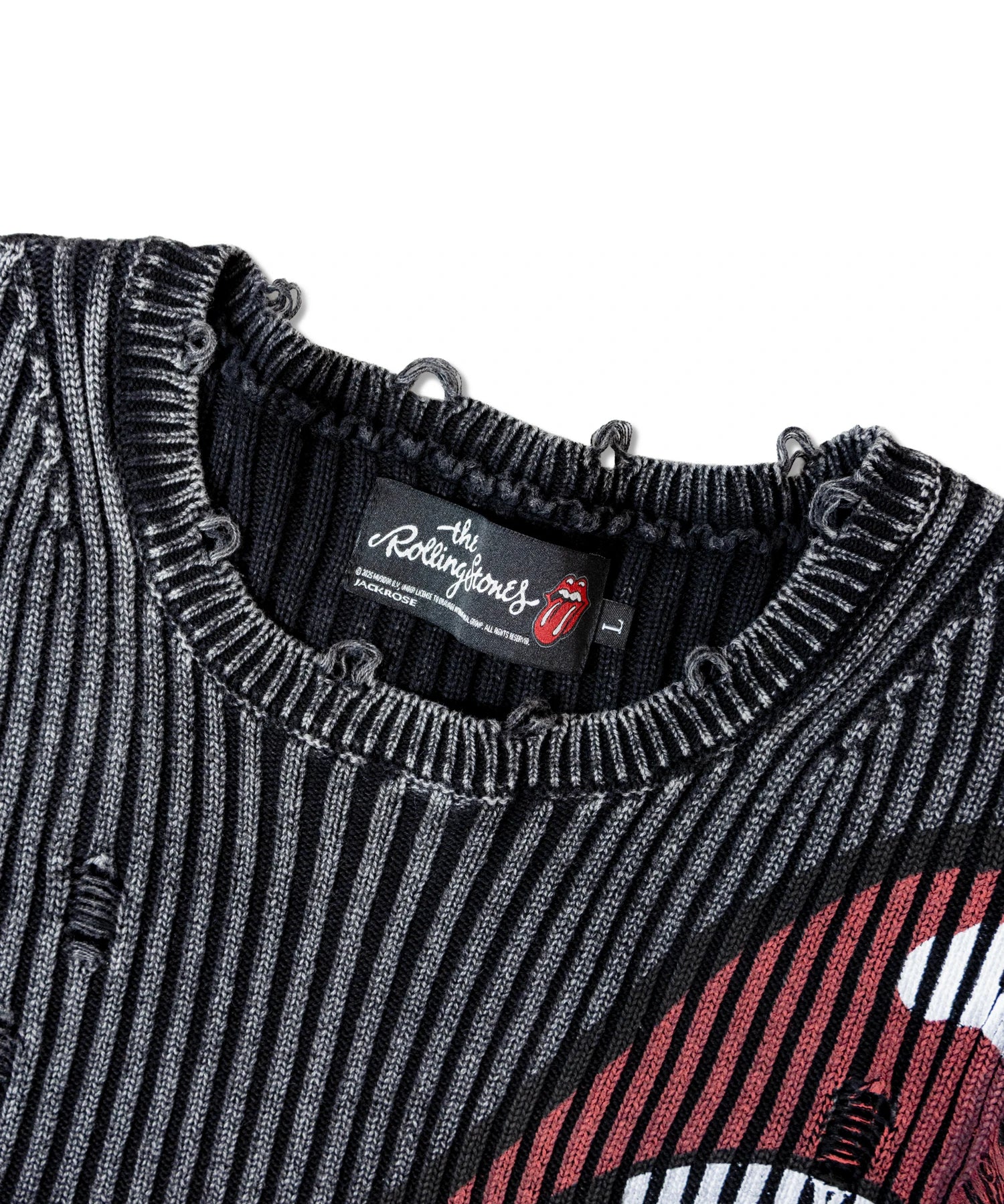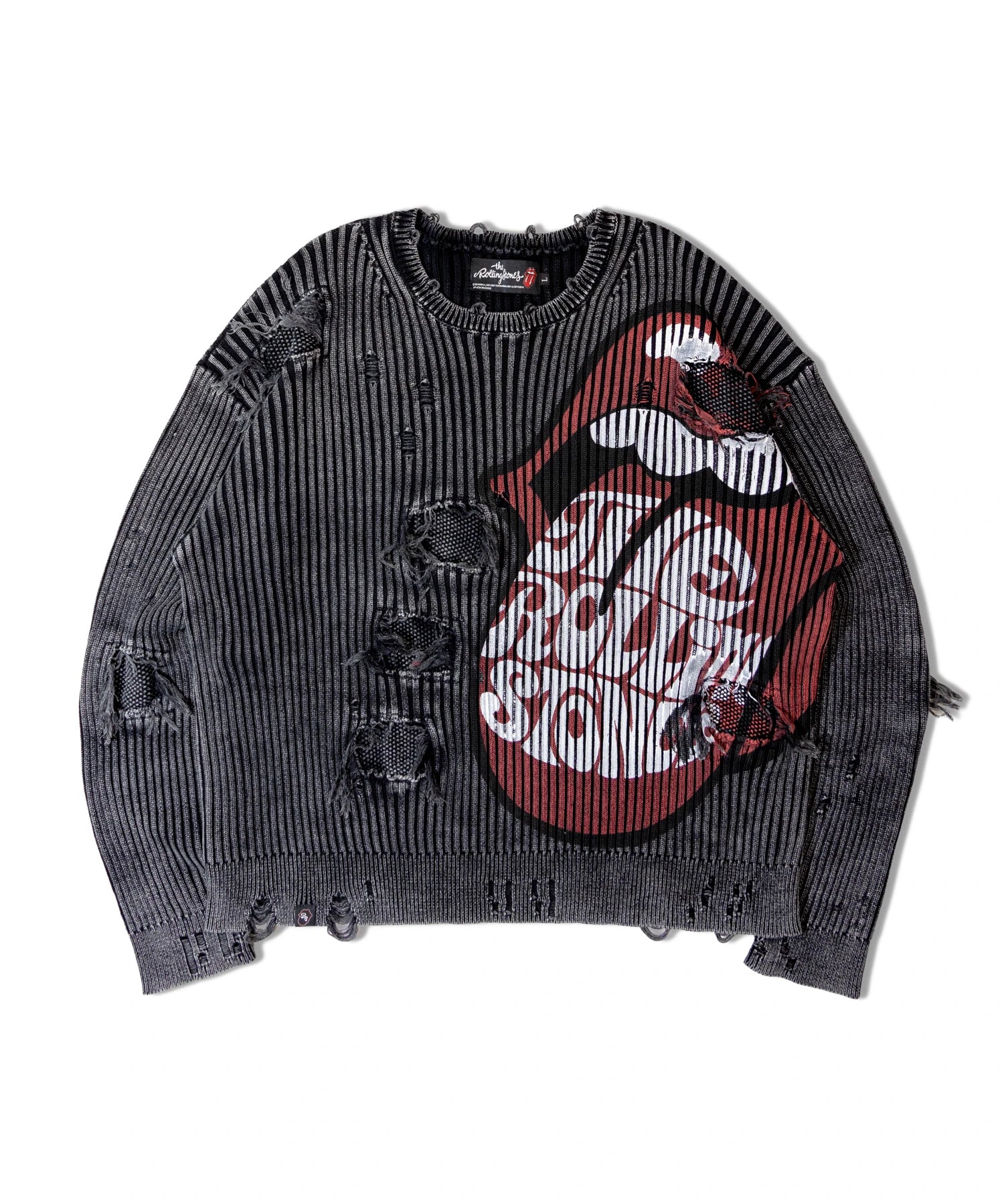 伝説のロックバンド「The Rolling Stones」とJACKROSEのコラボレーションから登場した、大胆なダメージ加工が目を引くグランジニット。フロントにはバンドの象徴「Lips & Tongue(リップス&タン)」ロゴを大きく配置し、ロックな存在感を放ちます。全体に施されたダメージ加工がパンクな雰囲気をプラスし、一枚でスタイルの主役になるデザインです。