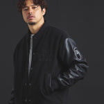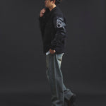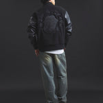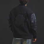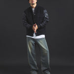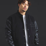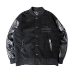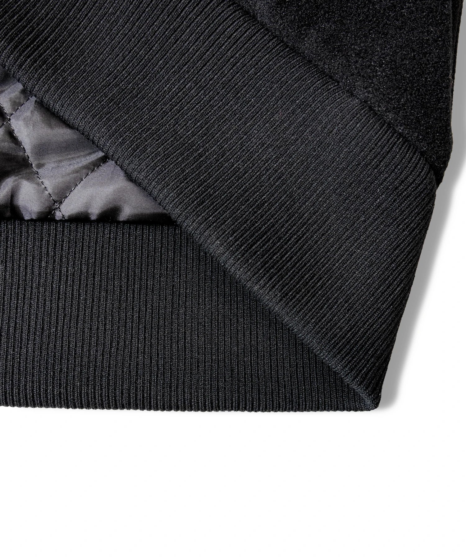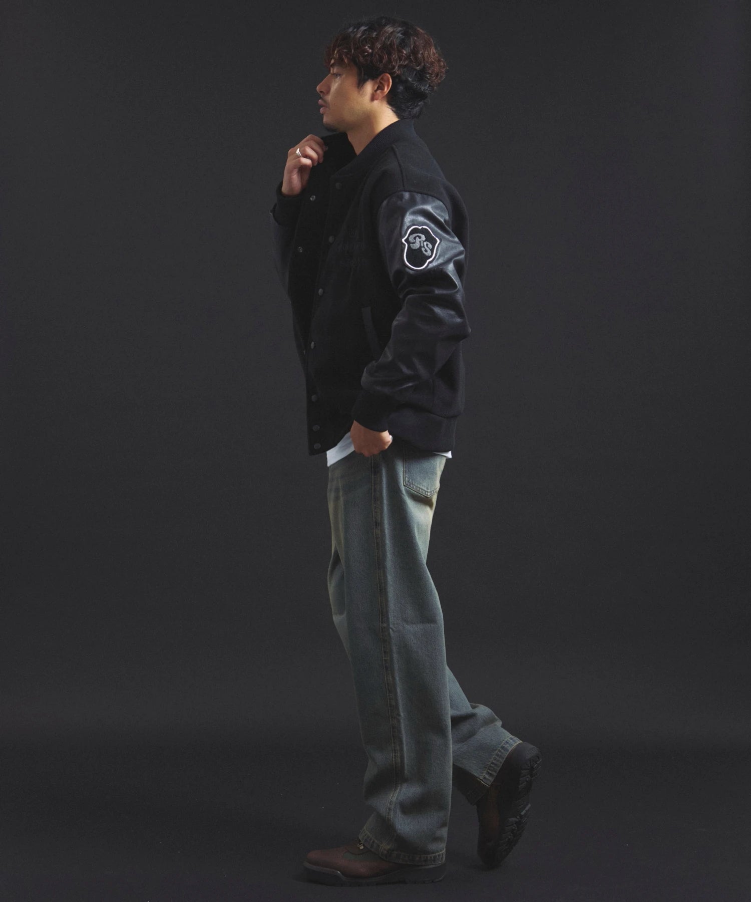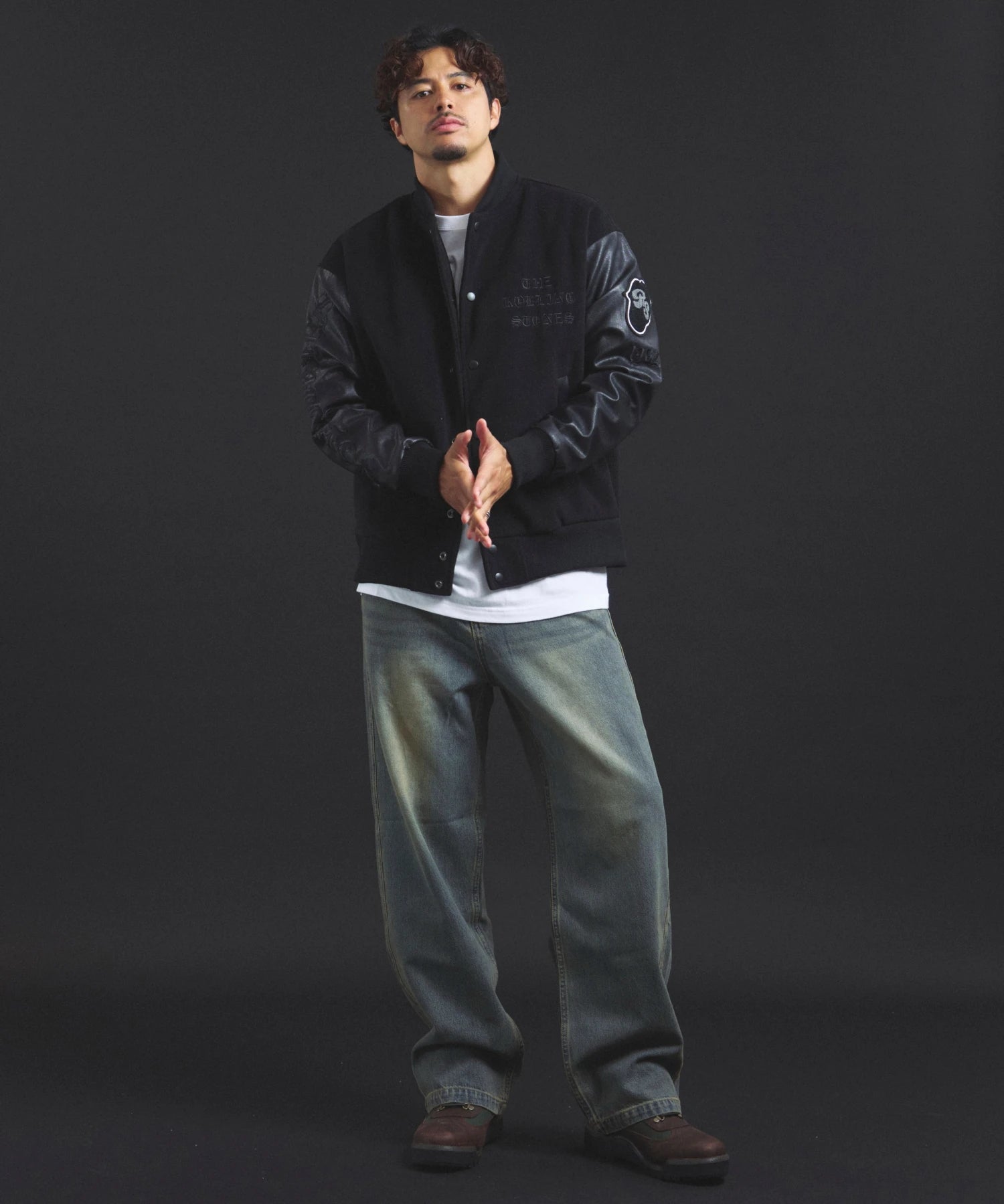 ロックを象徴するバンド The Rolling Stones と JACKROSE のコラボレーションによる、シグネチャーデザインのスタジャン。フロントには「THE ROLLING STONES」のロゴ刺繍を配置し、バックにはアイコニックな「Lips & Tongue」ロゴをレザーアップリケで大胆に表現。両袖にはロゴ刺繍をあしらい、細部までこだわり抜いた存在感のある仕上がりになっています。ボディにはポリエステル90%・レーヨン10%の混紡素材を採用し、軽さと耐久性を兼ね備えつつ上品な質感を演出。スリーブにはフェイクレザーを組み合わせ、異素材のコントラストがスタイリングに深みを与えます。ブラックワントーンでまとめたクールな配色は、幅広いコーディネートにマッチ。ロックなムードとラグジュアリーな雰囲気を併せ持つ、特別なコラボアイテムです。
