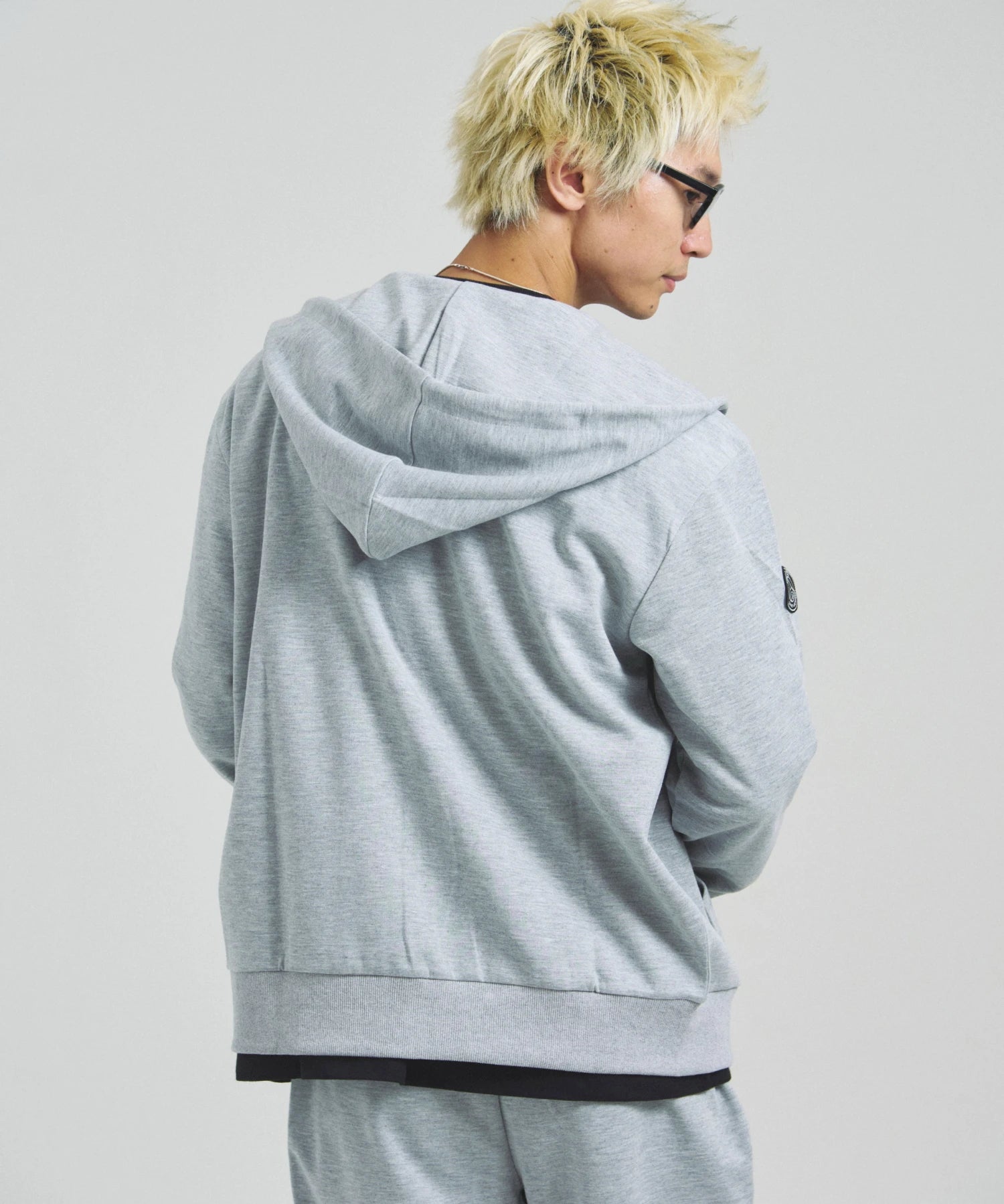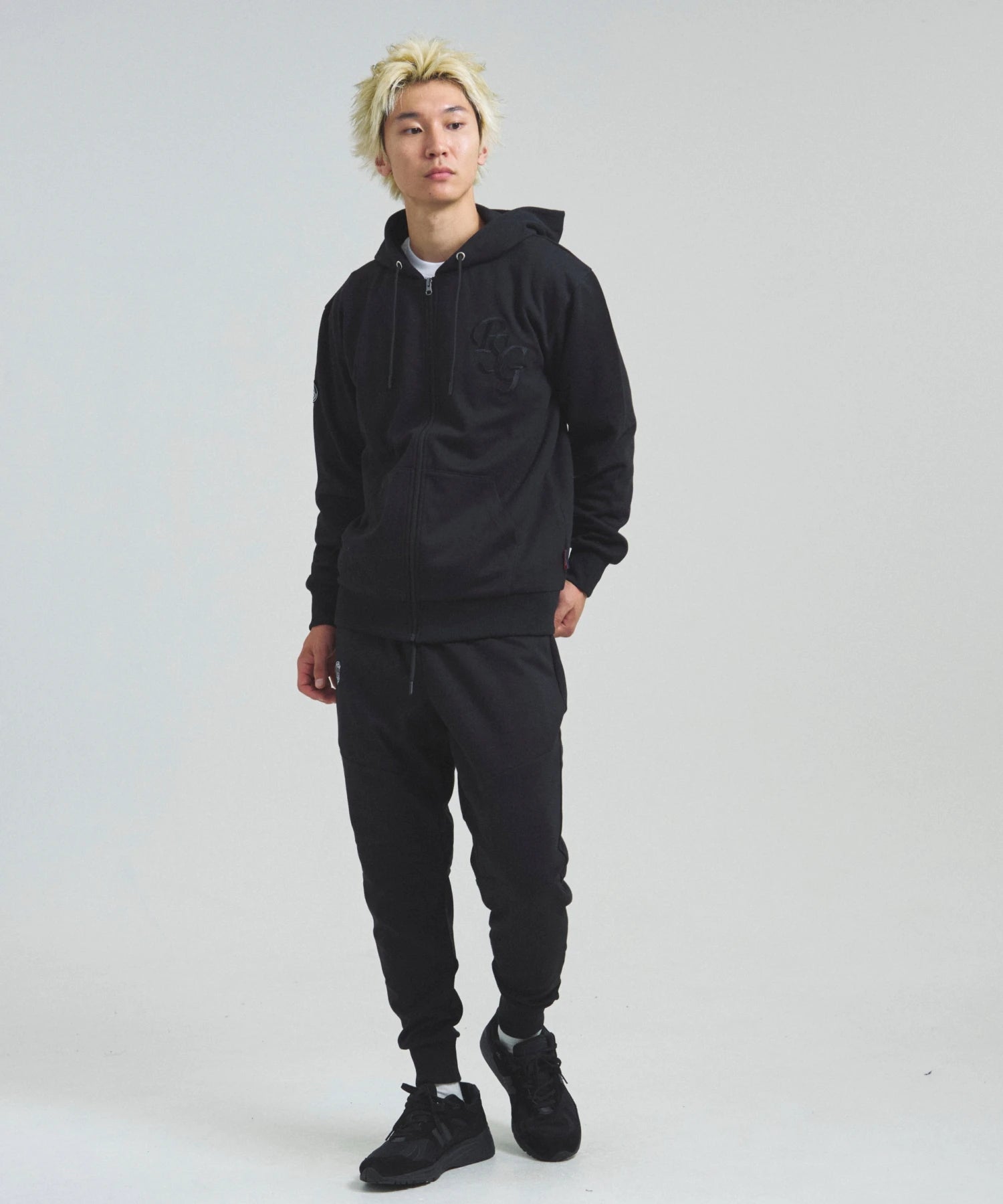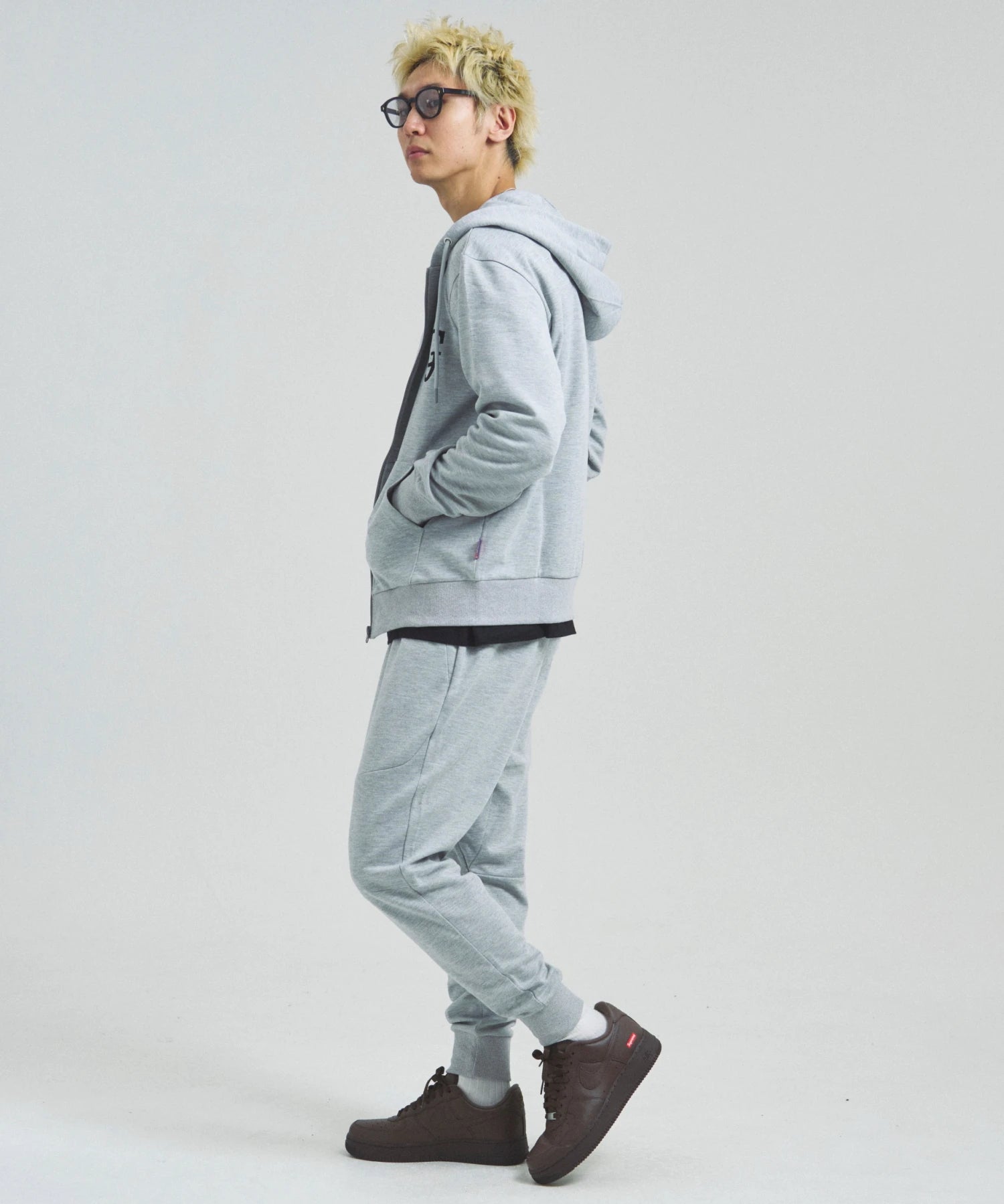 同素材のパンツ(別売り)と合わせて、セットアップコーデもおすすめ。532575139007 テックフリース・EMB LOGO-パンツ